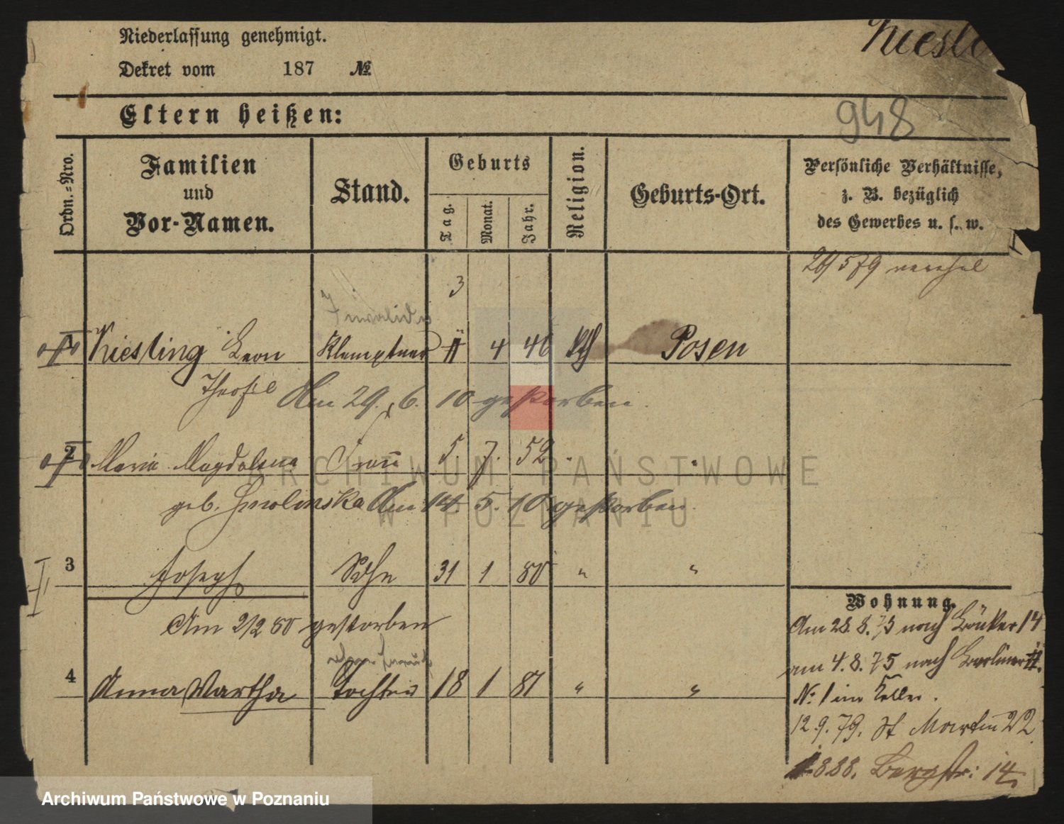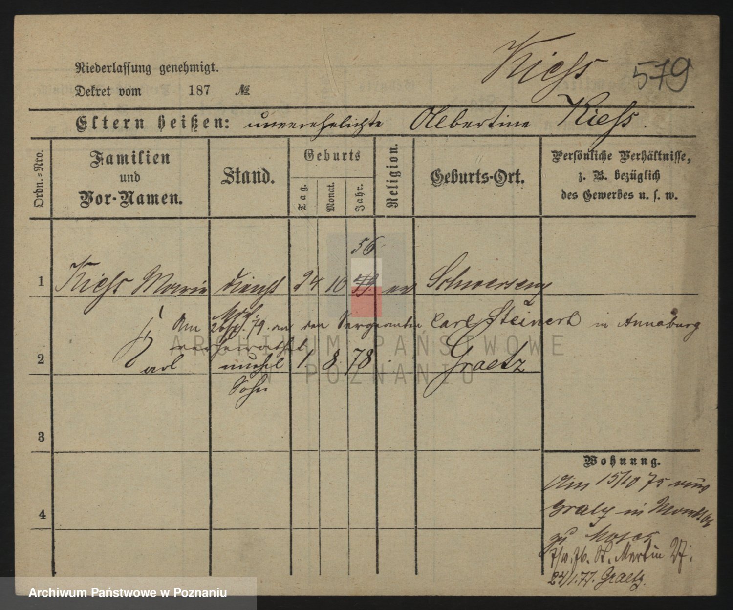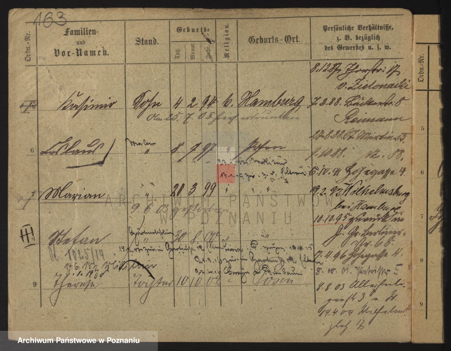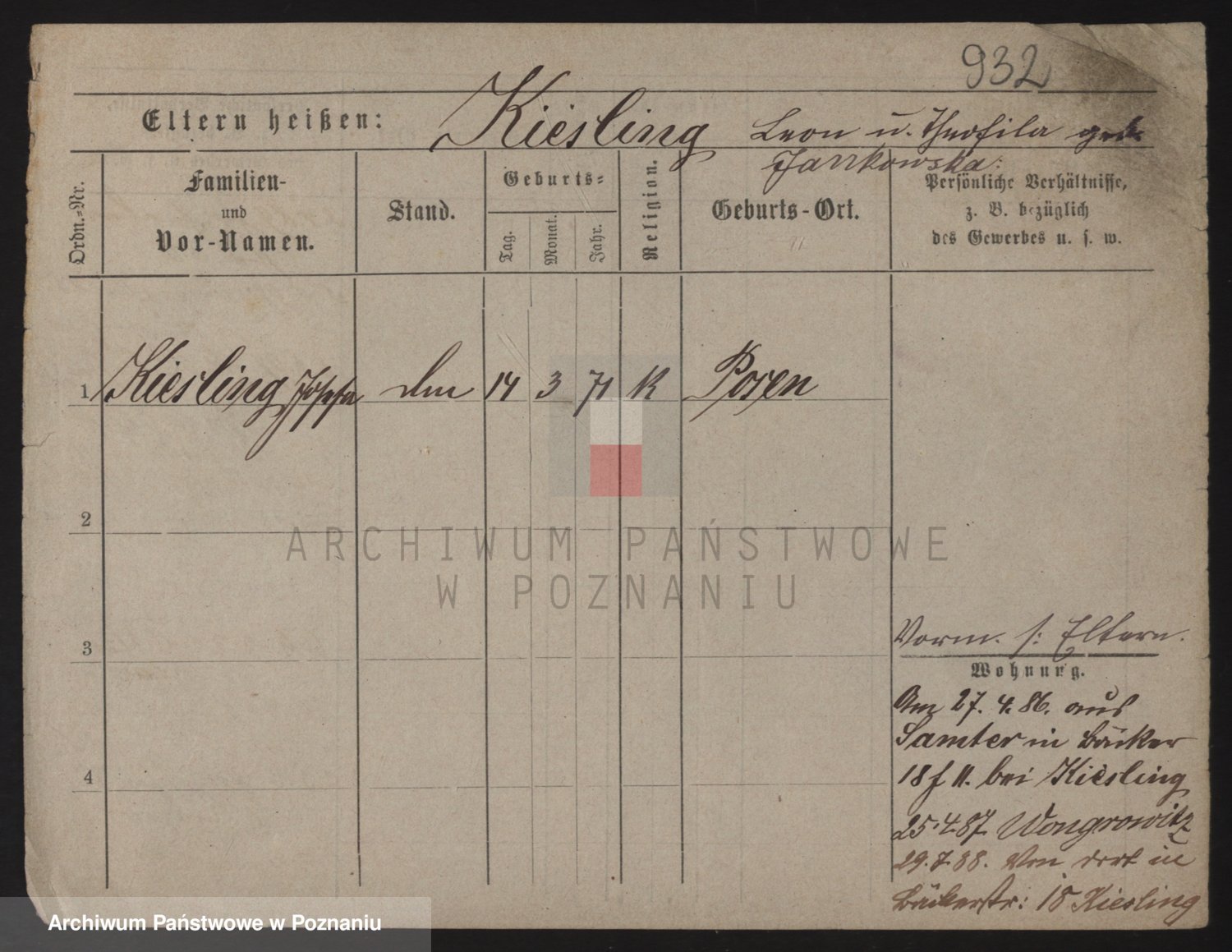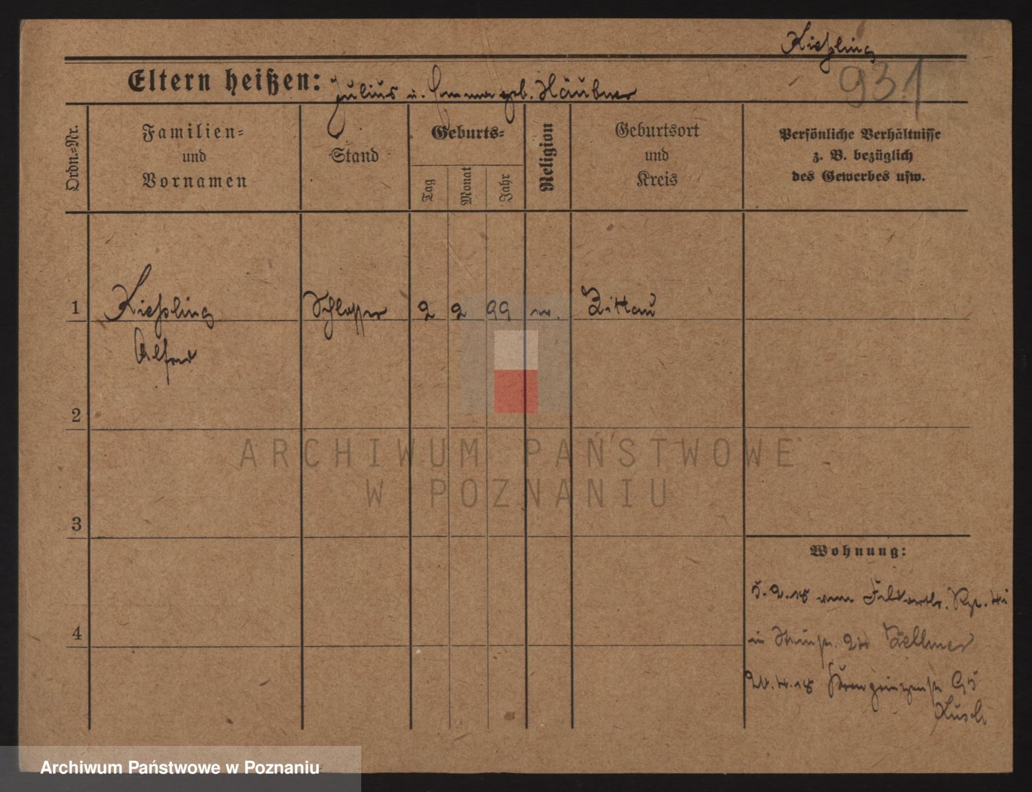 Podgląd karty osobowej dostępny jest po kliknięciu na nazwisko lub ikonkę karty. Można dokonywać powiększenia (ikony na górze) lub przechodzić między kolejnymi skanami (strzałki po bokach).