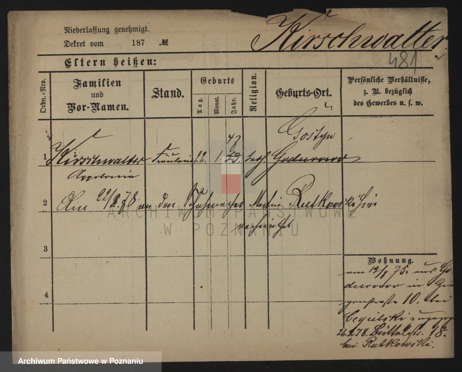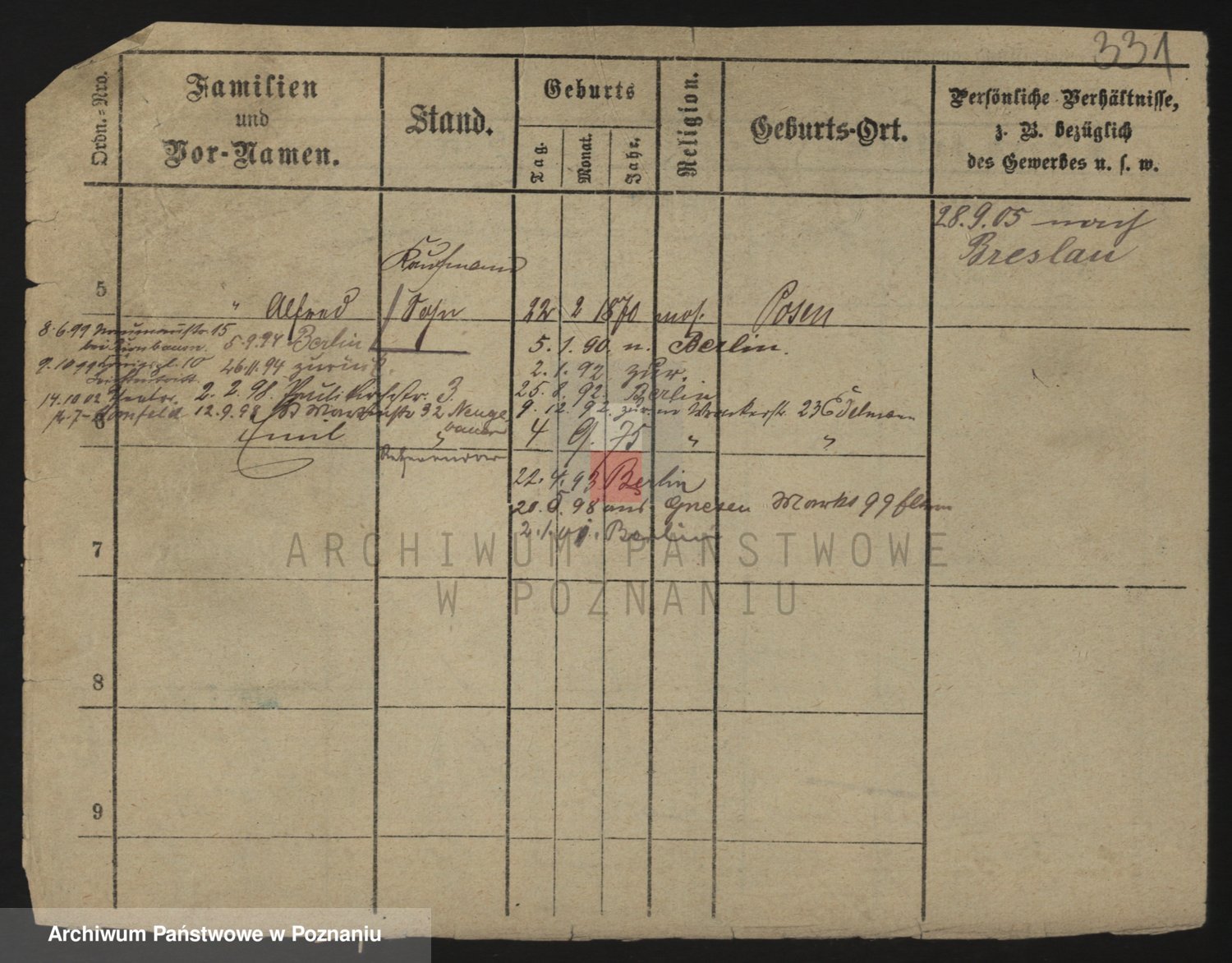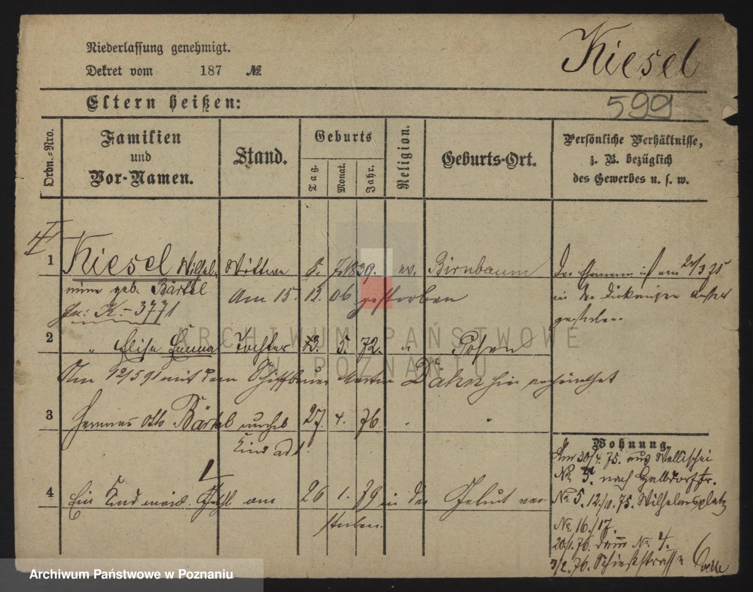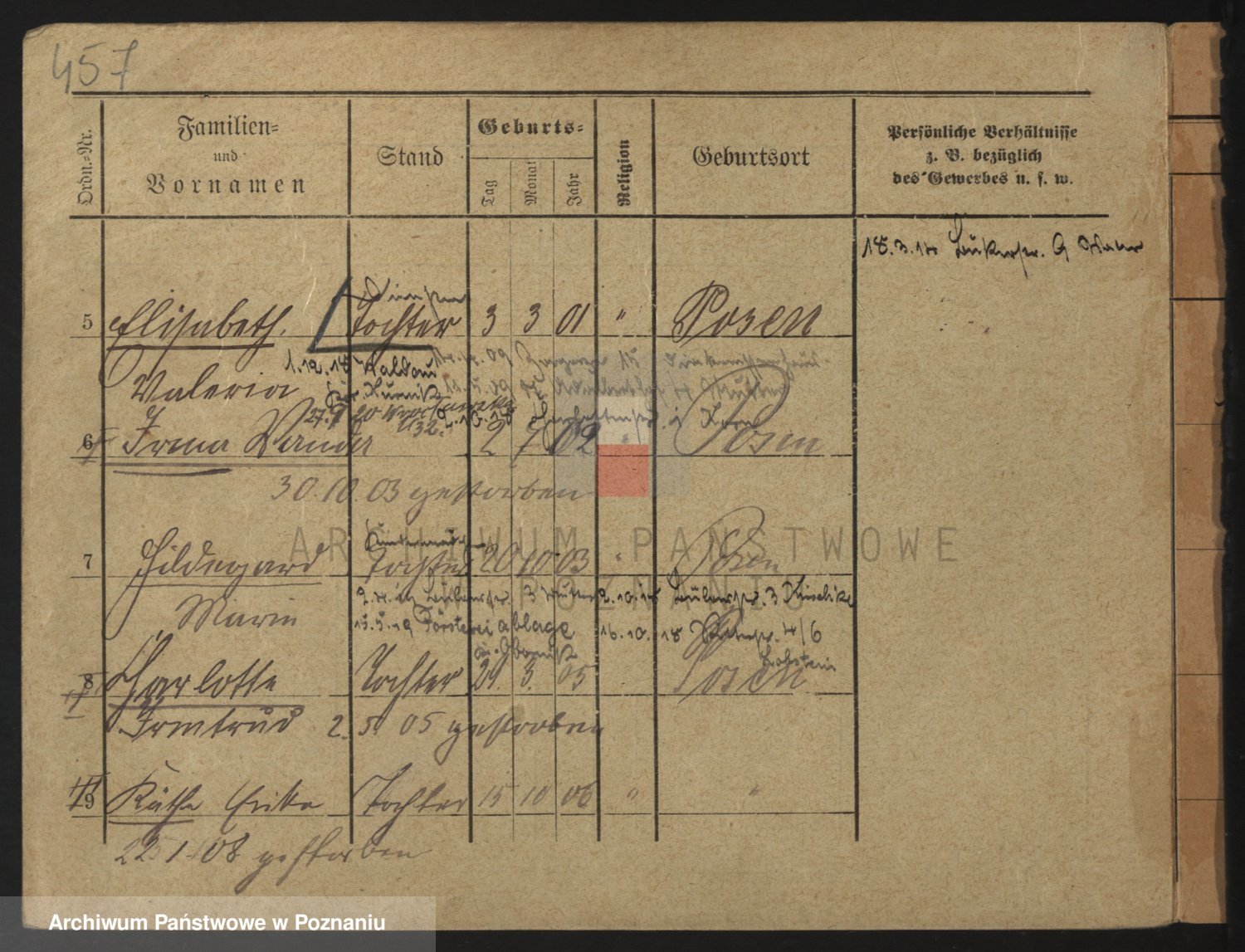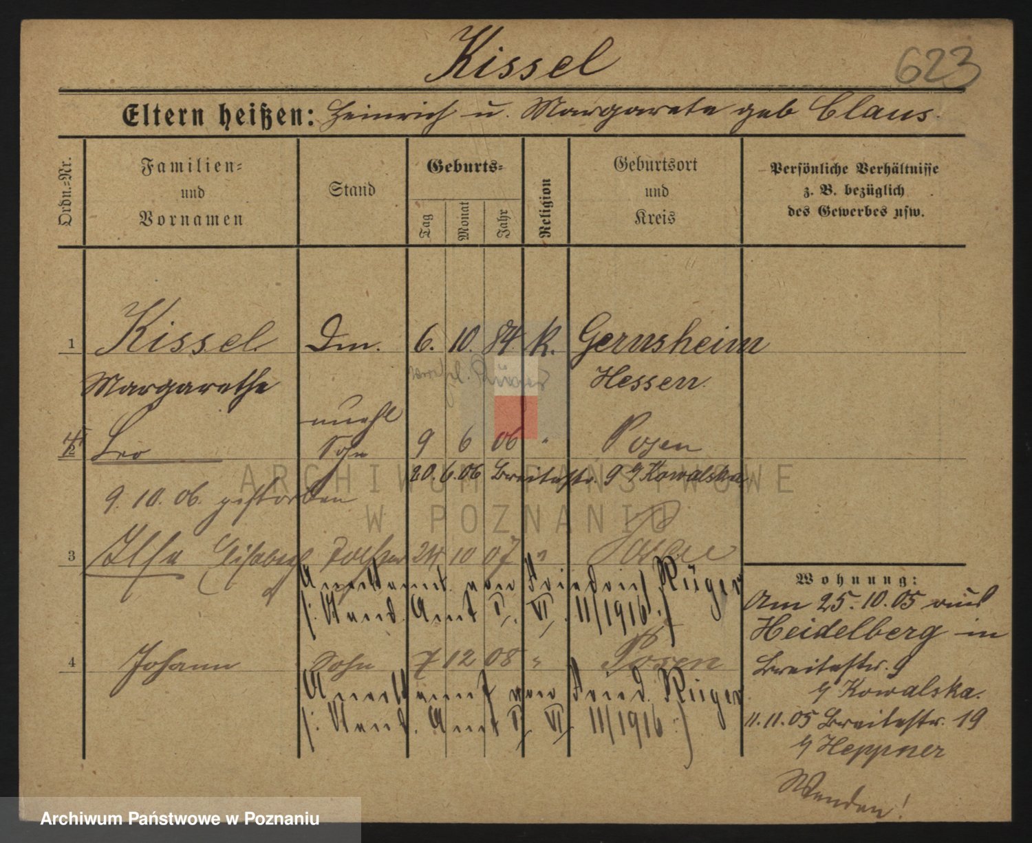 Podgląd karty osobowej dostępny jest po kliknięciu na nazwisko lub ikonkę karty. Można dokonywać powiększenia (ikony na górze) lub przechodzić między kolejnymi skanami (strzałki po bokach).
