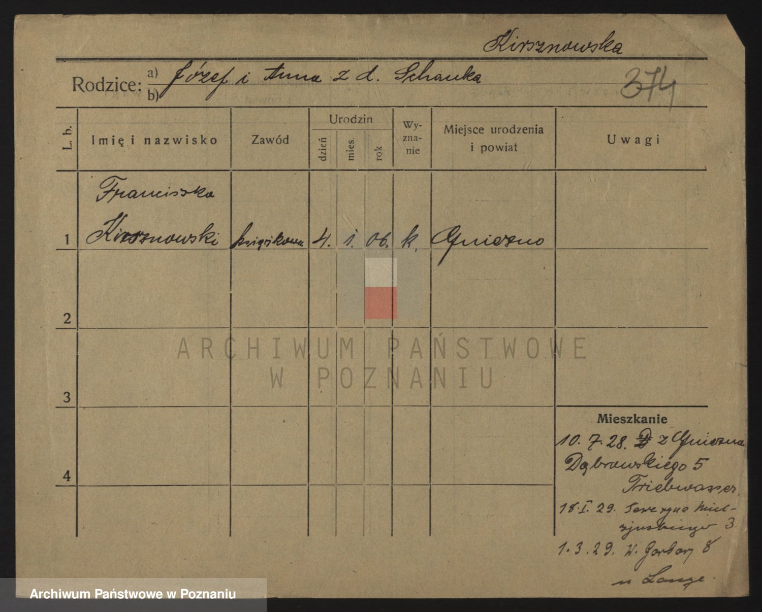Kirsch z d. Jangsch, Franziska
