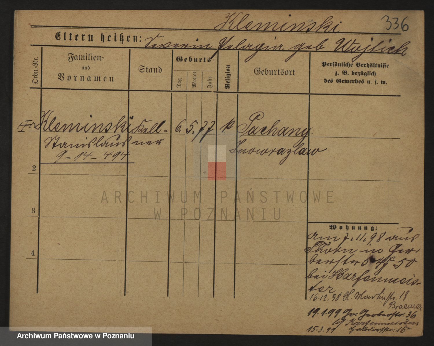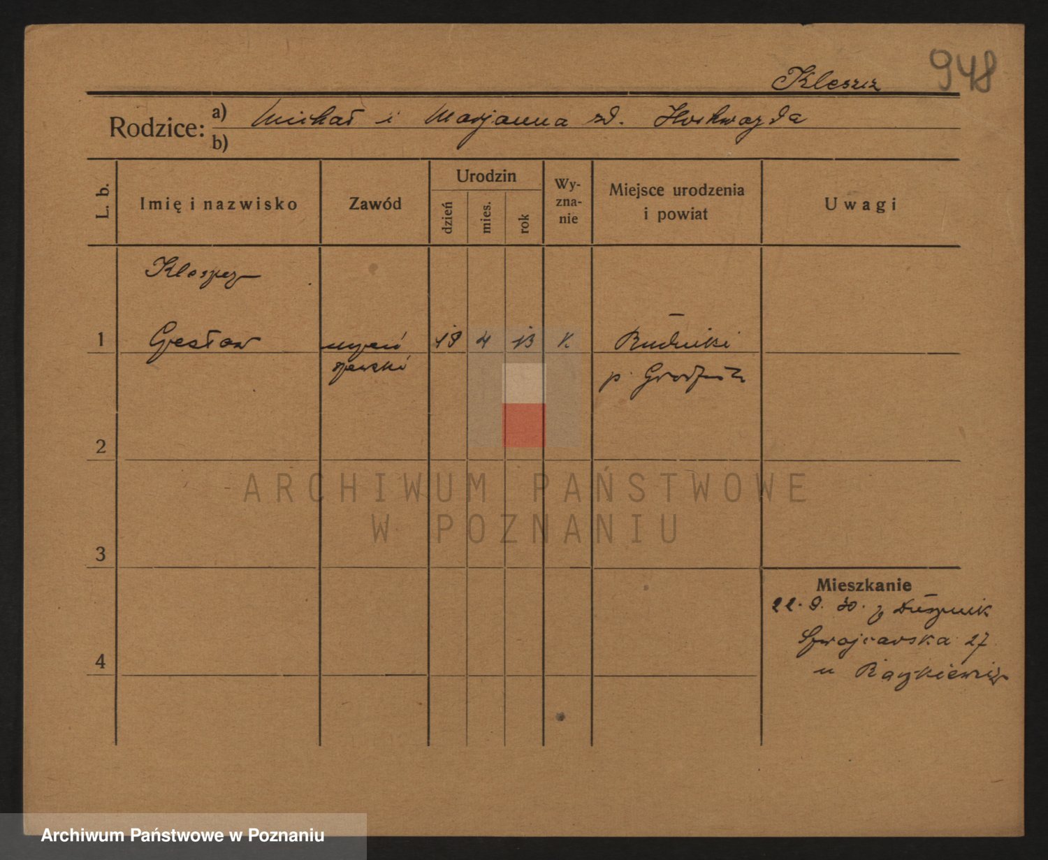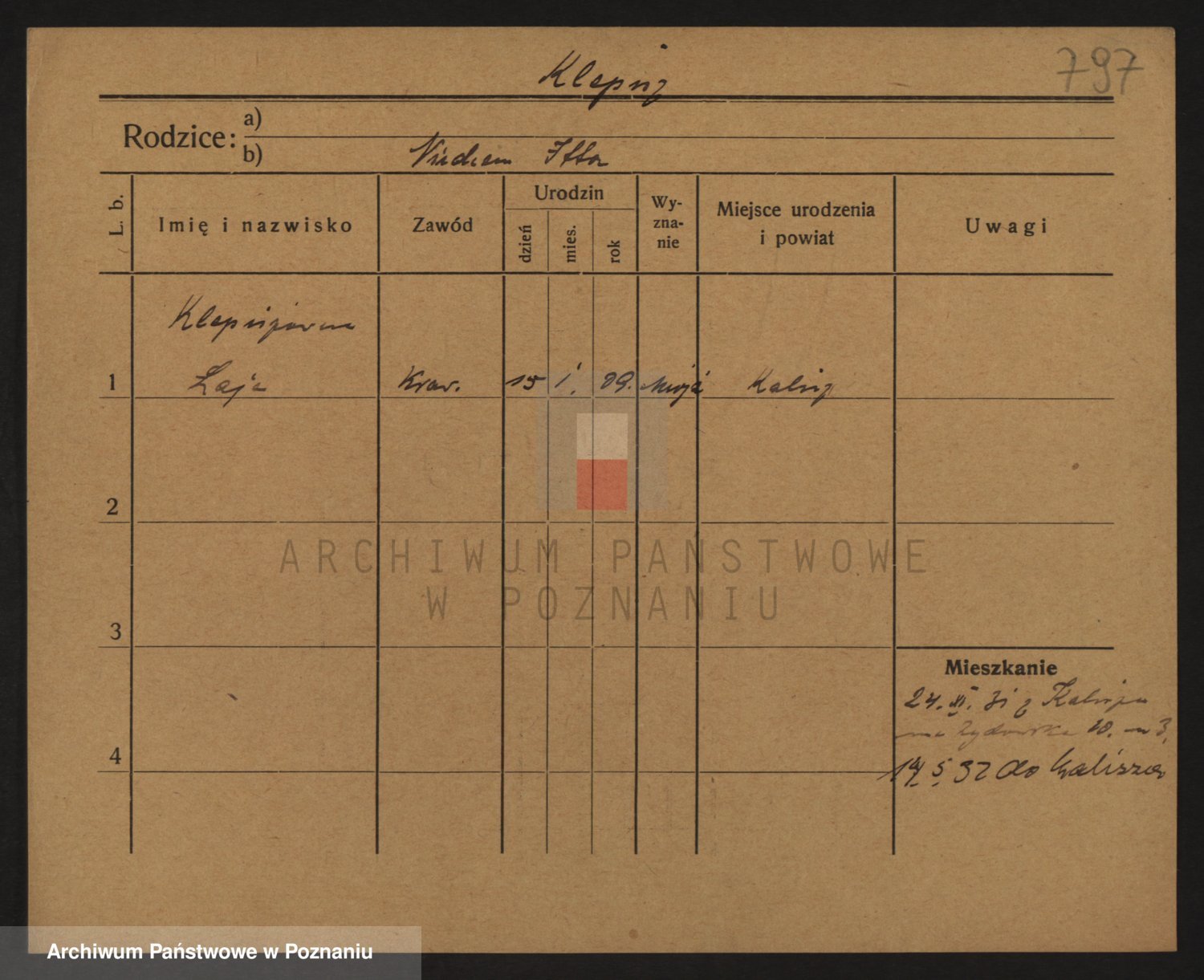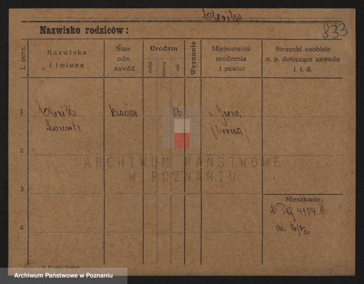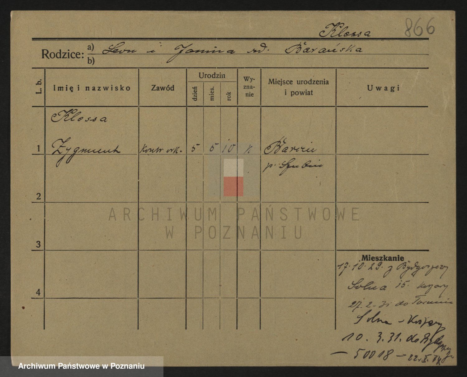 Podgląd karty osobowej dostępny jest po kliknięciu na nazwisko lub ikonkę karty. Można dokonywać powiększenia (ikony na górze) lub przechodzić między kolejnymi skanami (strzałki po bokach).