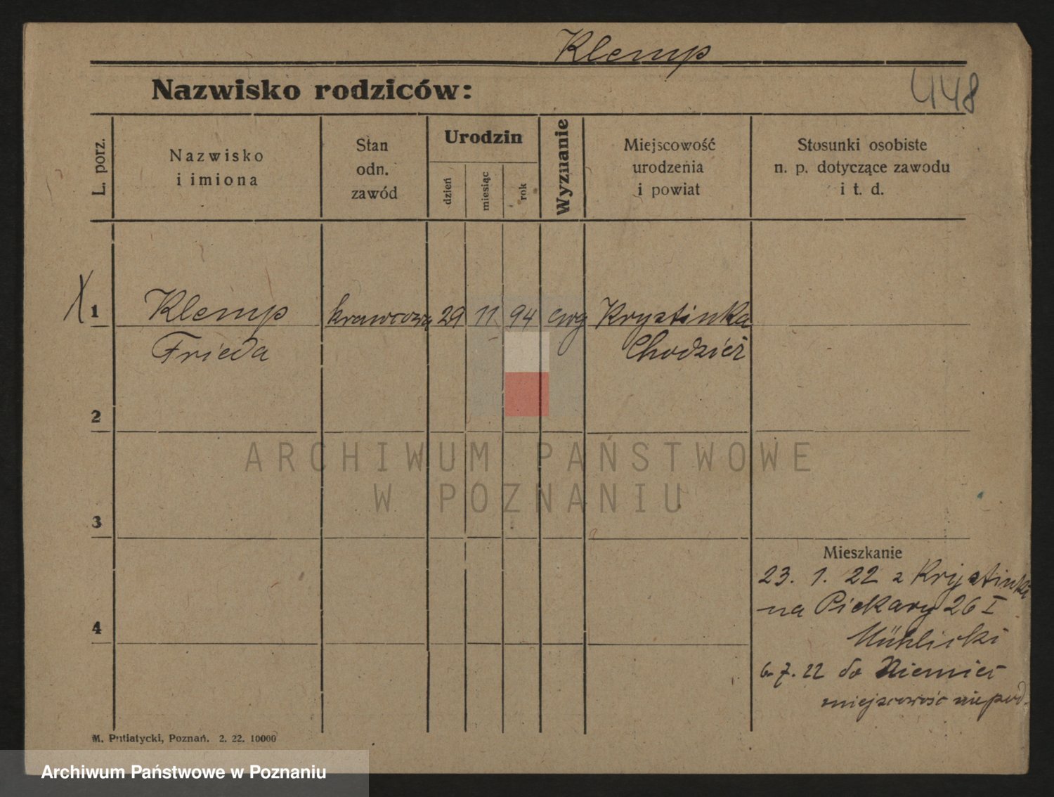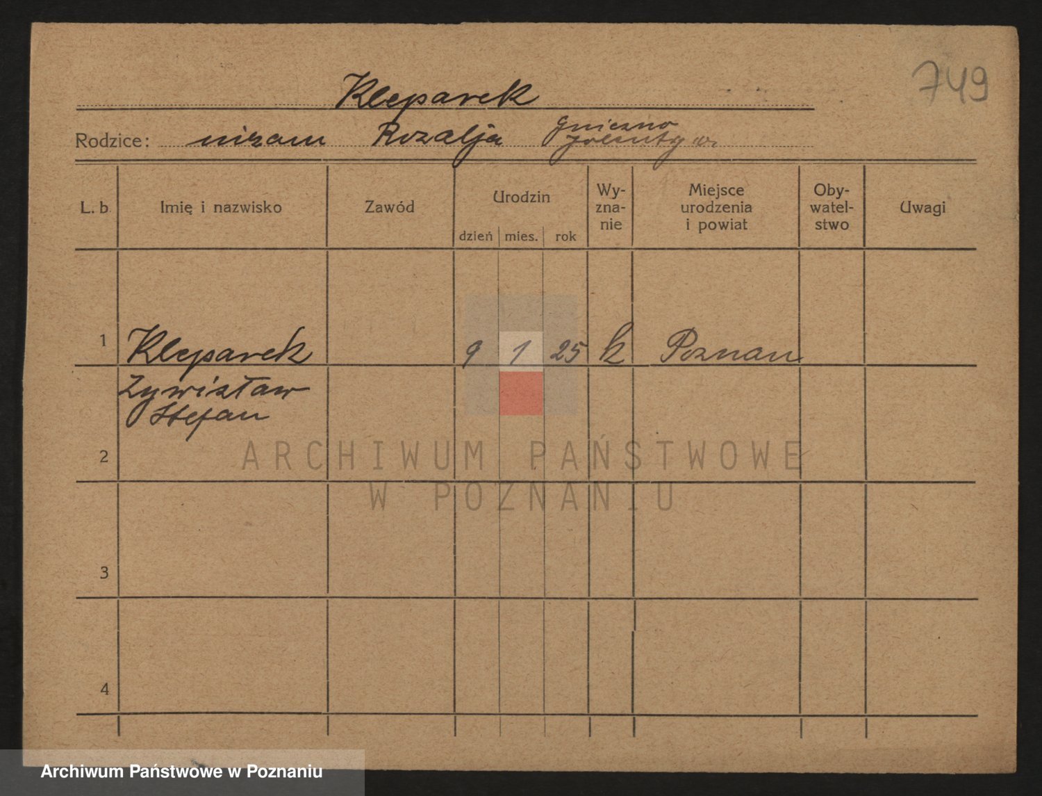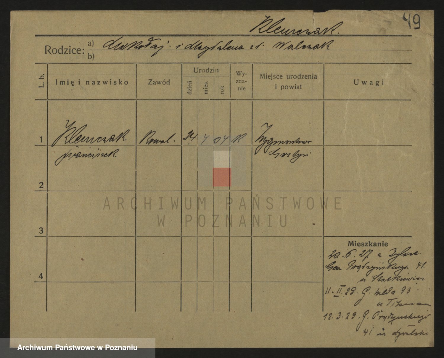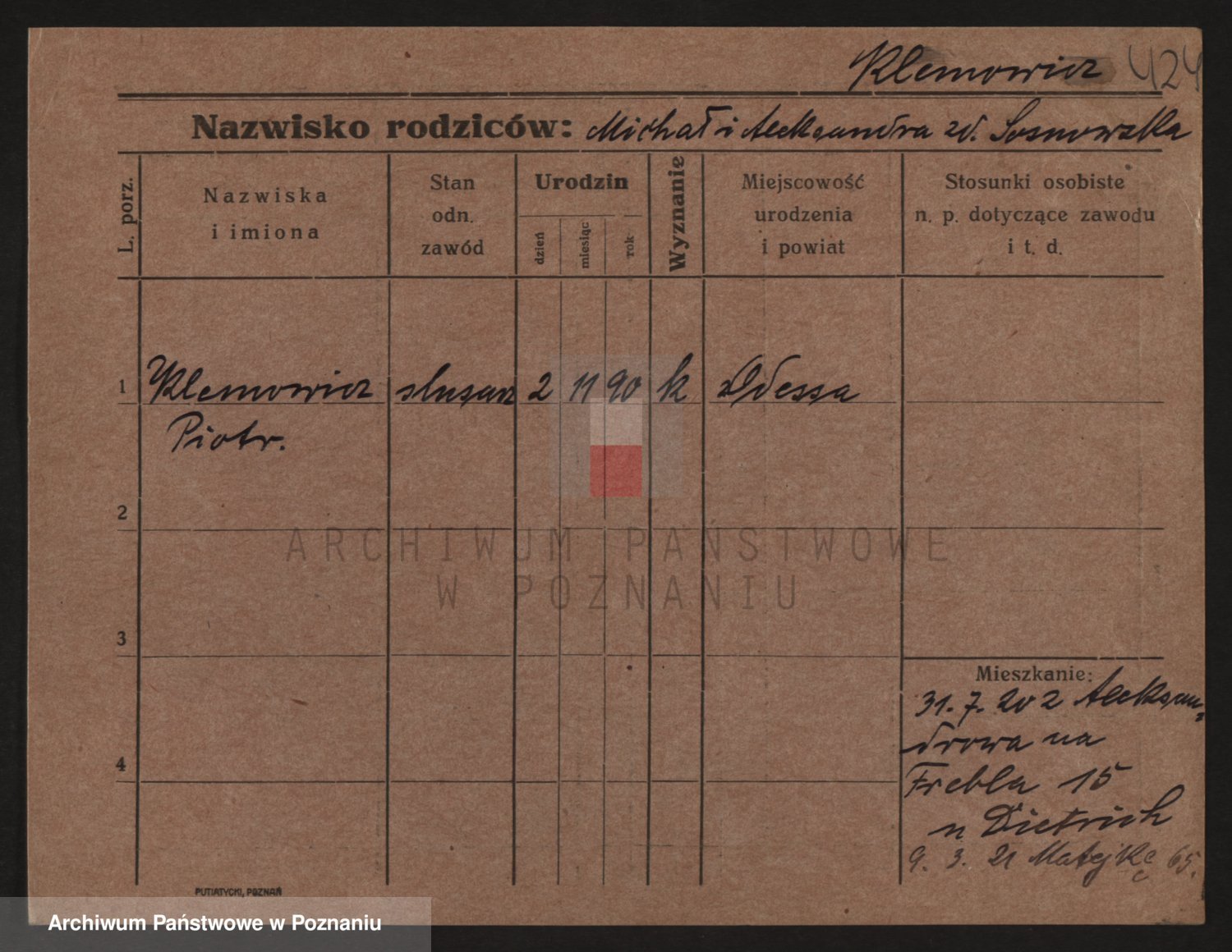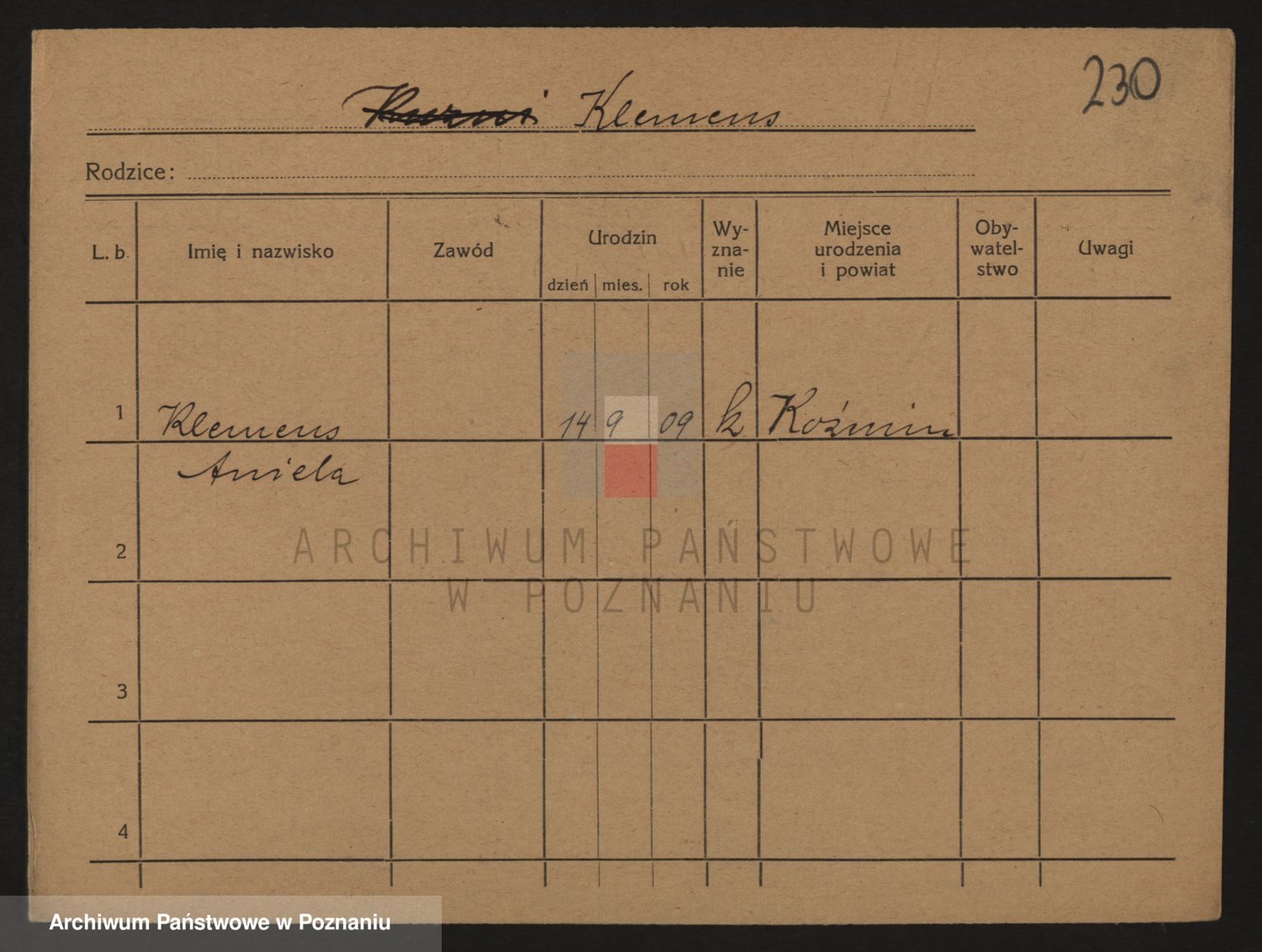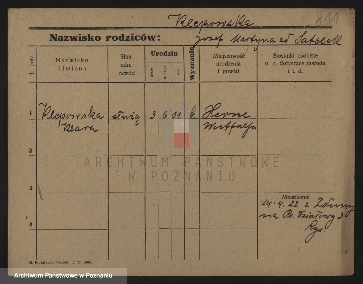Podgląd karty osobowej dostępny jest po kliknięciu na nazwisko lub ikonkę karty. Można dokonywać powiększenia (ikony na górze) lub przechodzić między kolejnymi skanami (strzałki po bokach).
