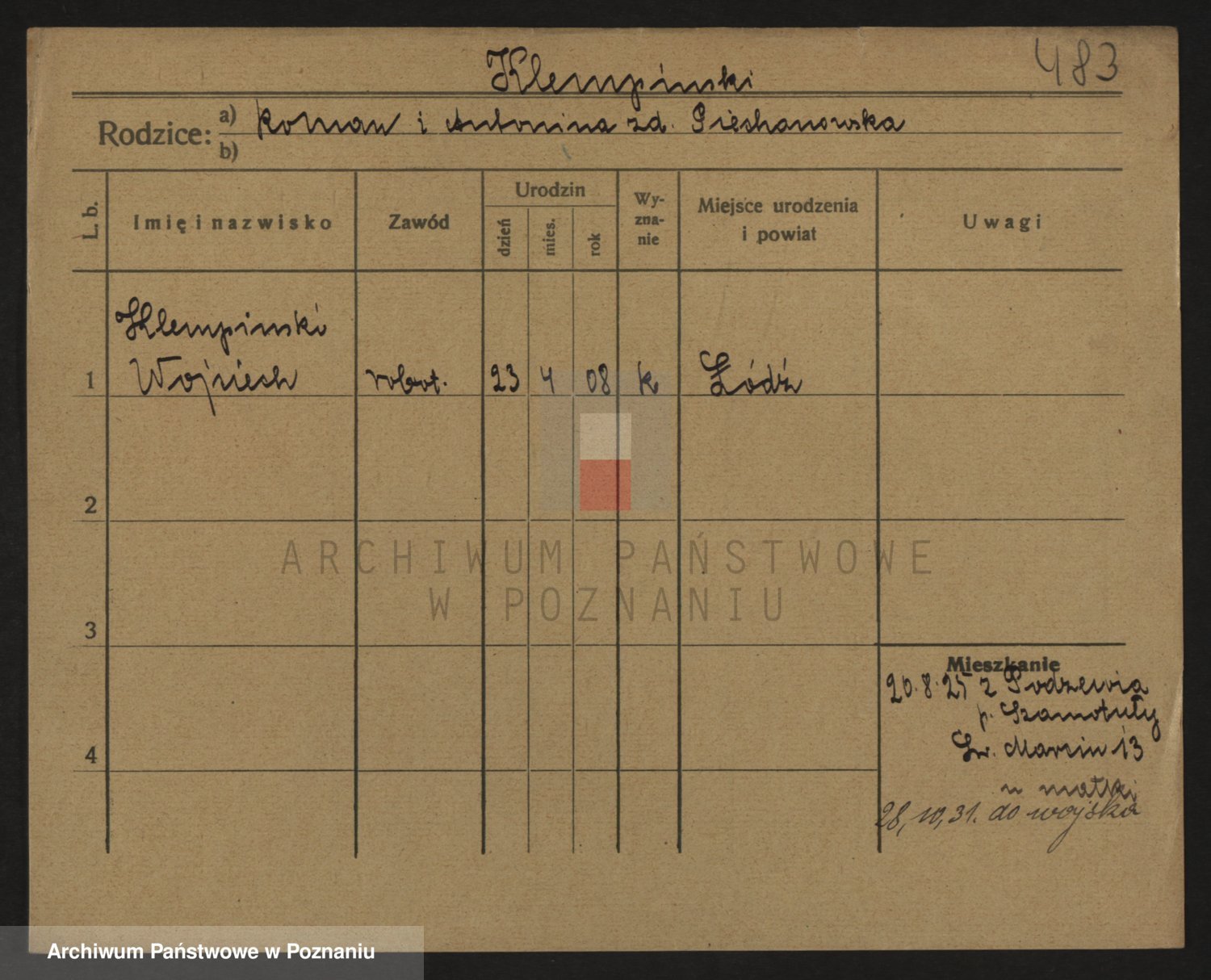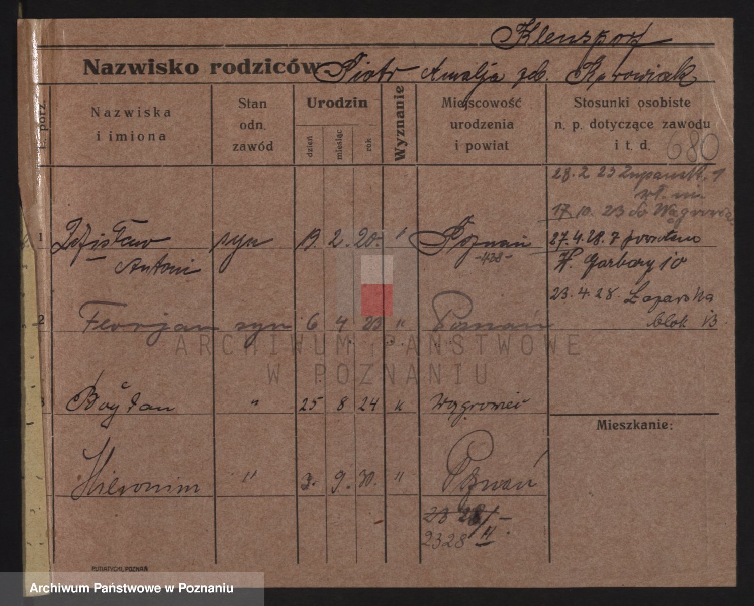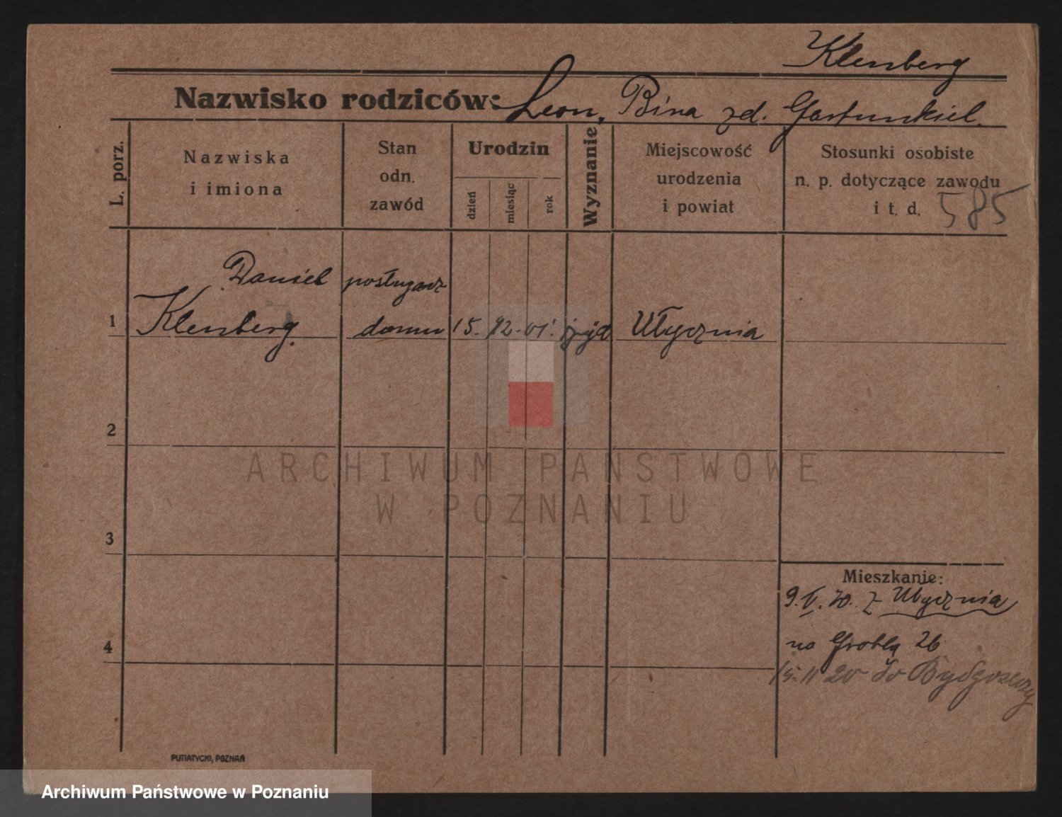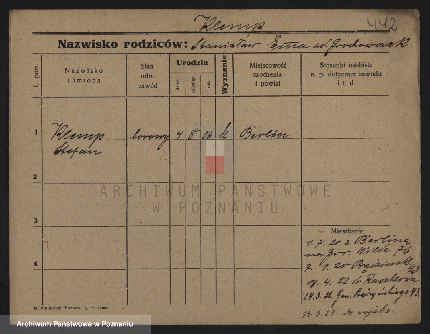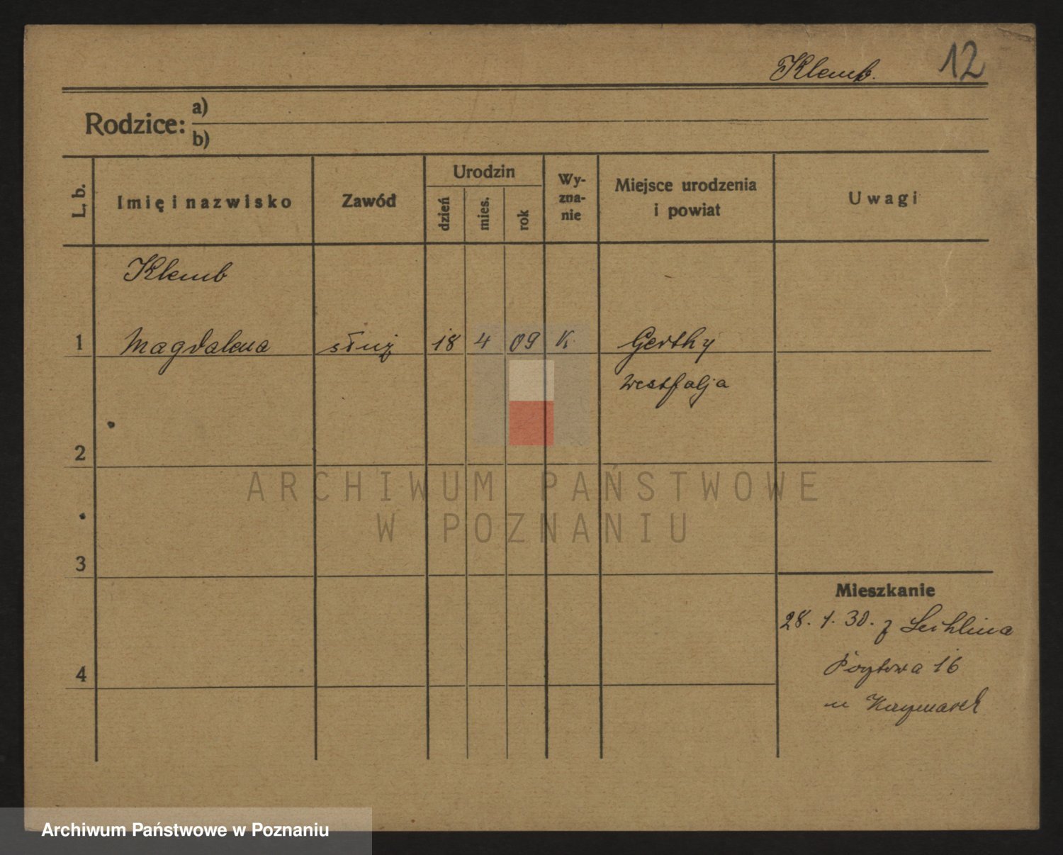 Podgląd karty osobowej dostępny jest po kliknięciu na nazwisko lub ikonkę karty. Można dokonywać powiększenia (ikony na górze) lub przechodzić między kolejnymi skanami (strzałki po bokach).