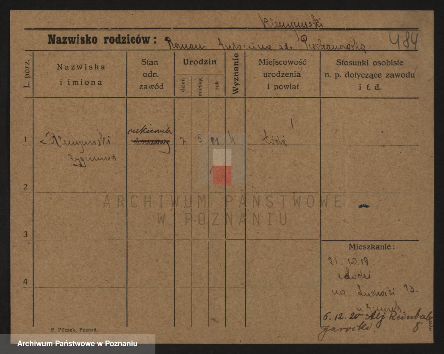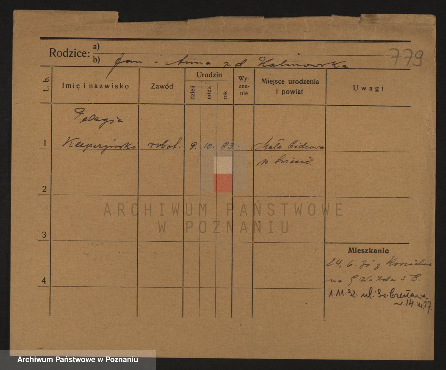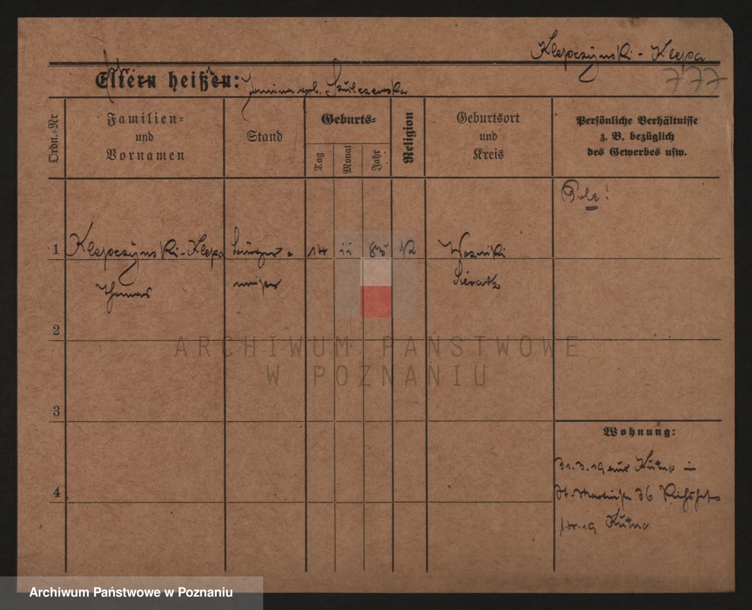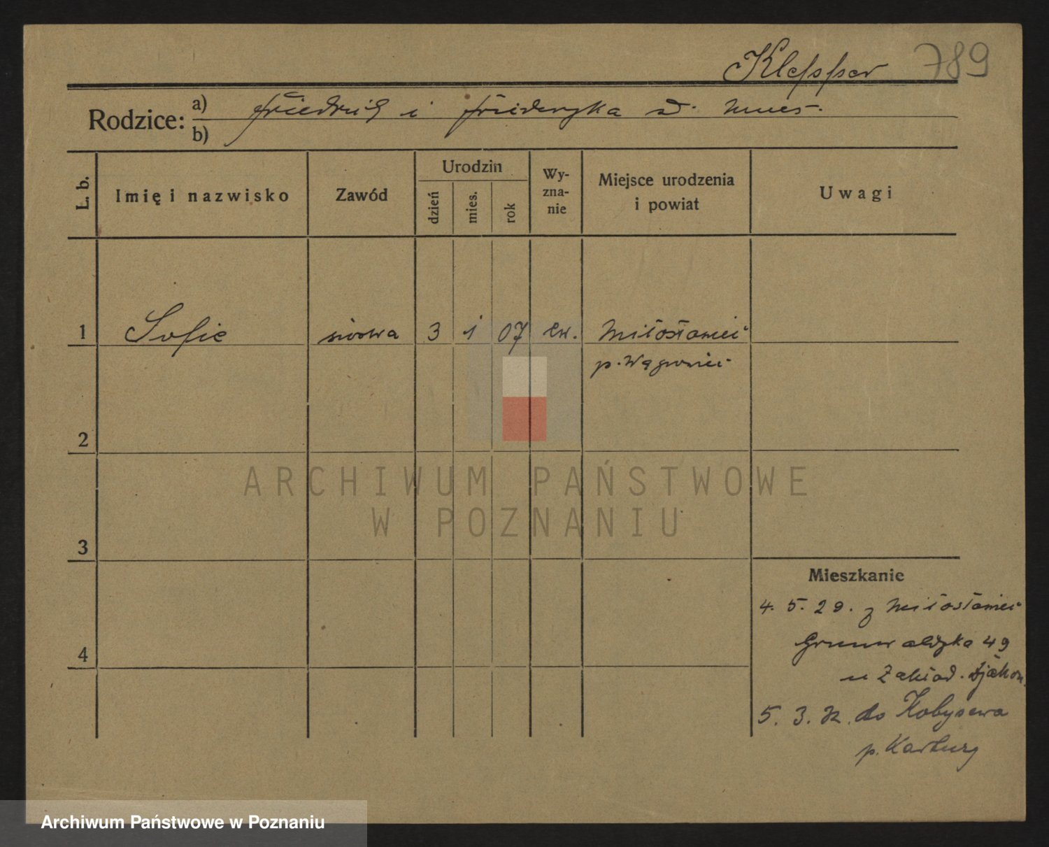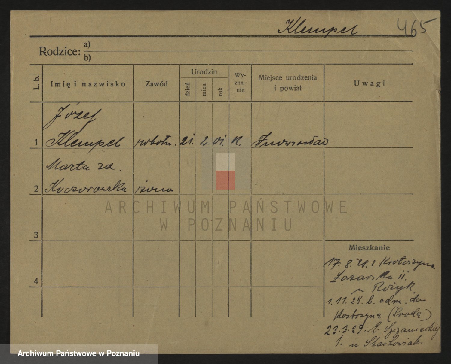 Podgląd karty osobowej dostępny jest po kliknięciu na nazwisko lub ikonkę karty. Można dokonywać powiększenia (ikony na górze) lub przechodzić między kolejnymi skanami (strzałki po bokach).