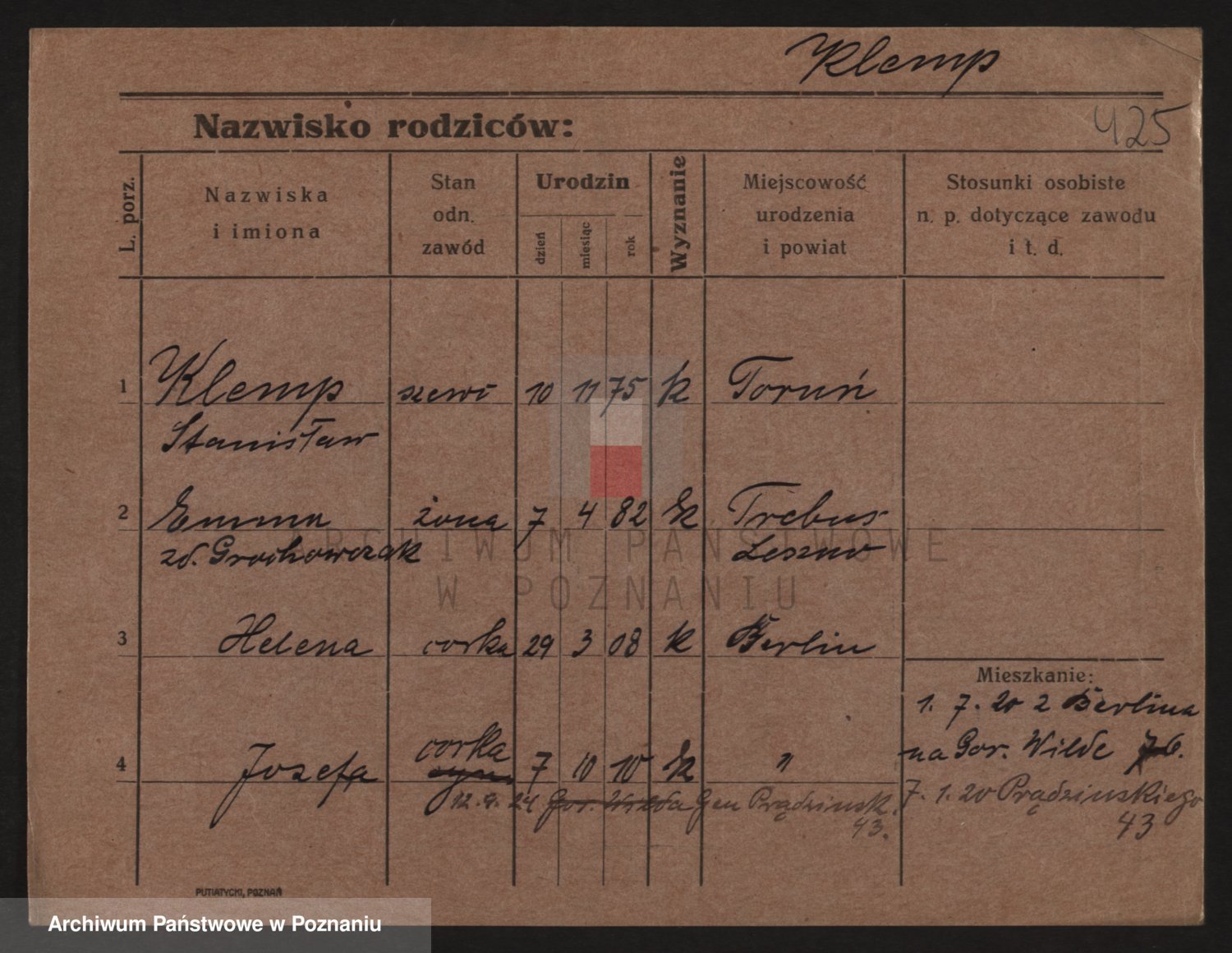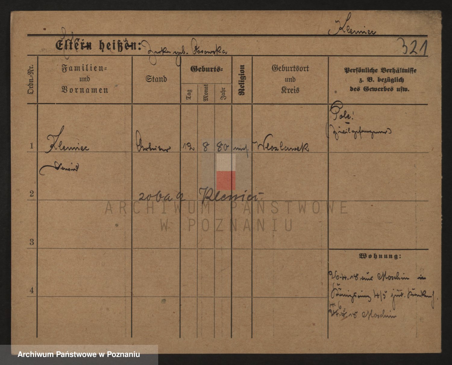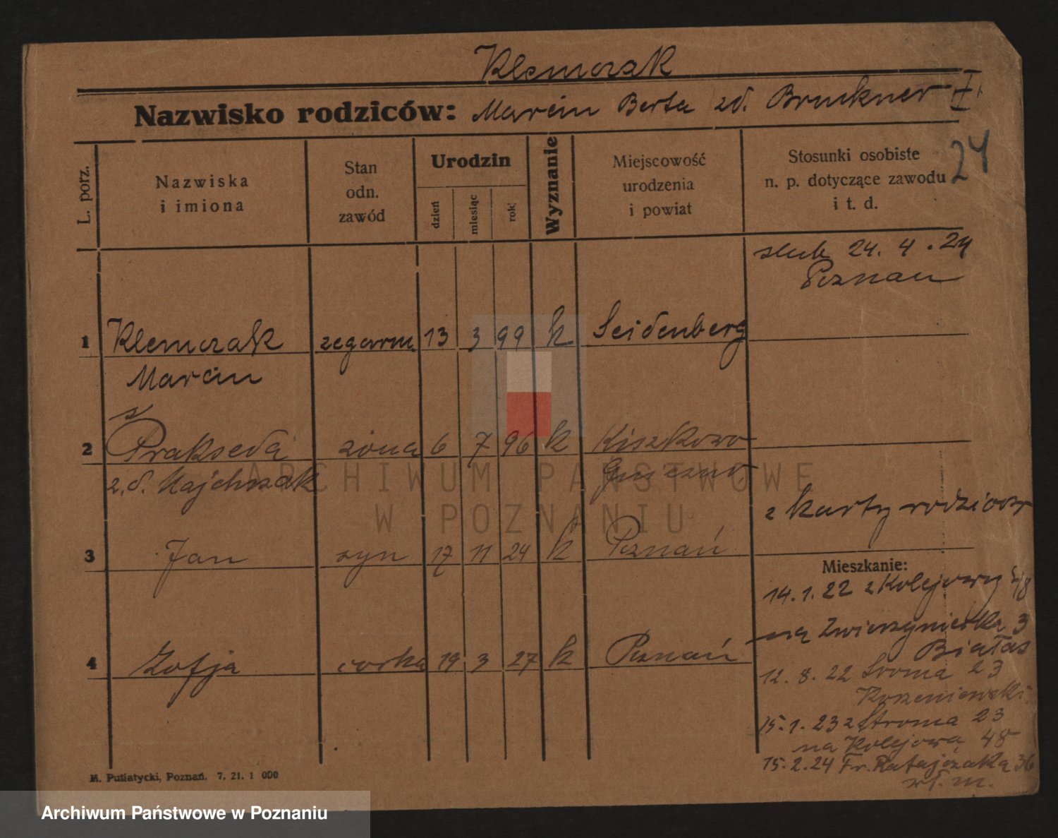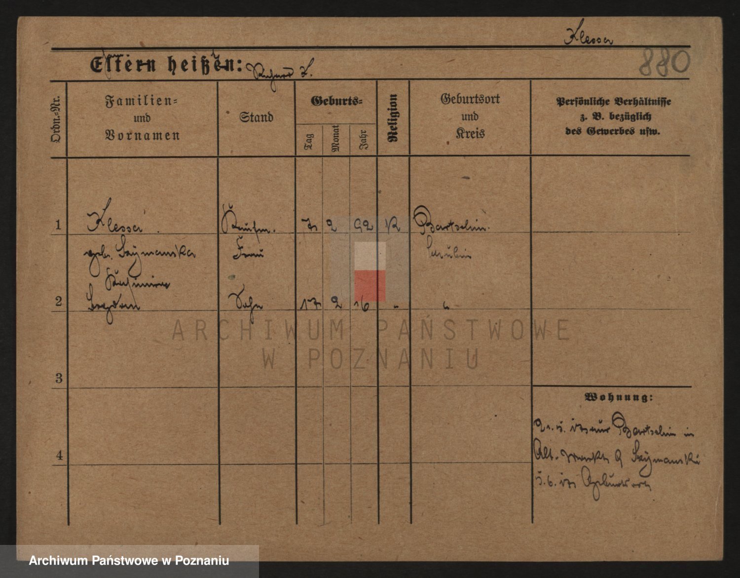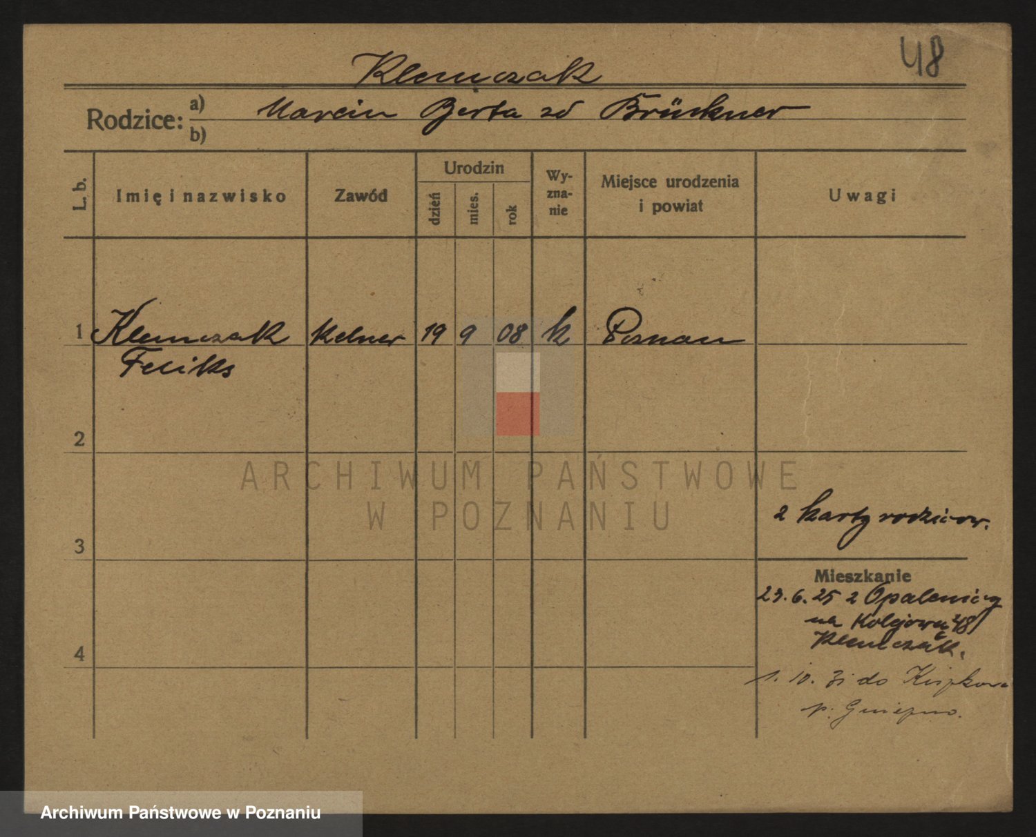 Podgląd karty osobowej dostępny jest po kliknięciu na nazwisko lub ikonkę karty. Można dokonywać powiększenia (ikony na górze) lub przechodzić między kolejnymi skanami (strzałki po bokach).