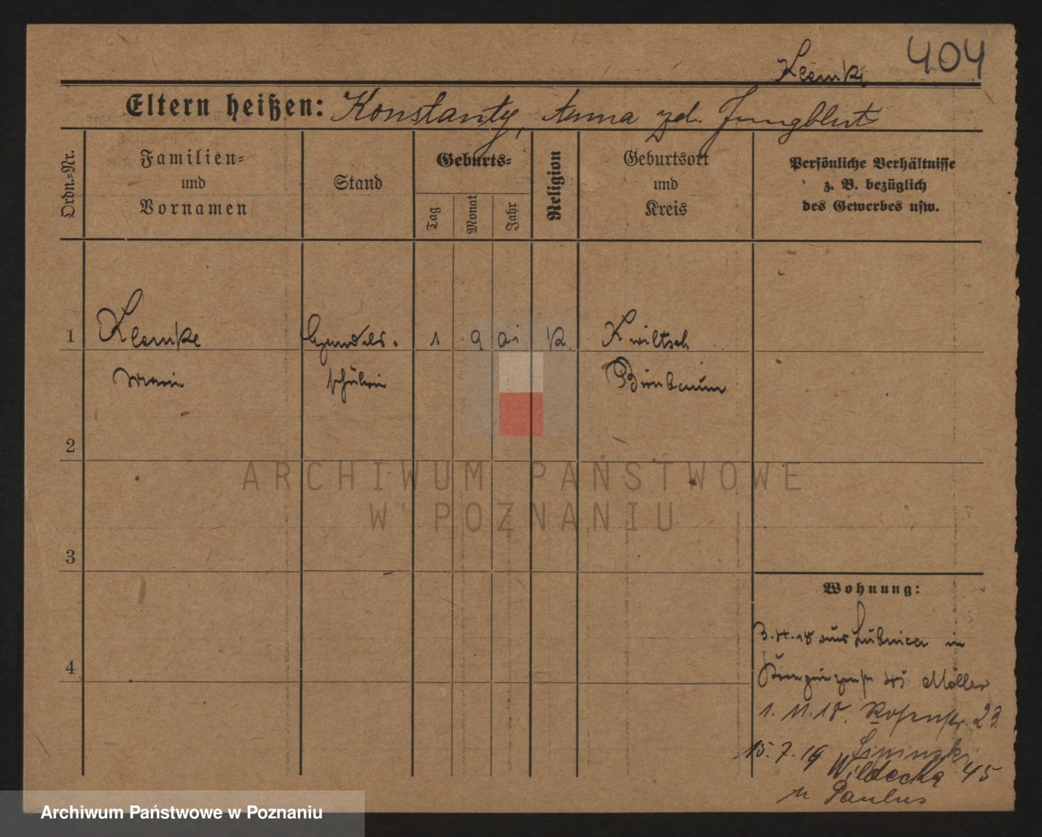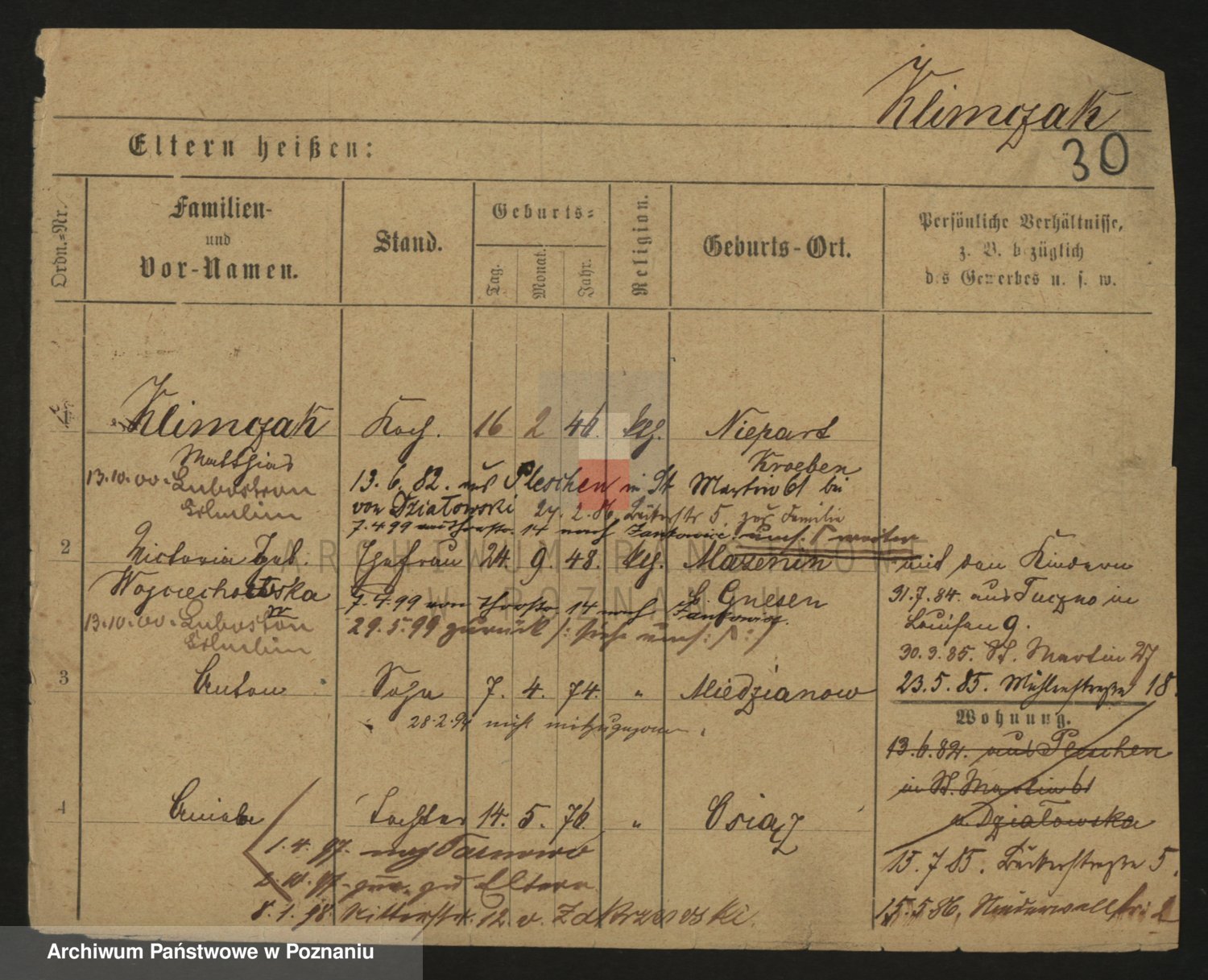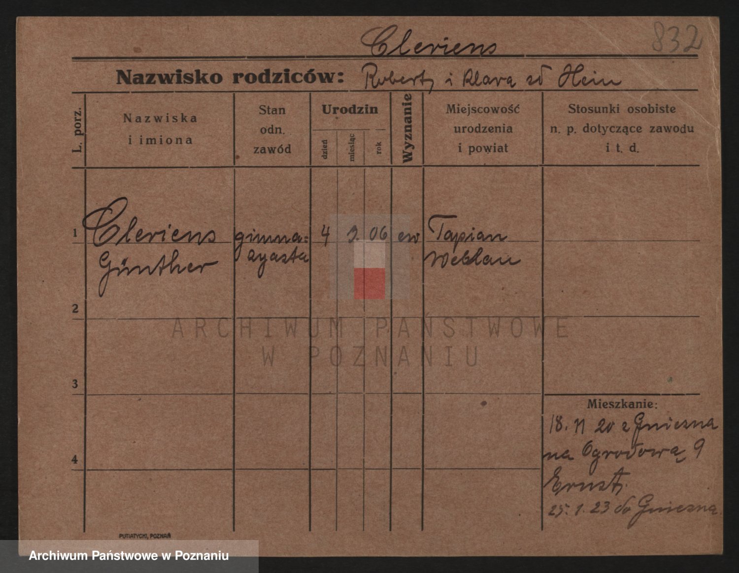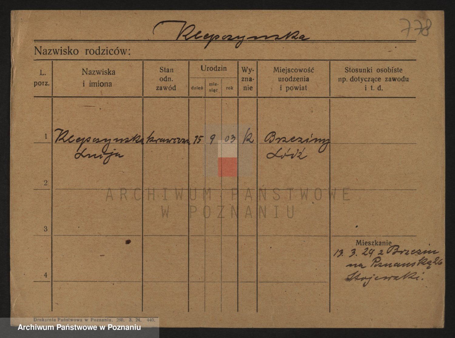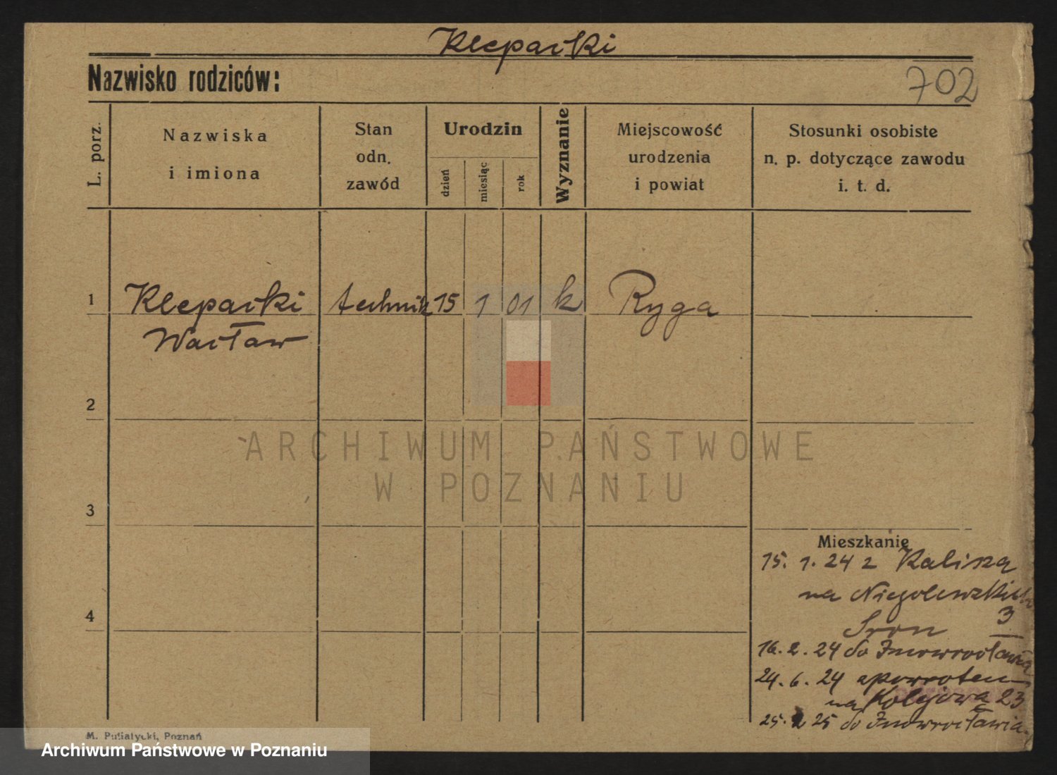 Podgląd karty osobowej dostępny jest po kliknięciu na nazwisko lub ikonkę karty. Można dokonywać powiększenia (ikony na górze) lub przechodzić między kolejnymi skanami (strzałki po bokach).