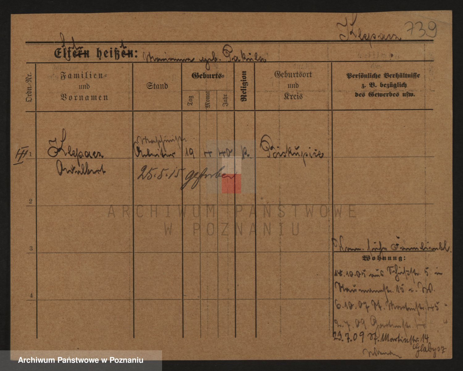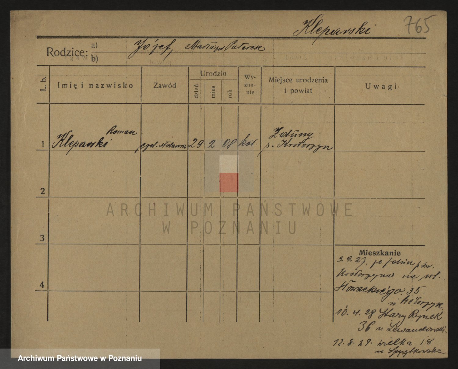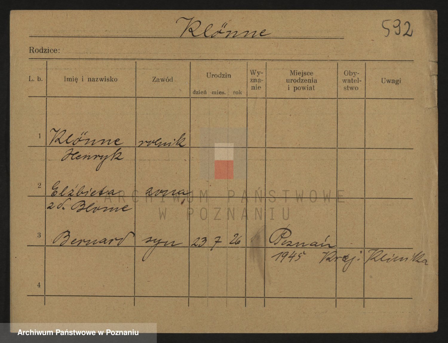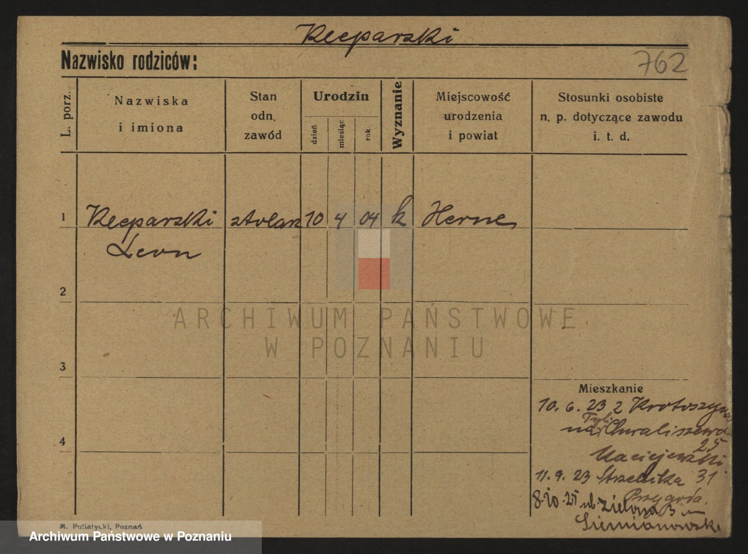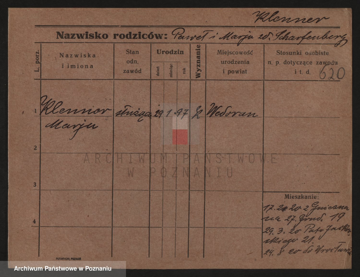 Podgląd karty osobowej dostępny jest po kliknięciu na nazwisko lub ikonkę karty. Można dokonywać powiększenia (ikony na górze) lub przechodzić między kolejnymi skanami (strzałki po bokach).
