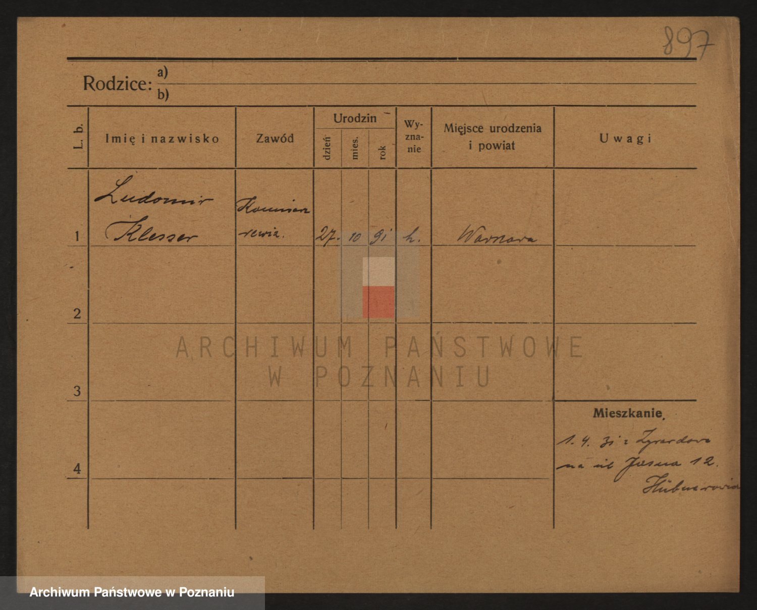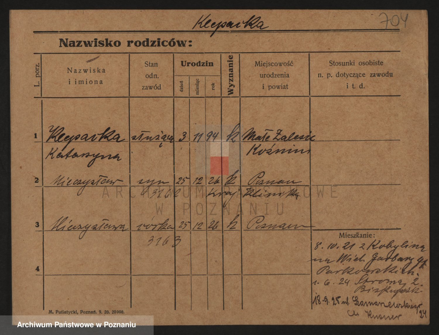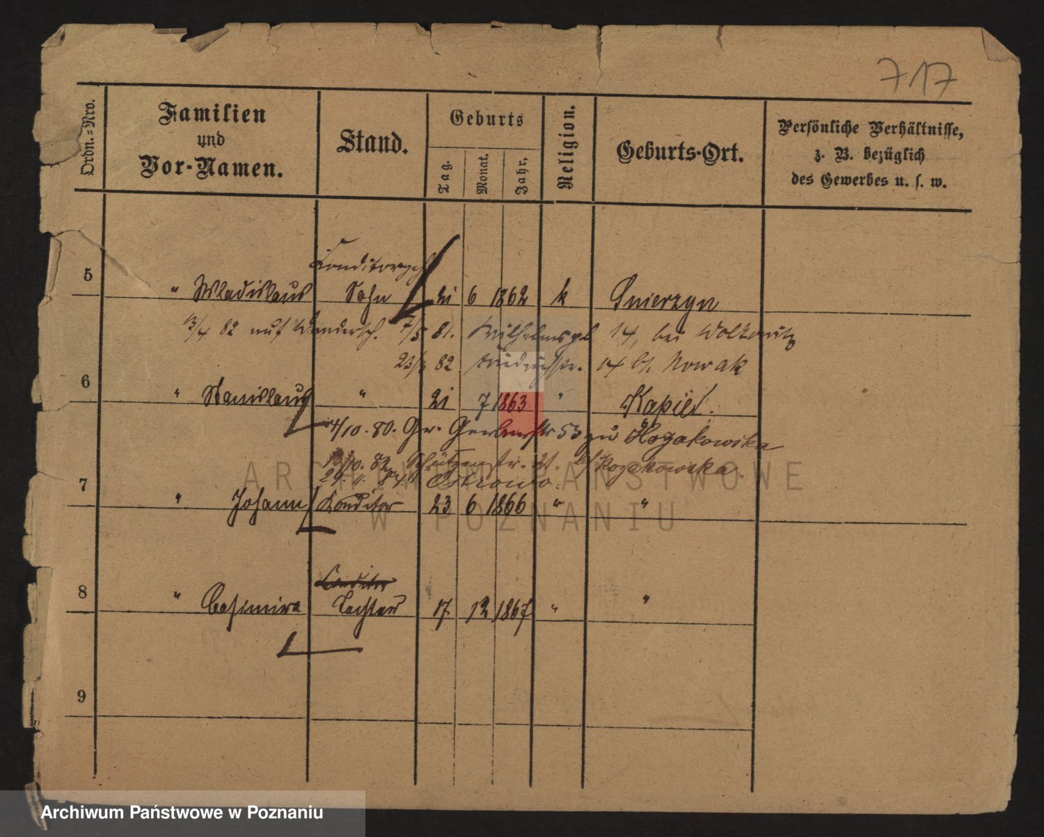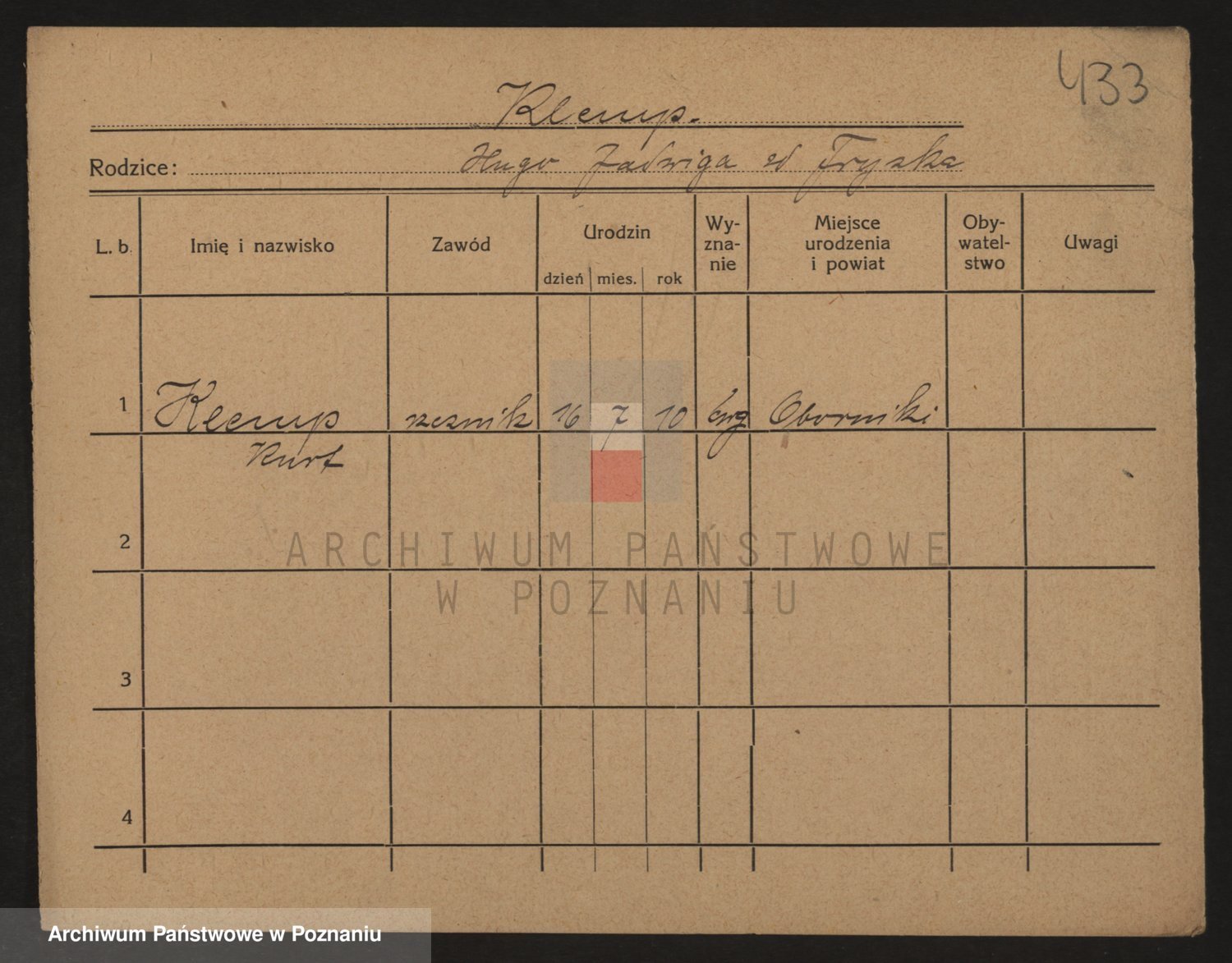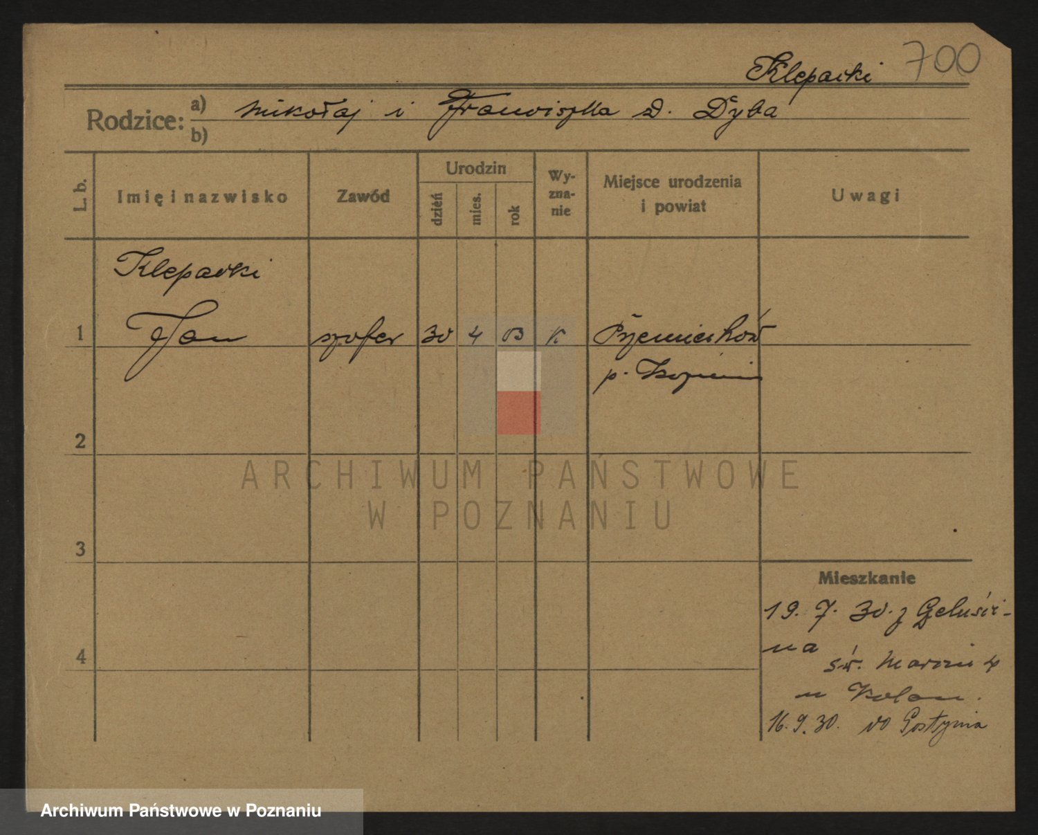 Podgląd karty osobowej dostępny jest po kliknięciu na nazwisko lub ikonkę karty. Można dokonywać powiększenia (ikony na górze) lub przechodzić między kolejnymi skanami (strzałki po bokach).