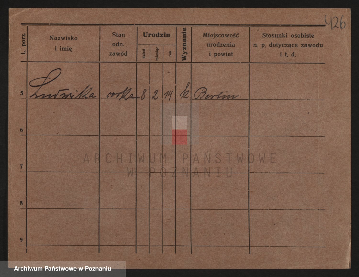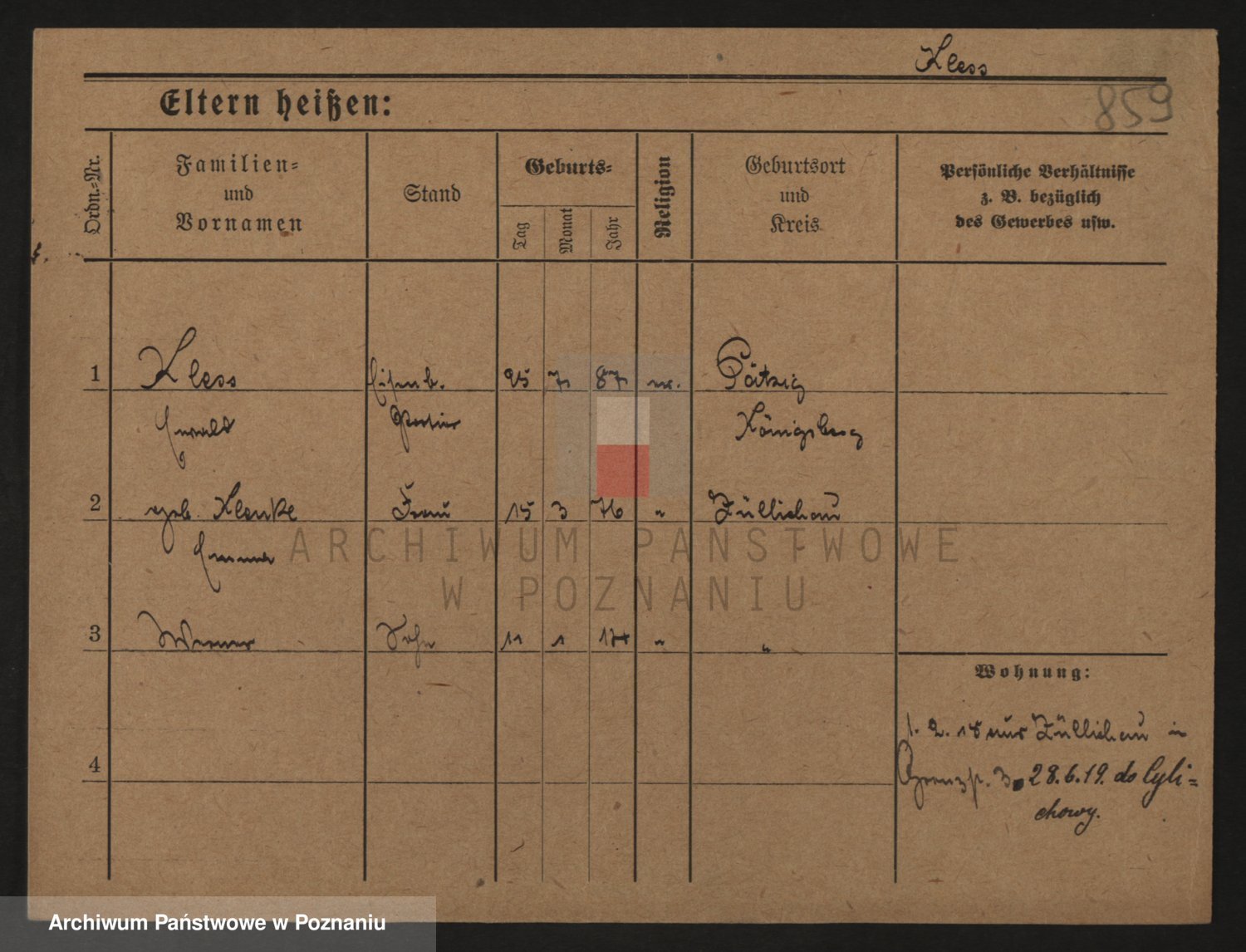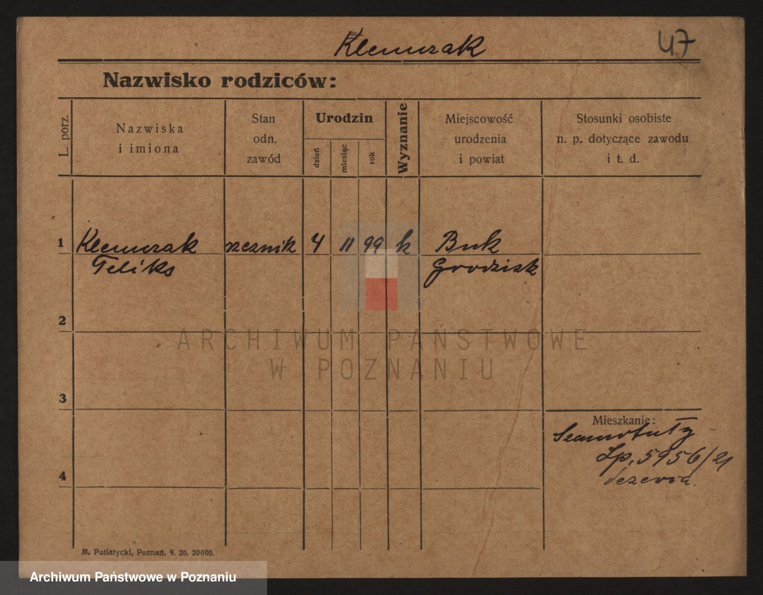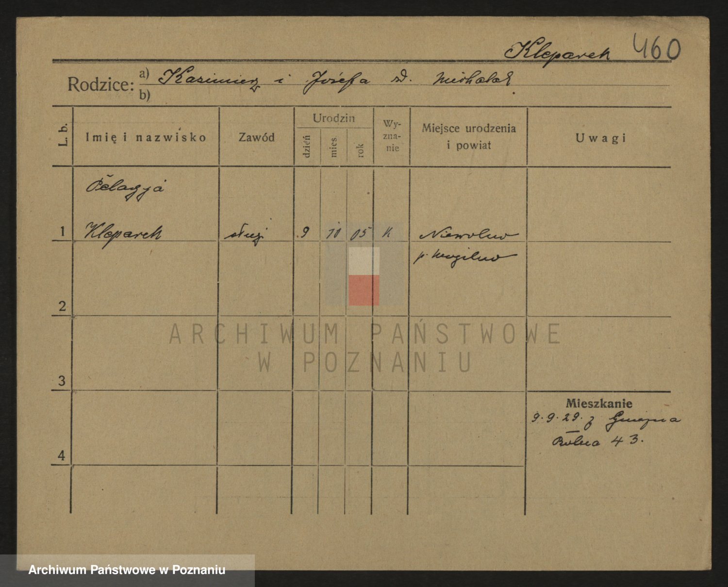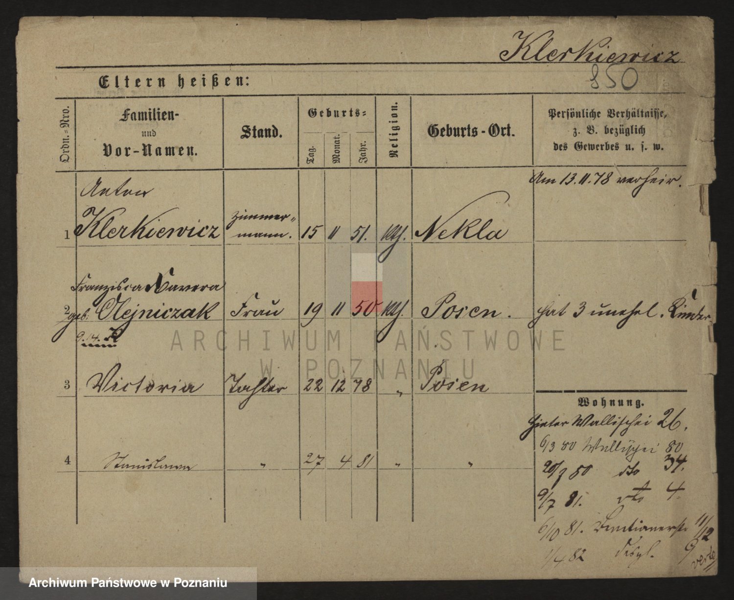 Podgląd karty osobowej dostępny jest po kliknięciu na nazwisko lub ikonkę karty. Można dokonywać powiększenia (ikony na górze) lub przechodzić między kolejnymi skanami (strzałki po bokach).