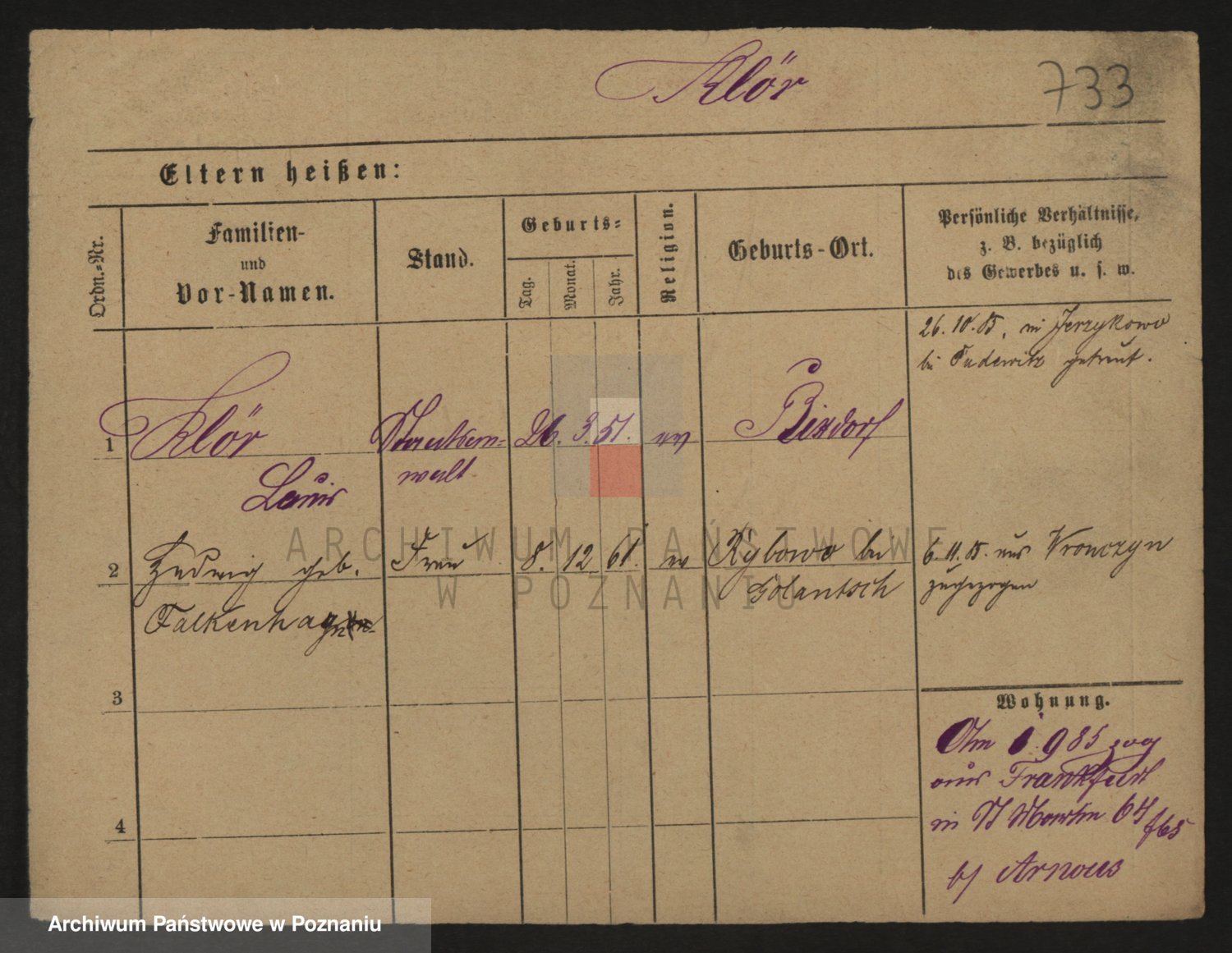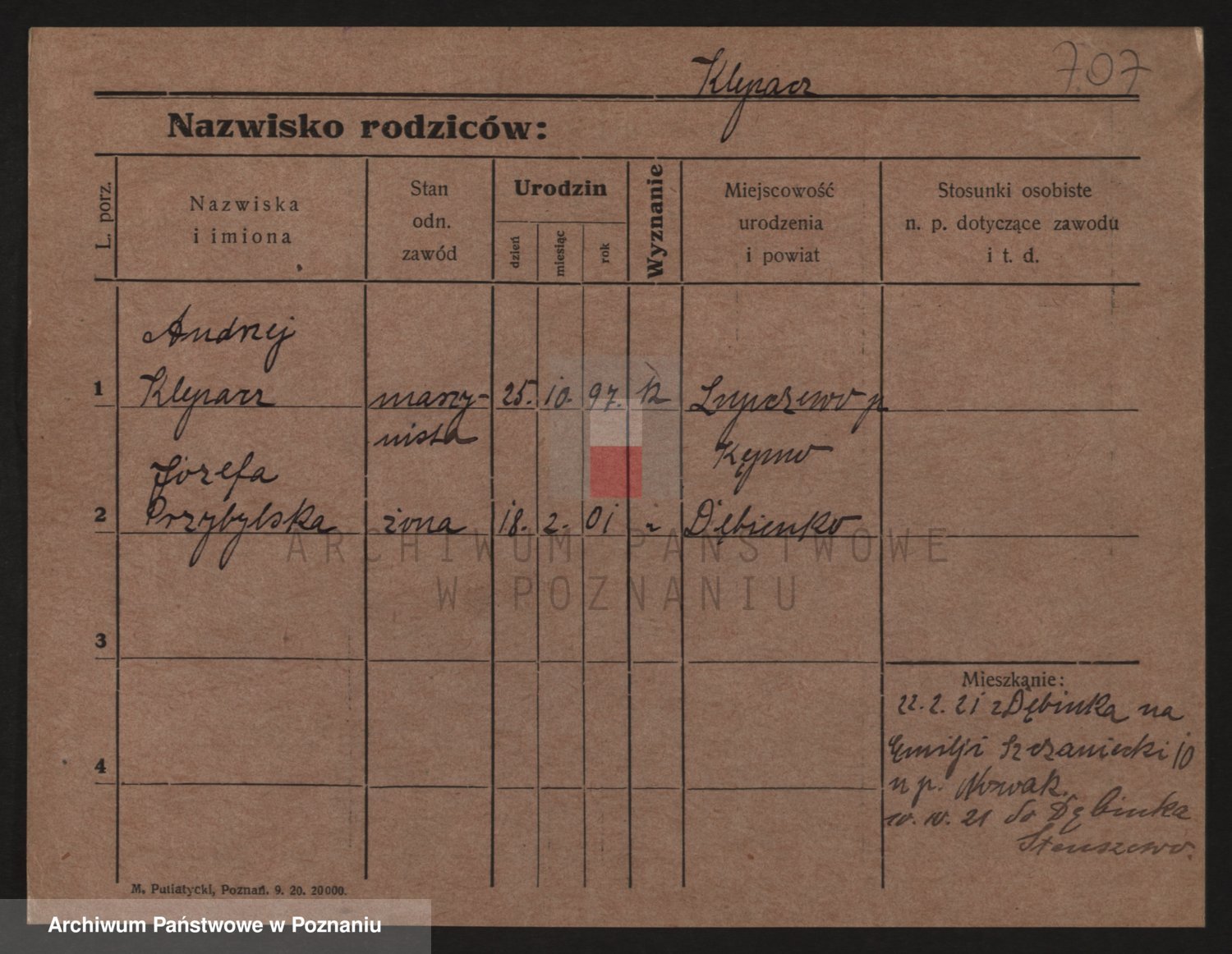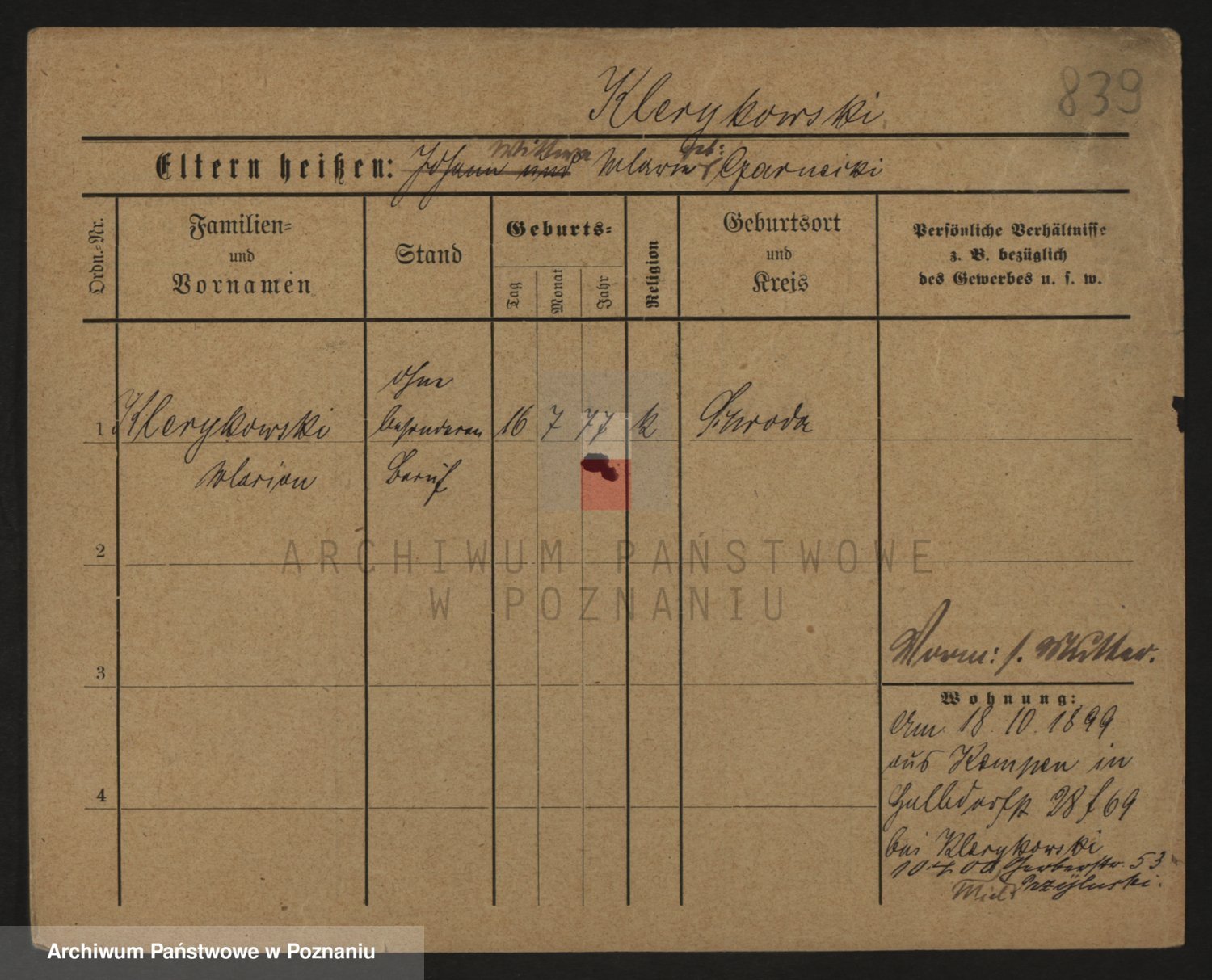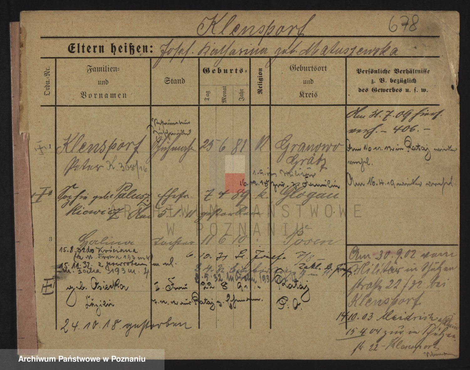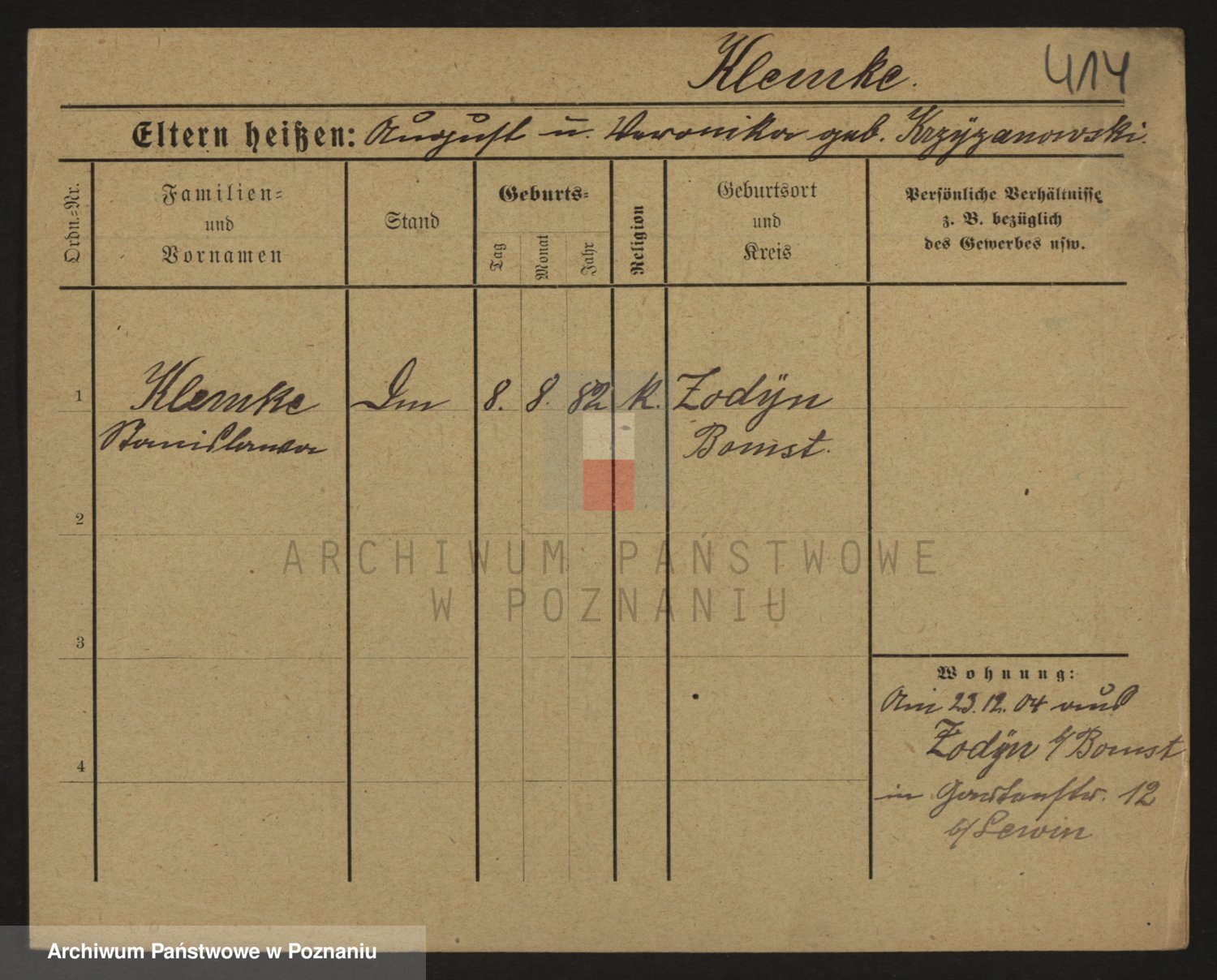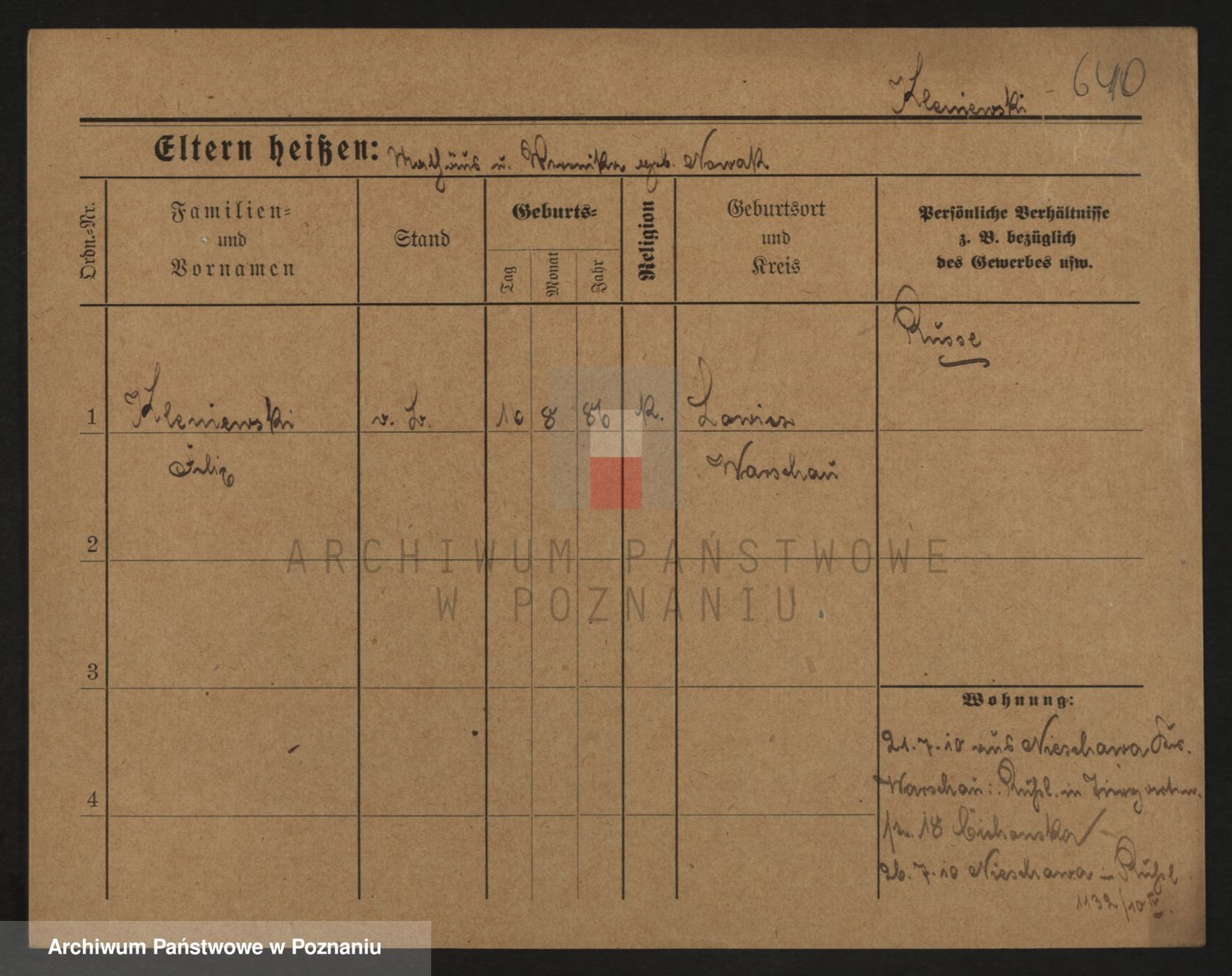 Podgląd karty osobowej dostępny jest po kliknięciu na nazwisko lub ikonkę karty. Można dokonywać powiększenia (ikony na górze) lub przechodzić między kolejnymi skanami (strzałki po bokach).