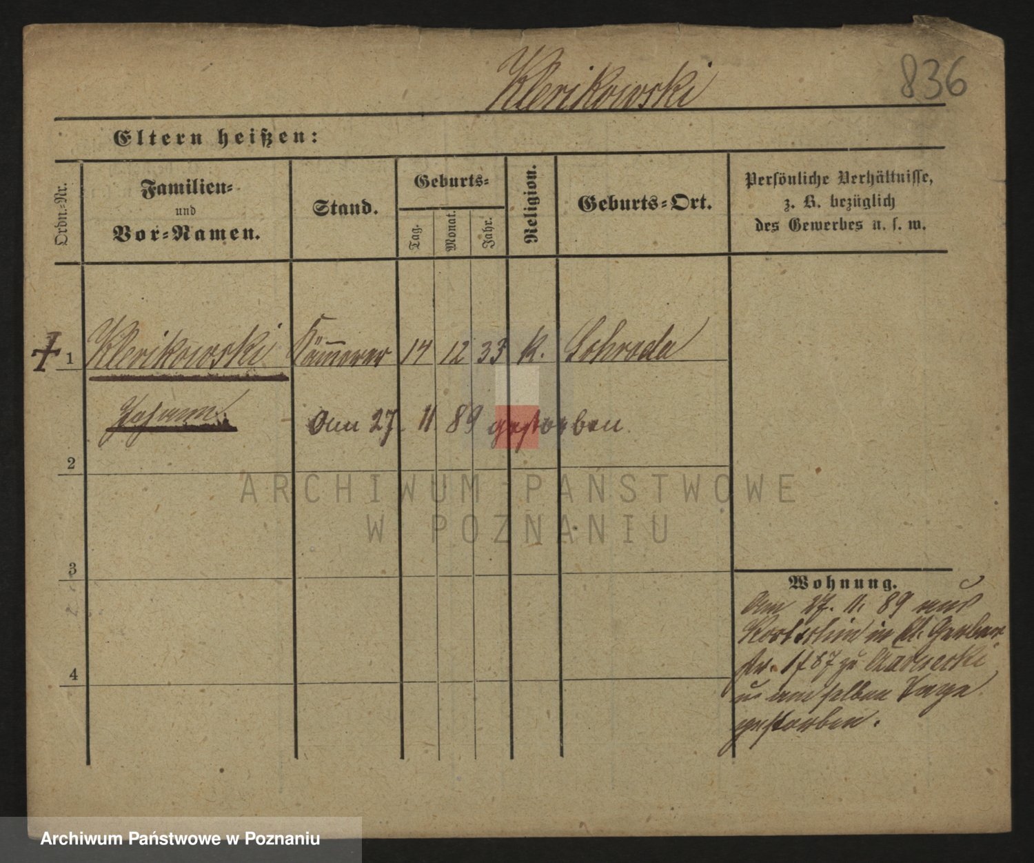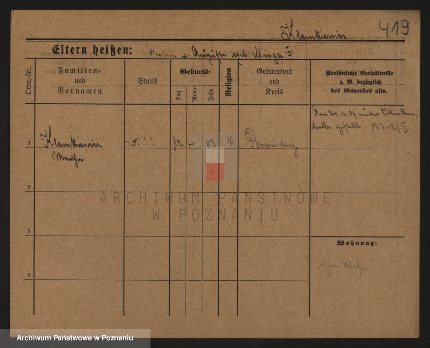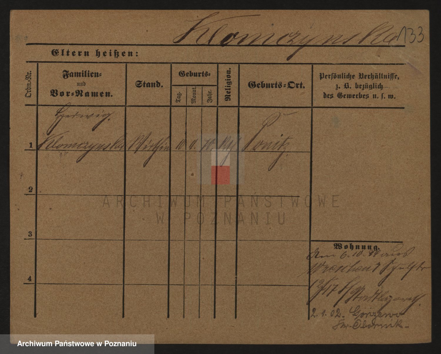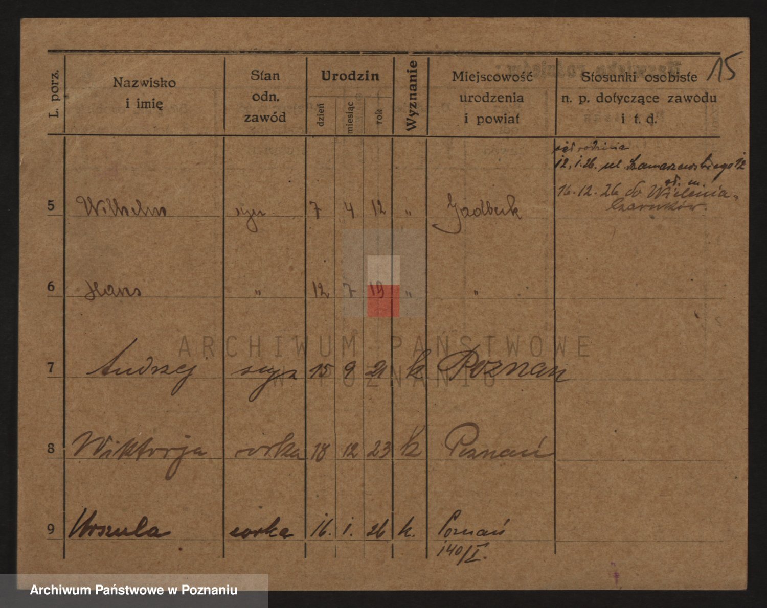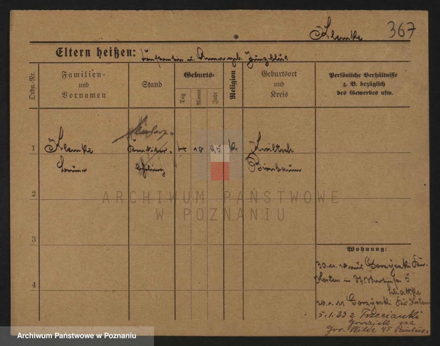 Podgląd karty osobowej dostępny jest po kliknięciu na nazwisko lub ikonkę karty. Można dokonywać powiększenia (ikony na górze) lub przechodzić między kolejnymi skanami (strzałki po bokach).