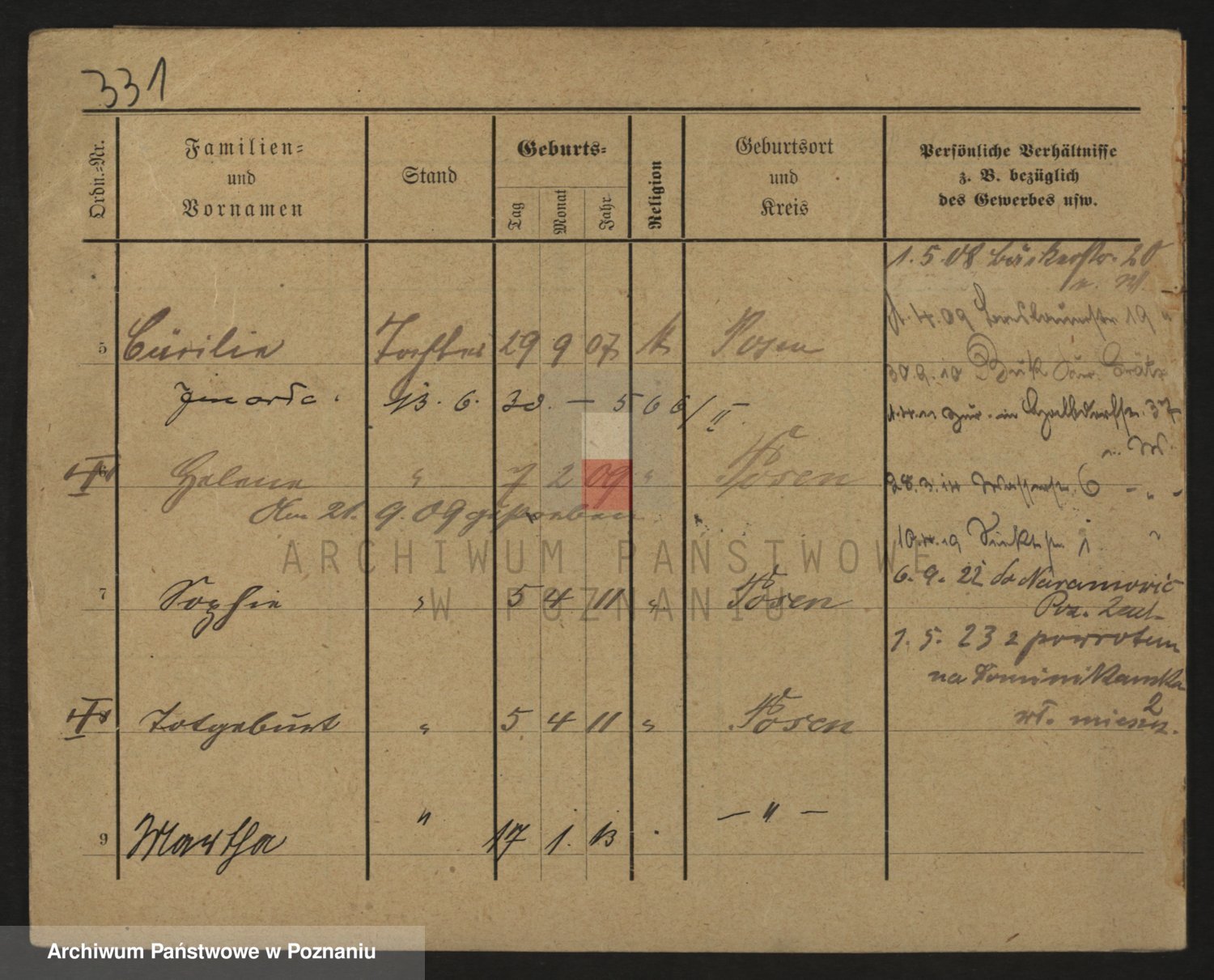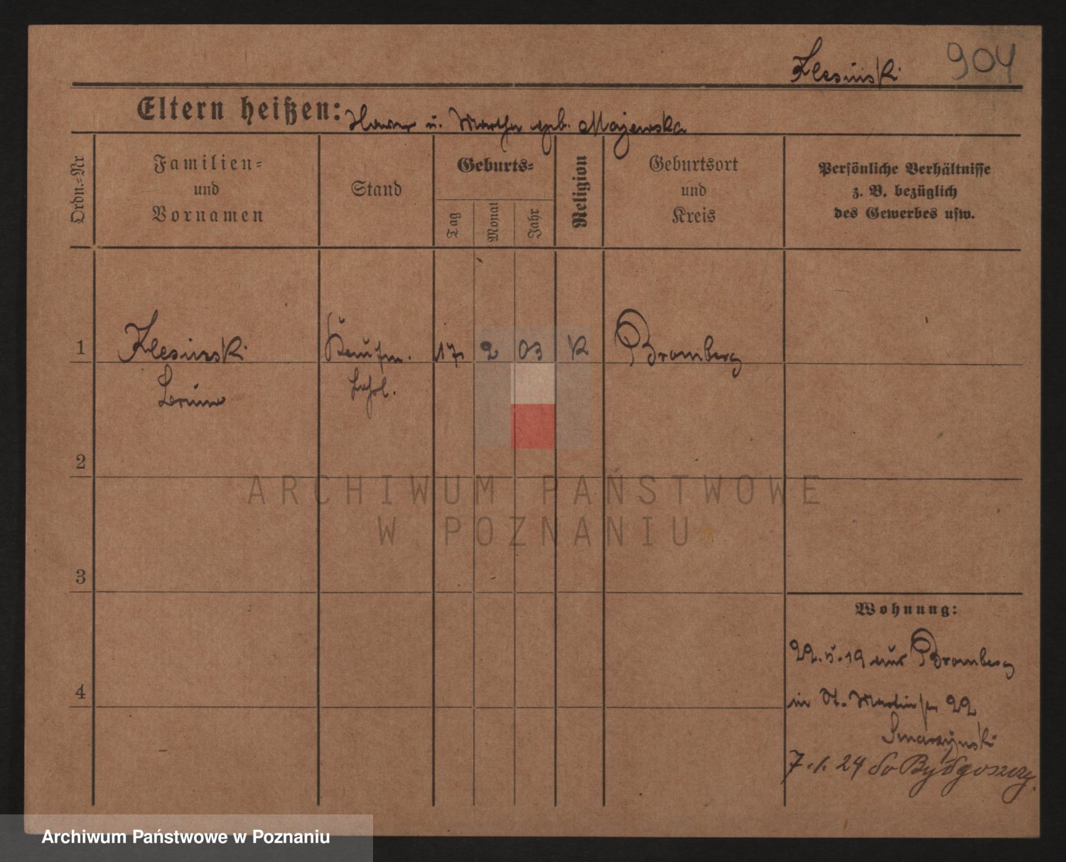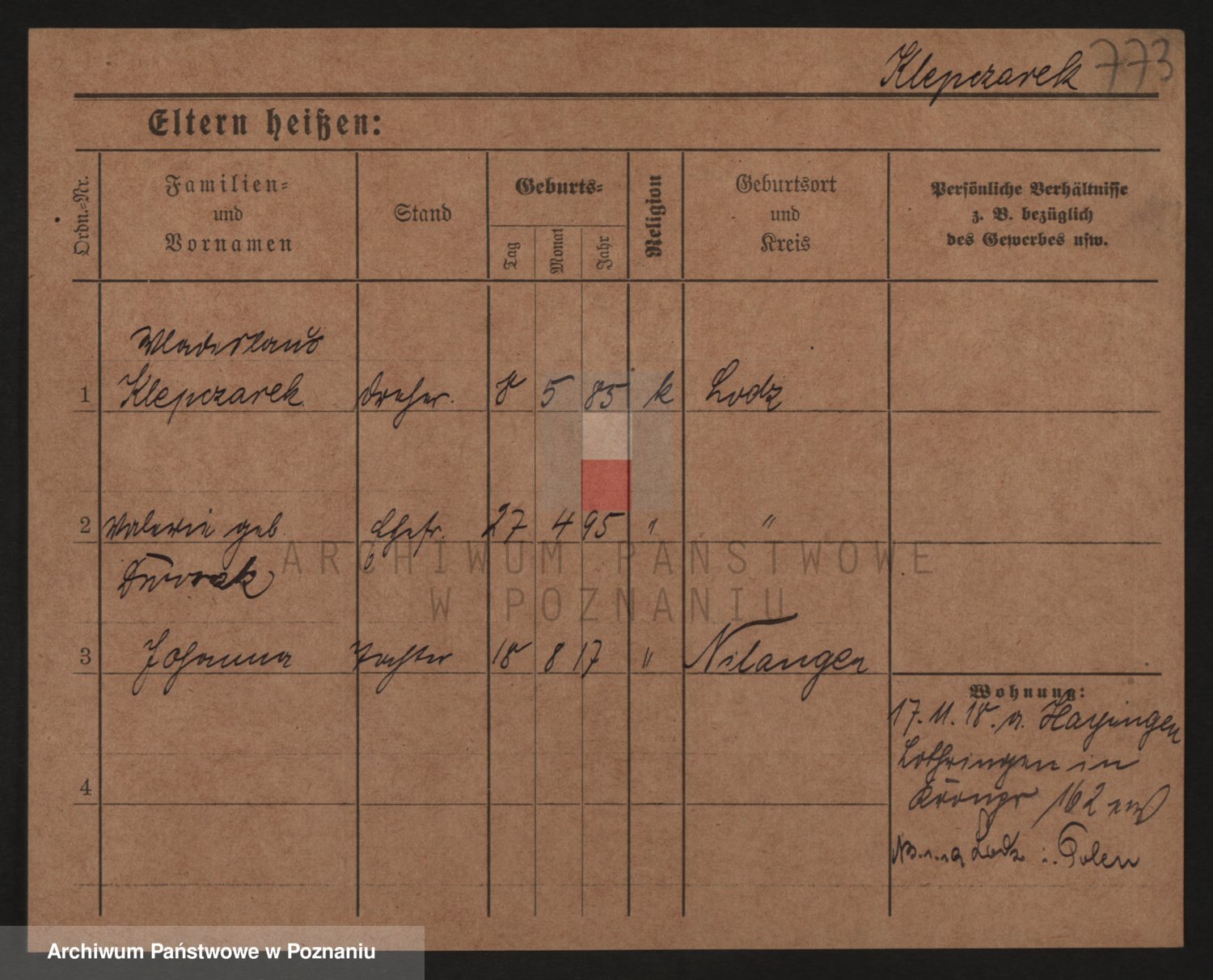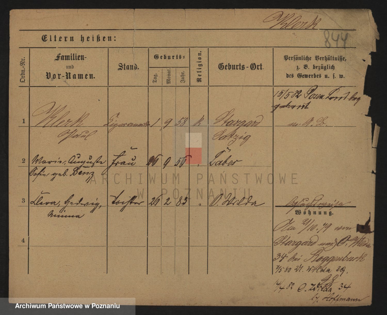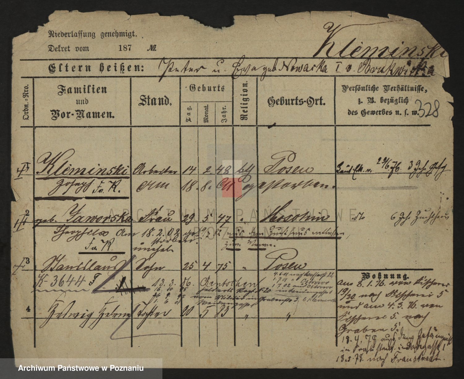 Podgląd karty osobowej dostępny jest po kliknięciu na nazwisko lub ikonkę karty. Można dokonywać powiększenia (ikony na górze) lub przechodzić między kolejnymi skanami (strzałki po bokach).