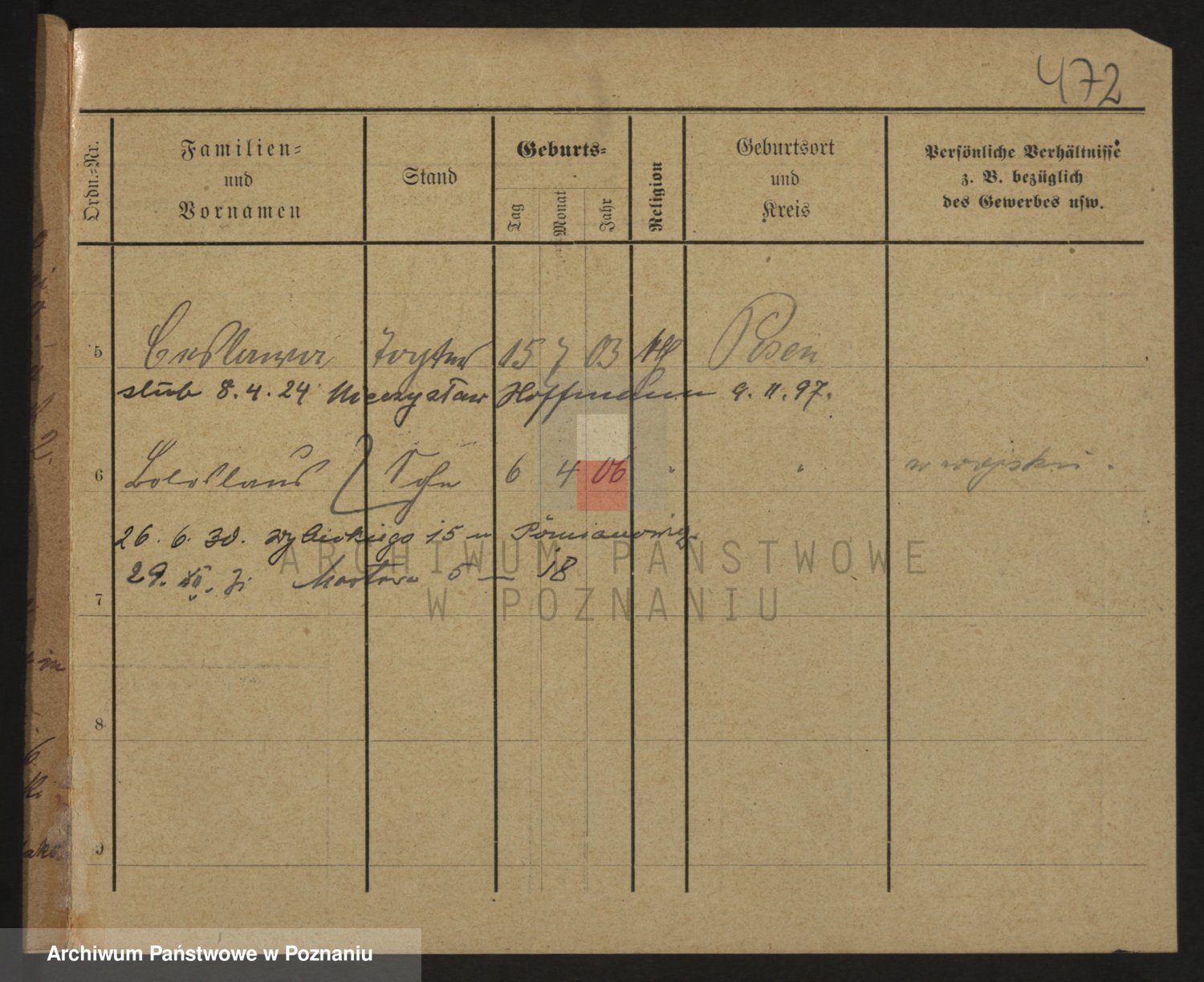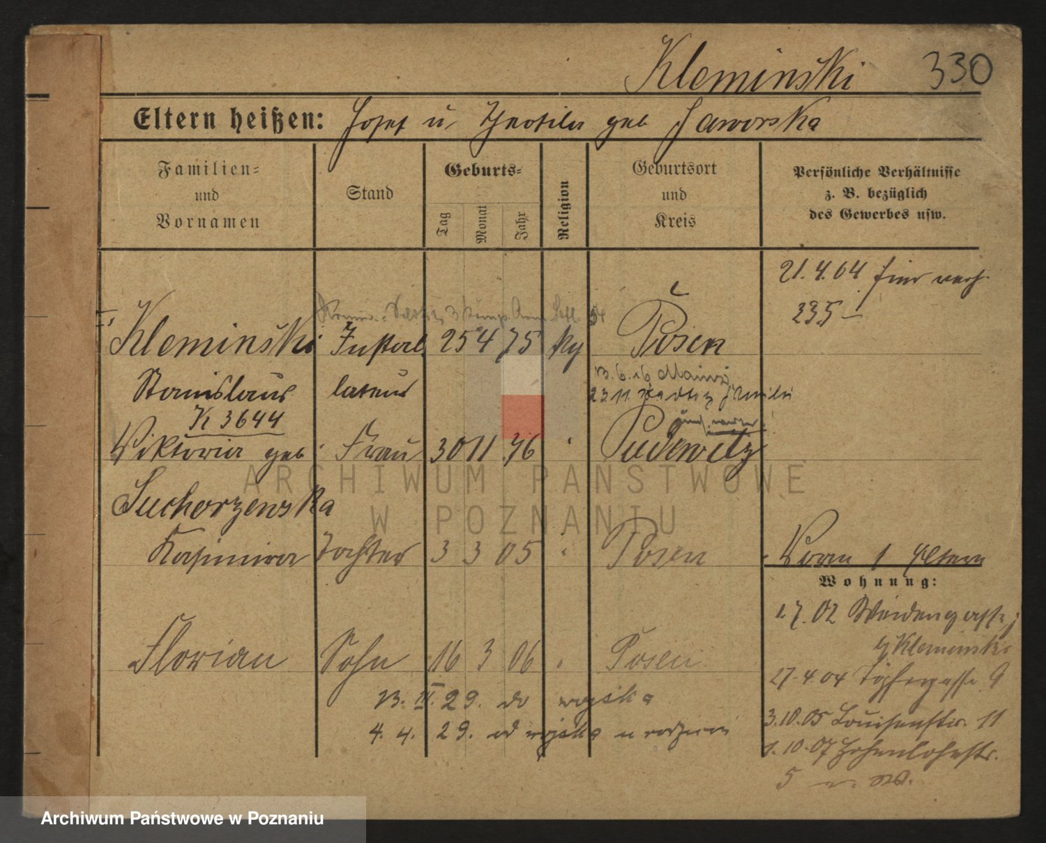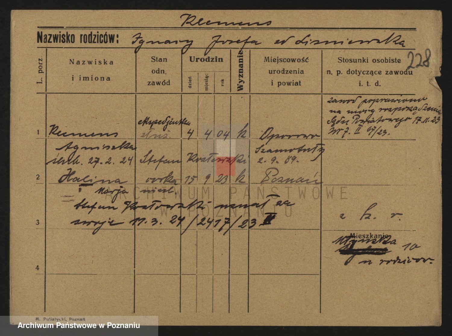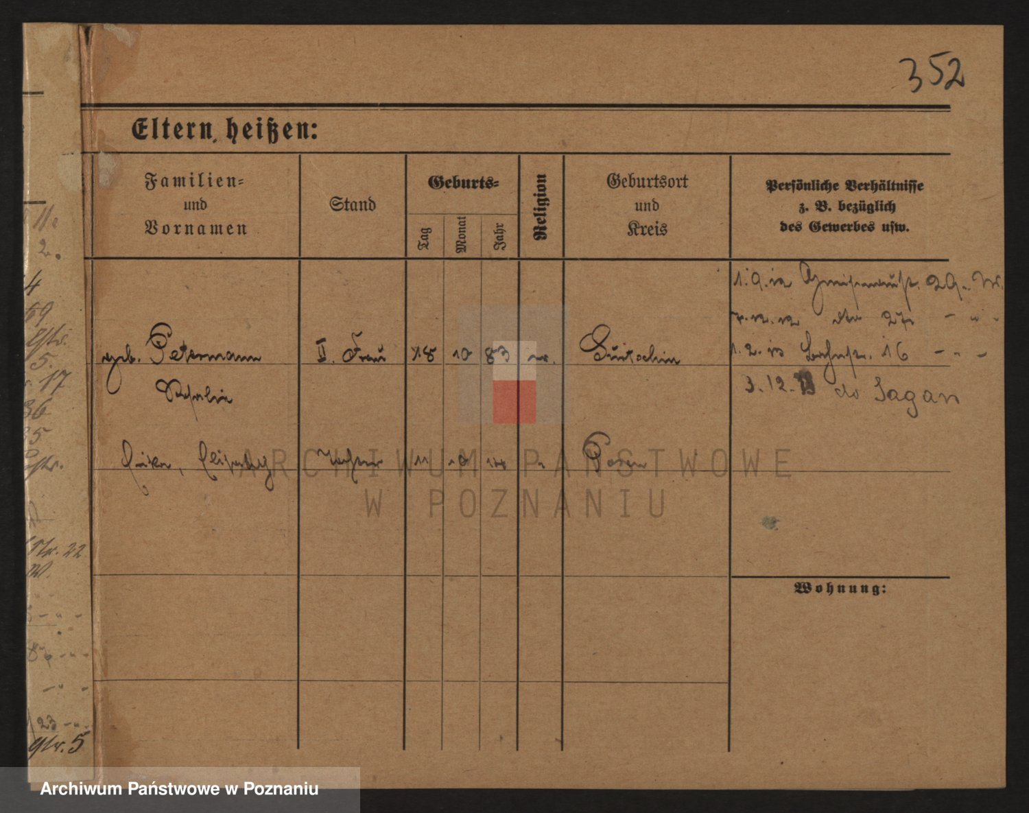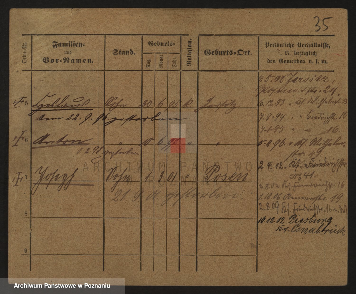 Podgląd karty osobowej dostępny jest po kliknięciu na nazwisko lub ikonkę karty. Można dokonywać powiększenia (ikony na górze) lub przechodzić między kolejnymi skanami (strzałki po bokach).
