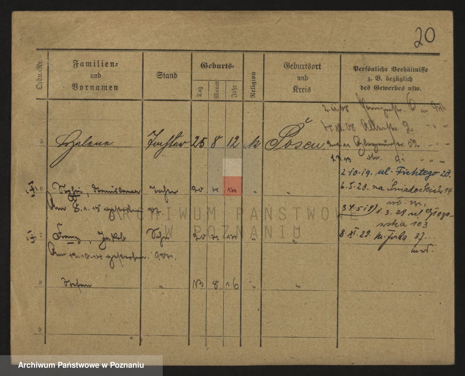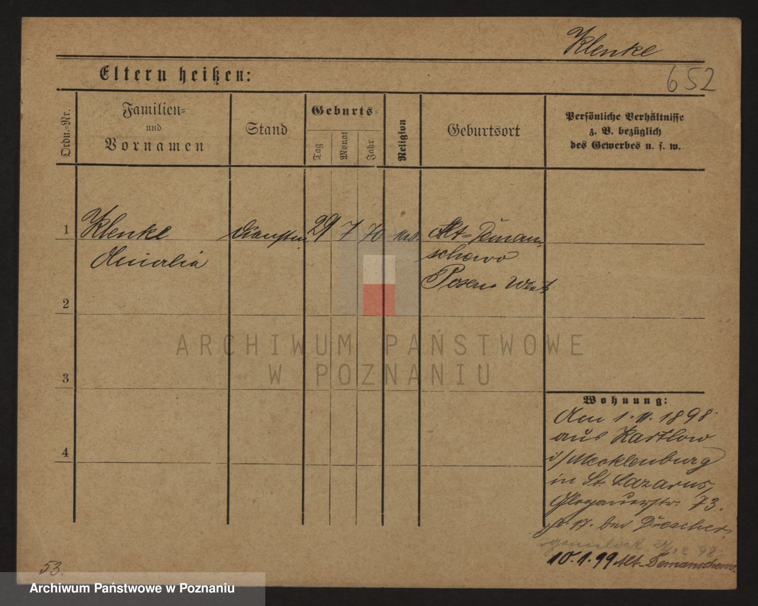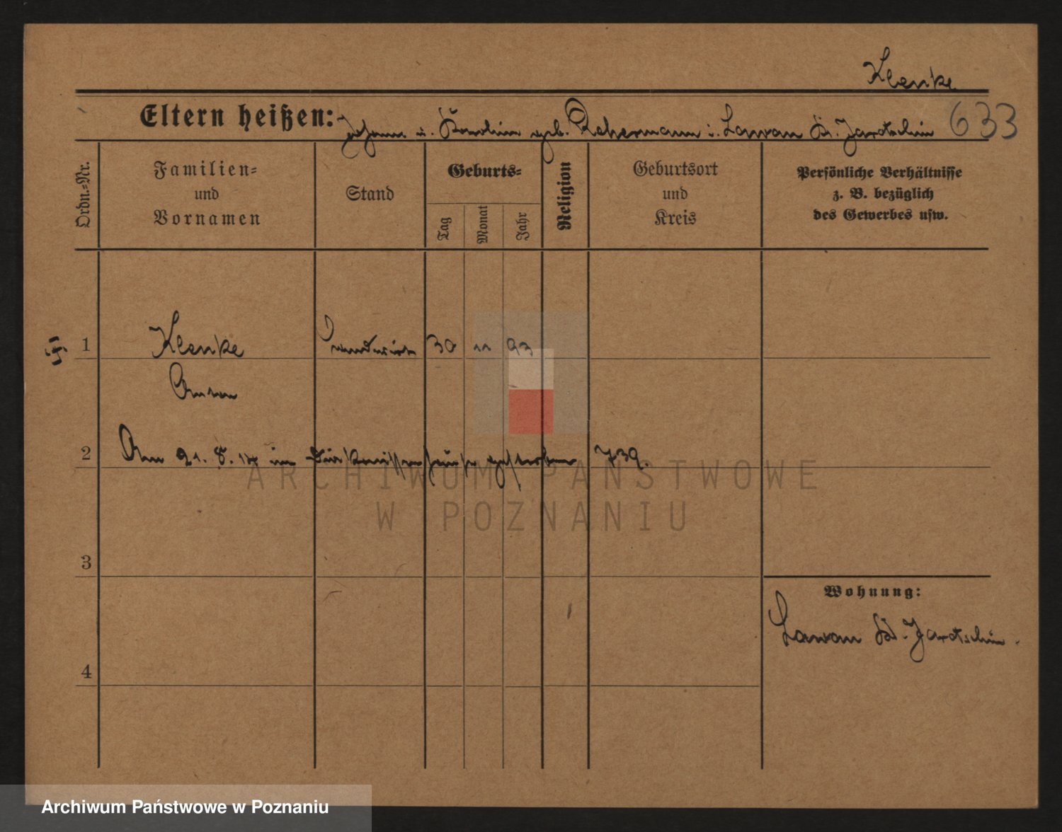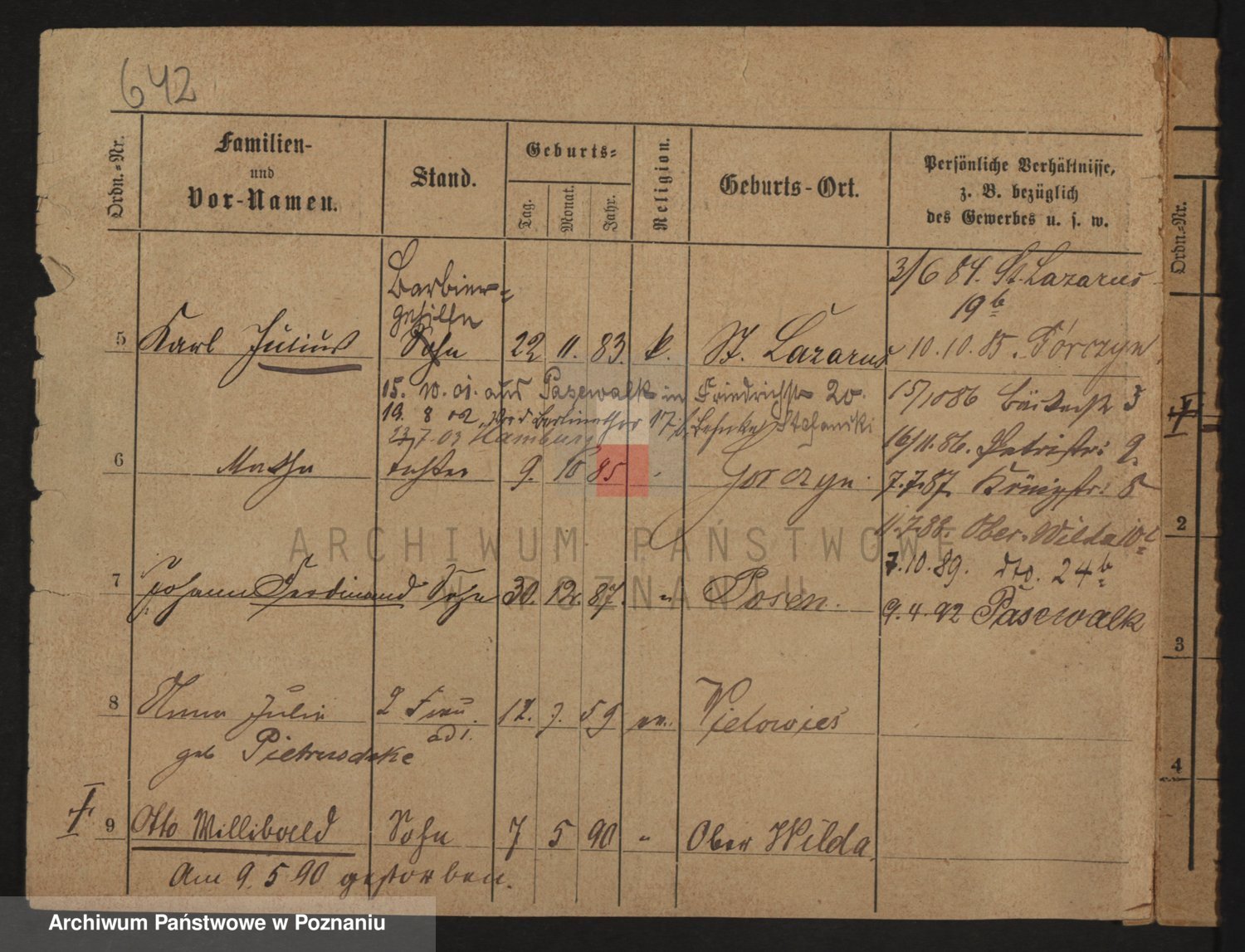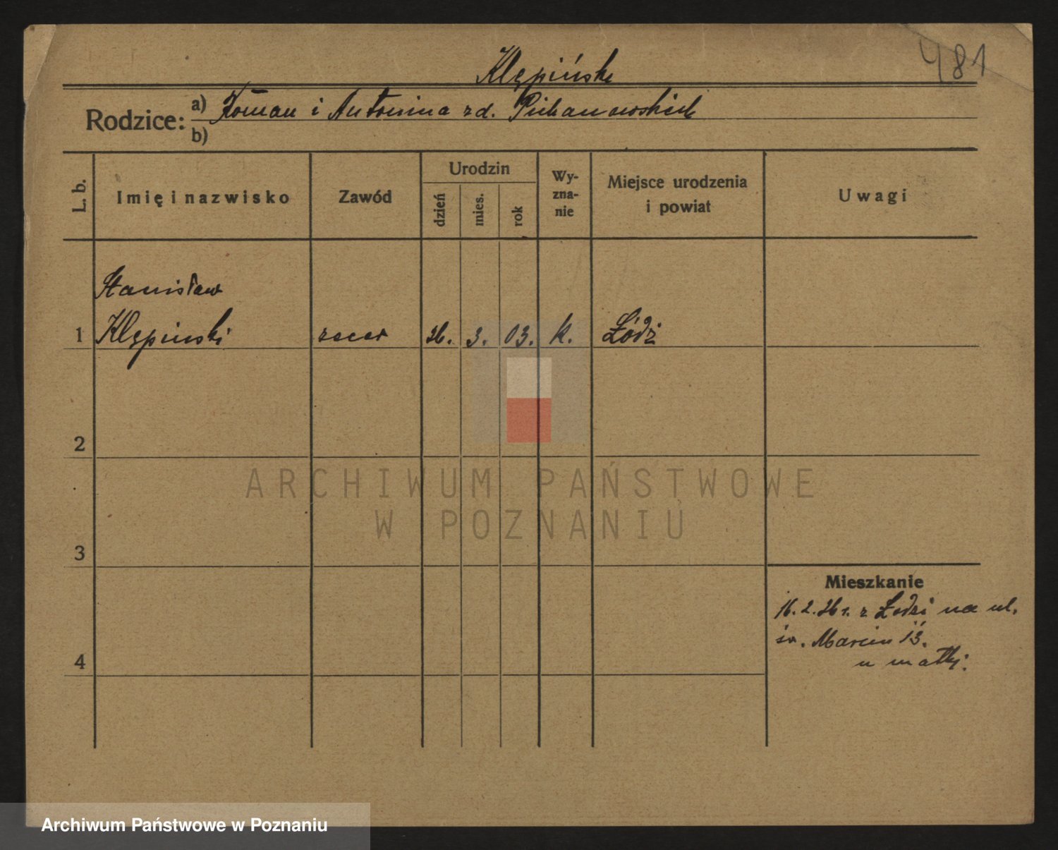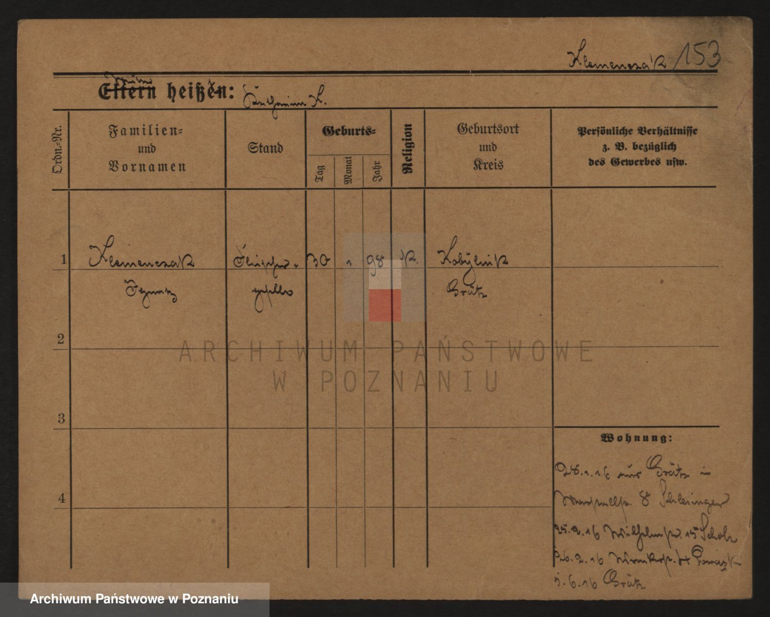 Podgląd karty osobowej dostępny jest po kliknięciu na nazwisko lub ikonkę karty. Można dokonywać powiększenia (ikony na górze) lub przechodzić między kolejnymi skanami (strzałki po bokach).