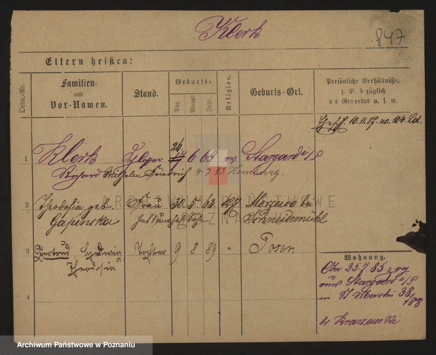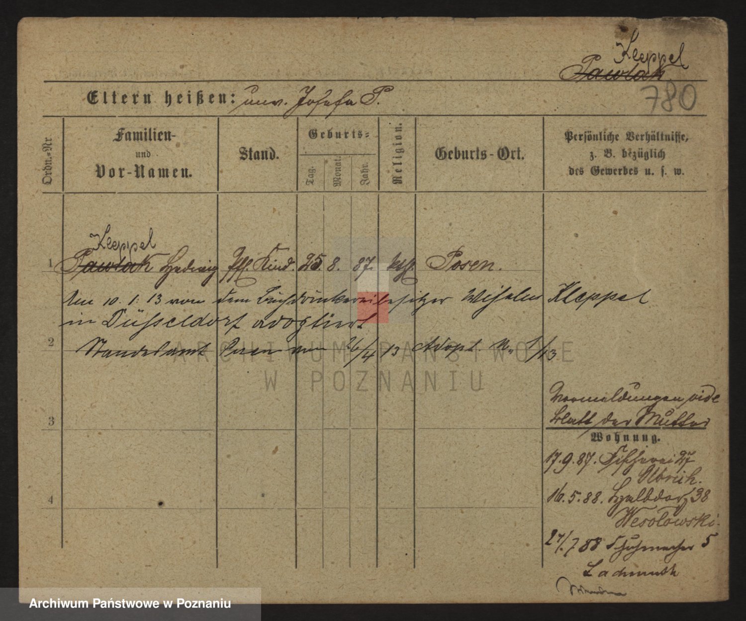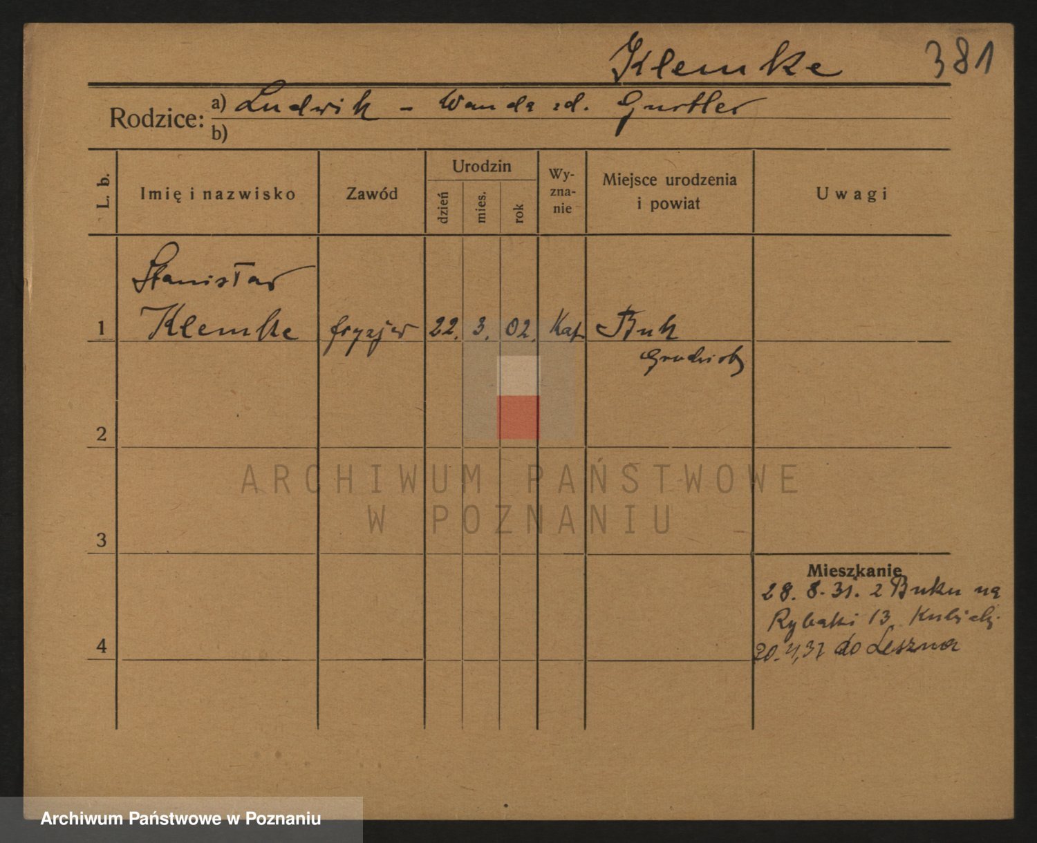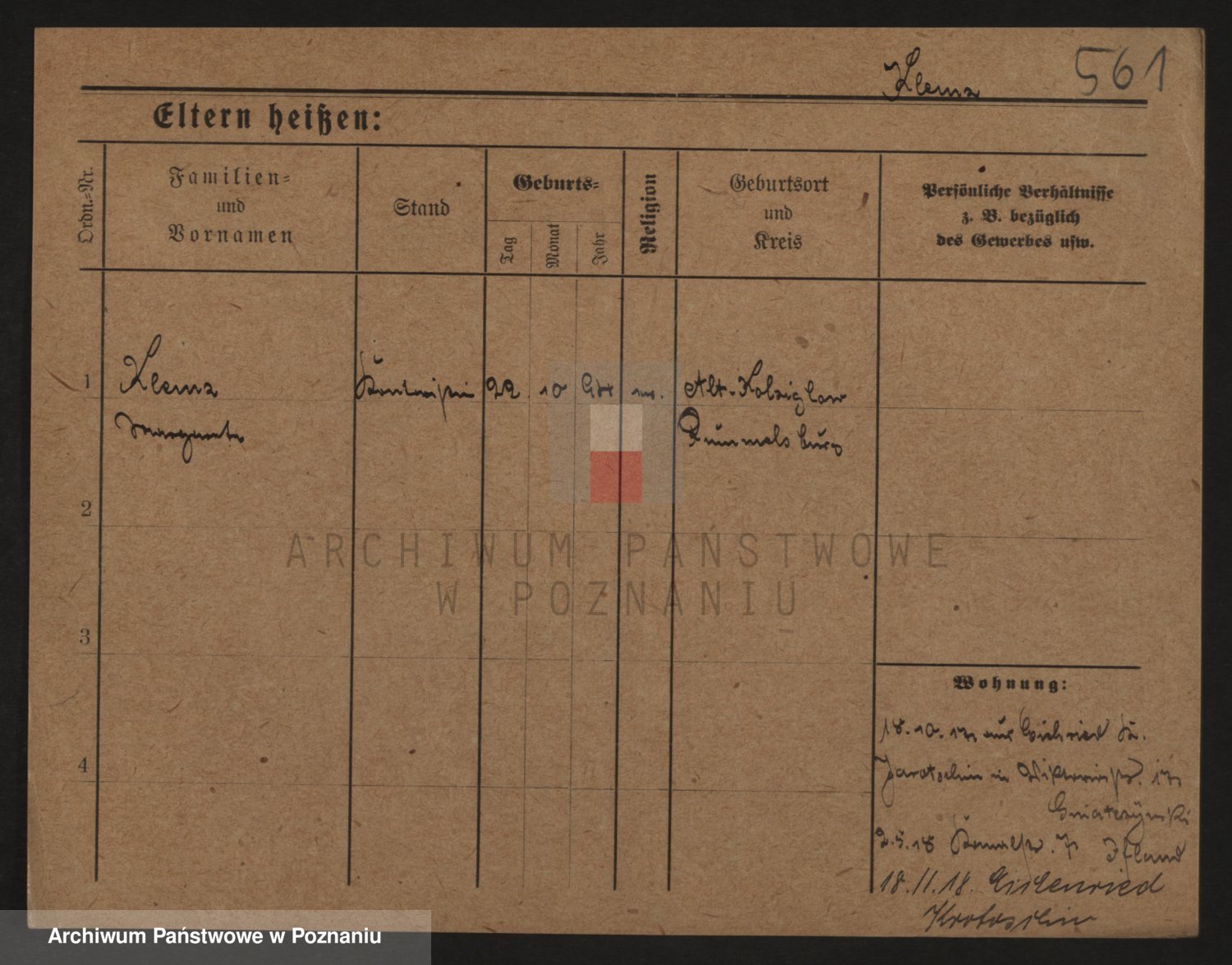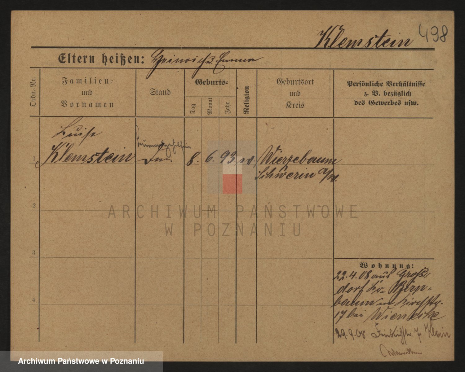 Podgląd karty osobowej dostępny jest po kliknięciu na nazwisko lub ikonkę karty. Można dokonywać powiększenia (ikony na górze) lub przechodzić między kolejnymi skanami (strzałki po bokach).