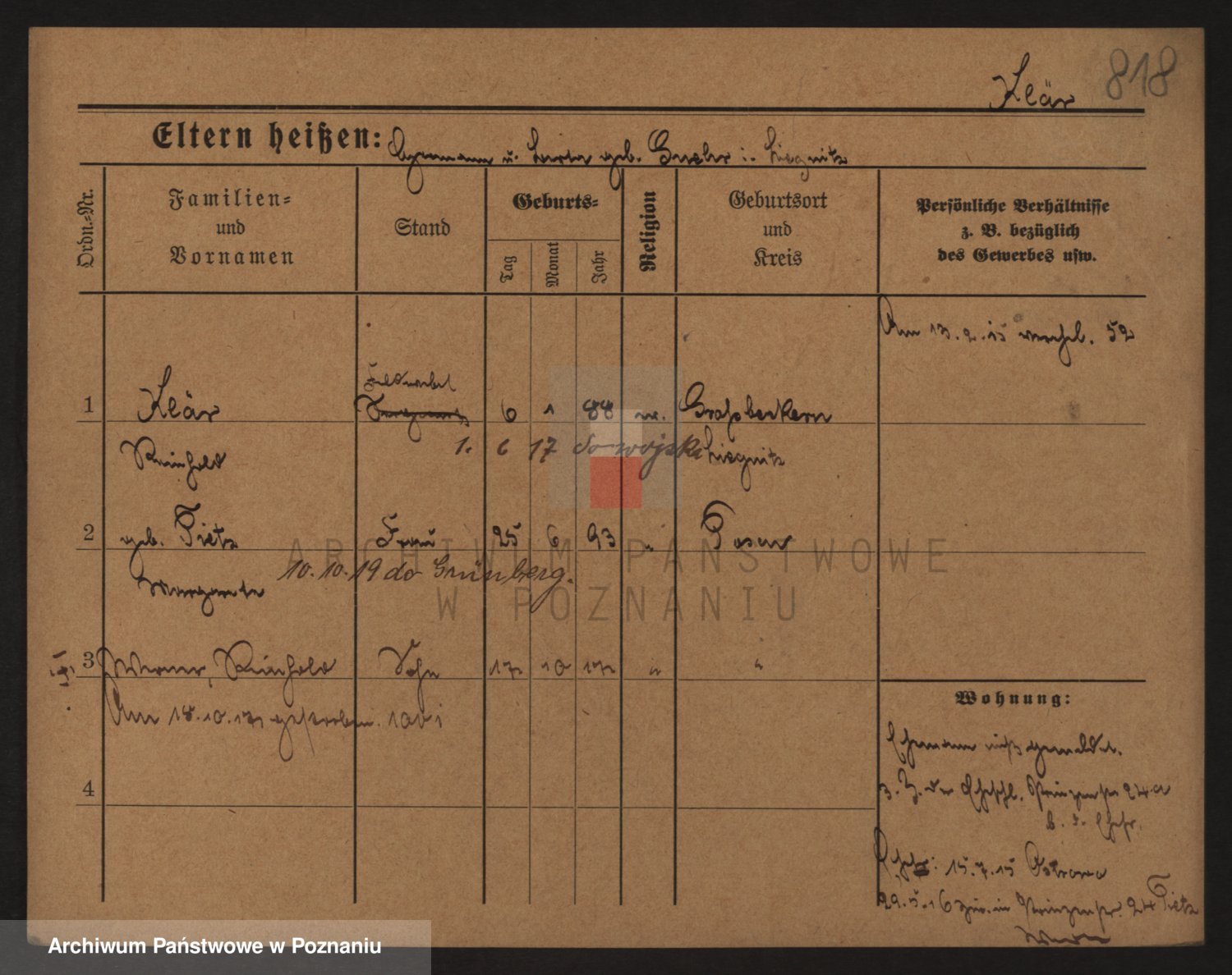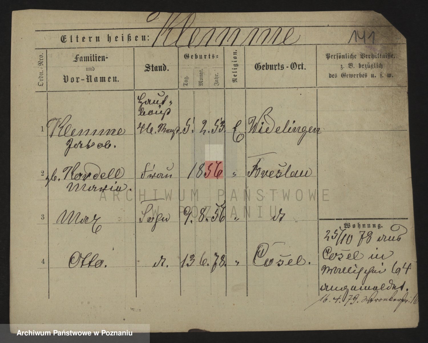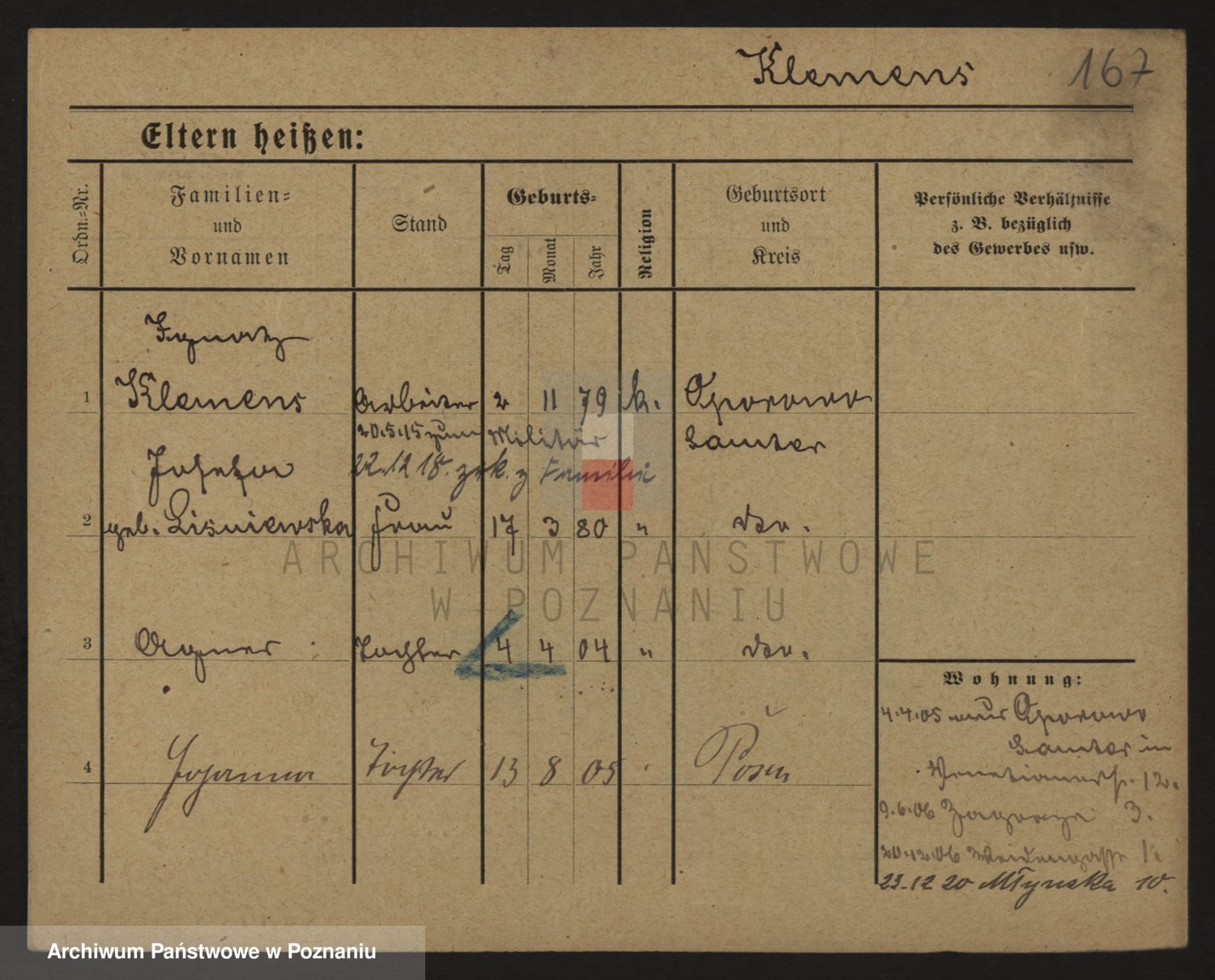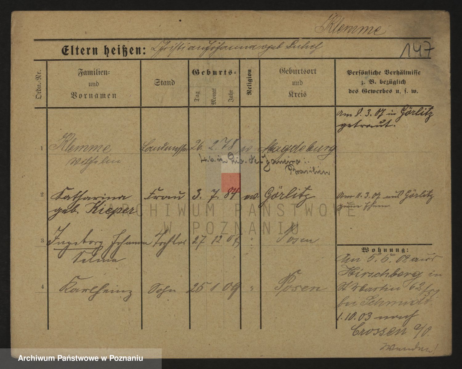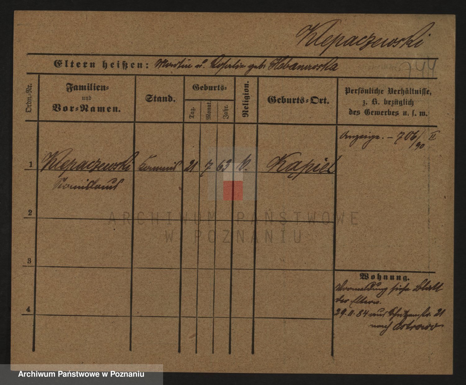 Podgląd karty osobowej dostępny jest po kliknięciu na nazwisko lub ikonkę karty. Można dokonywać powiększenia (ikony na górze) lub przechodzić między kolejnymi skanami (strzałki po bokach).