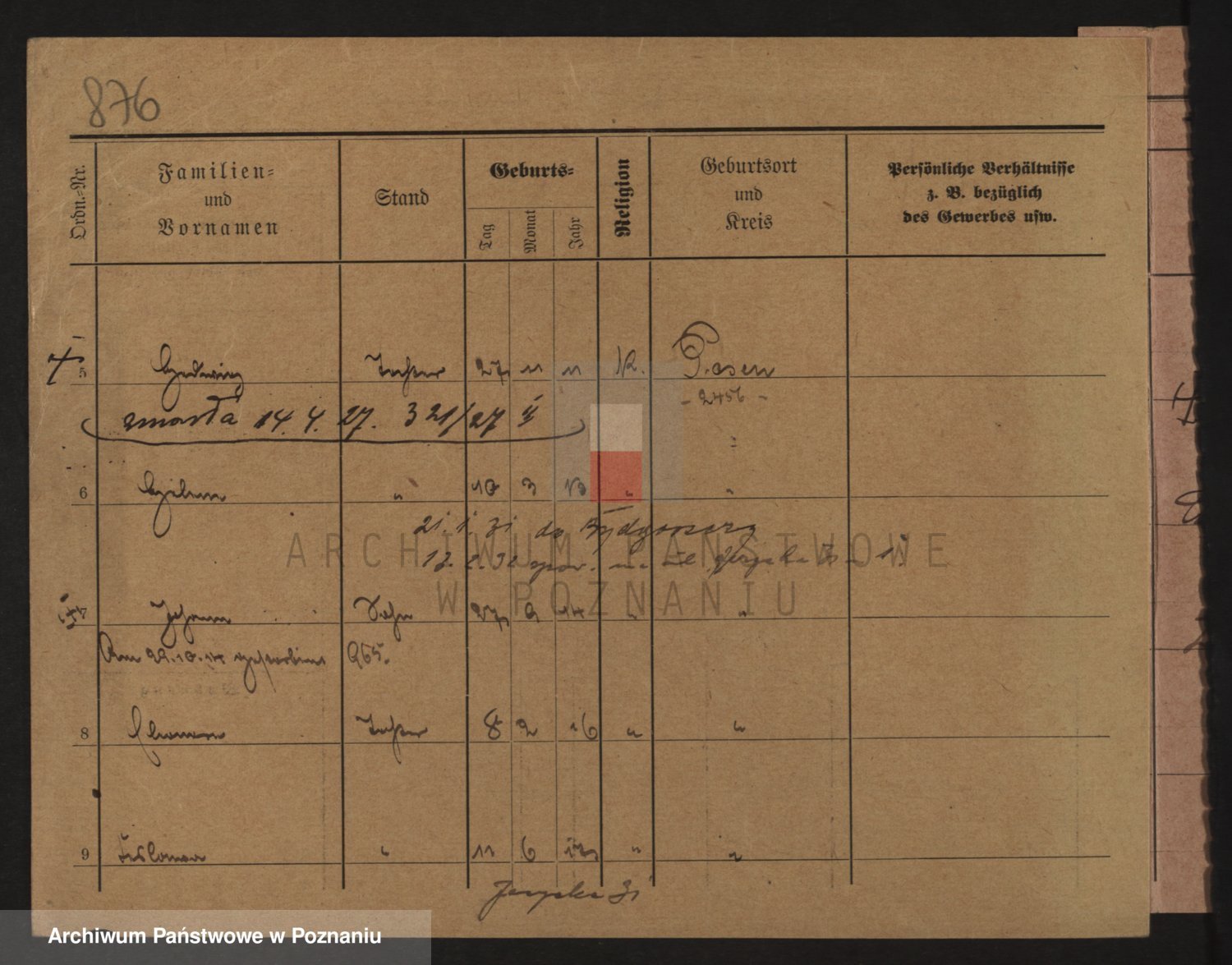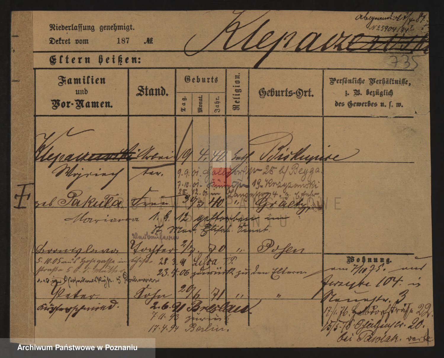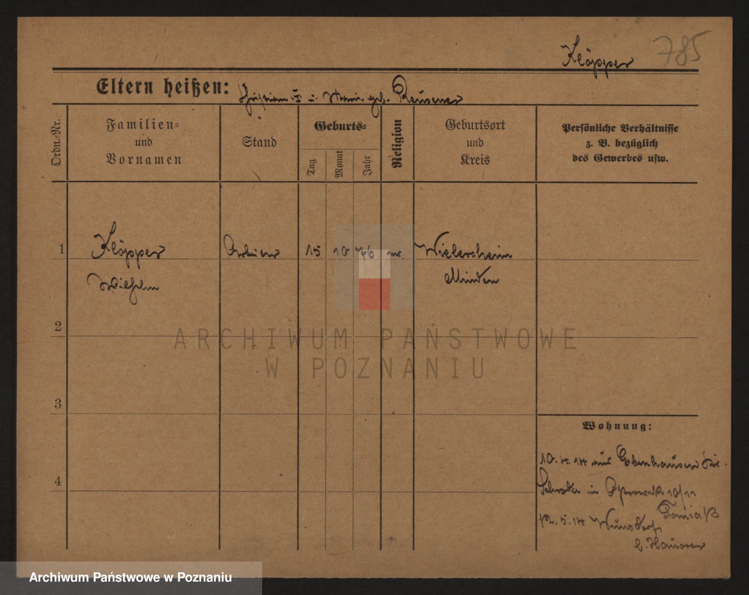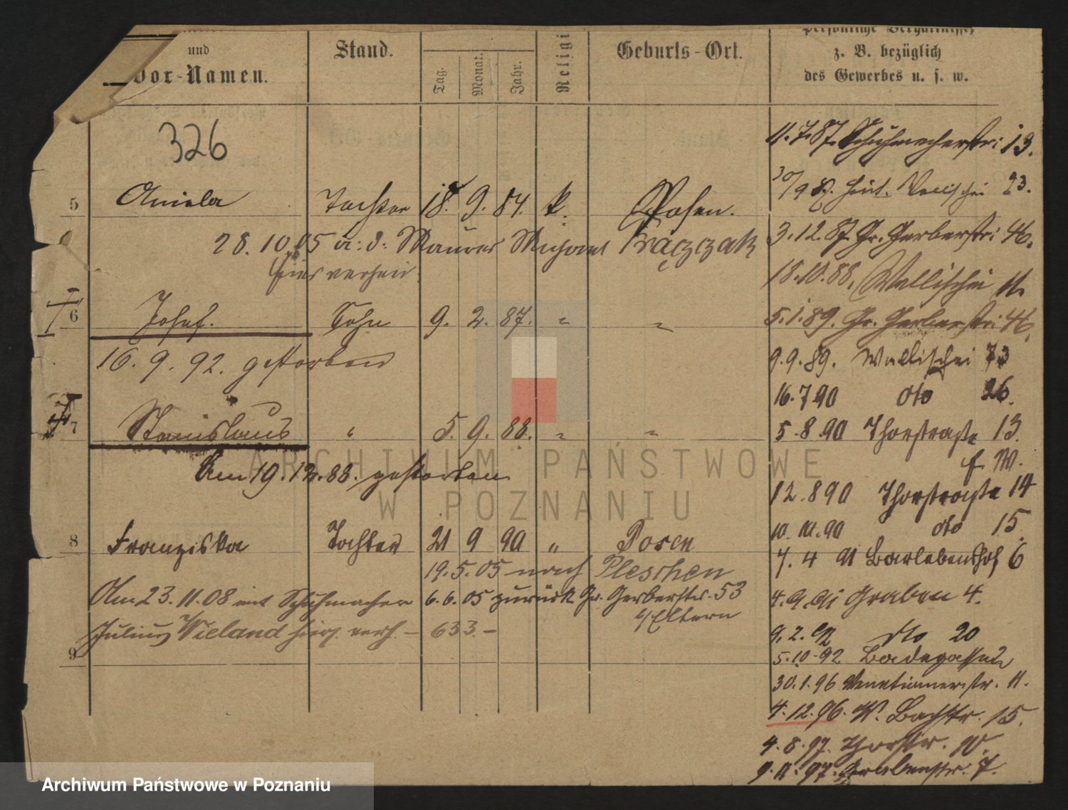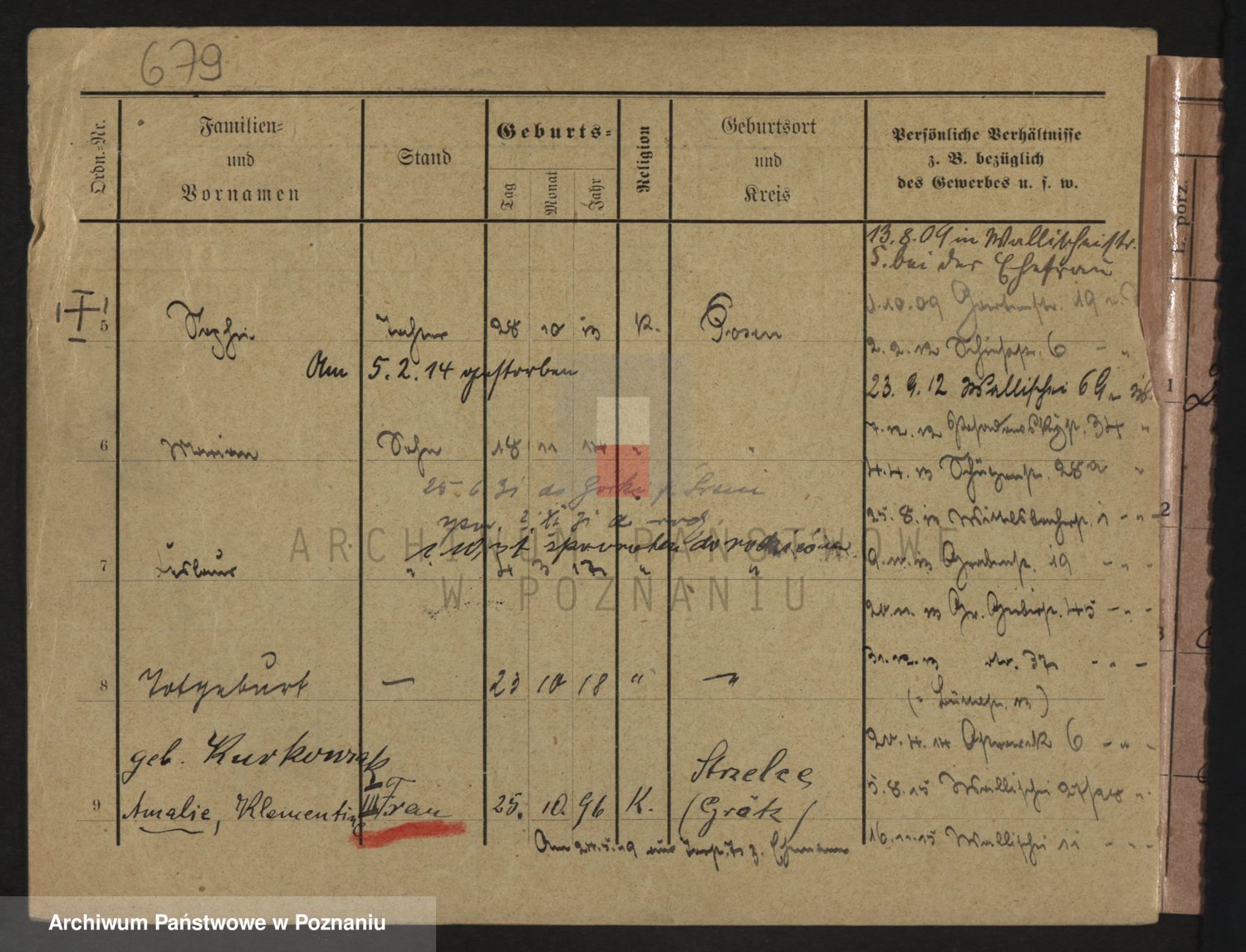 Podgląd karty osobowej dostępny jest po kliknięciu na nazwisko lub ikonkę karty. Można dokonywać powiększenia (ikony na górze) lub przechodzić między kolejnymi skanami (strzałki po bokach).