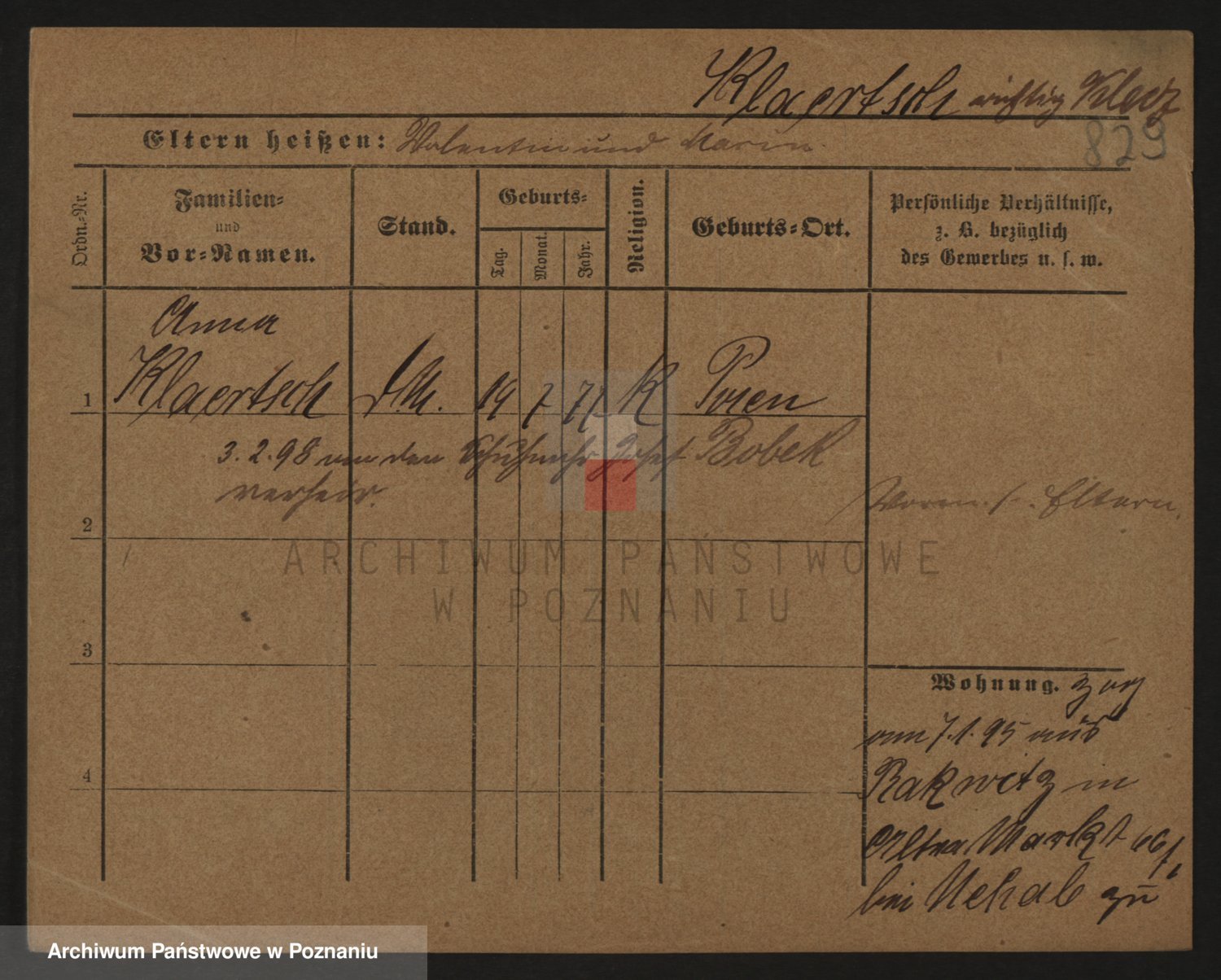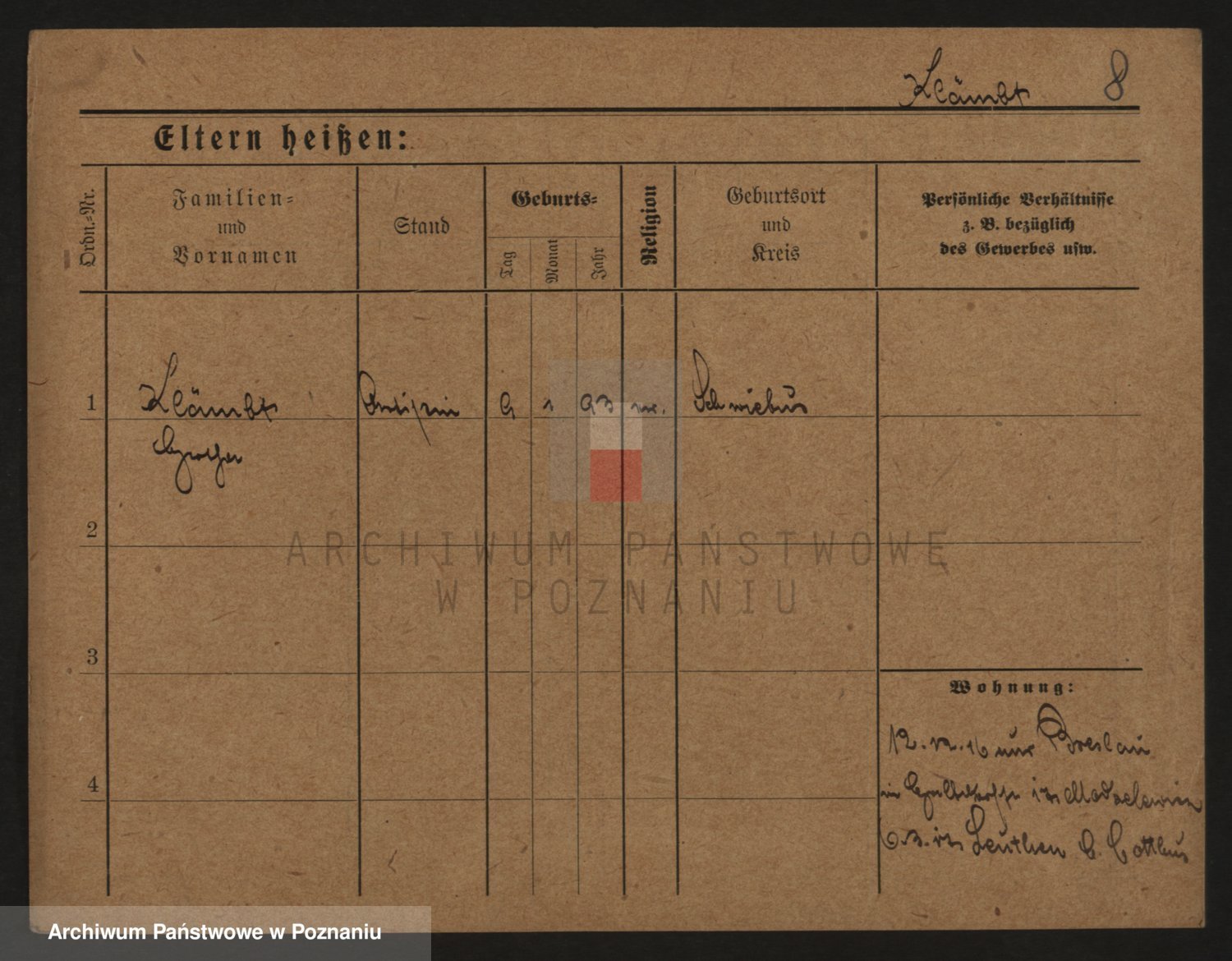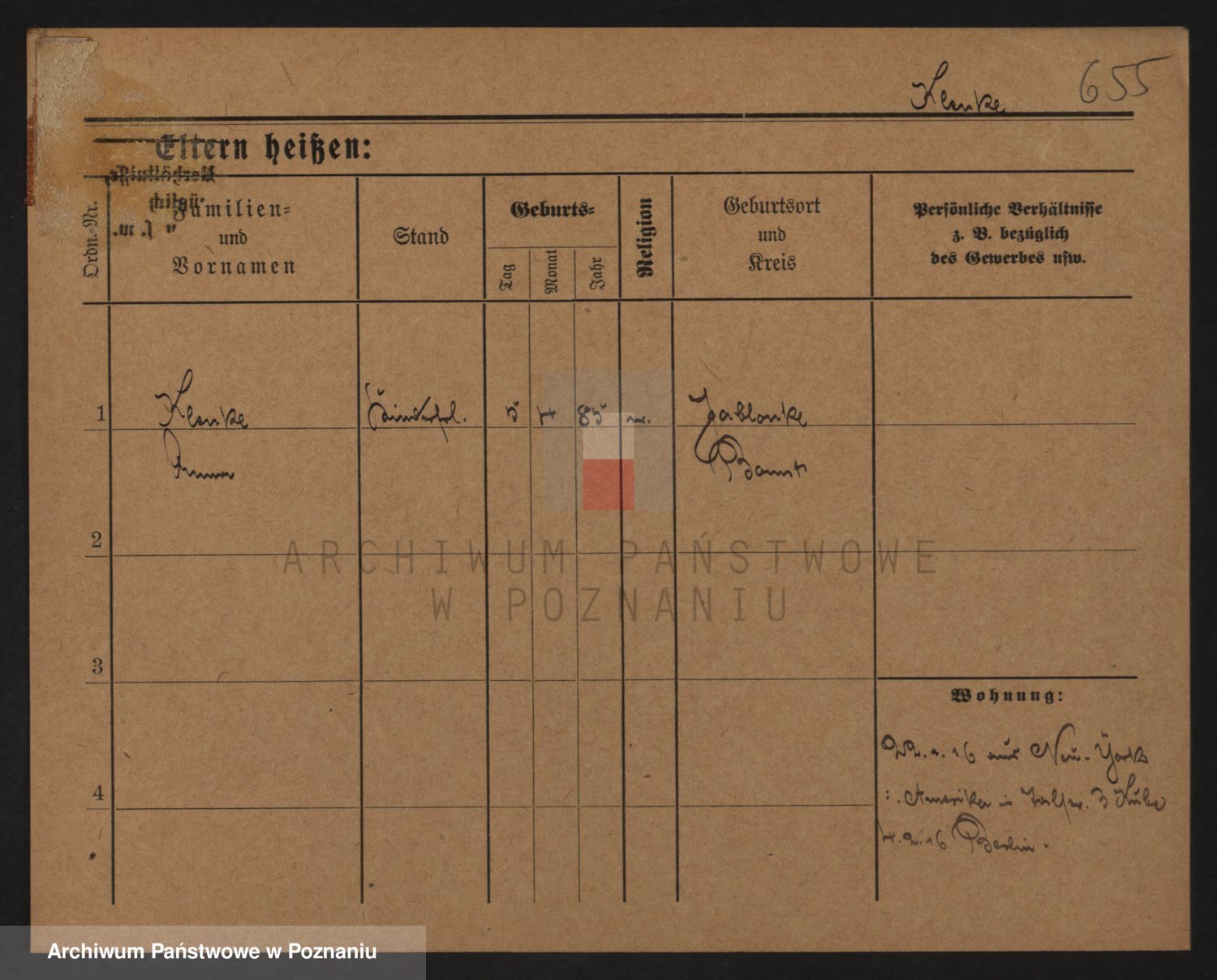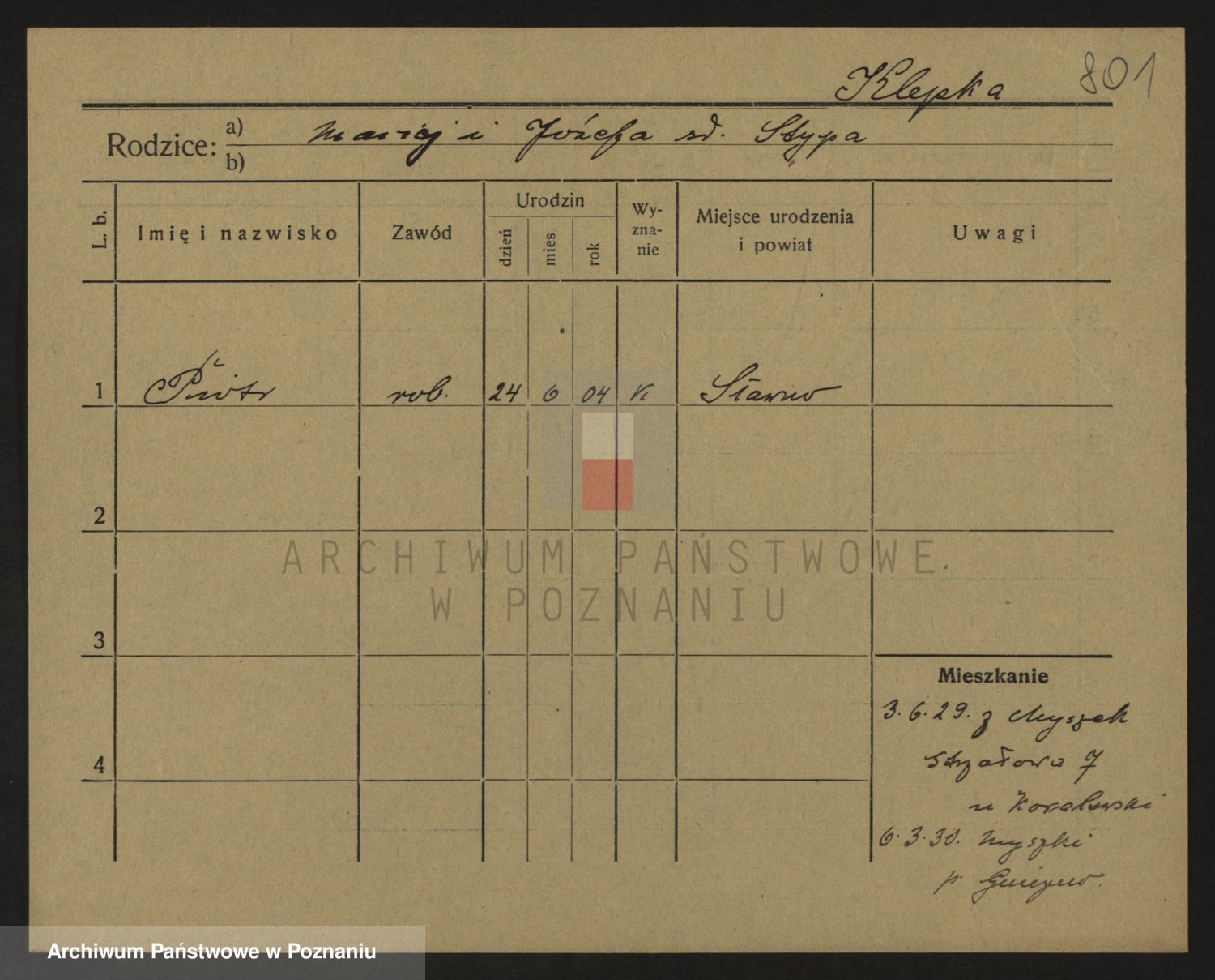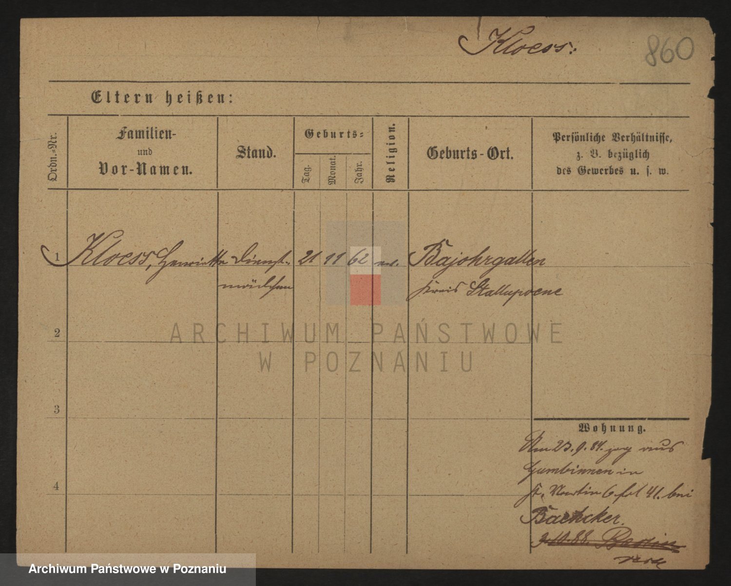Podgląd karty osobowej dostępny jest po kliknięciu na nazwisko lub ikonkę karty. Można dokonywać powiększenia (ikony na górze) lub przechodzić między kolejnymi skanami (strzałki po bokach).
