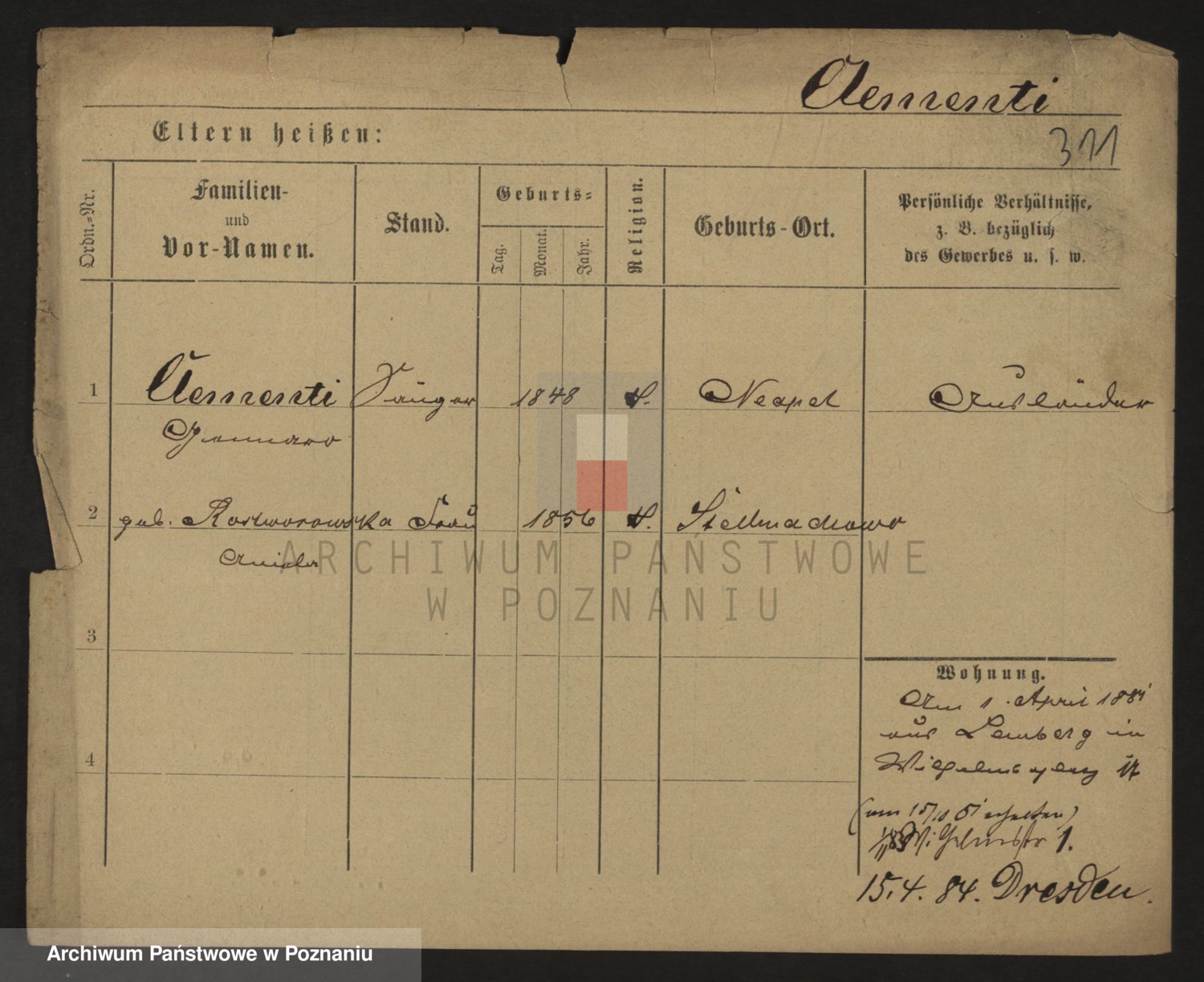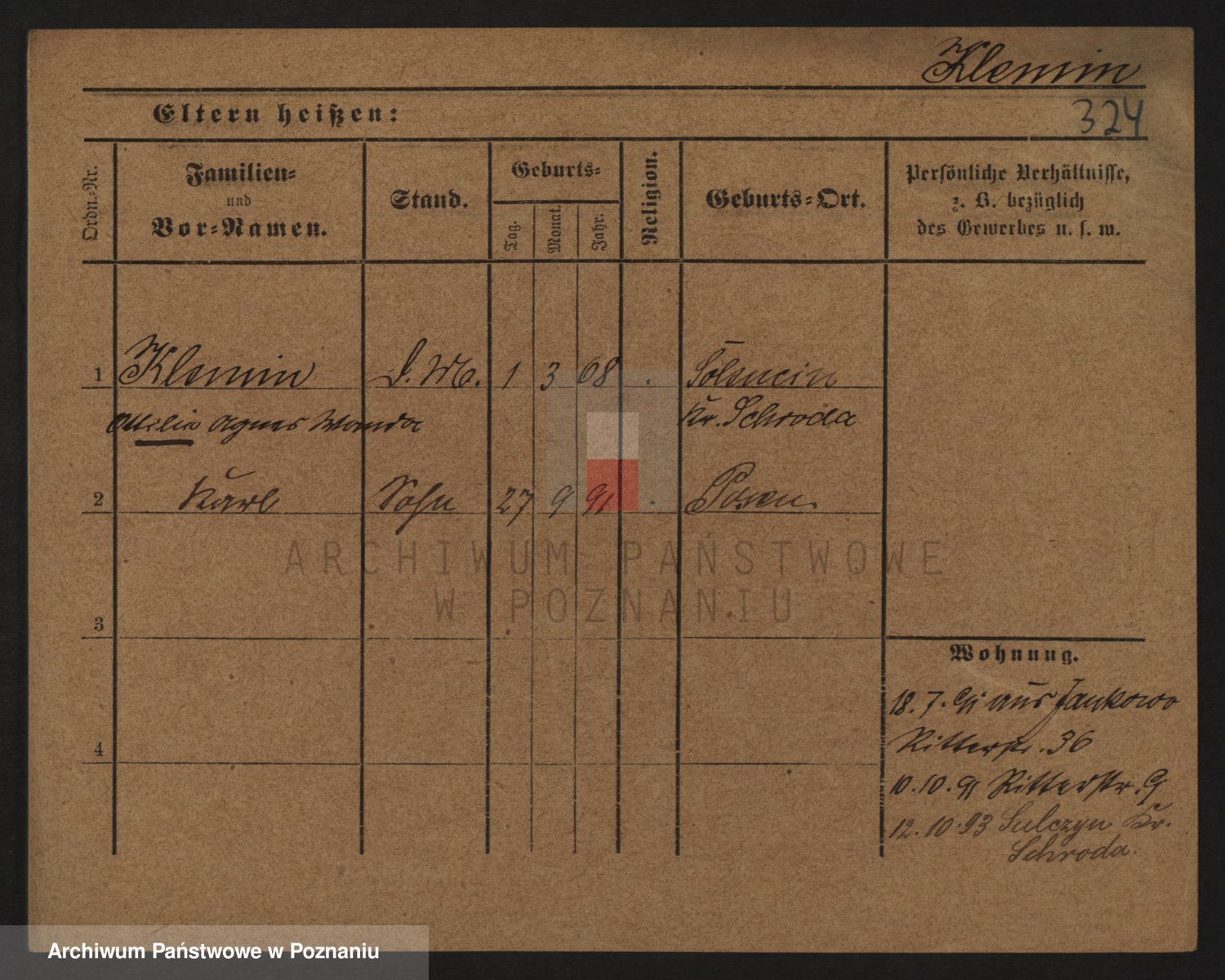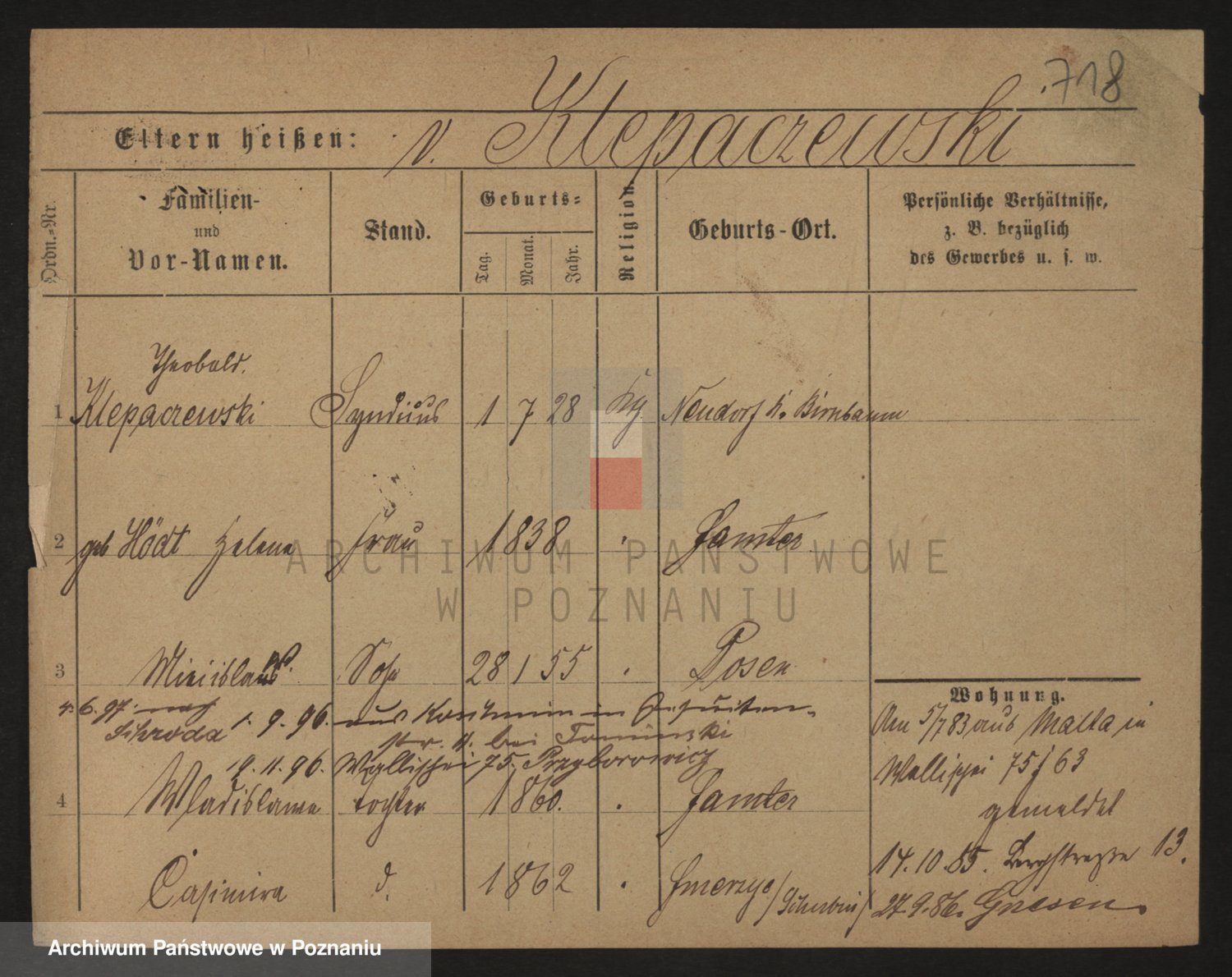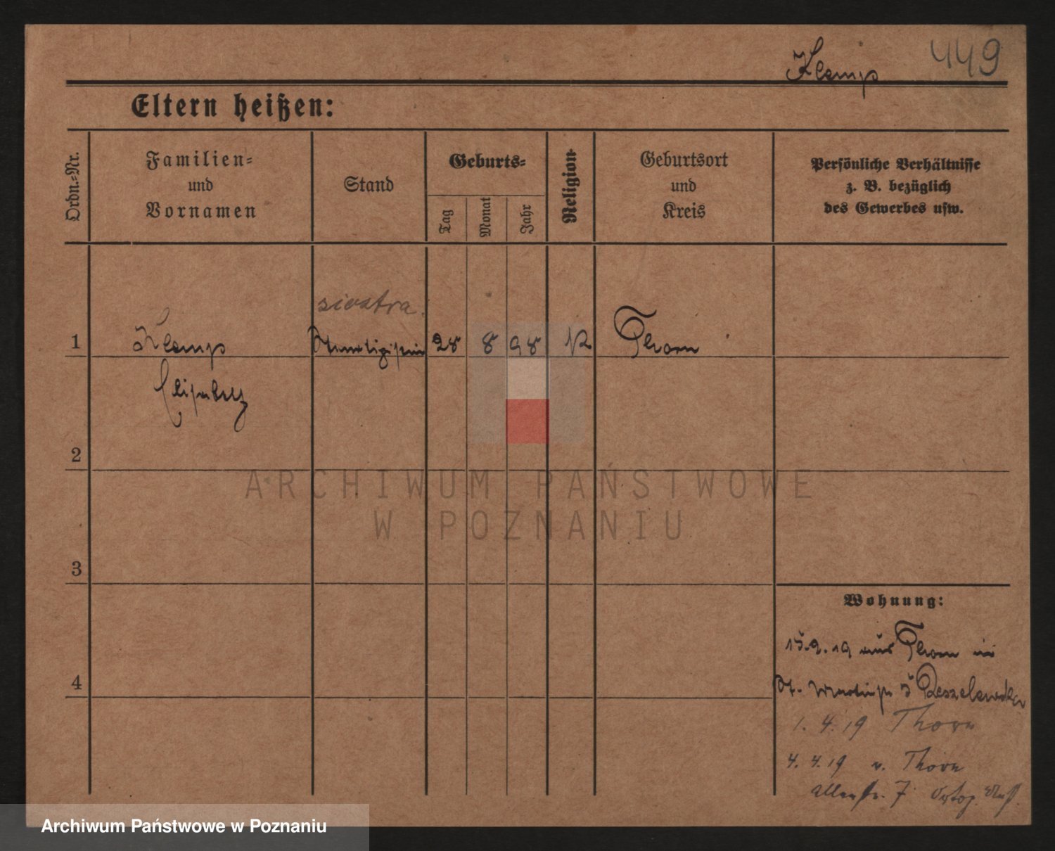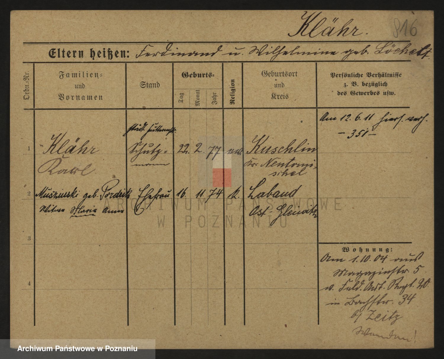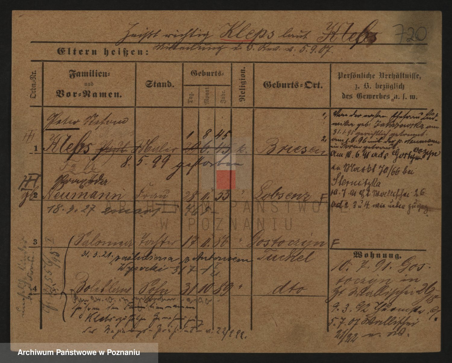 Podgląd karty osobowej dostępny jest po kliknięciu na nazwisko lub ikonkę karty. Można dokonywać powiększenia (ikony na górze) lub przechodzić między kolejnymi skanami (strzałki po bokach).
