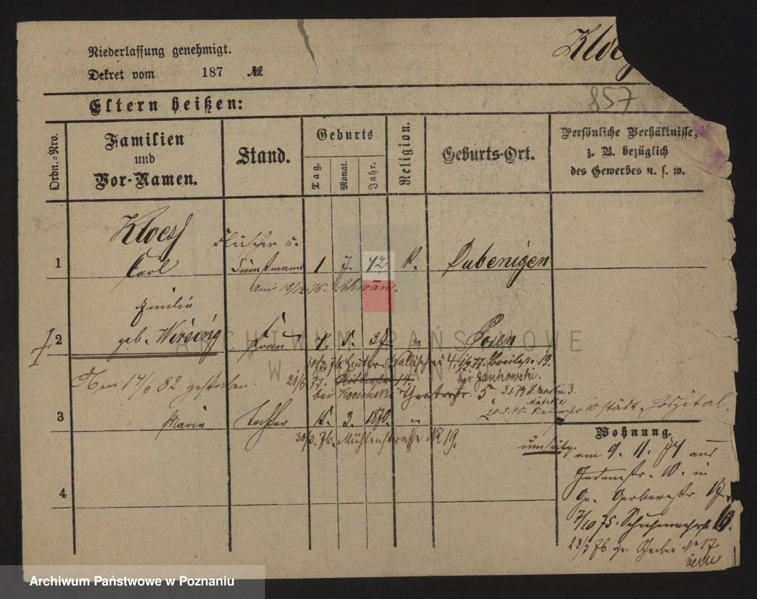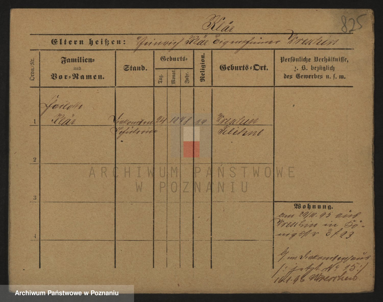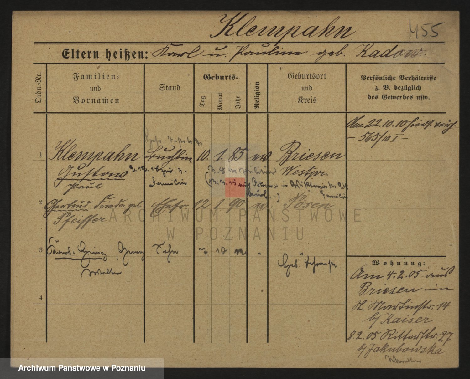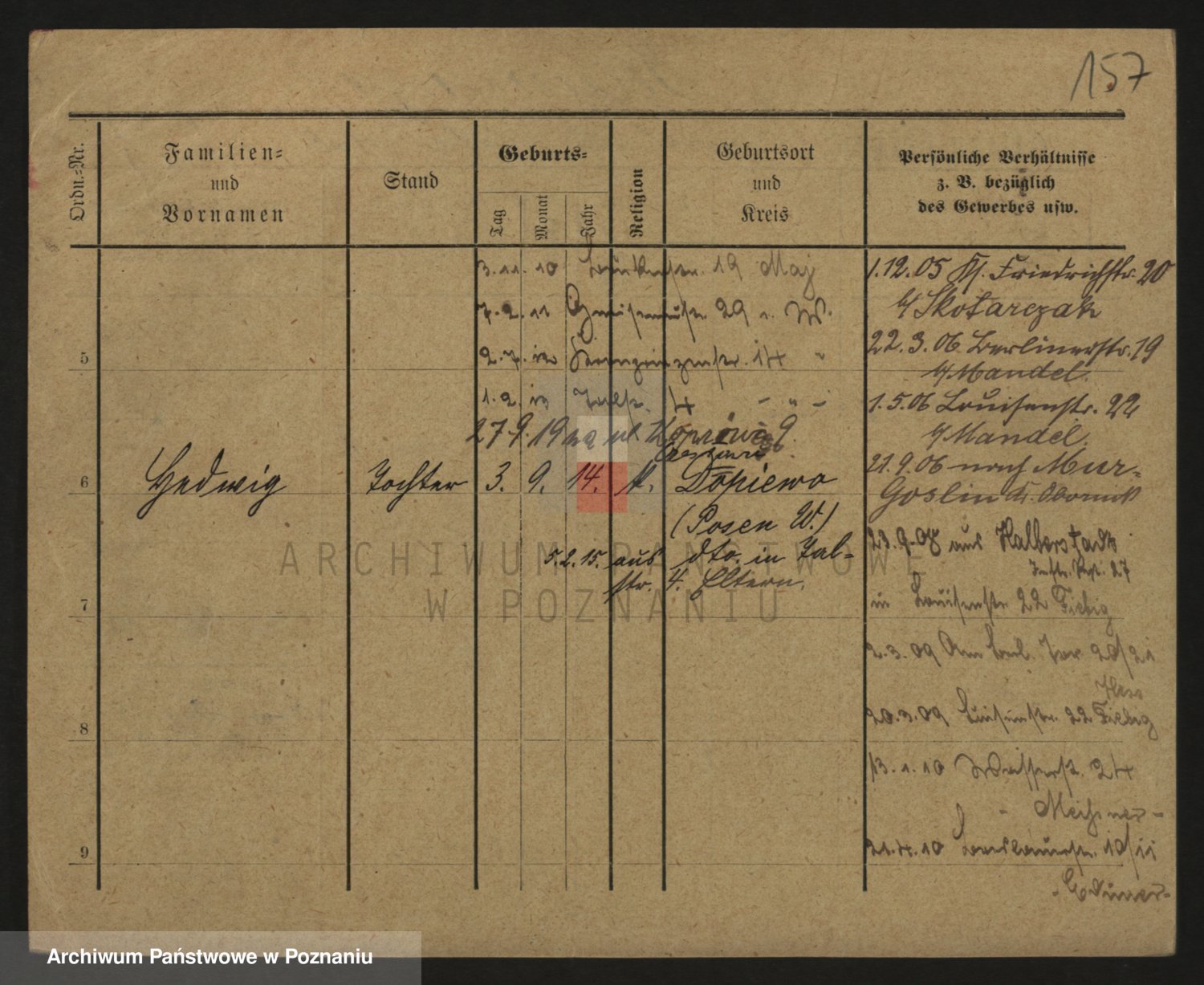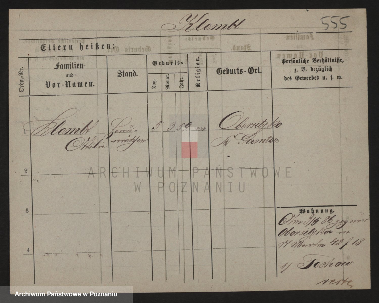 Podgląd karty osobowej dostępny jest po kliknięciu na nazwisko lub ikonkę karty. Można dokonywać powiększenia (ikony na górze) lub przechodzić między kolejnymi skanami (strzałki po bokach).