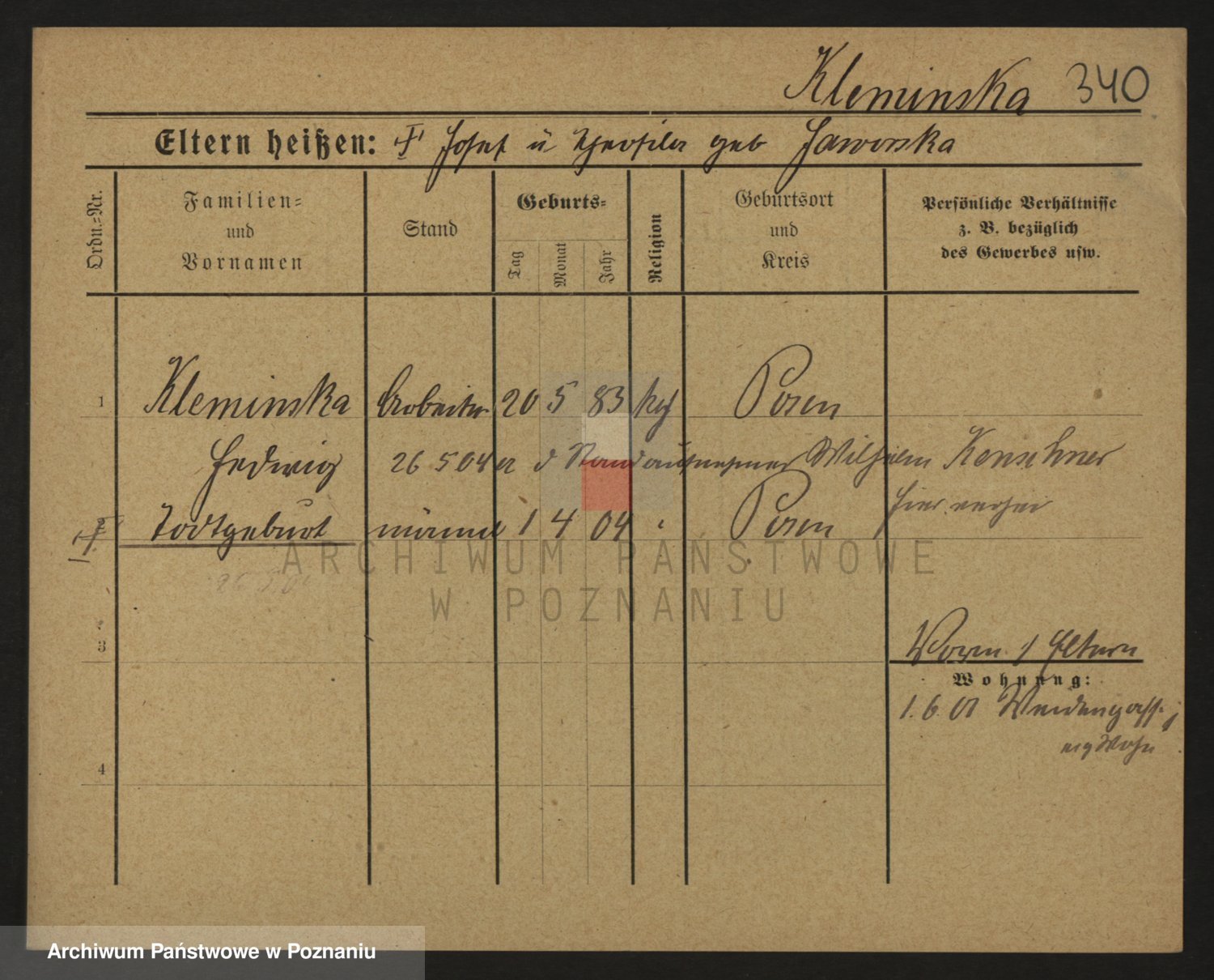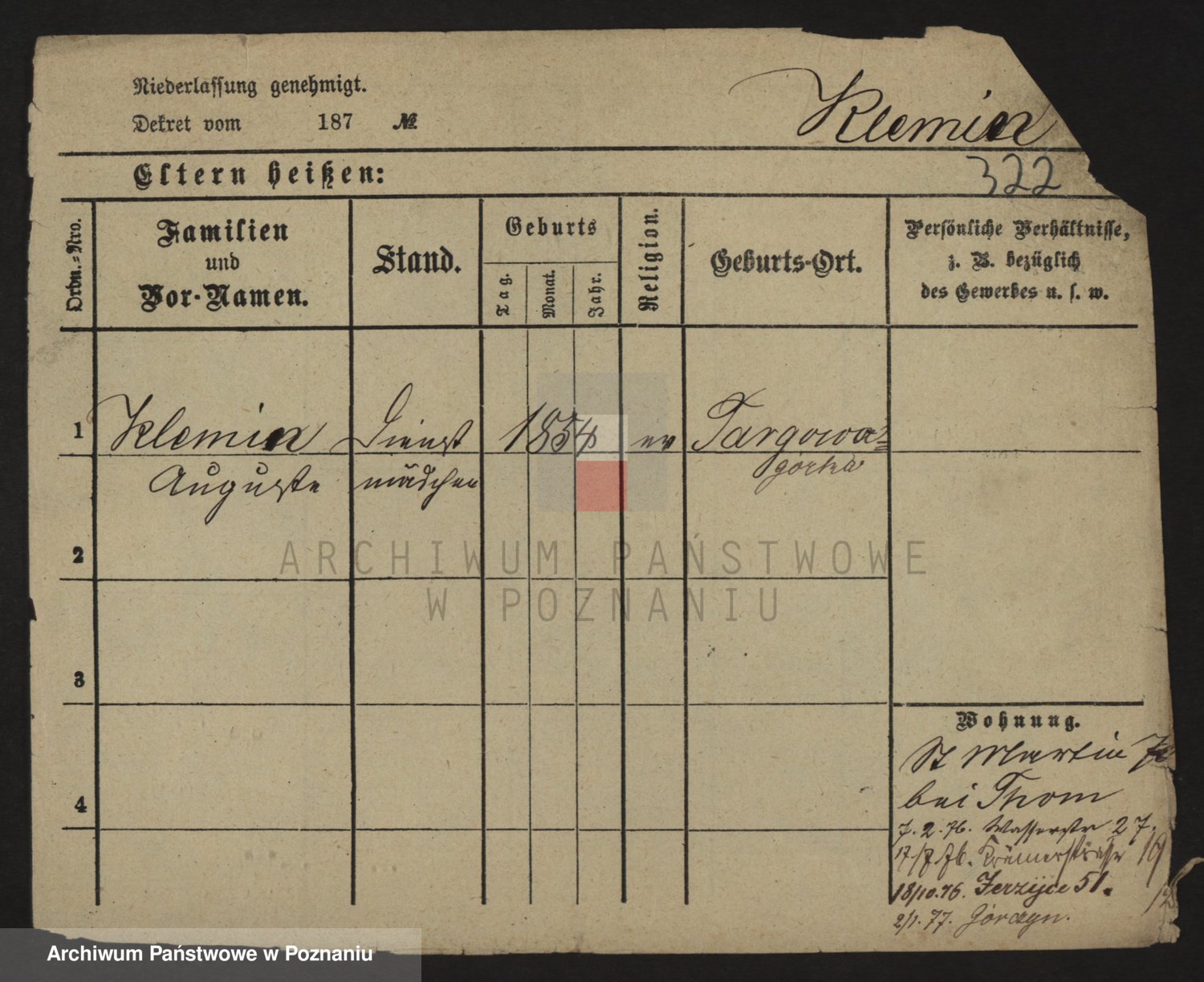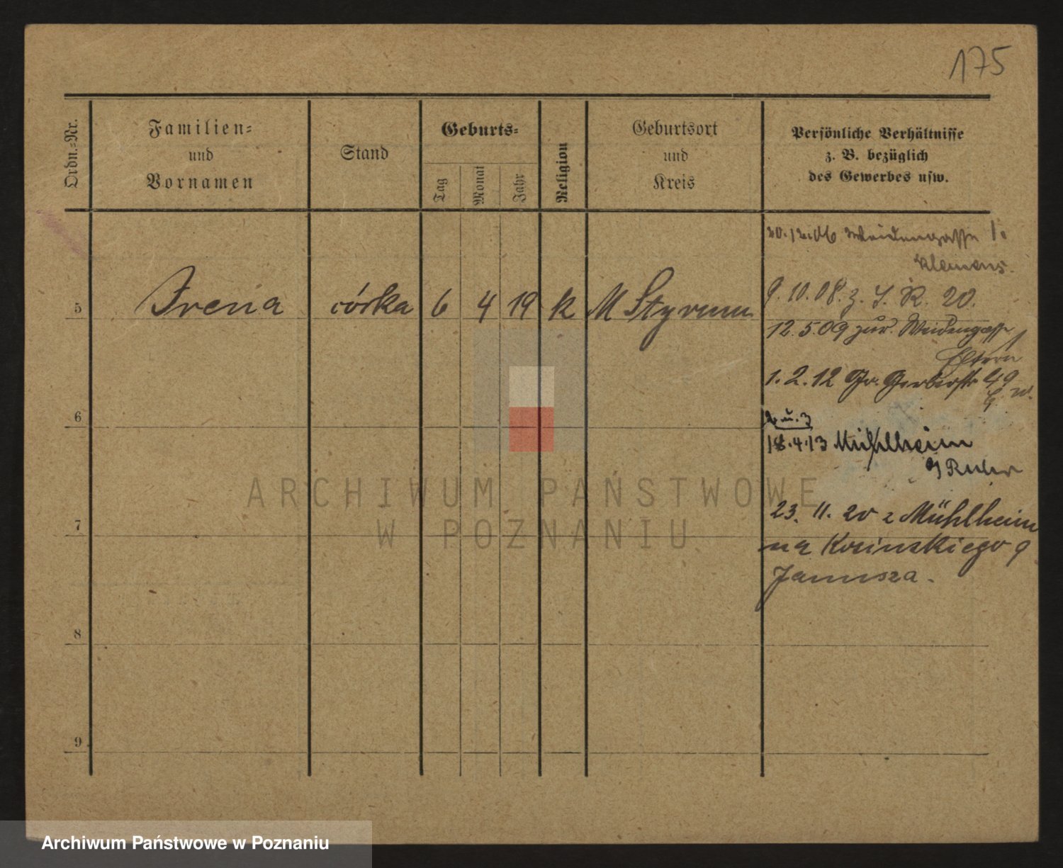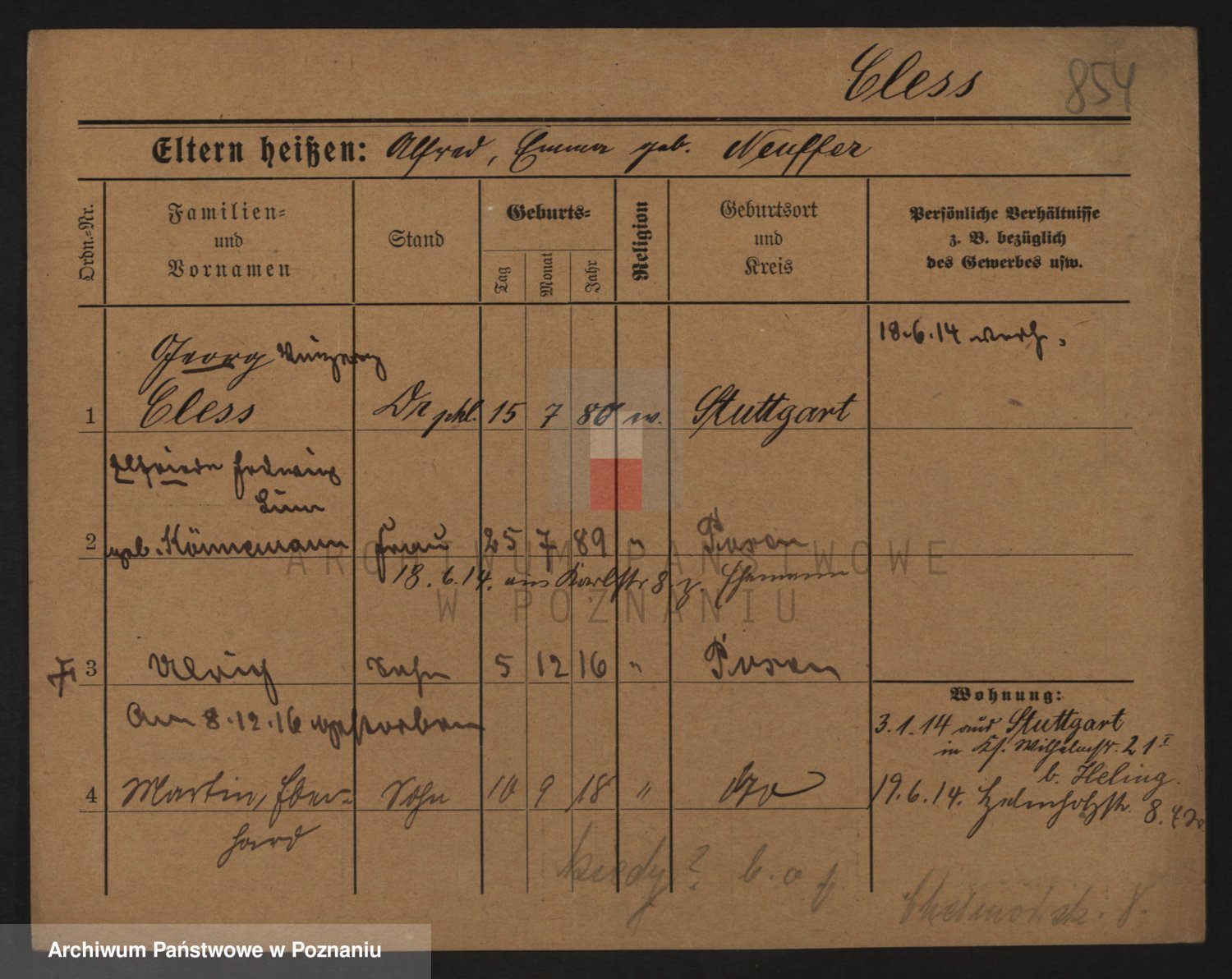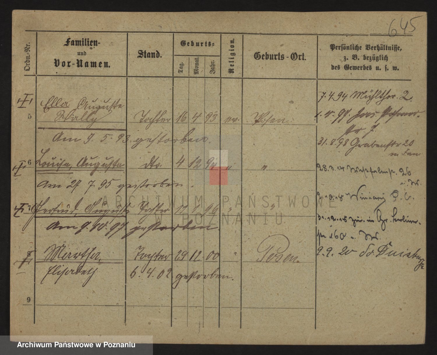 Podgląd karty osobowej dostępny jest po kliknięciu na nazwisko lub ikonkę karty. Można dokonywać powiększenia (ikony na górze) lub przechodzić między kolejnymi skanami (strzałki po bokach).