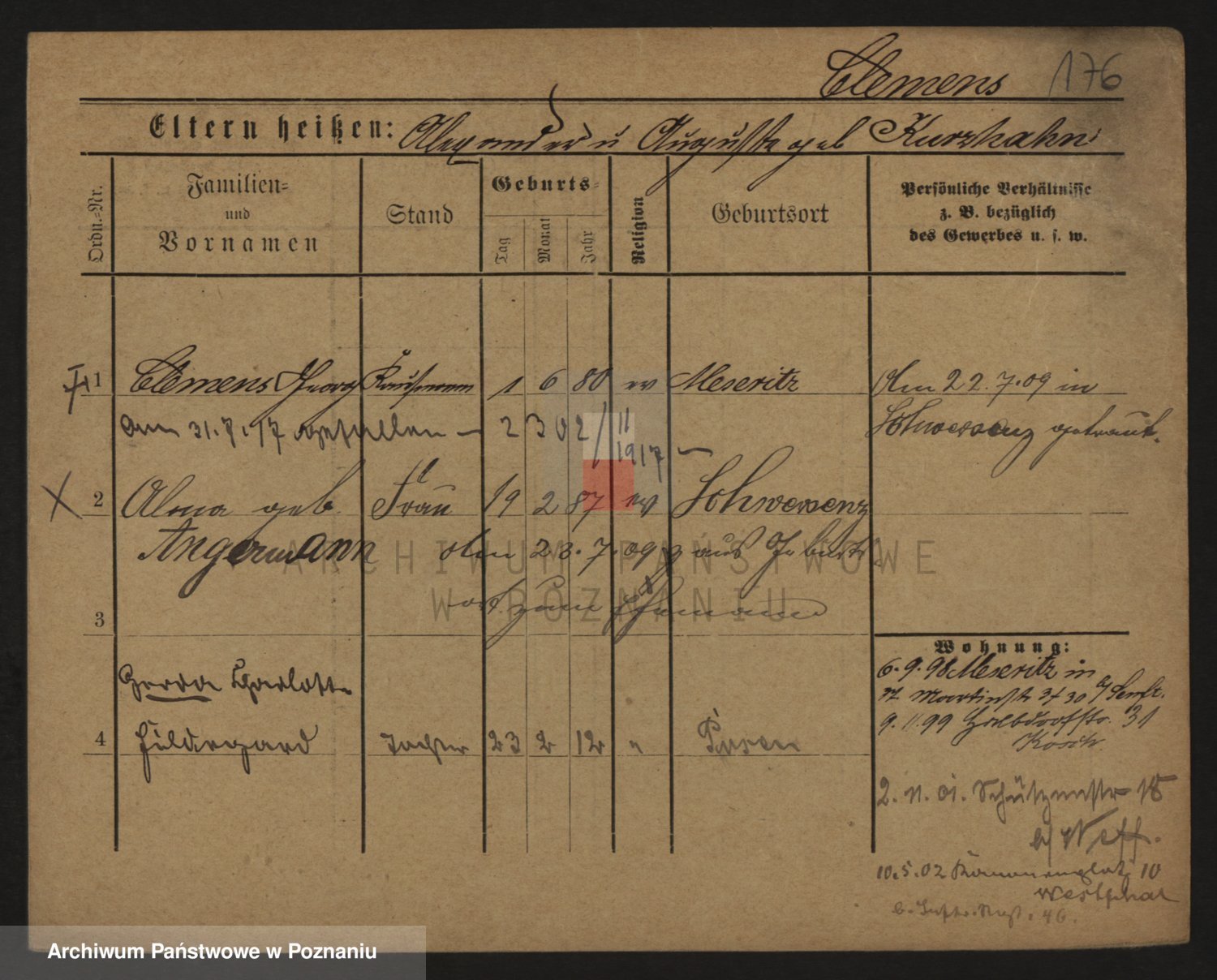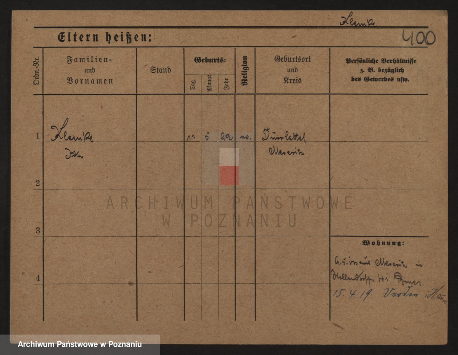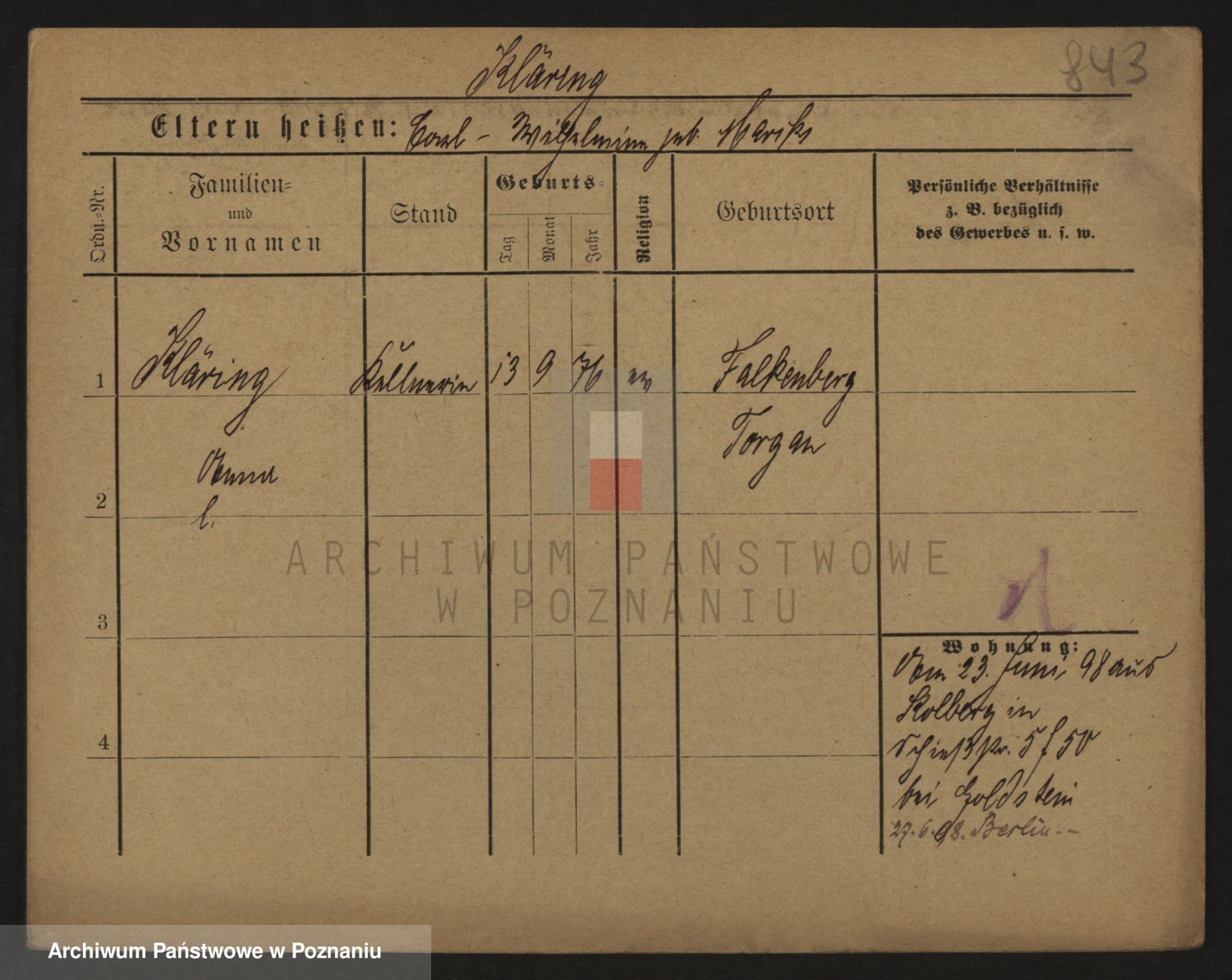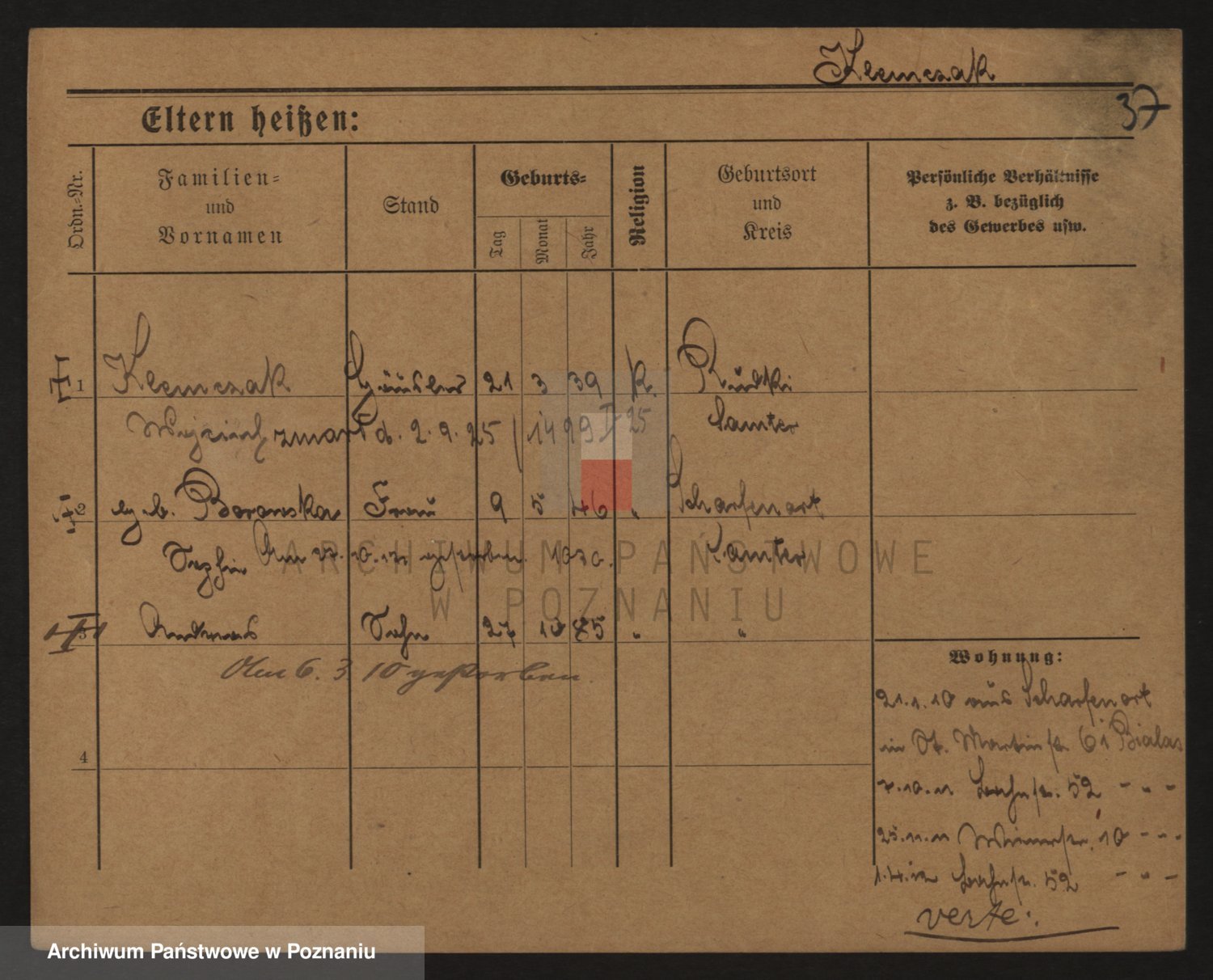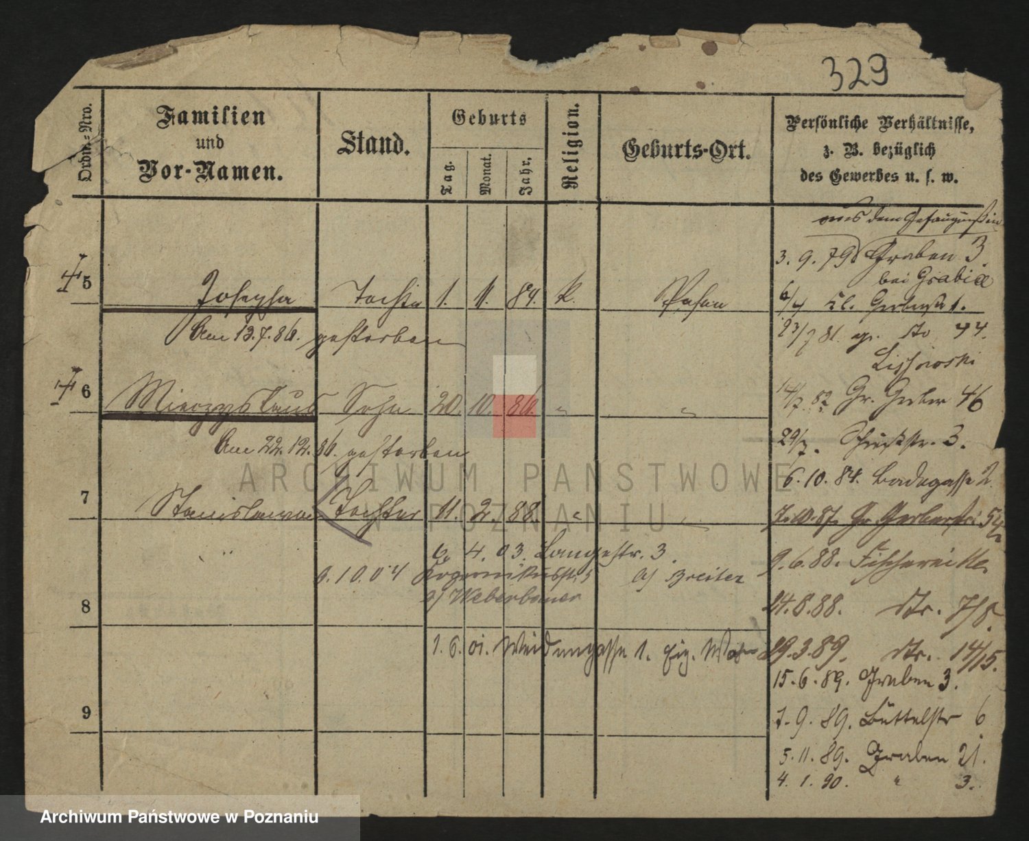 Podgląd karty osobowej dostępny jest po kliknięciu na nazwisko lub ikonkę karty. Można dokonywać powiększenia (ikony na górze) lub przechodzić między kolejnymi skanami (strzałki po bokach).
