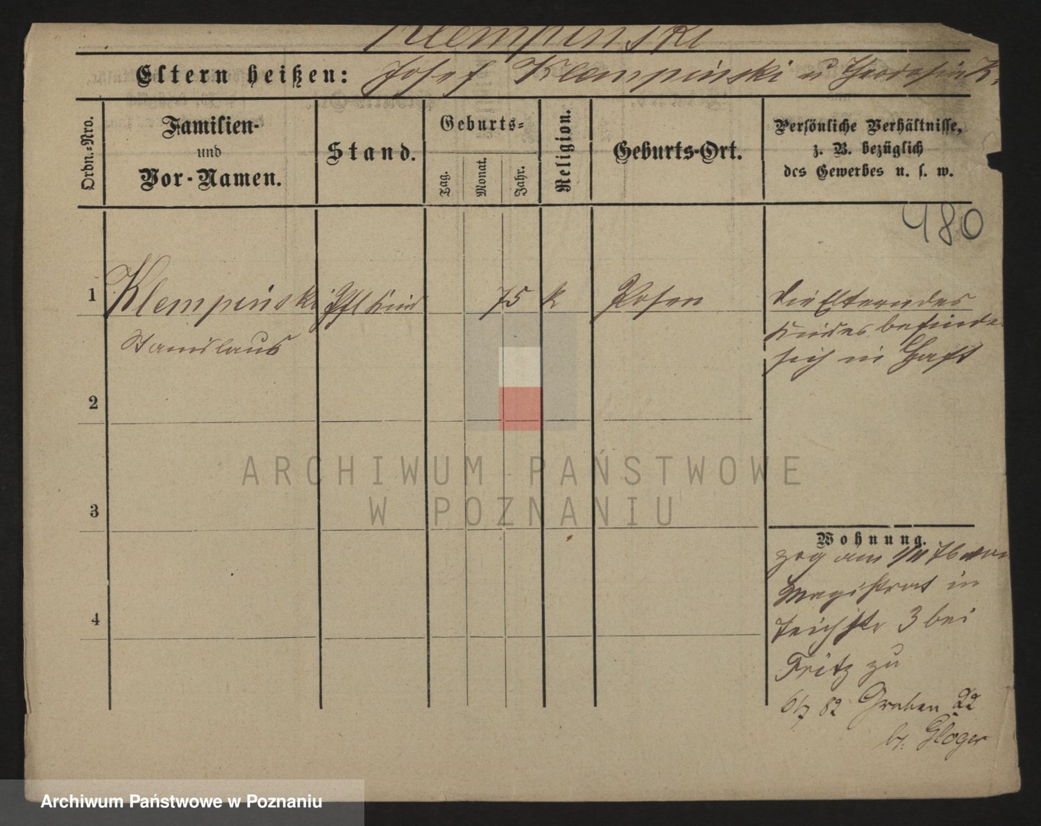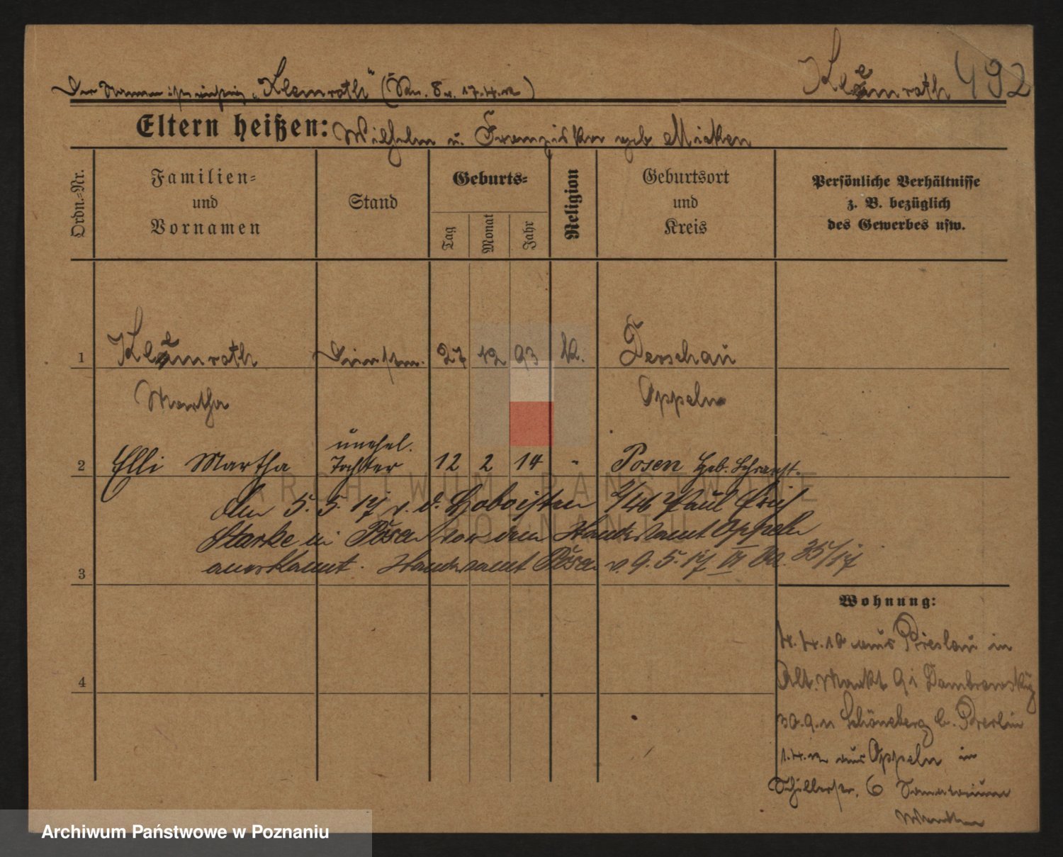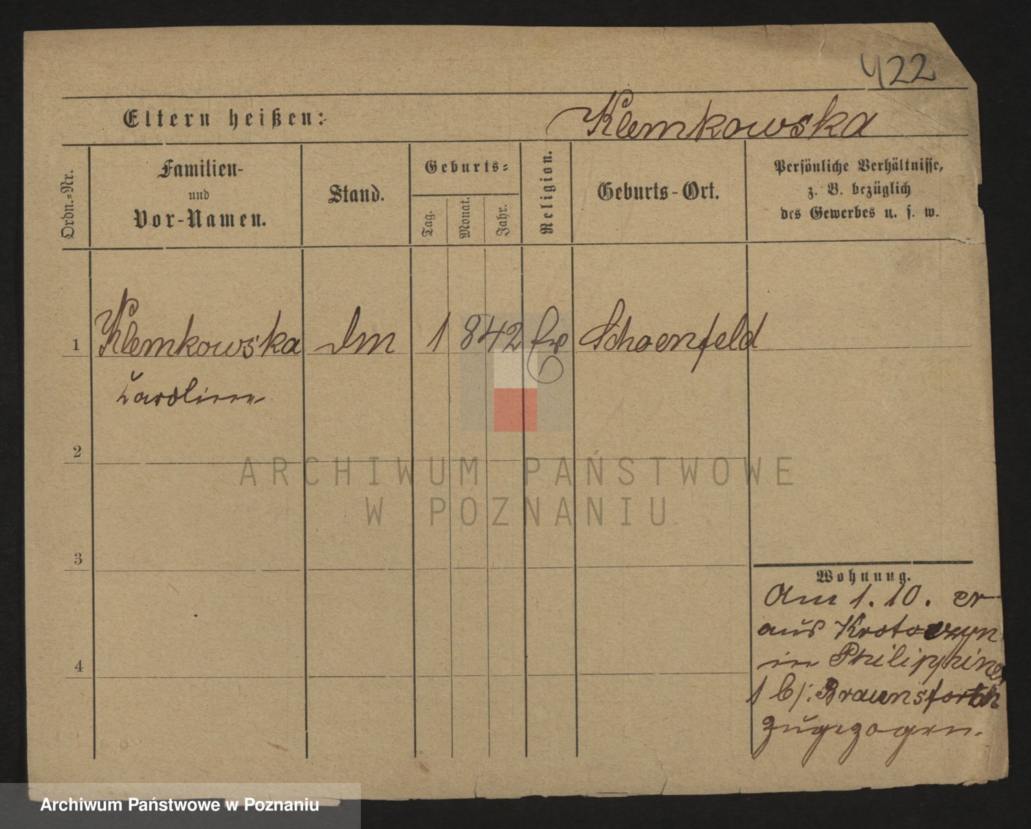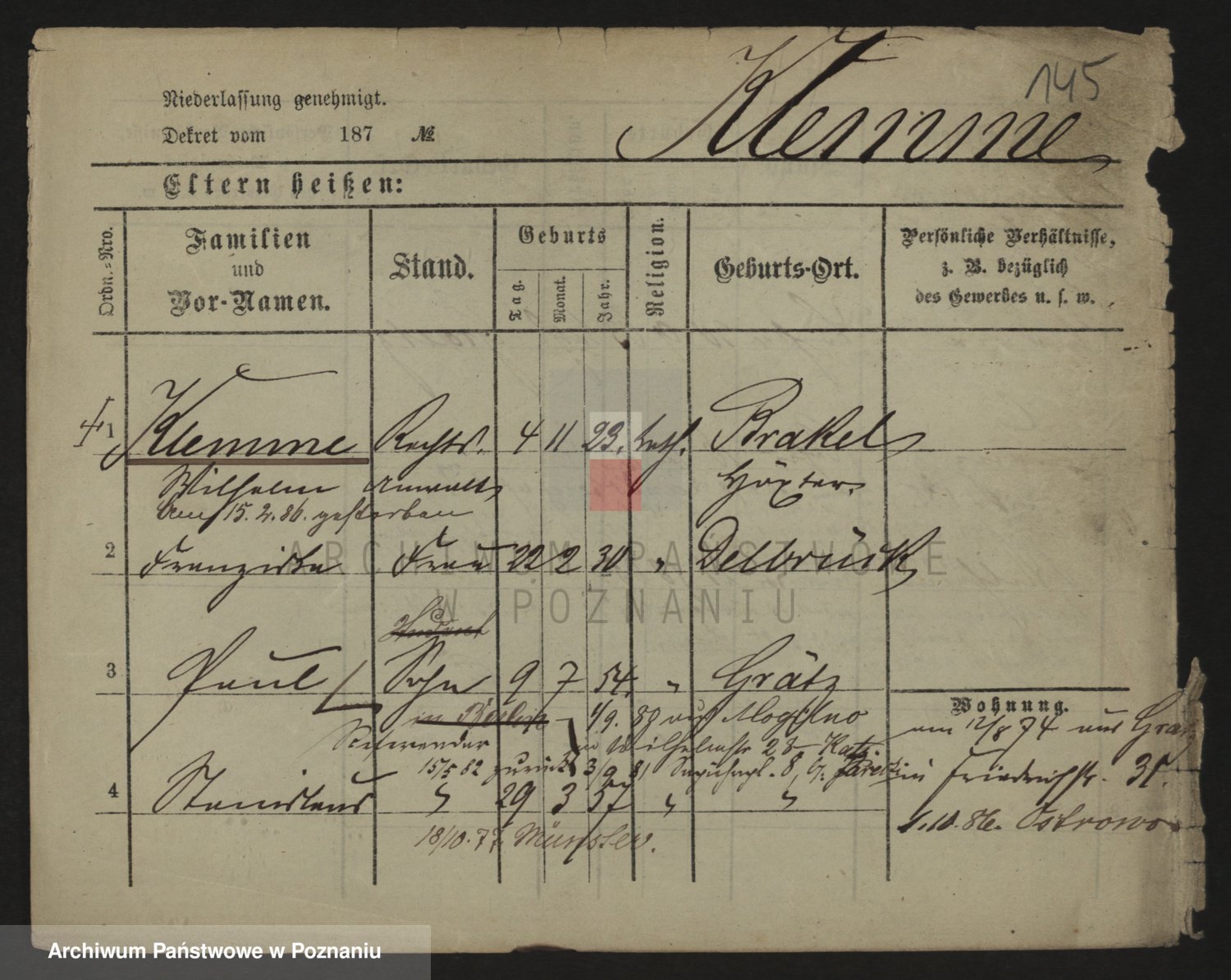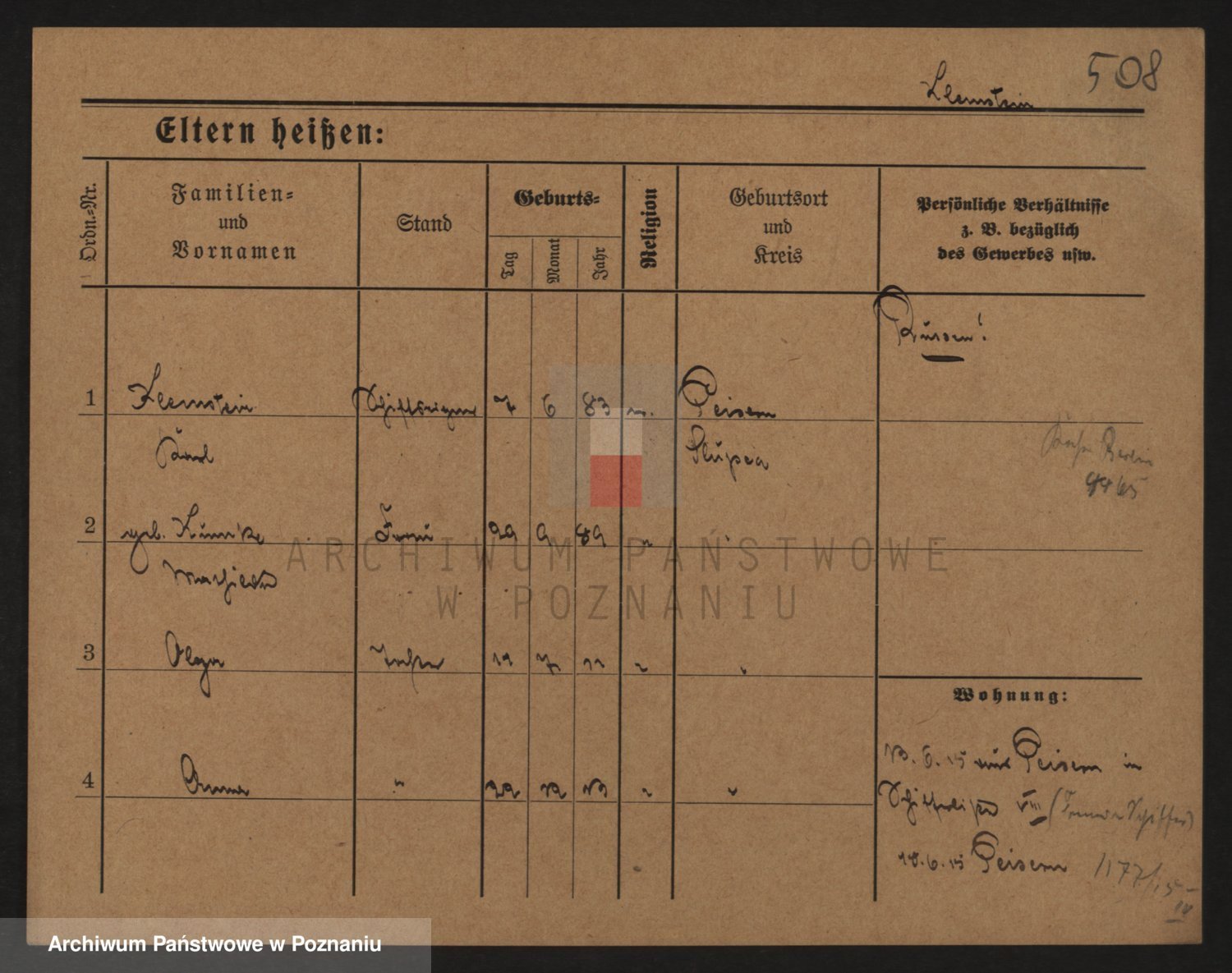 Podgląd karty osobowej dostępny jest po kliknięciu na nazwisko lub ikonkę karty. Można dokonywać powiększenia (ikony na górze) lub przechodzić między kolejnymi skanami (strzałki po bokach).