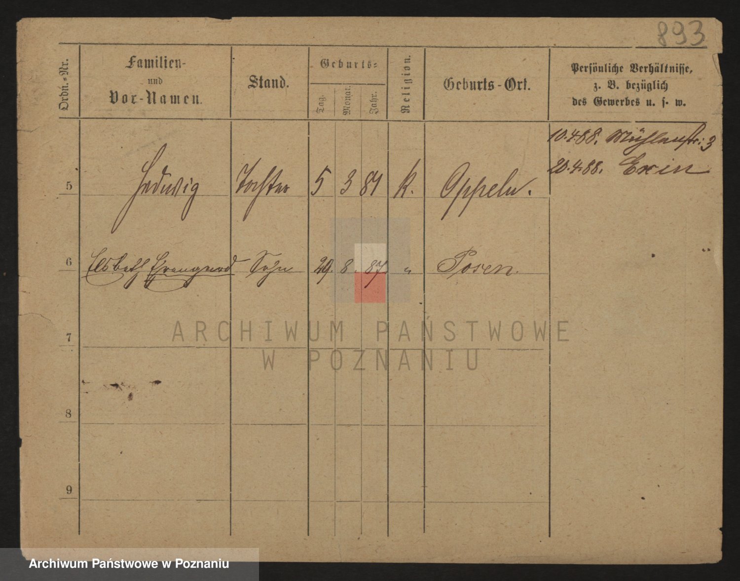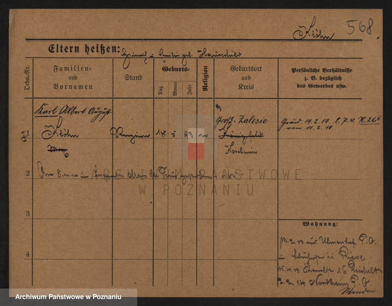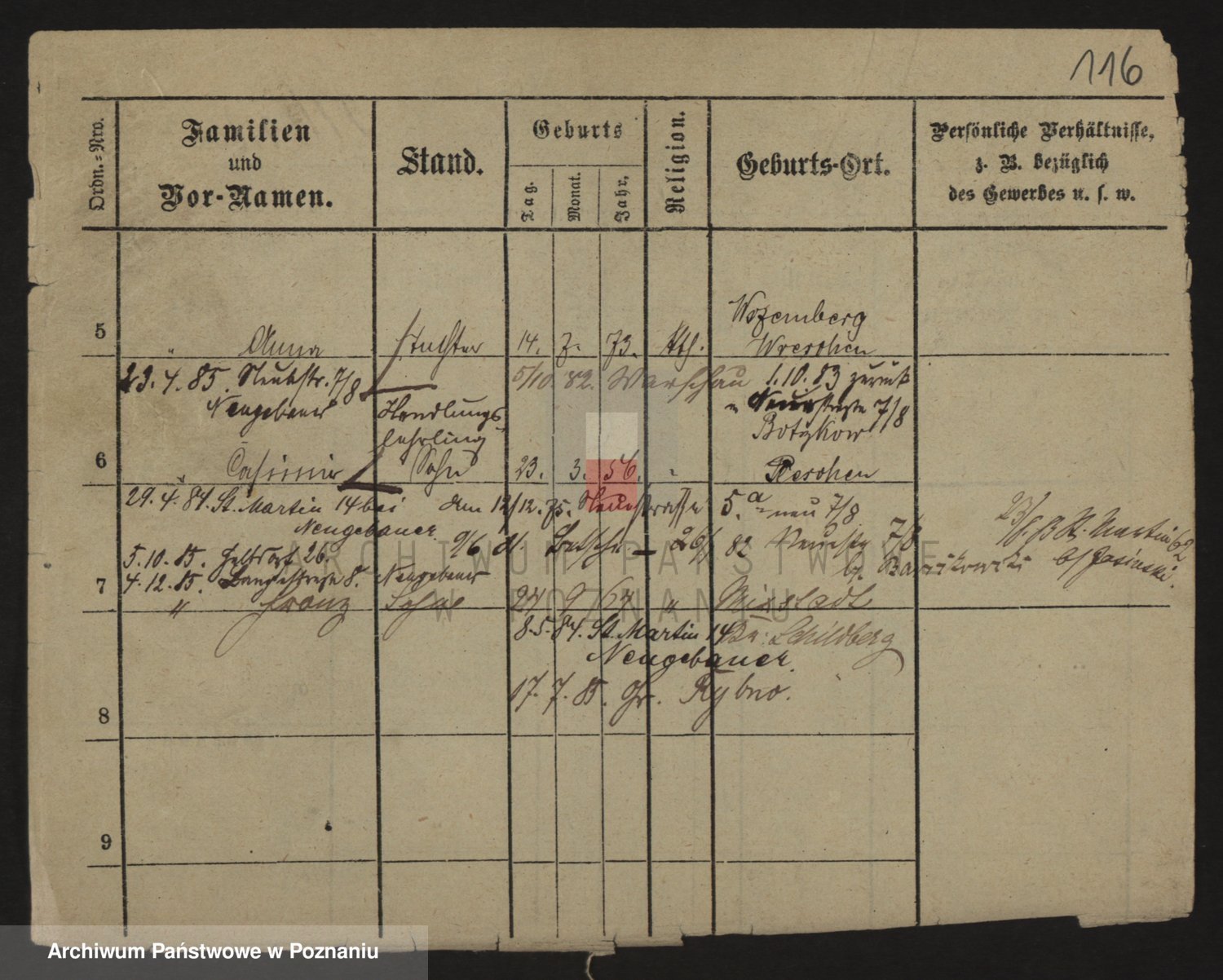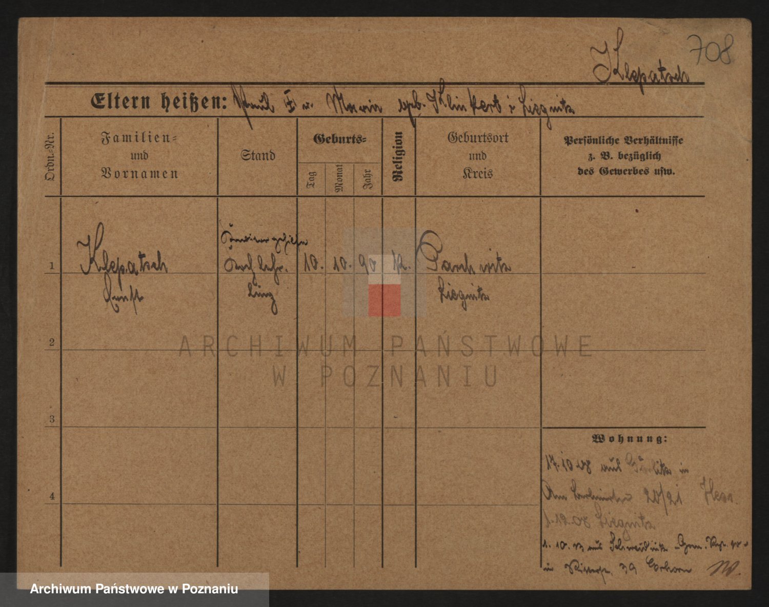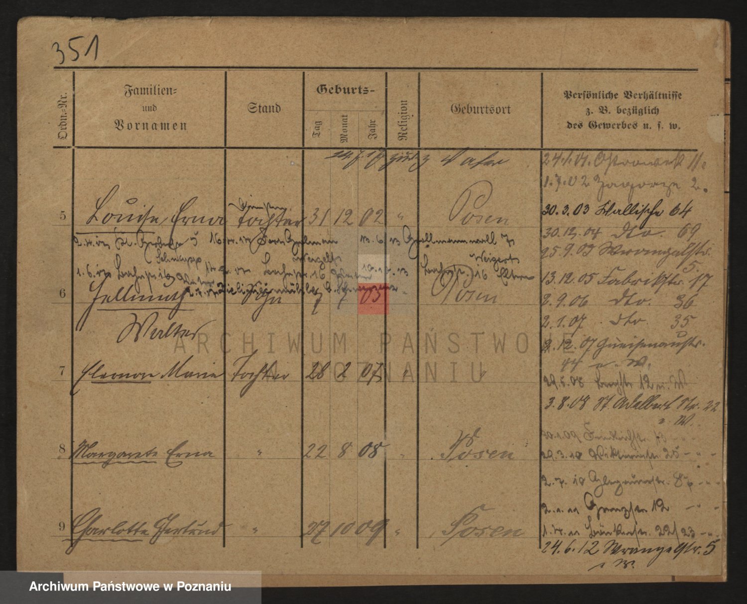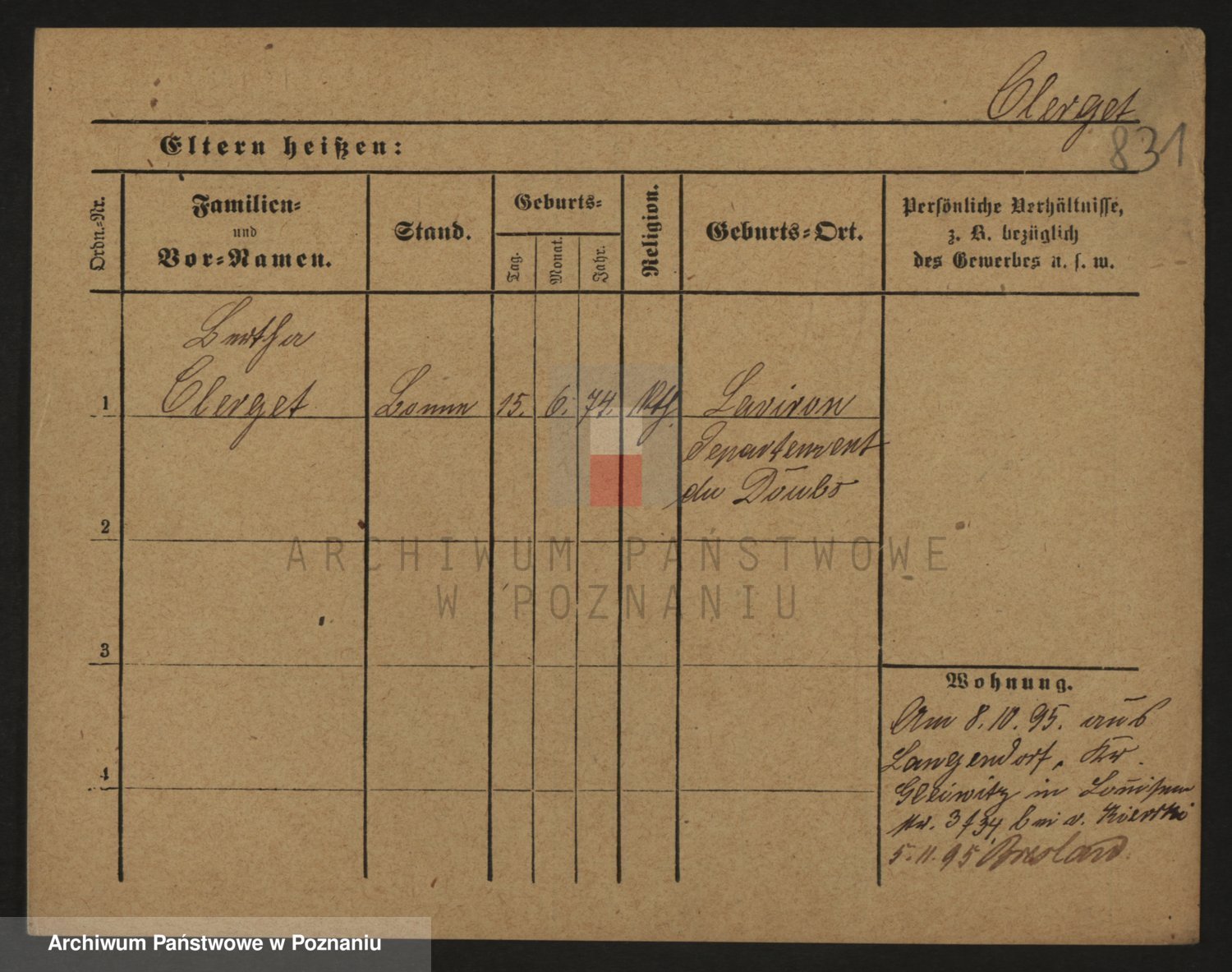 Podgląd karty osobowej dostępny jest po kliknięciu na nazwisko lub ikonkę karty. Można dokonywać powiększenia (ikony na górze) lub przechodzić między kolejnymi skanami (strzałki po bokach).