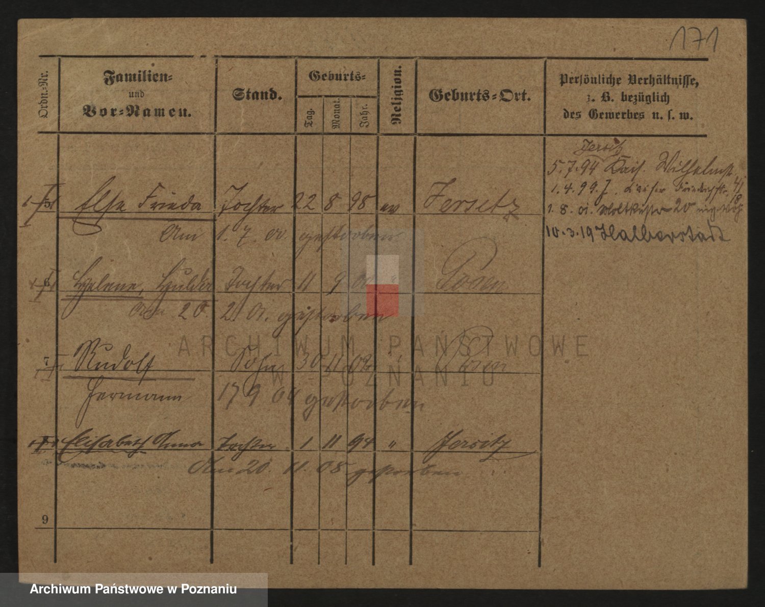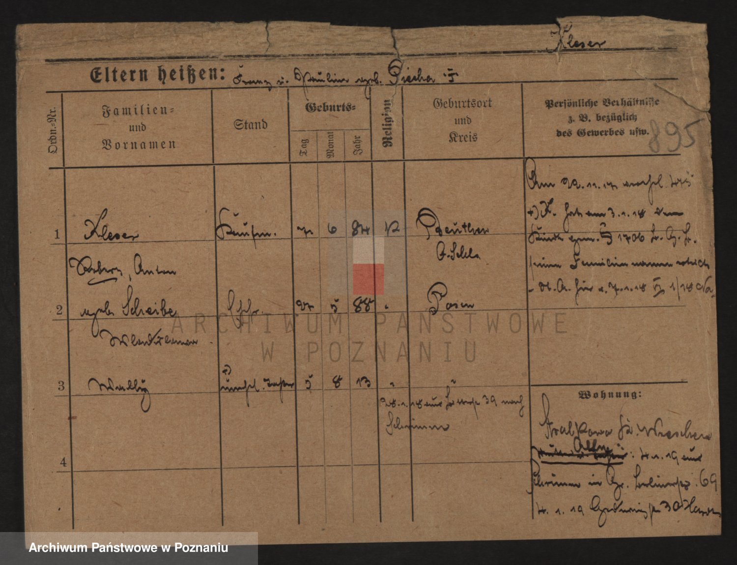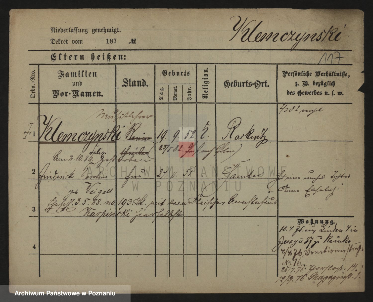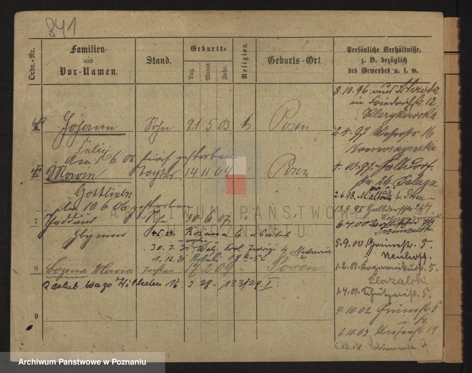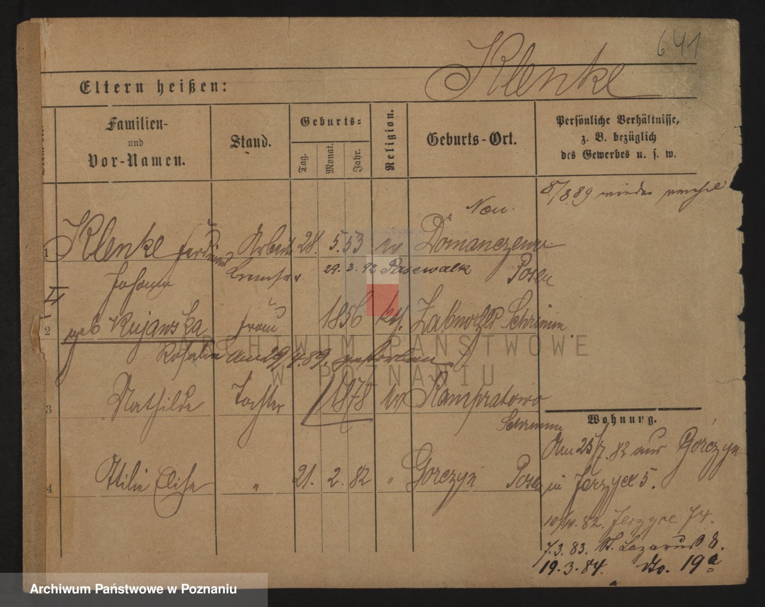 Podgląd karty osobowej dostępny jest po kliknięciu na nazwisko lub ikonkę karty. Można dokonywać powiększenia (ikony na górze) lub przechodzić między kolejnymi skanami (strzałki po bokach).