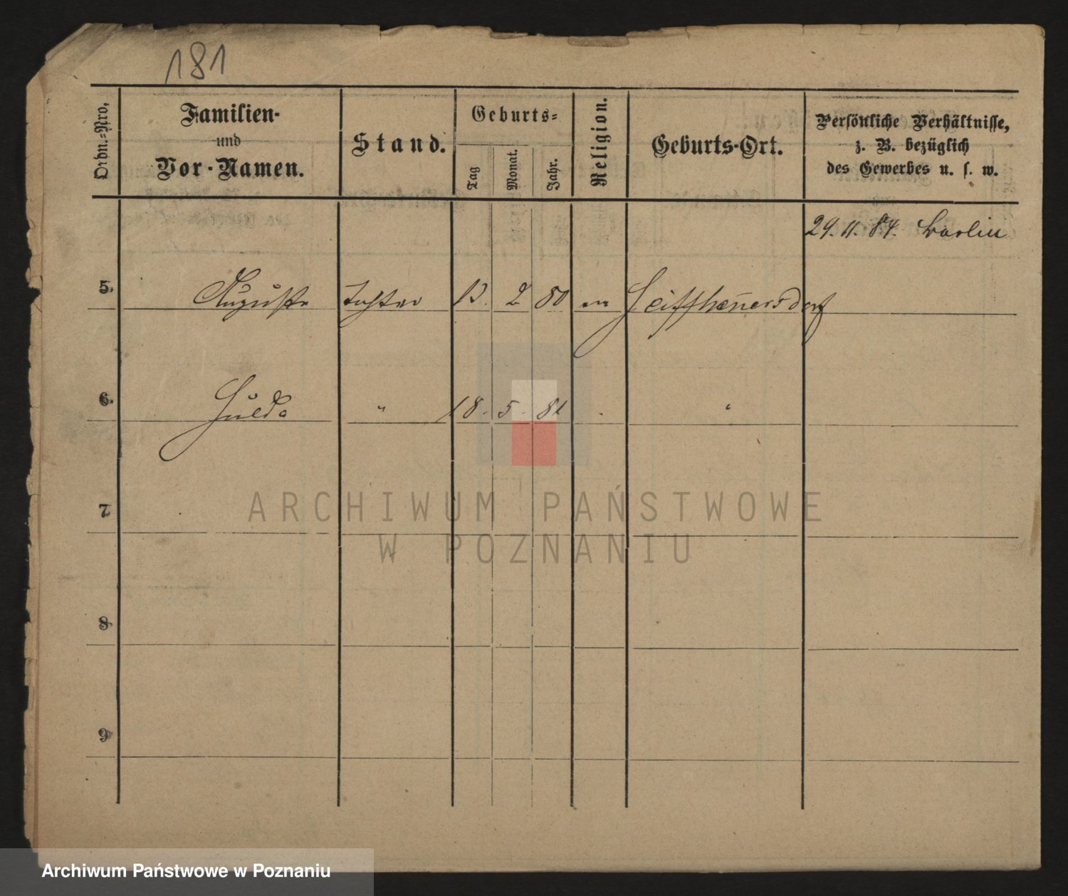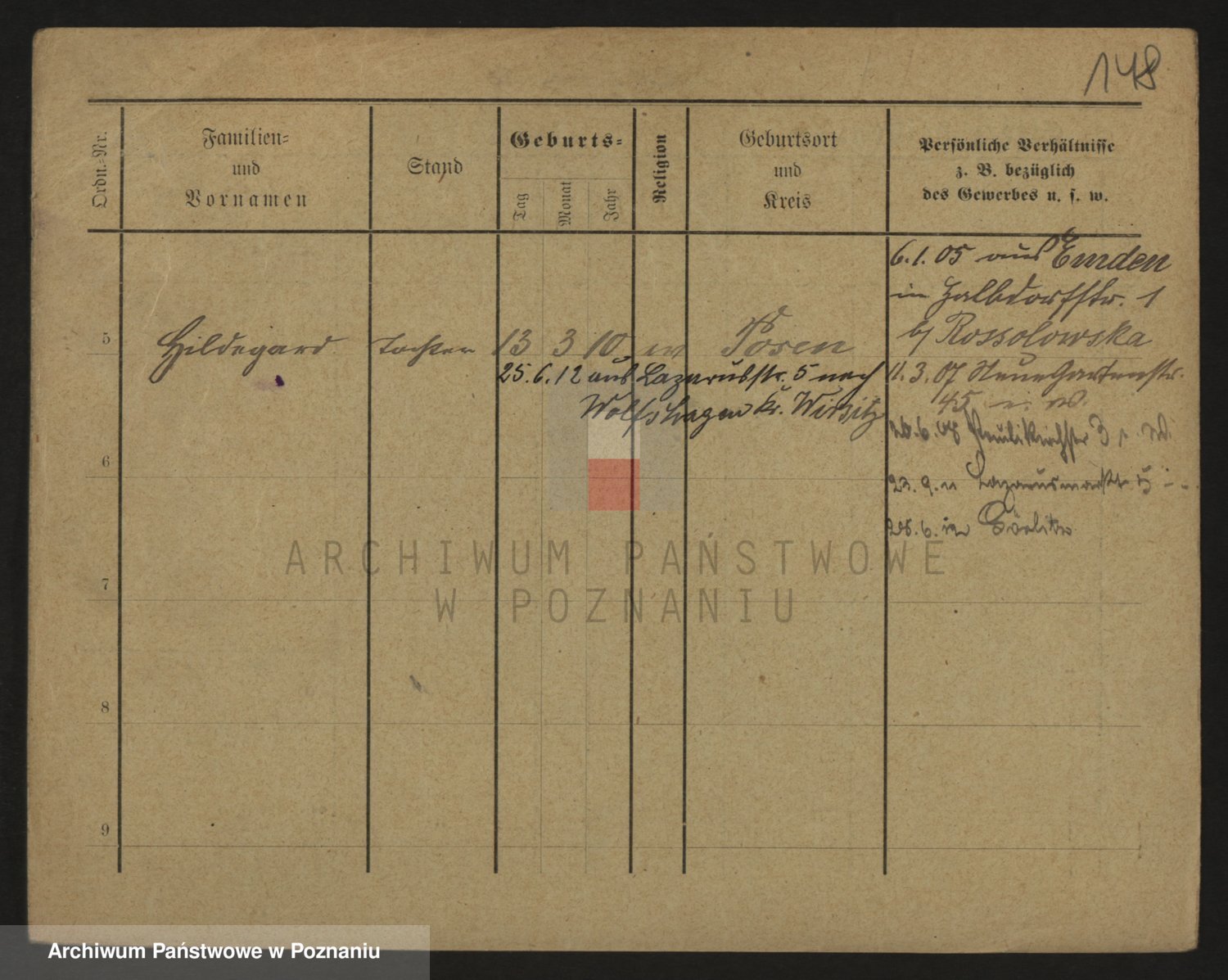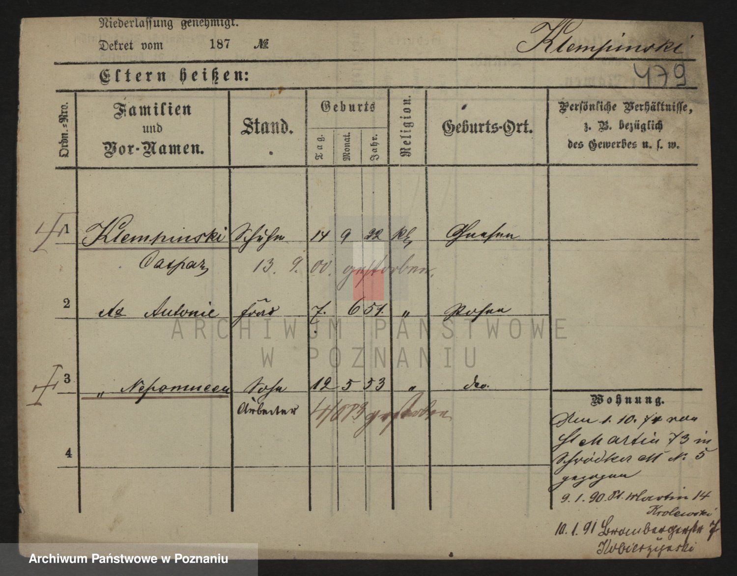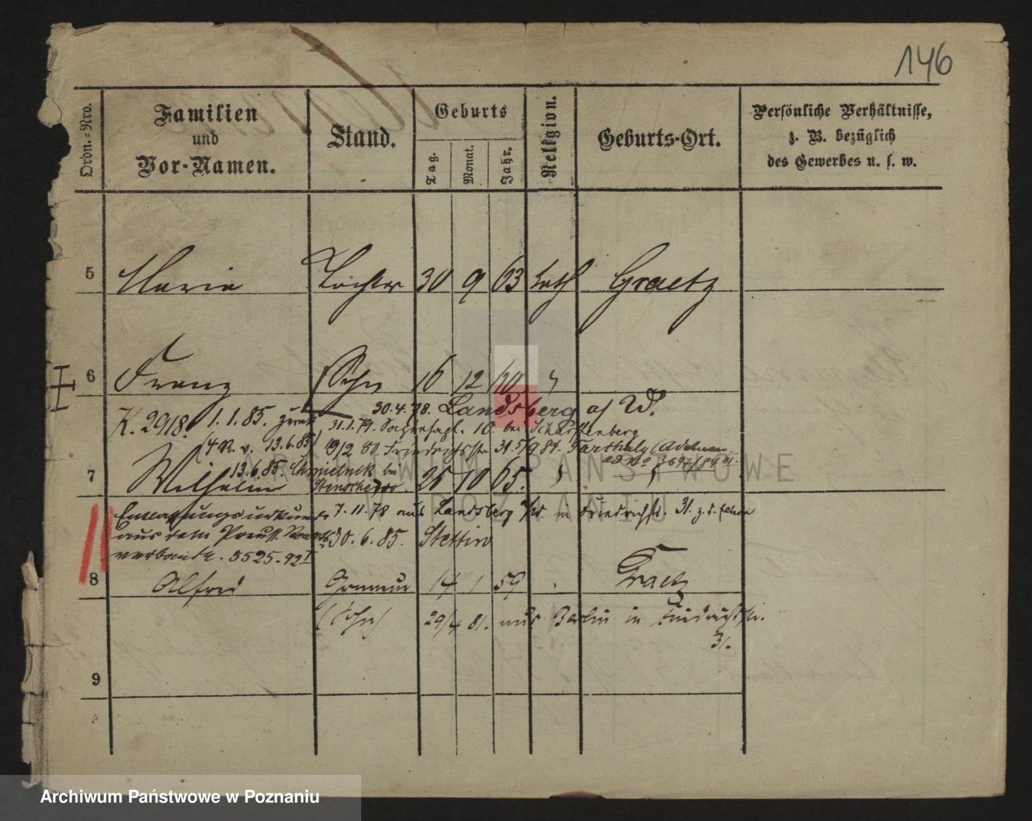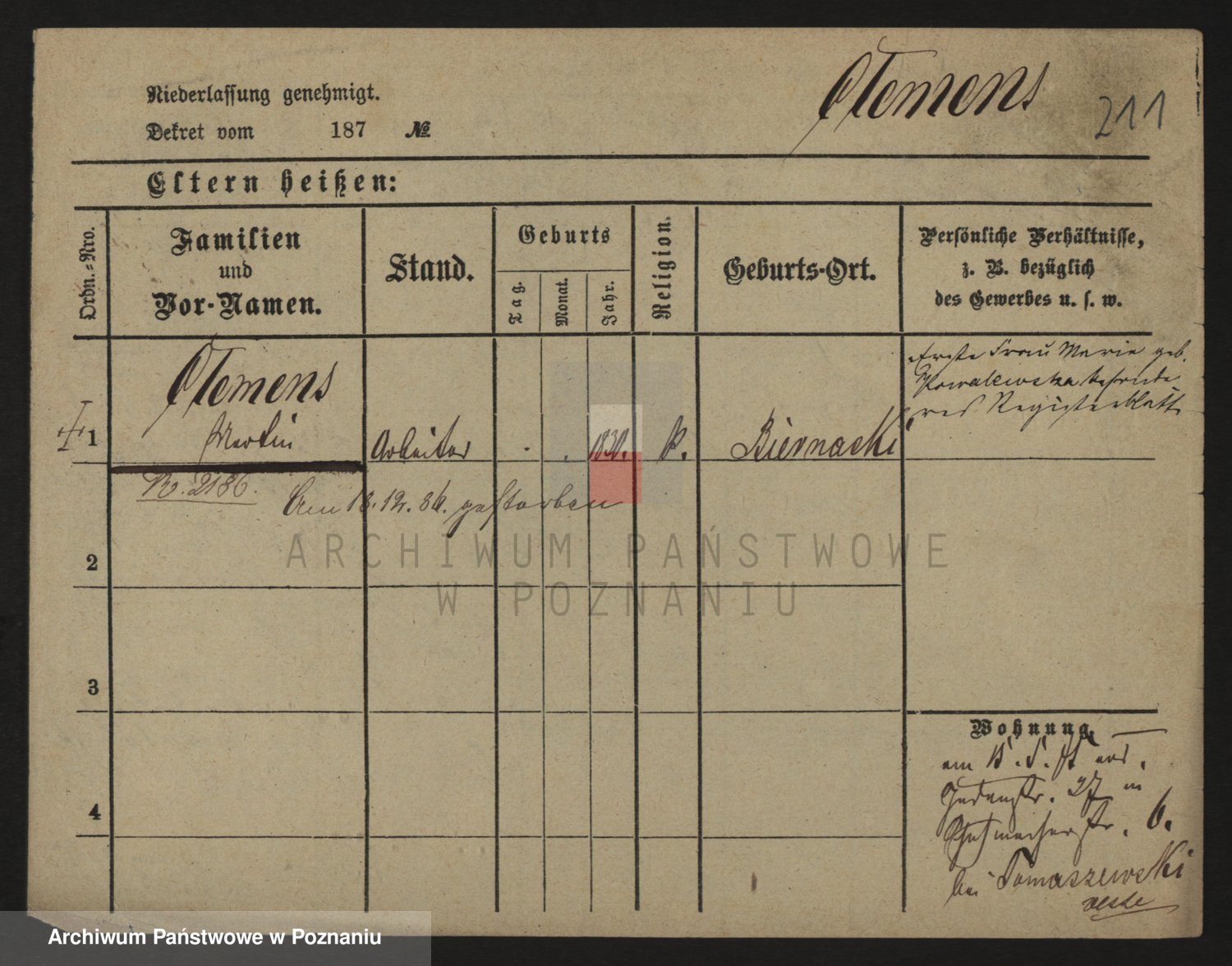 Podgląd karty osobowej dostępny jest po kliknięciu na nazwisko lub ikonkę karty. Można dokonywać powiększenia (ikony na górze) lub przechodzić między kolejnymi skanami (strzałki po bokach).
