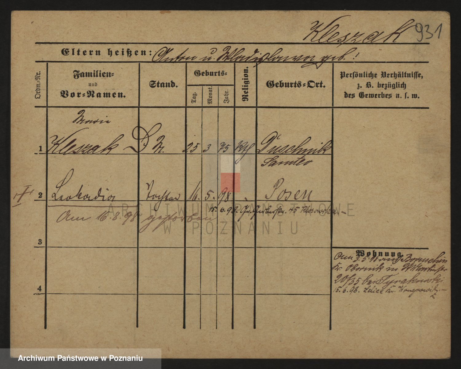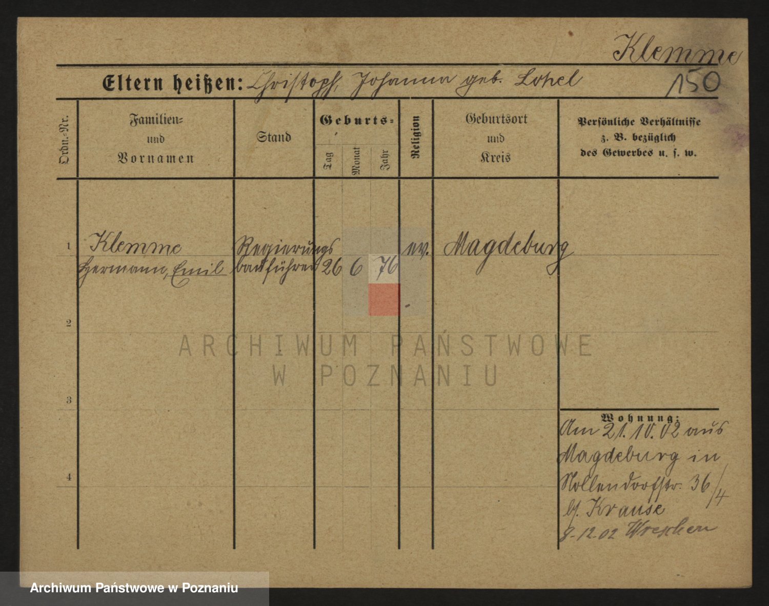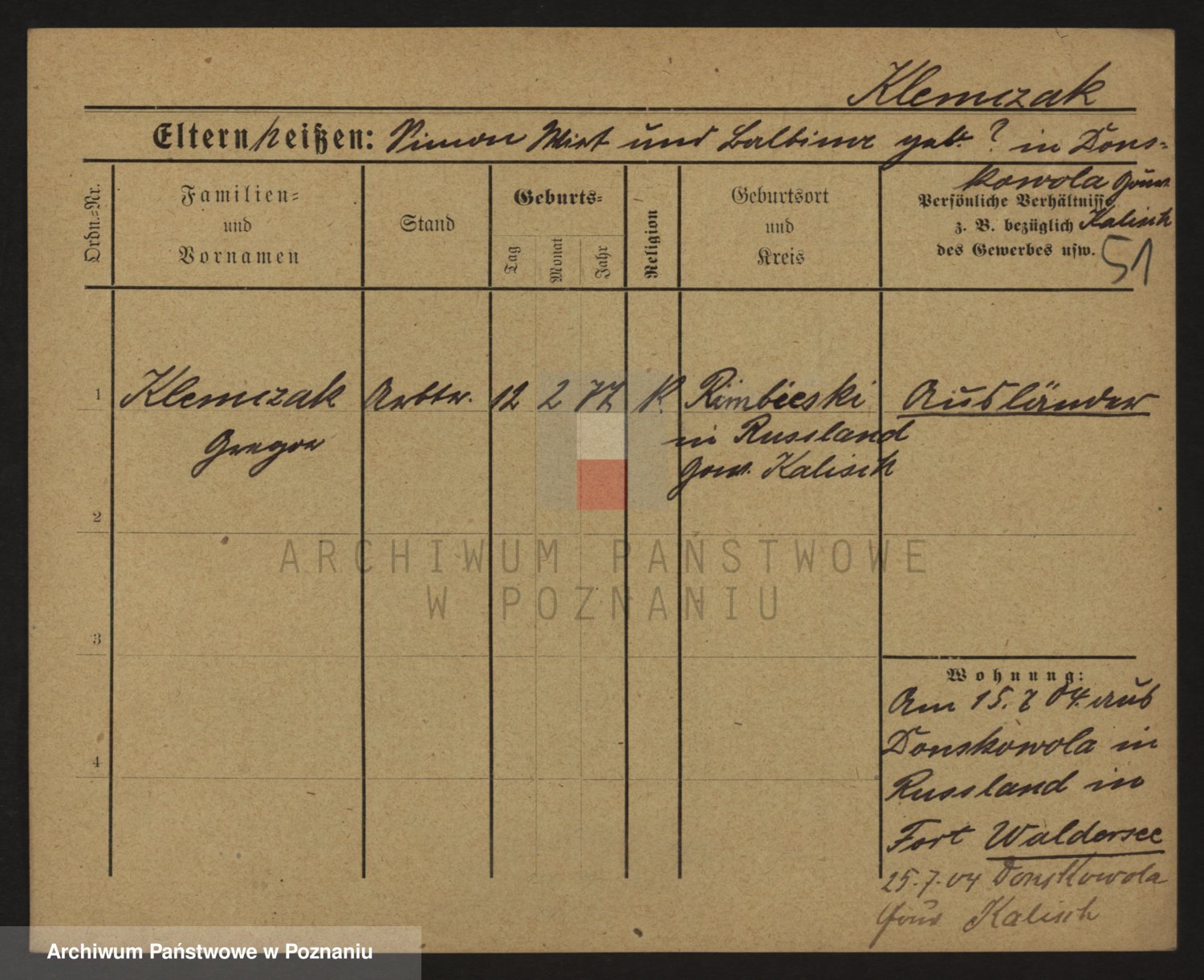 Klemczak, Friedrich Wilhelm