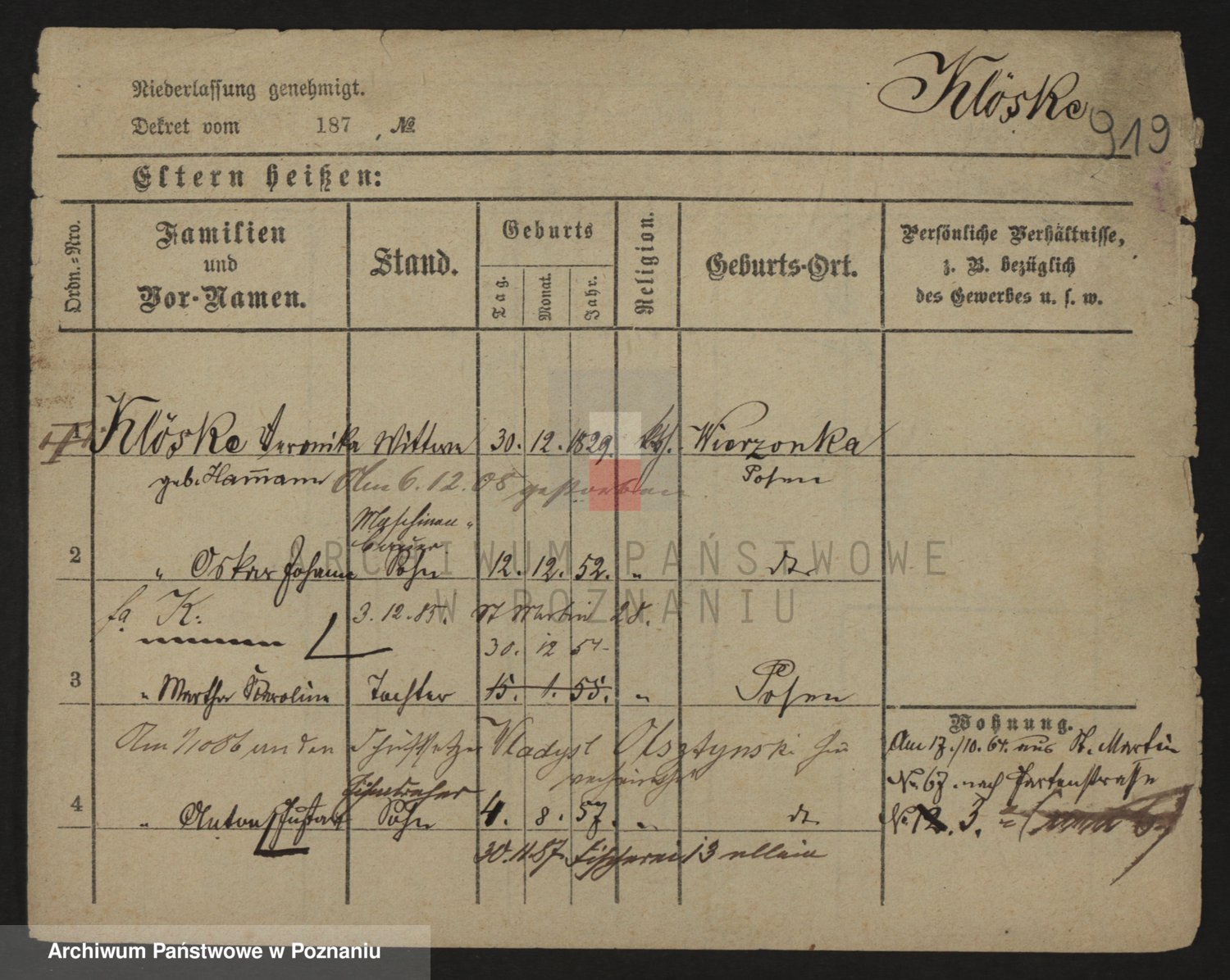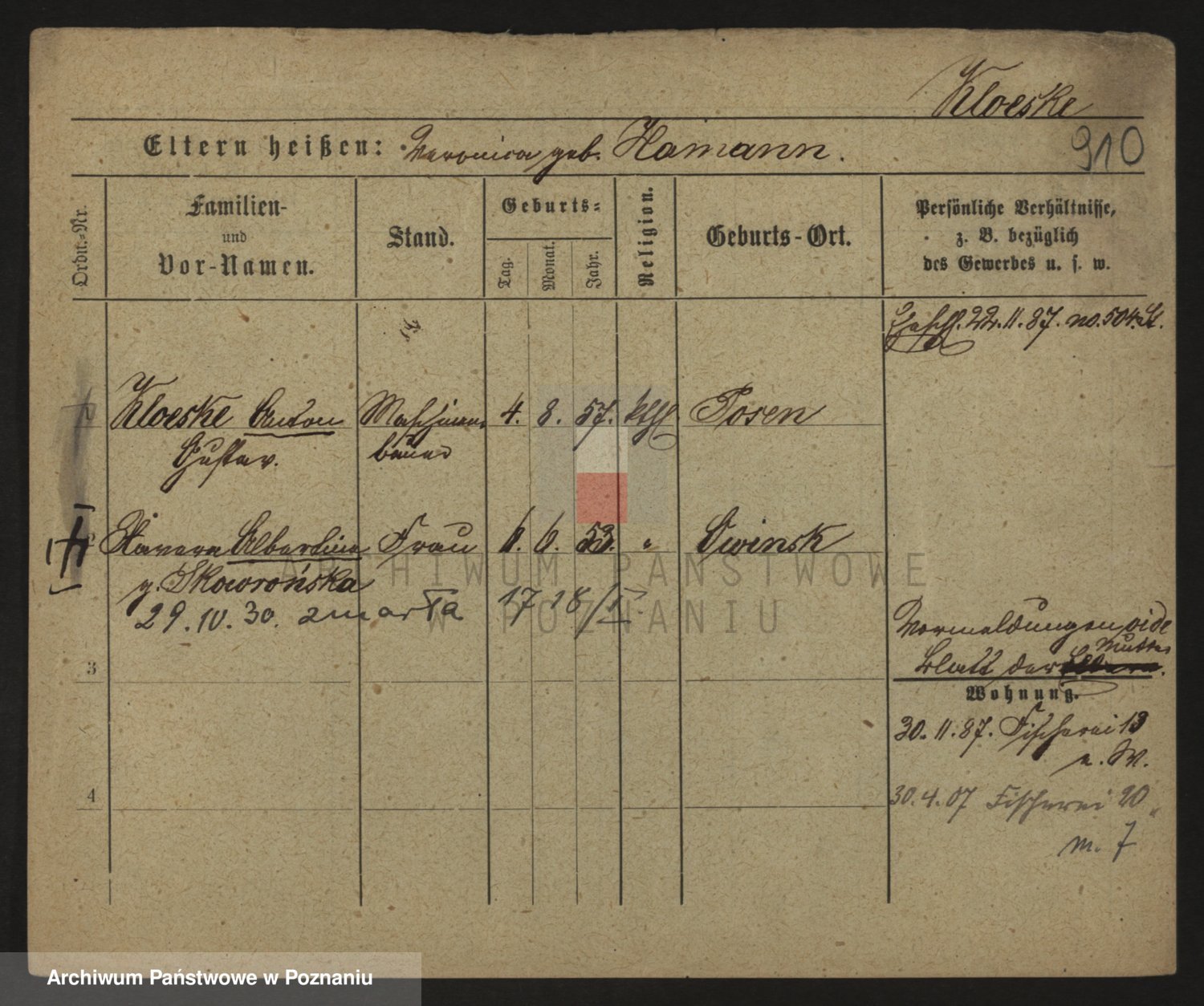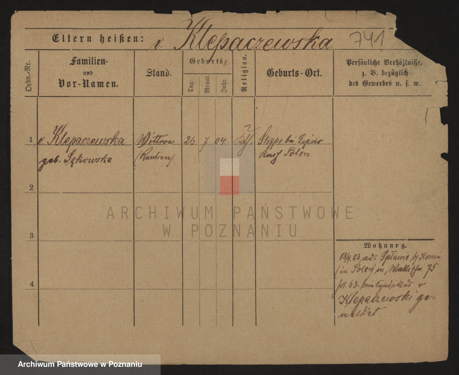 Kloeske z d. Wawrzyniak, Marja