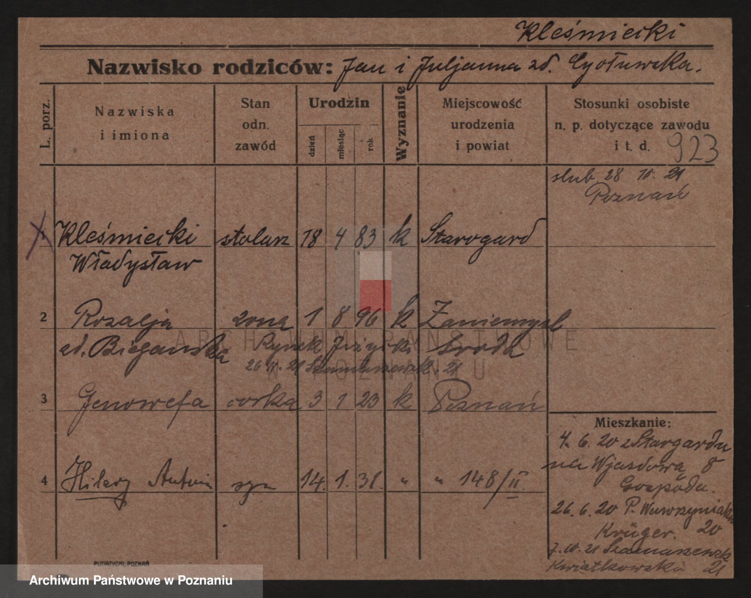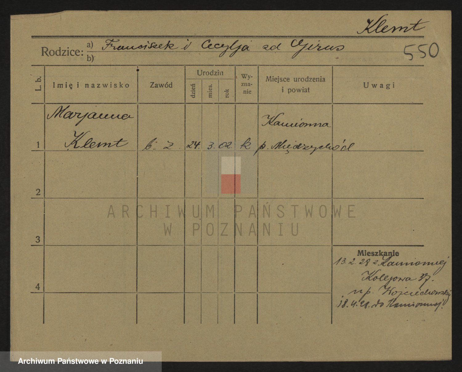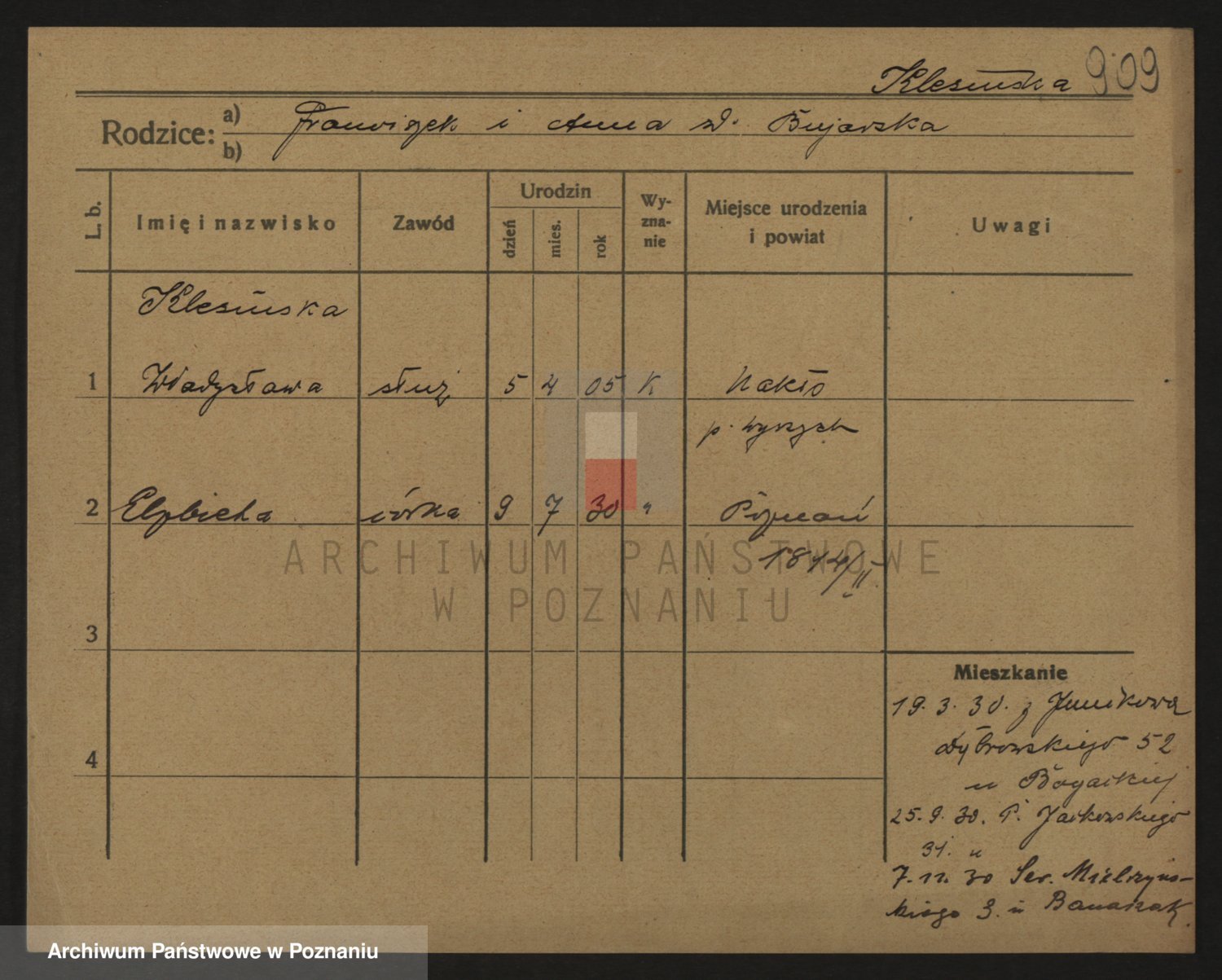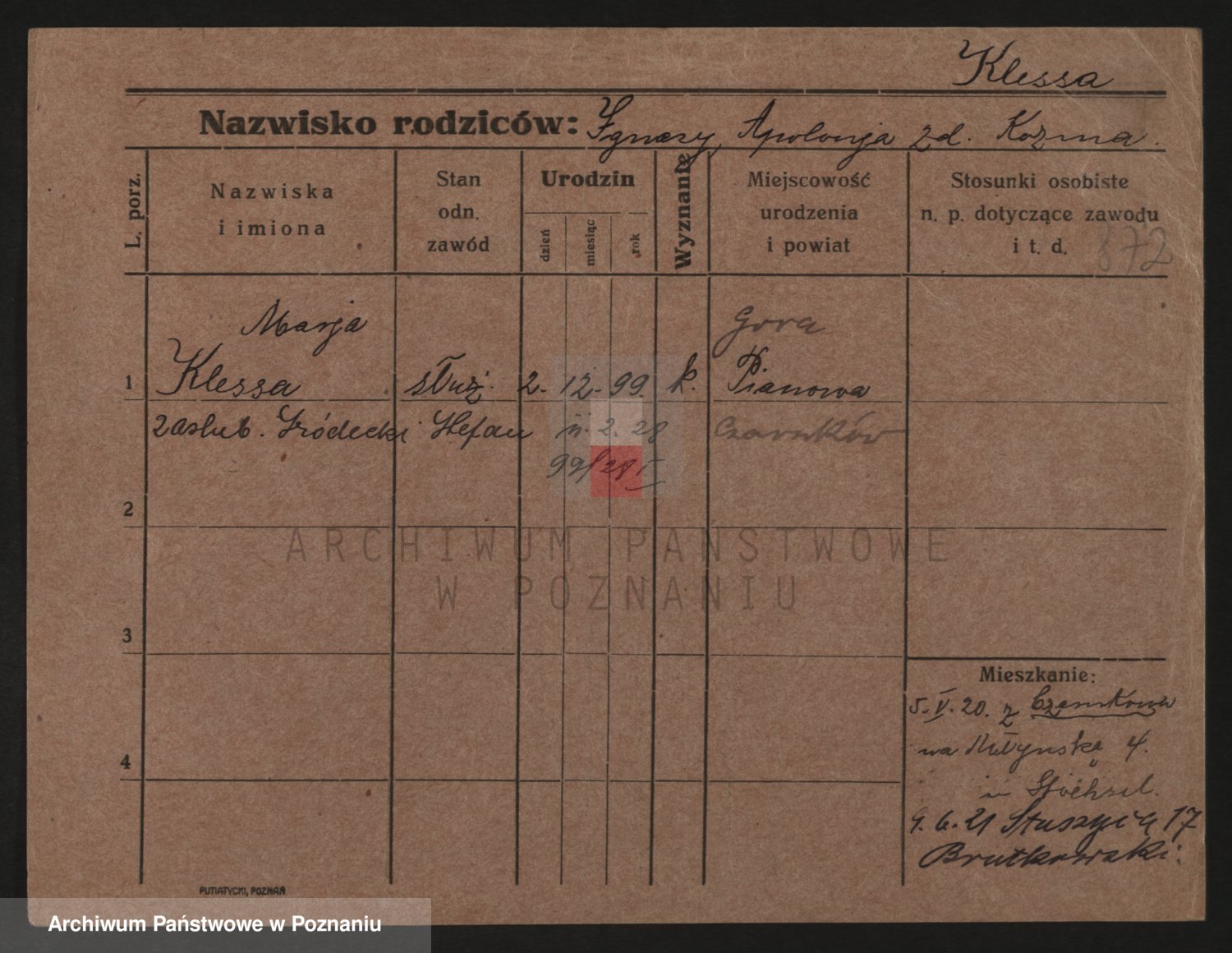 Kleszak z d. Cudzinska, Marie