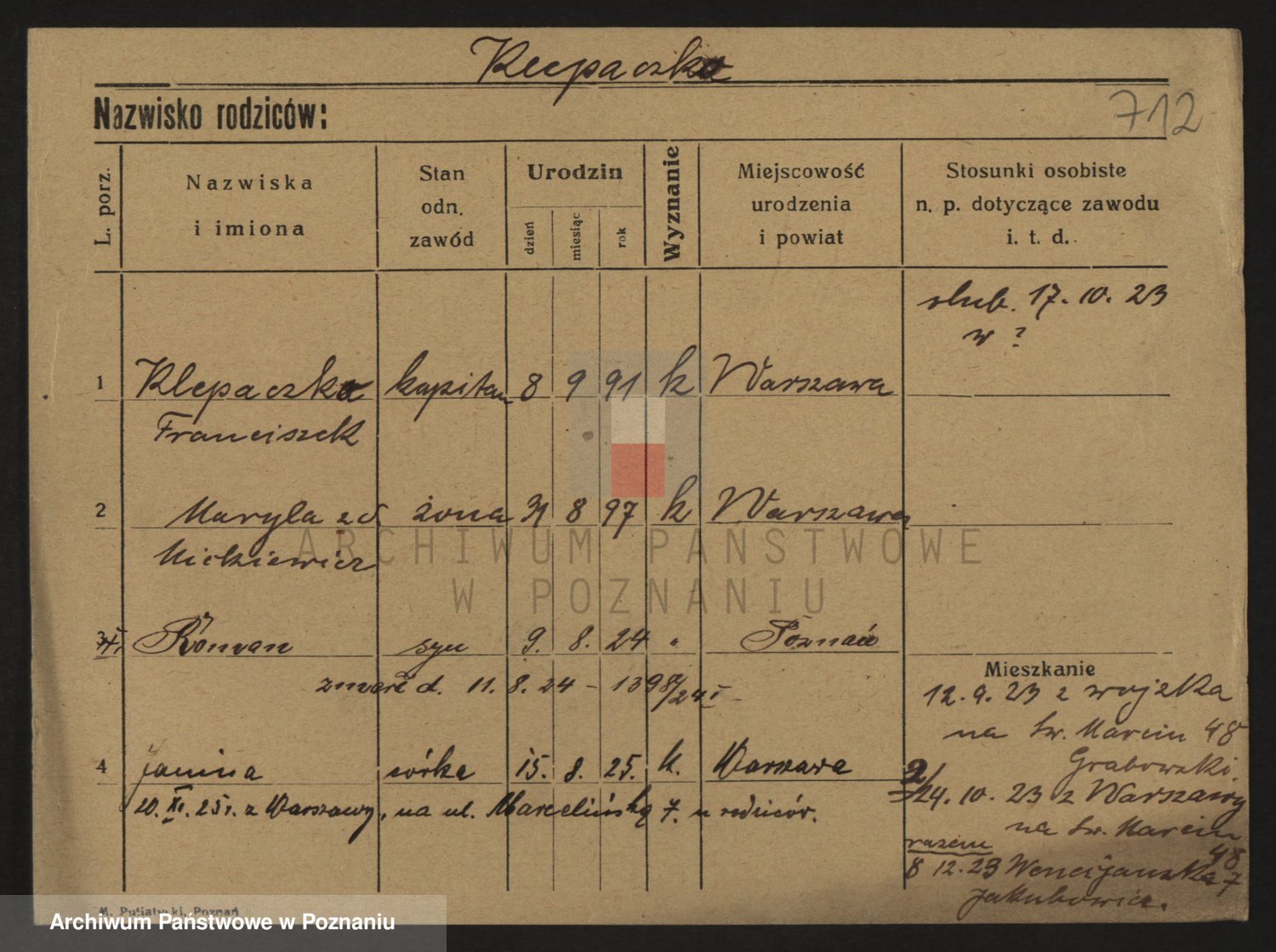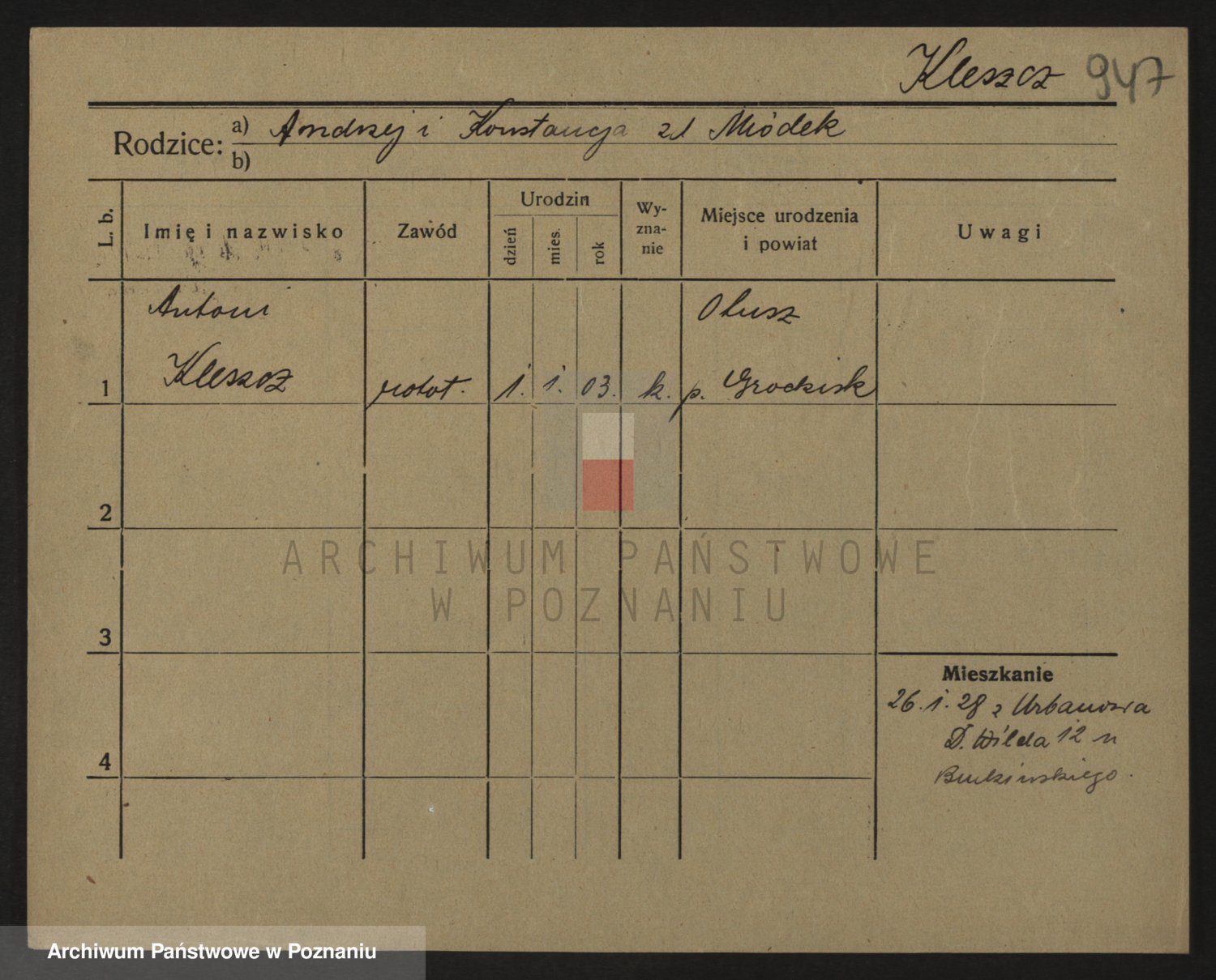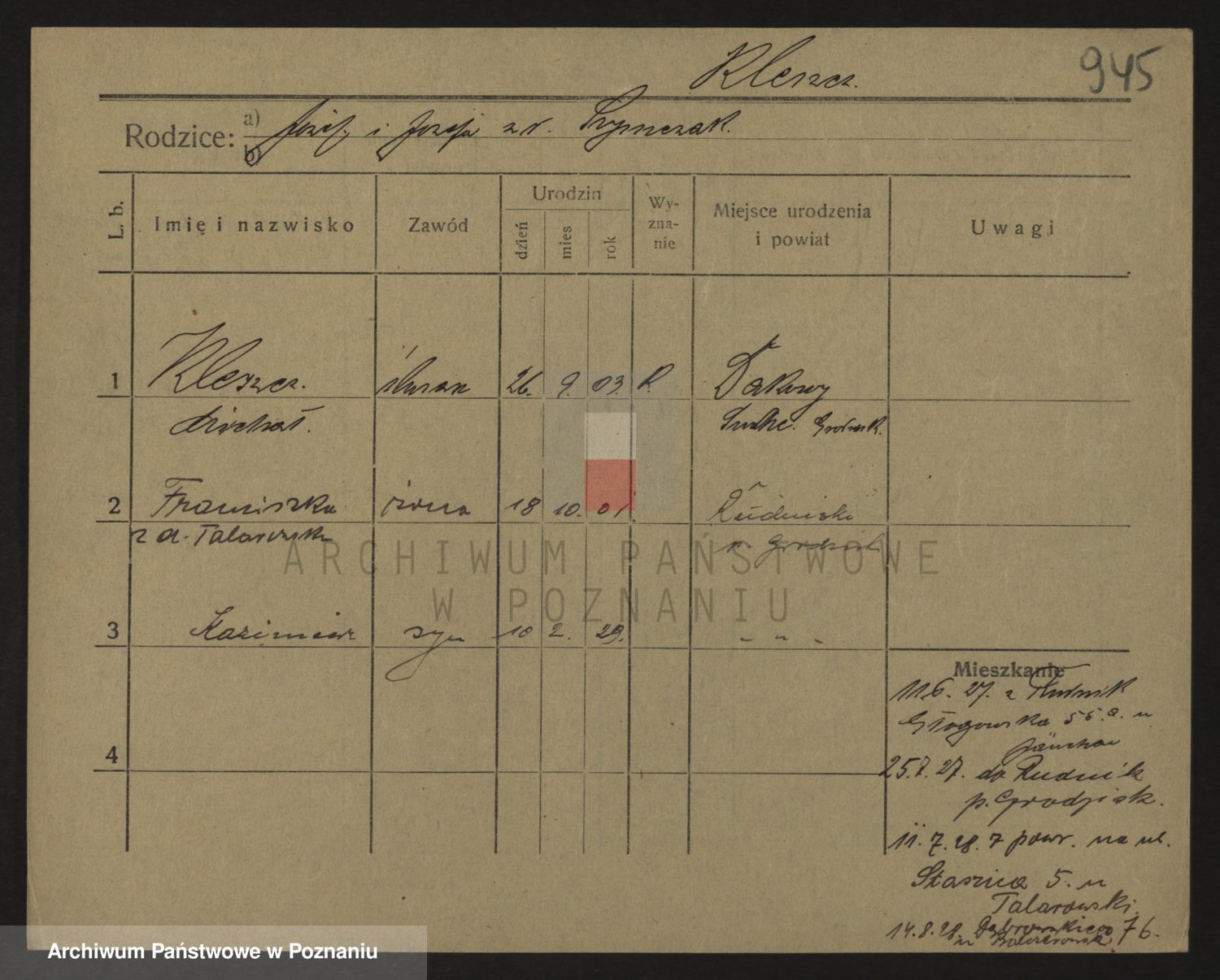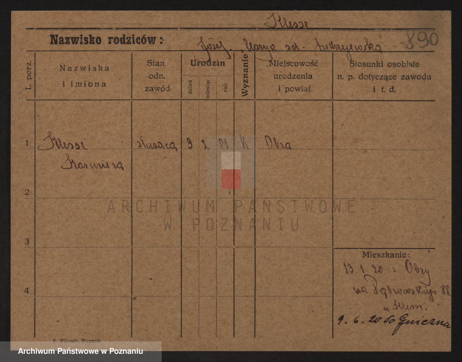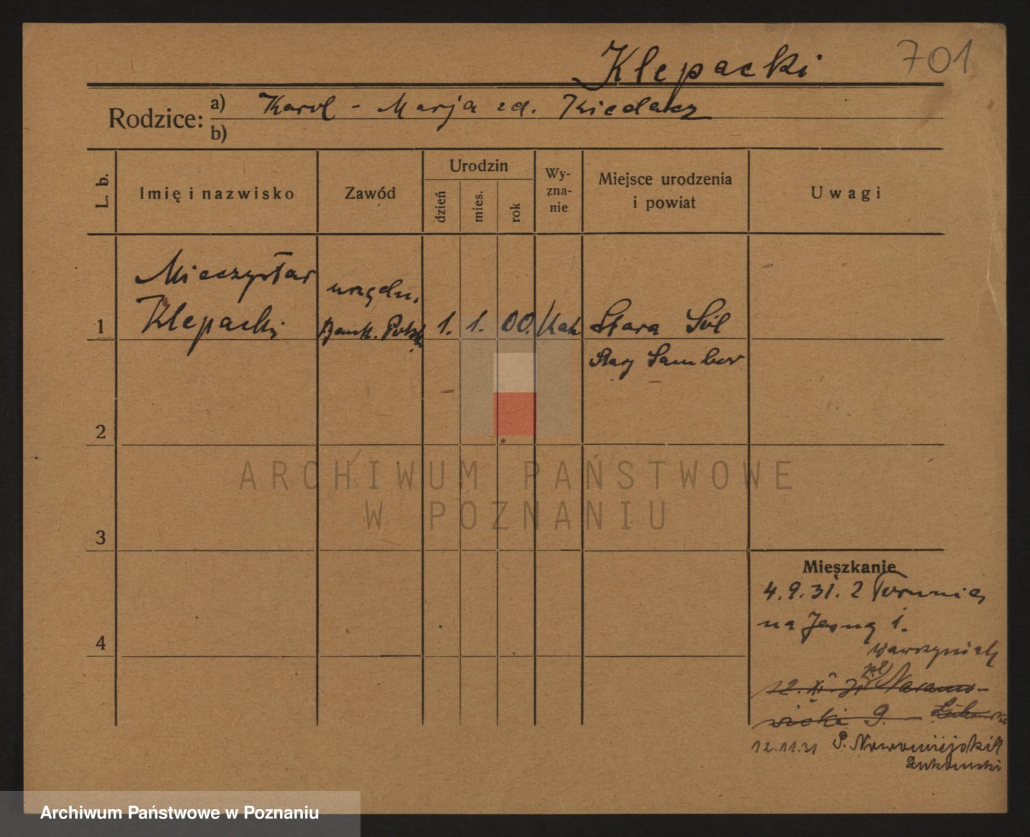 Kleszak z d. Cudzinska, Marie