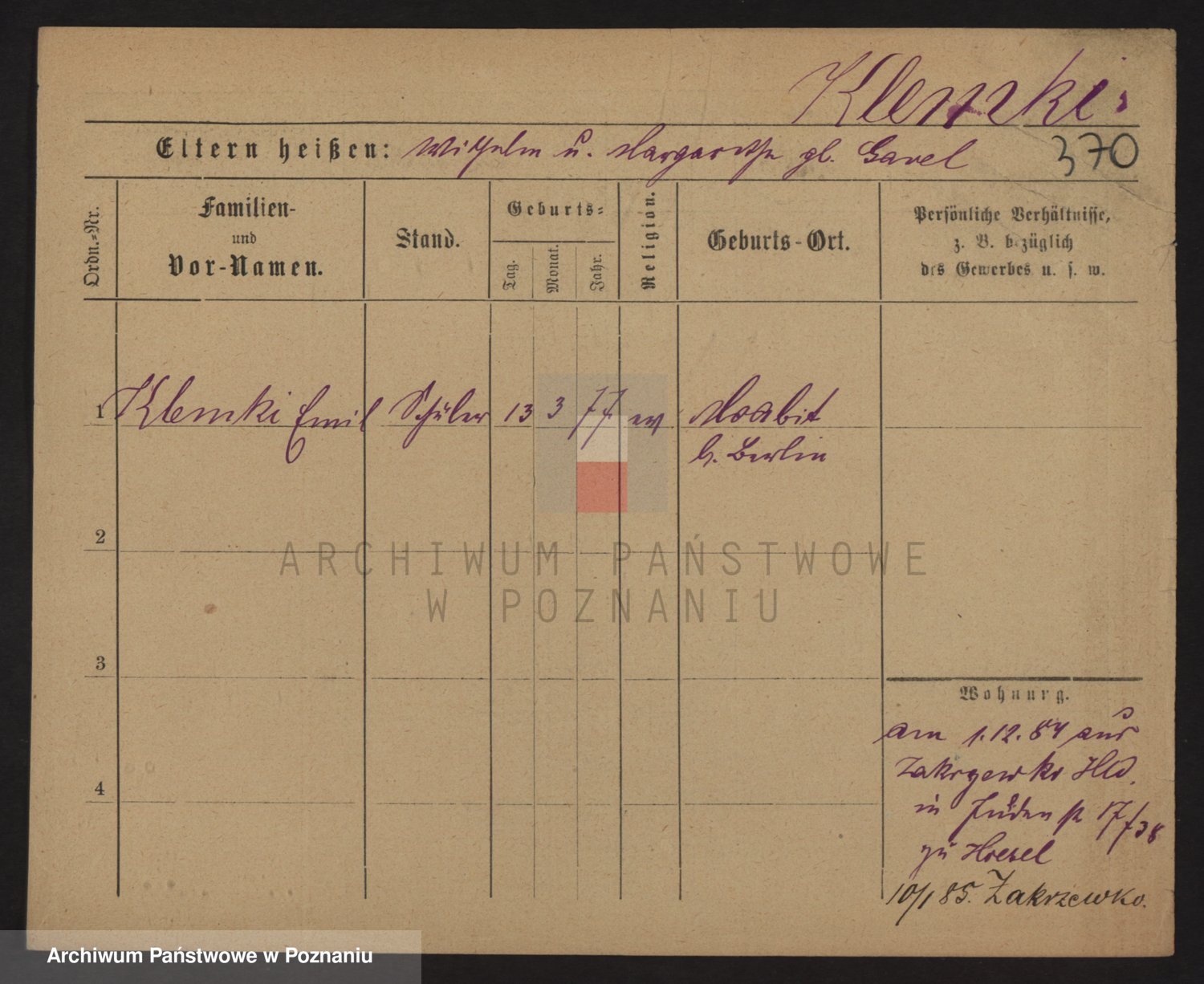 Klemczak, Franz Jacob