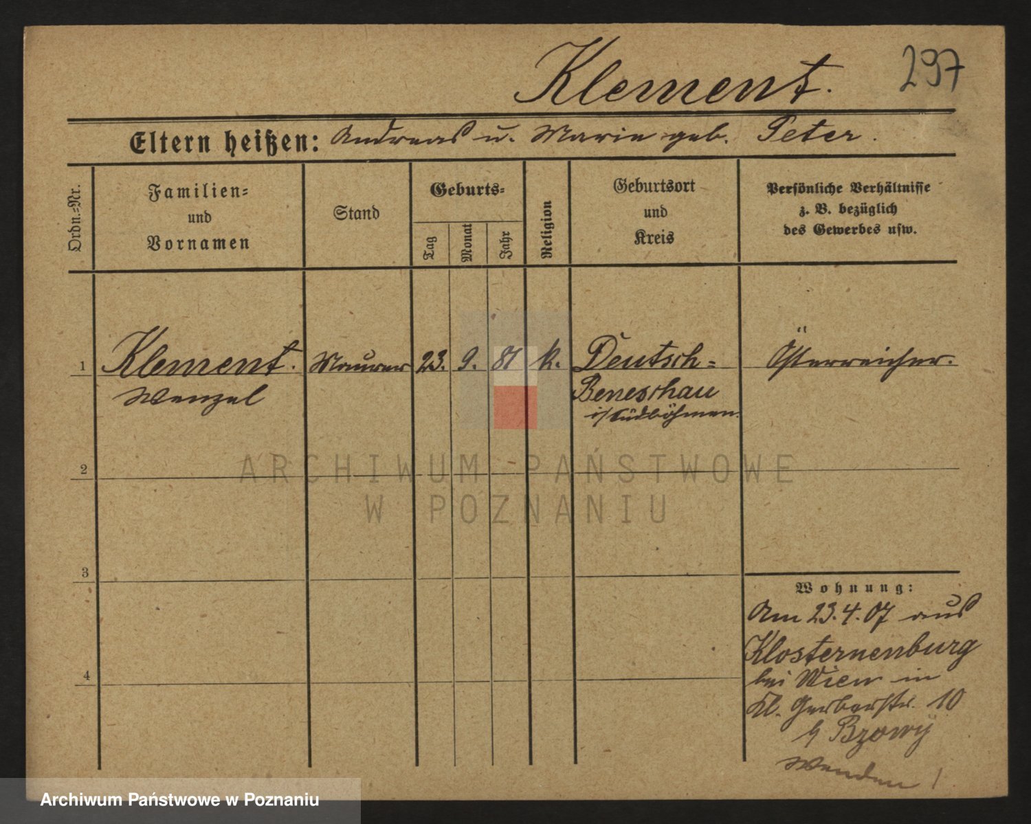 Klesz, Klementyna