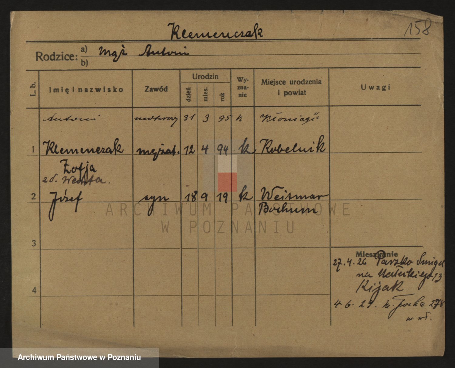 Klemczak z d. Rybkowska, Marie