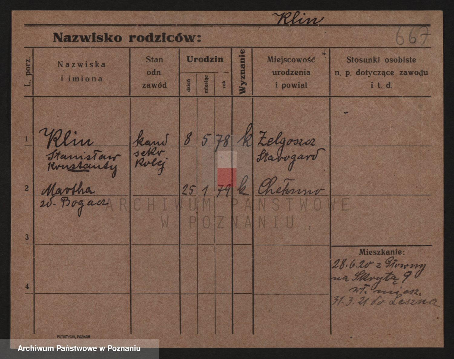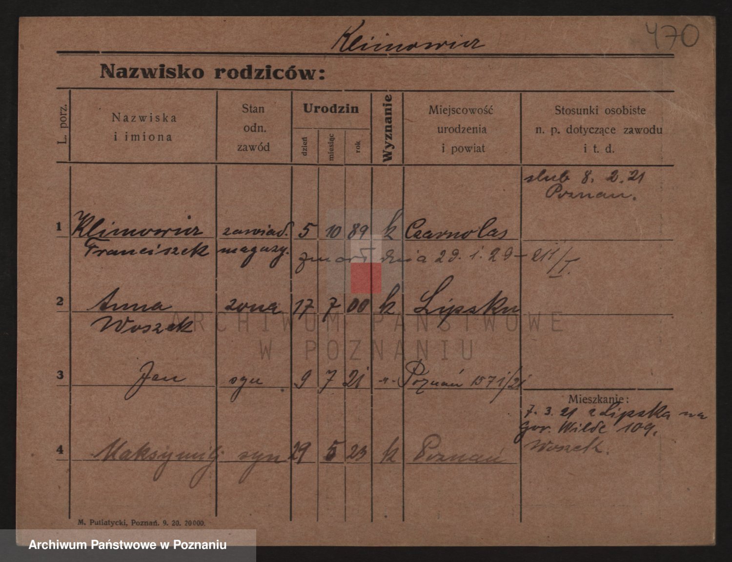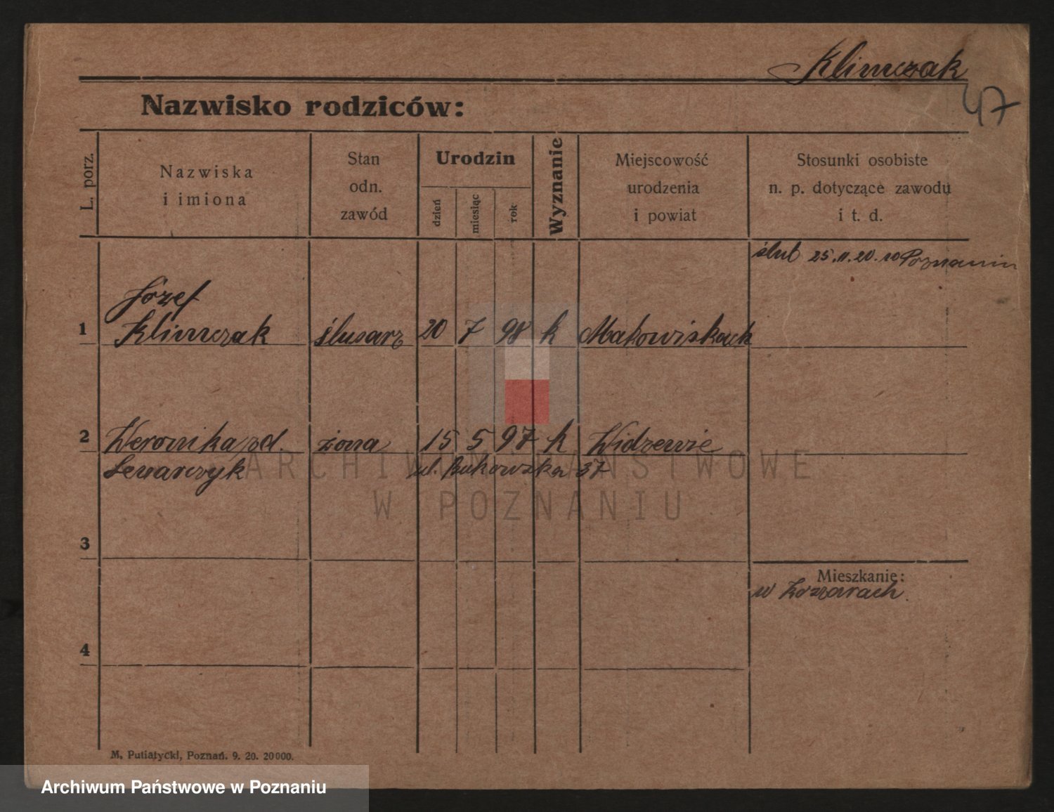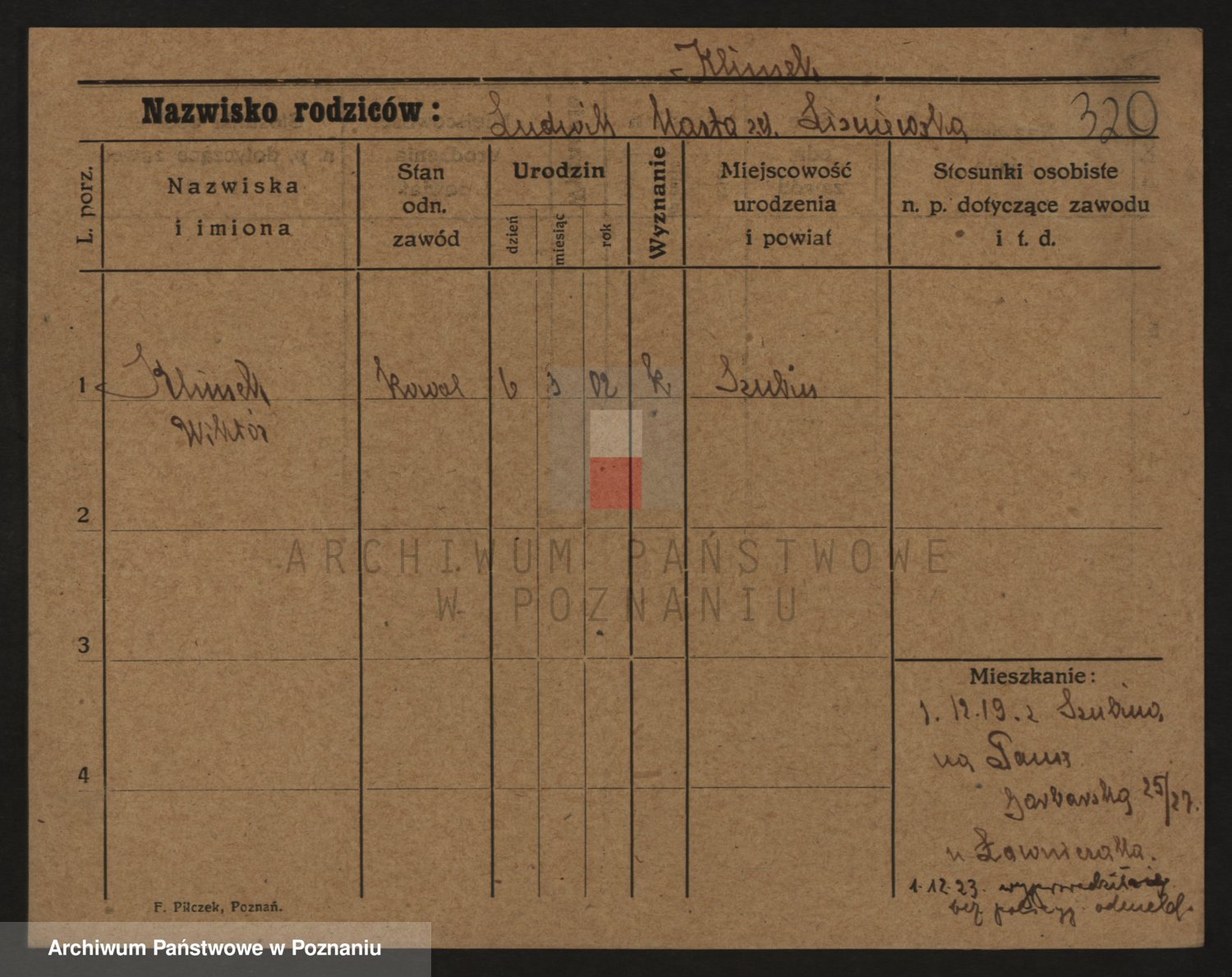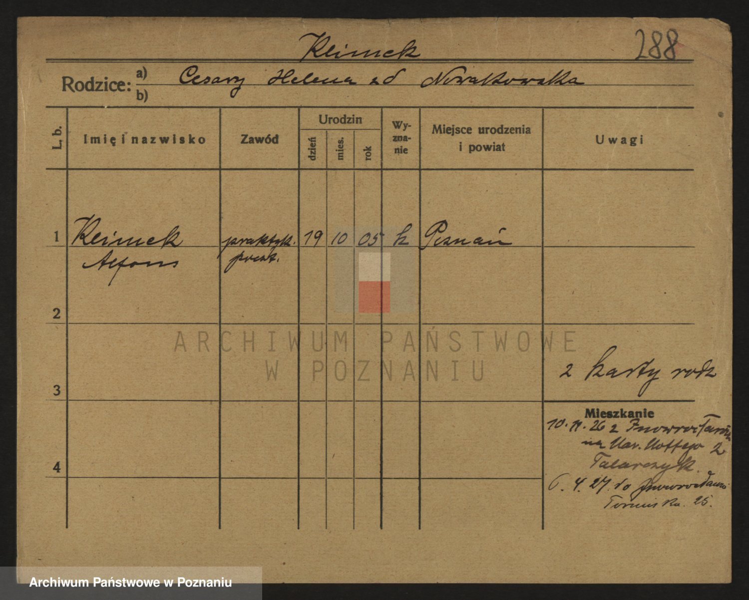 Podgląd karty osobowej dostępny jest po kliknięciu na nazwisko lub ikonkę karty. Można dokonywać powiększenia (ikony na górze) lub przechodzić między kolejnymi skanami (strzałki po bokach).