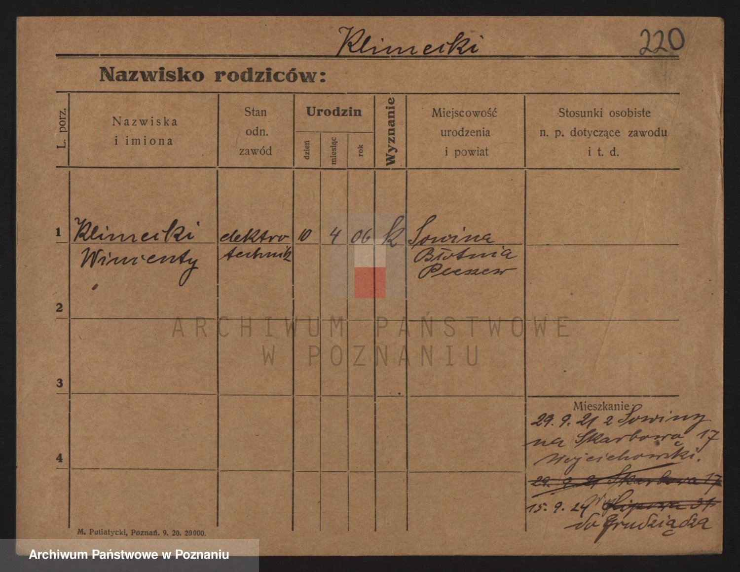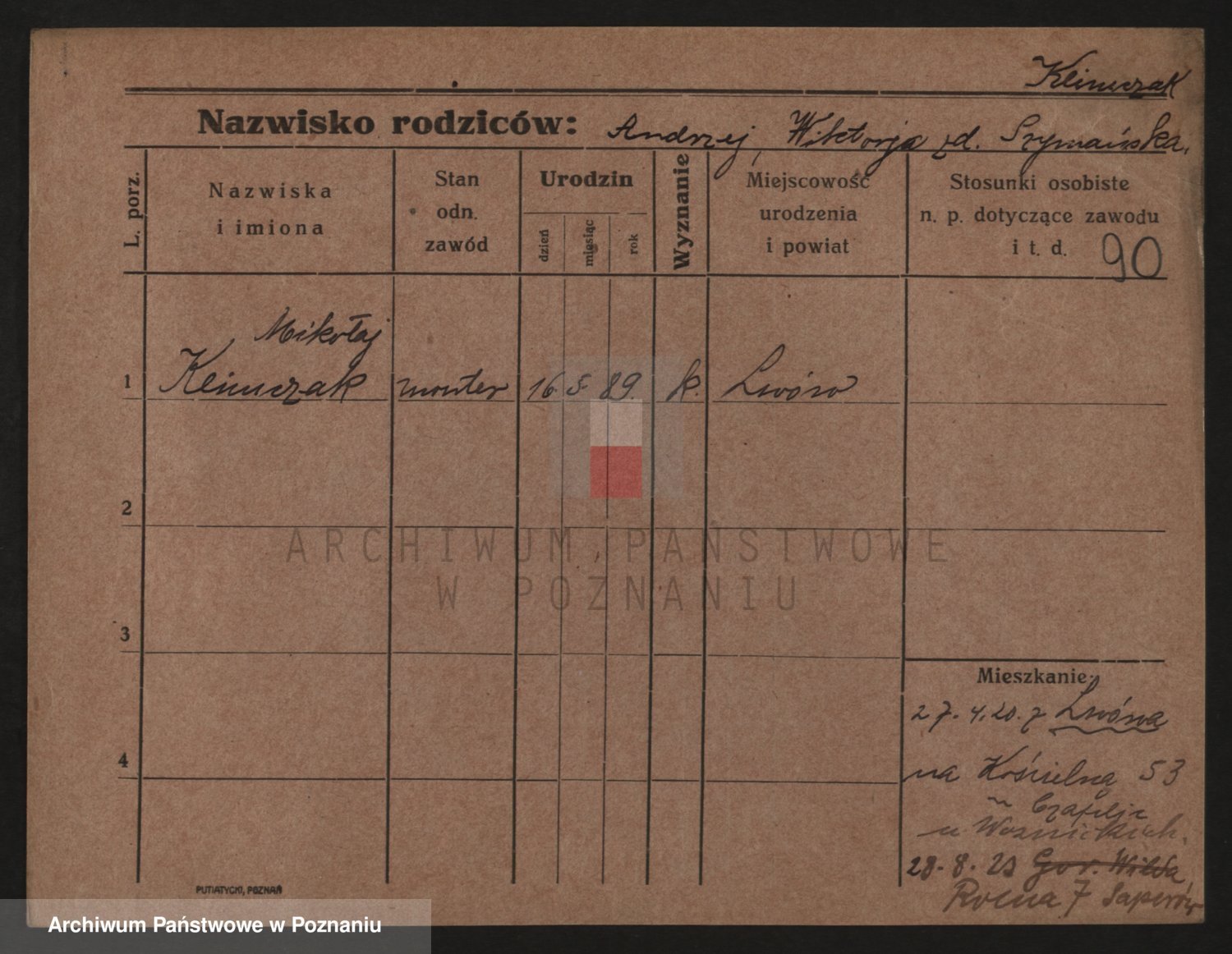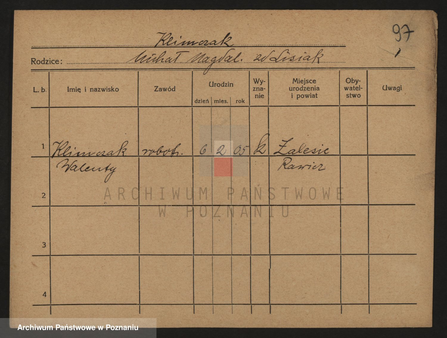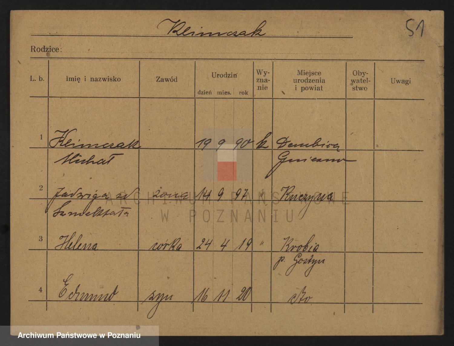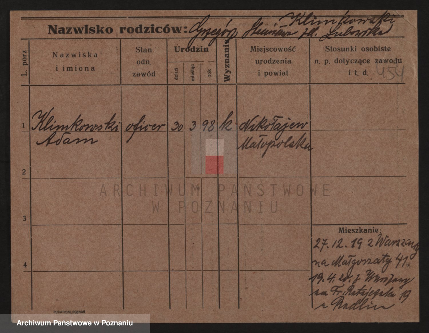 Podgląd karty osobowej dostępny jest po kliknięciu na nazwisko lub ikonkę karty. Można dokonywać powiększenia (ikony na górze) lub przechodzić między kolejnymi skanami (strzałki po bokach).