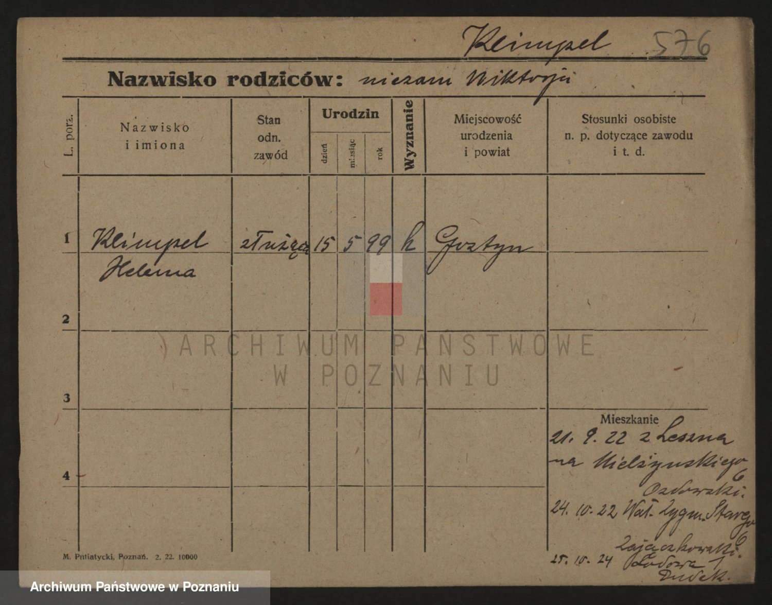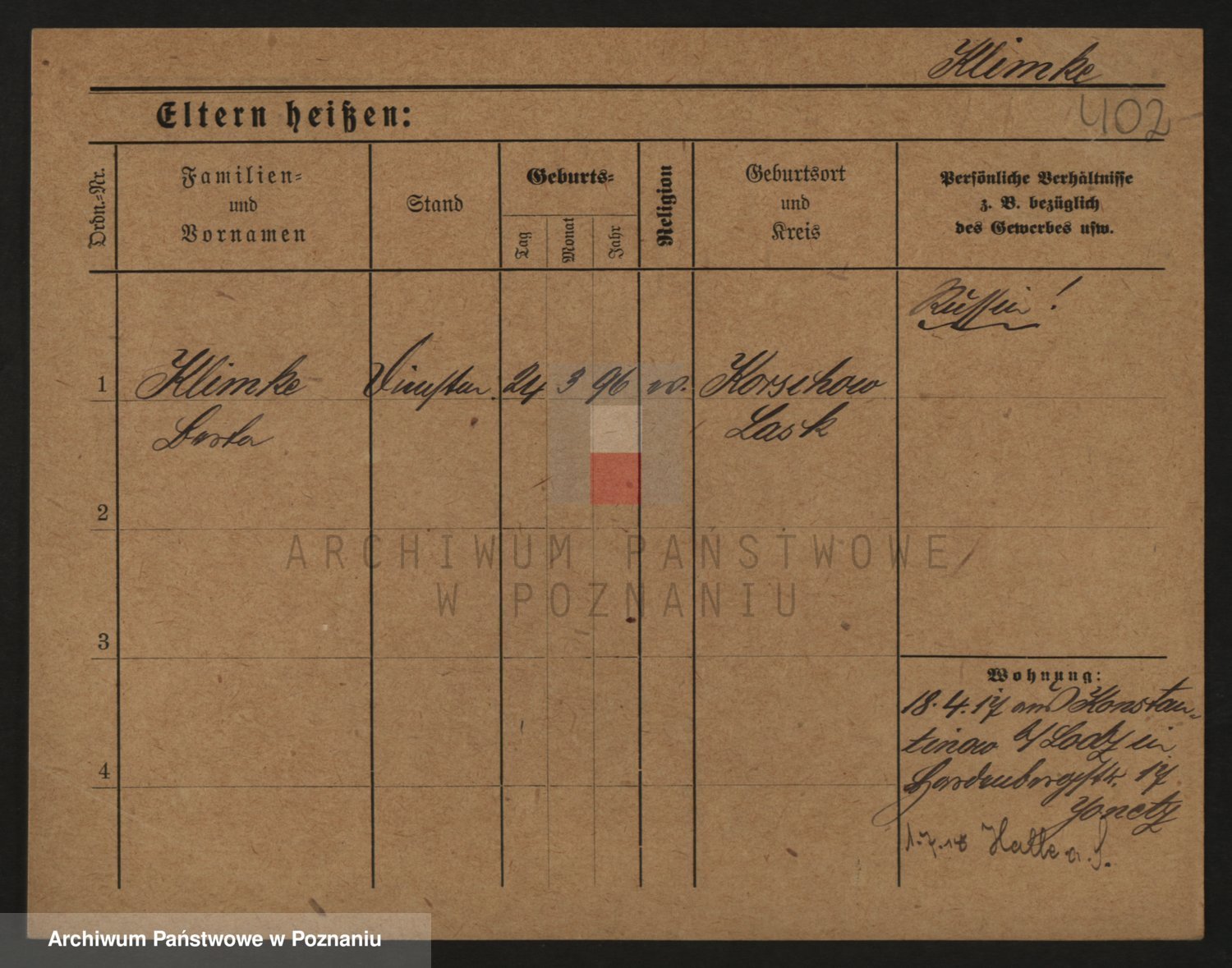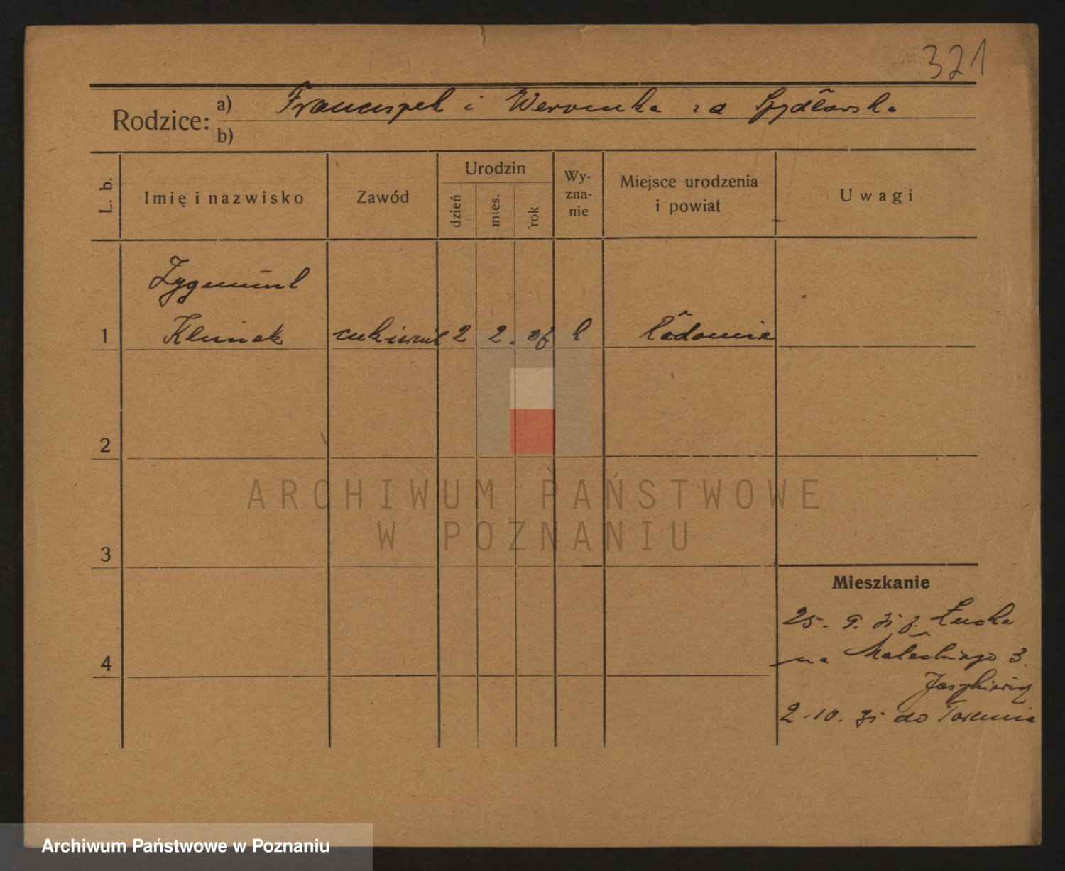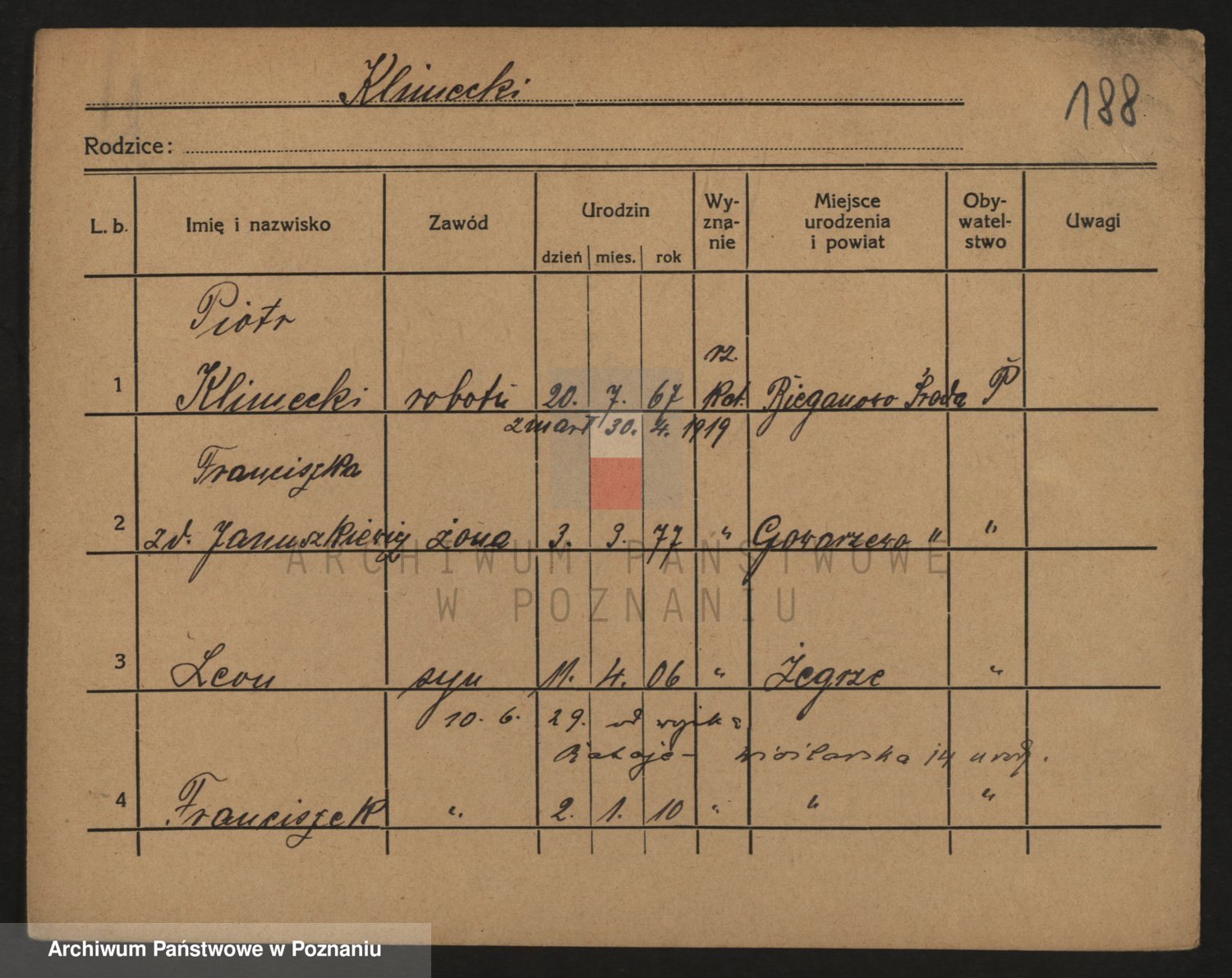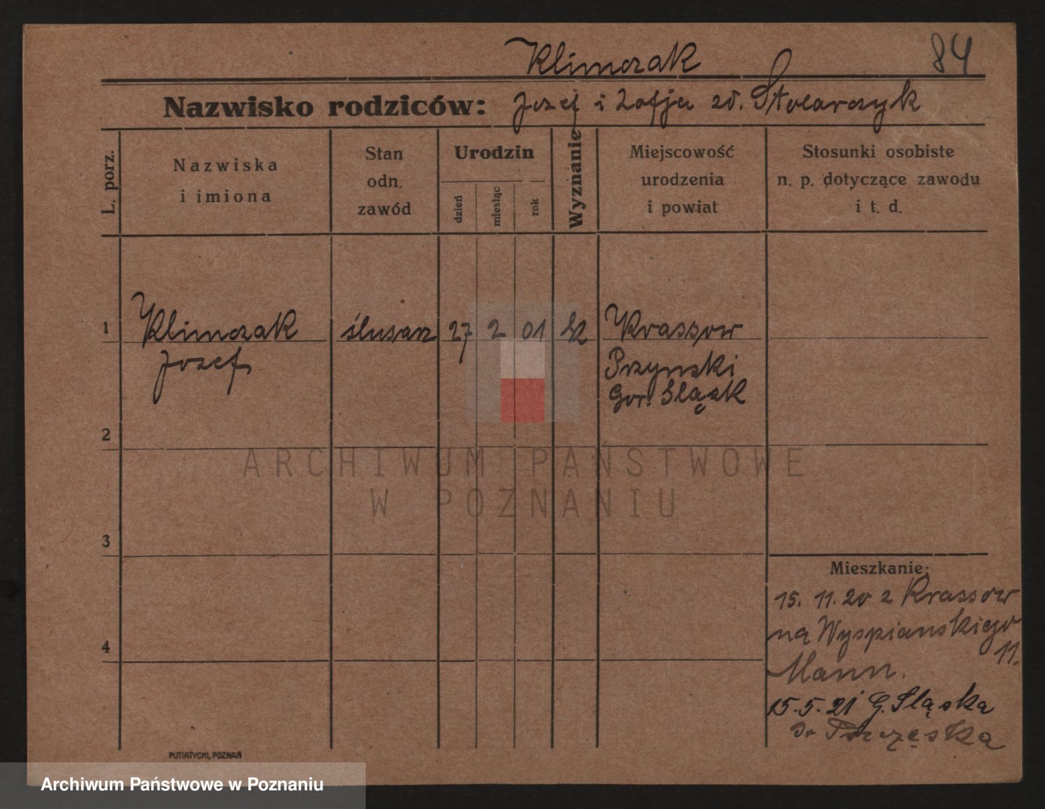Podgląd karty osobowej dostępny jest po kliknięciu na nazwisko lub ikonkę karty. Można dokonywać powiększenia (ikony na górze) lub przechodzić między kolejnymi skanami (strzałki po bokach).