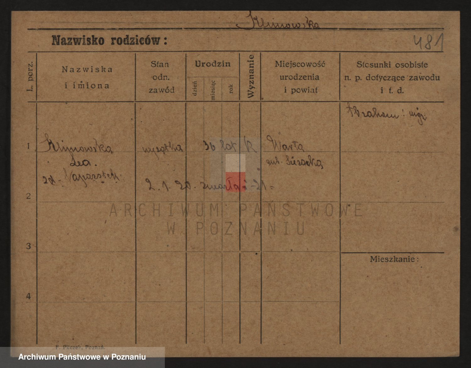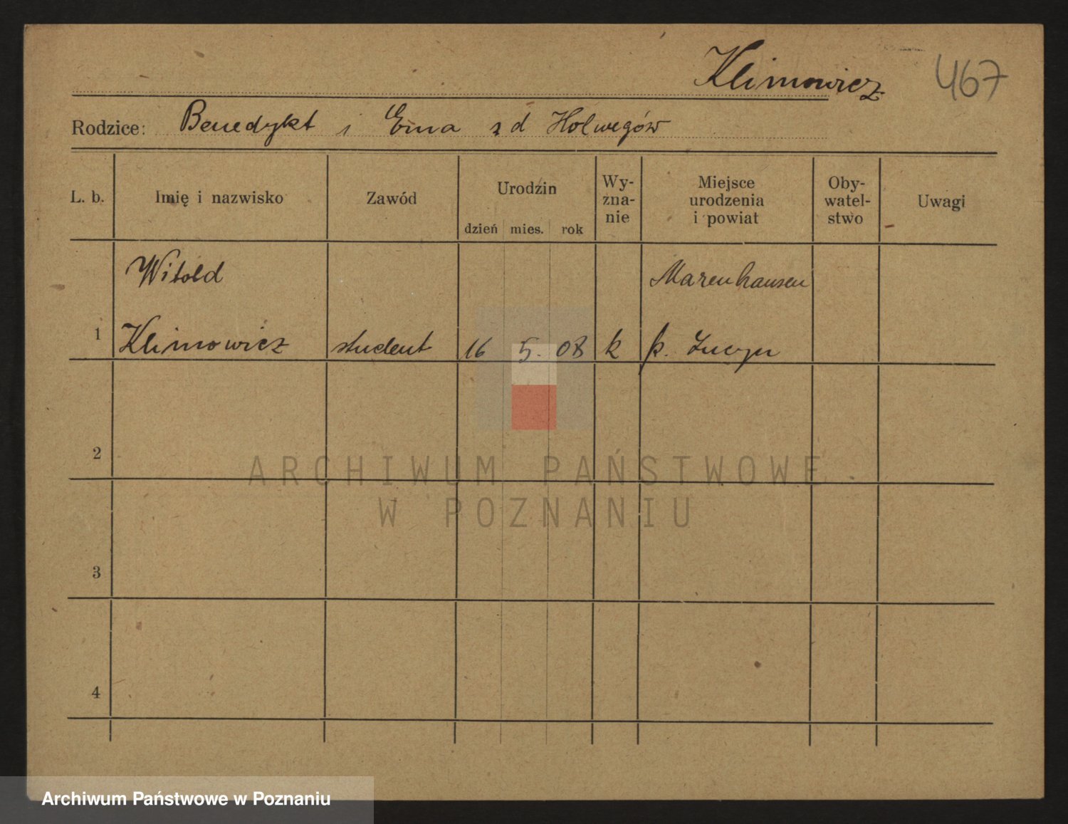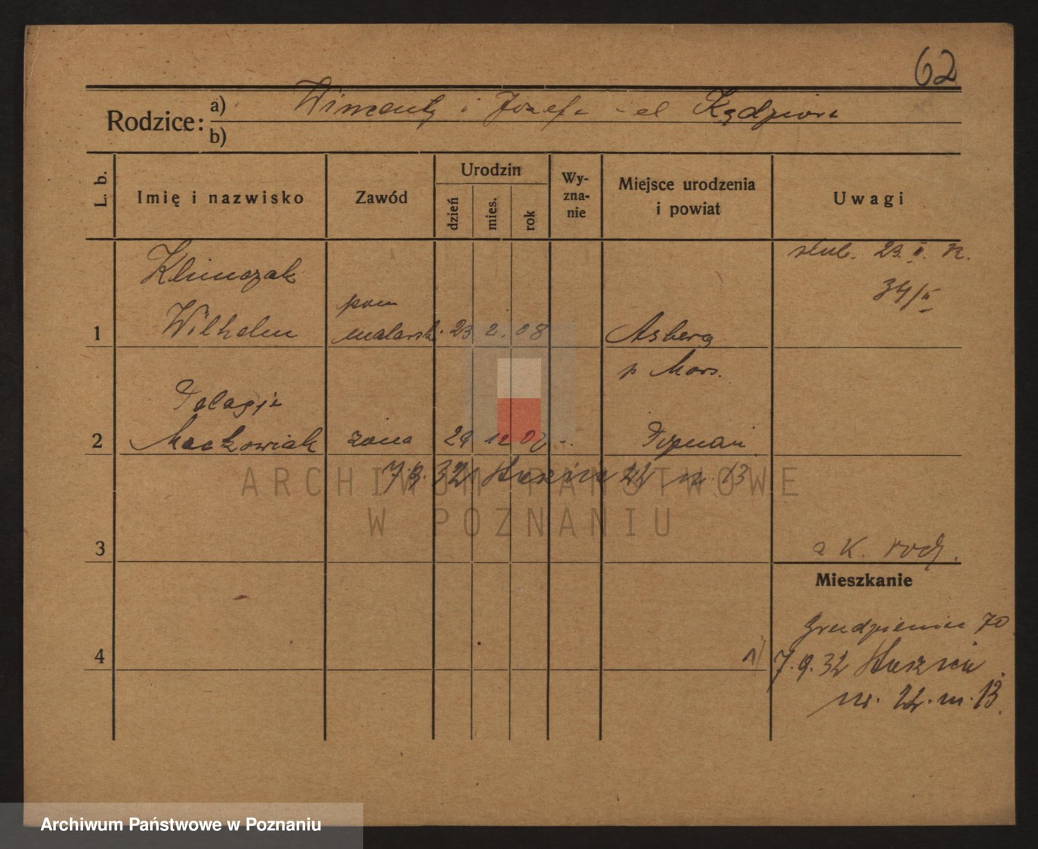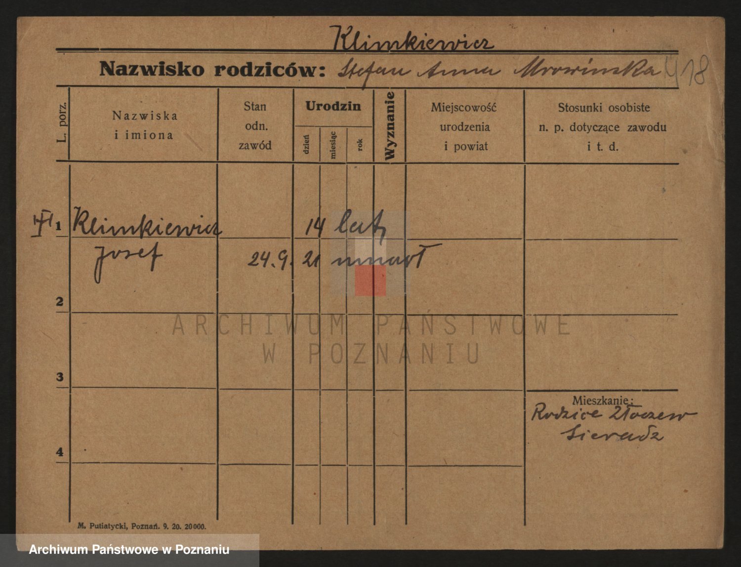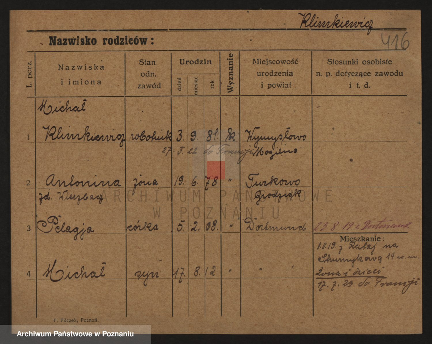 Podgląd karty osobowej dostępny jest po kliknięciu na nazwisko lub ikonkę karty. Można dokonywać powiększenia (ikony na górze) lub przechodzić między kolejnymi skanami (strzałki po bokach).