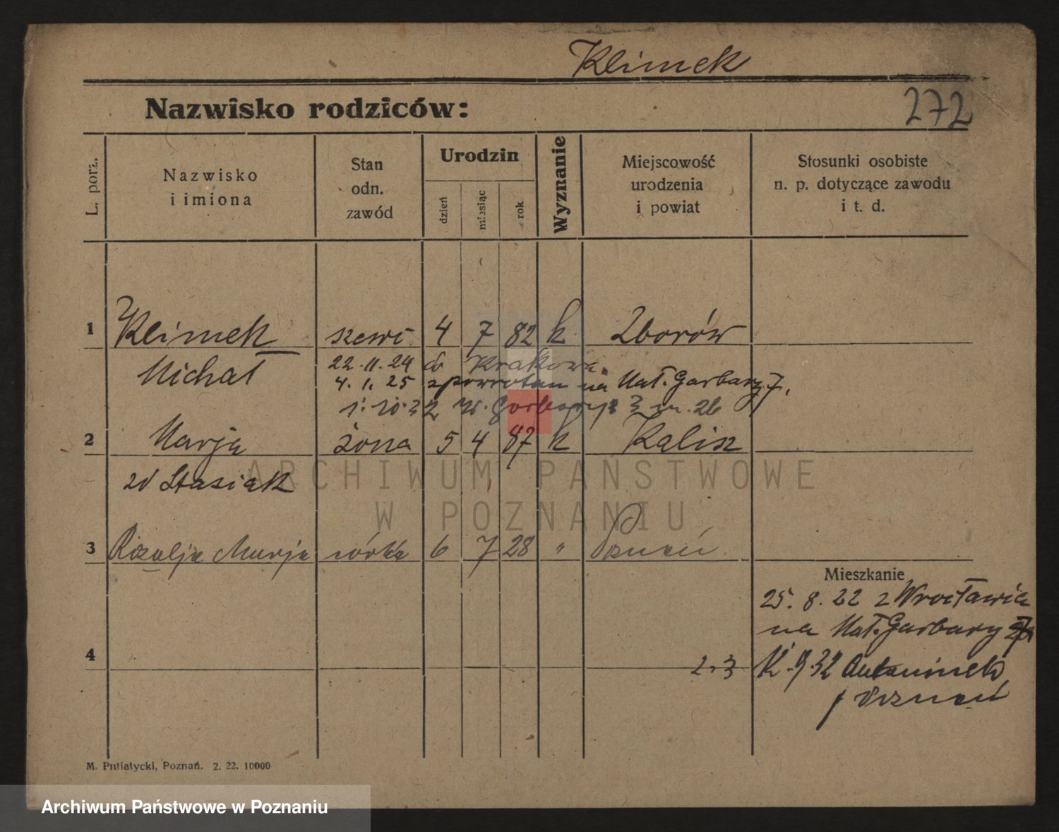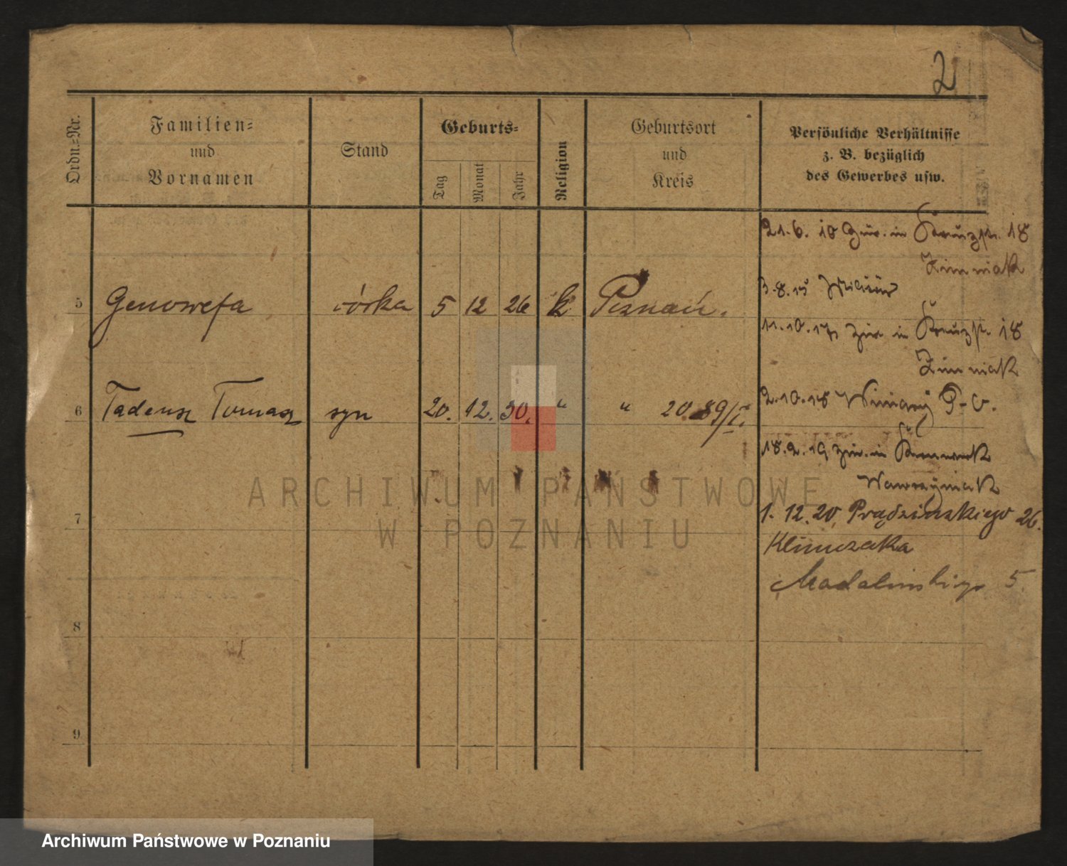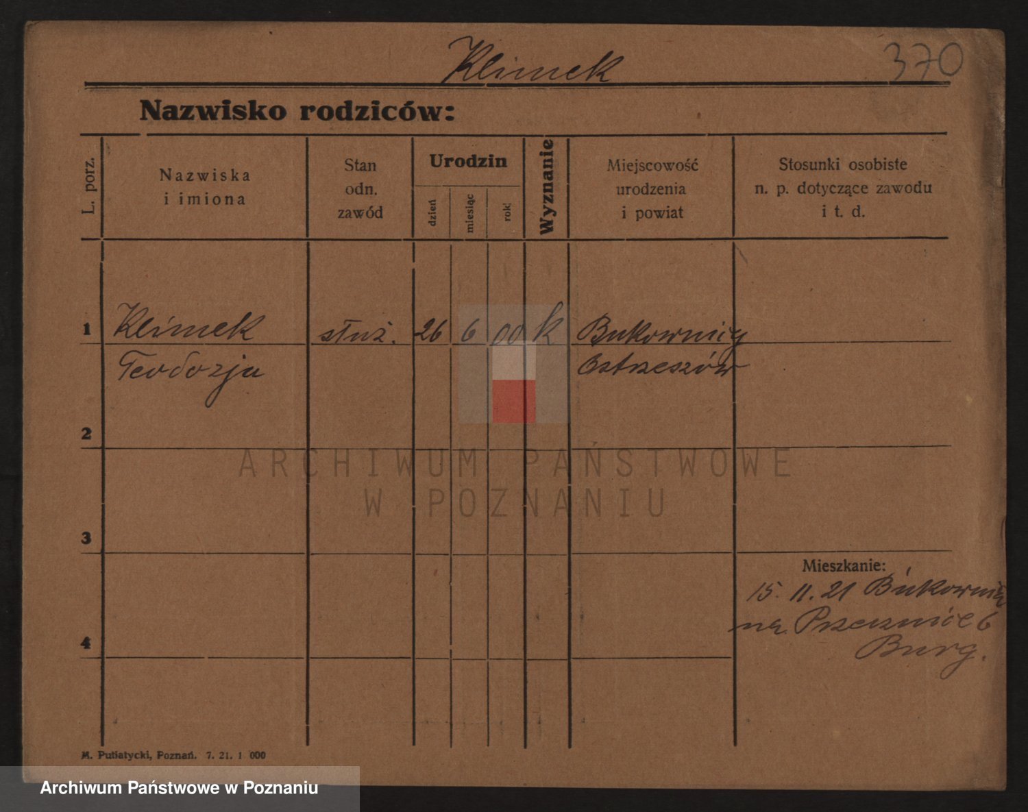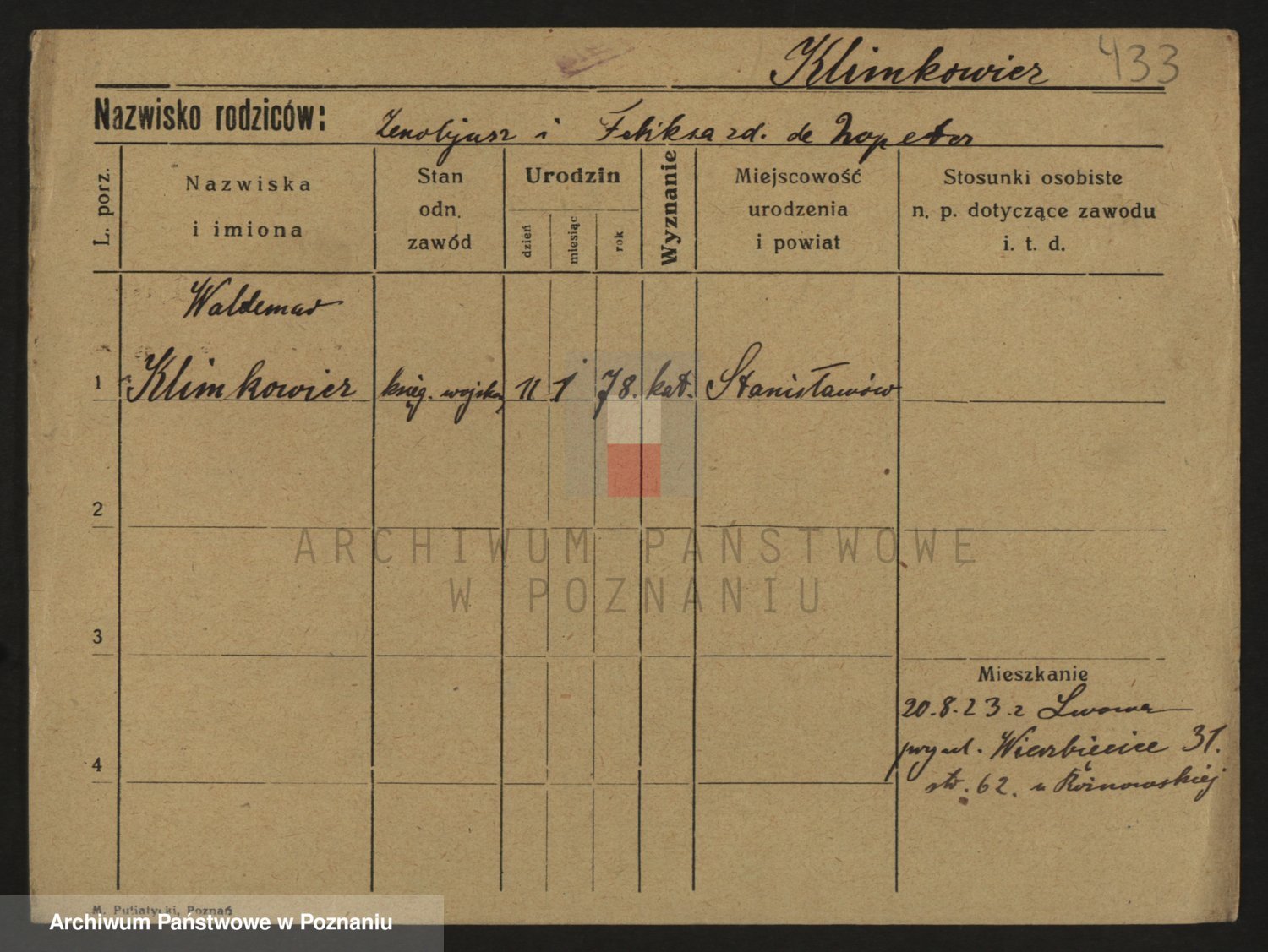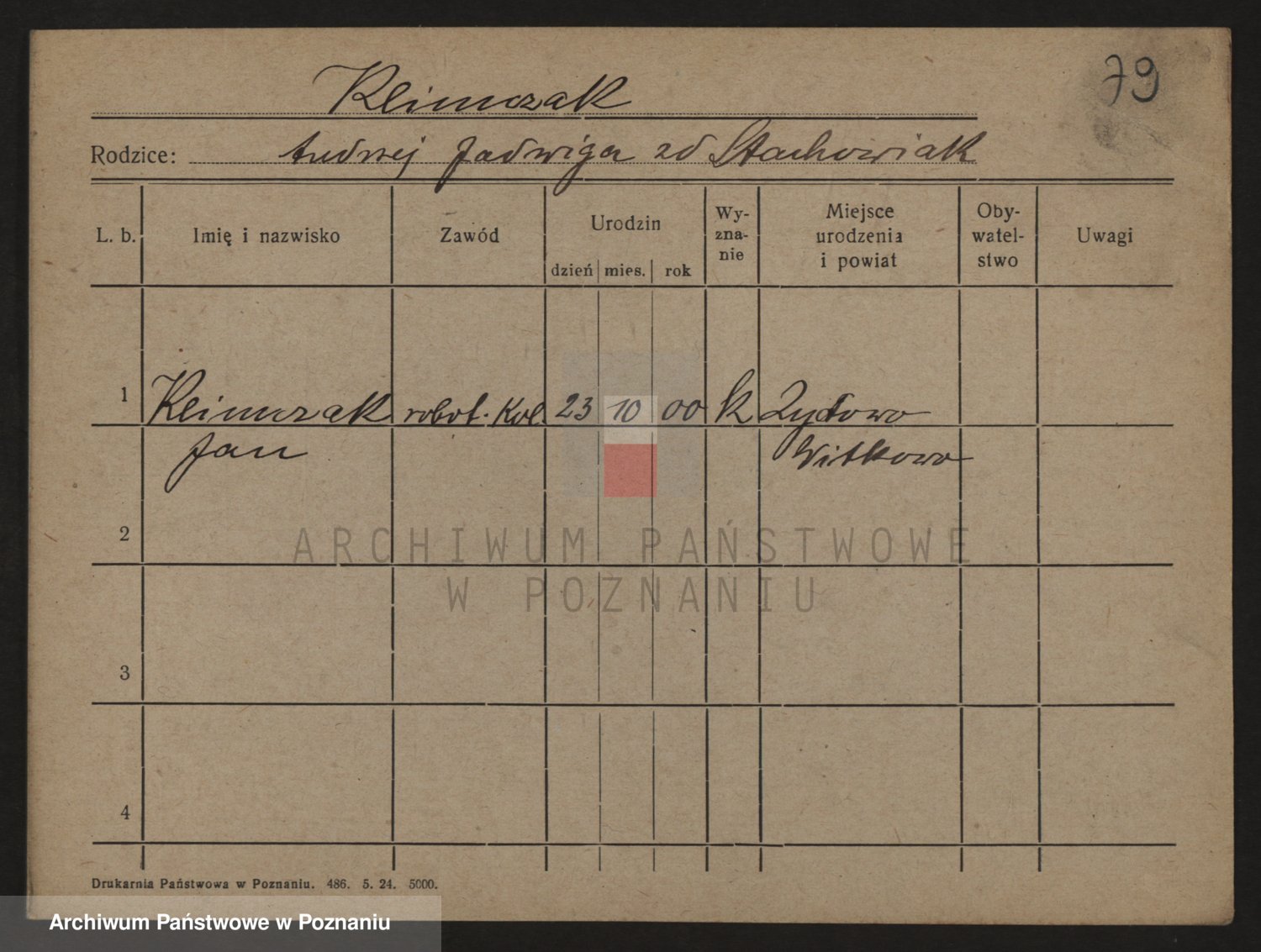 Podgląd karty osobowej dostępny jest po kliknięciu na nazwisko lub ikonkę karty. Można dokonywać powiększenia (ikony na górze) lub przechodzić między kolejnymi skanami (strzałki po bokach).