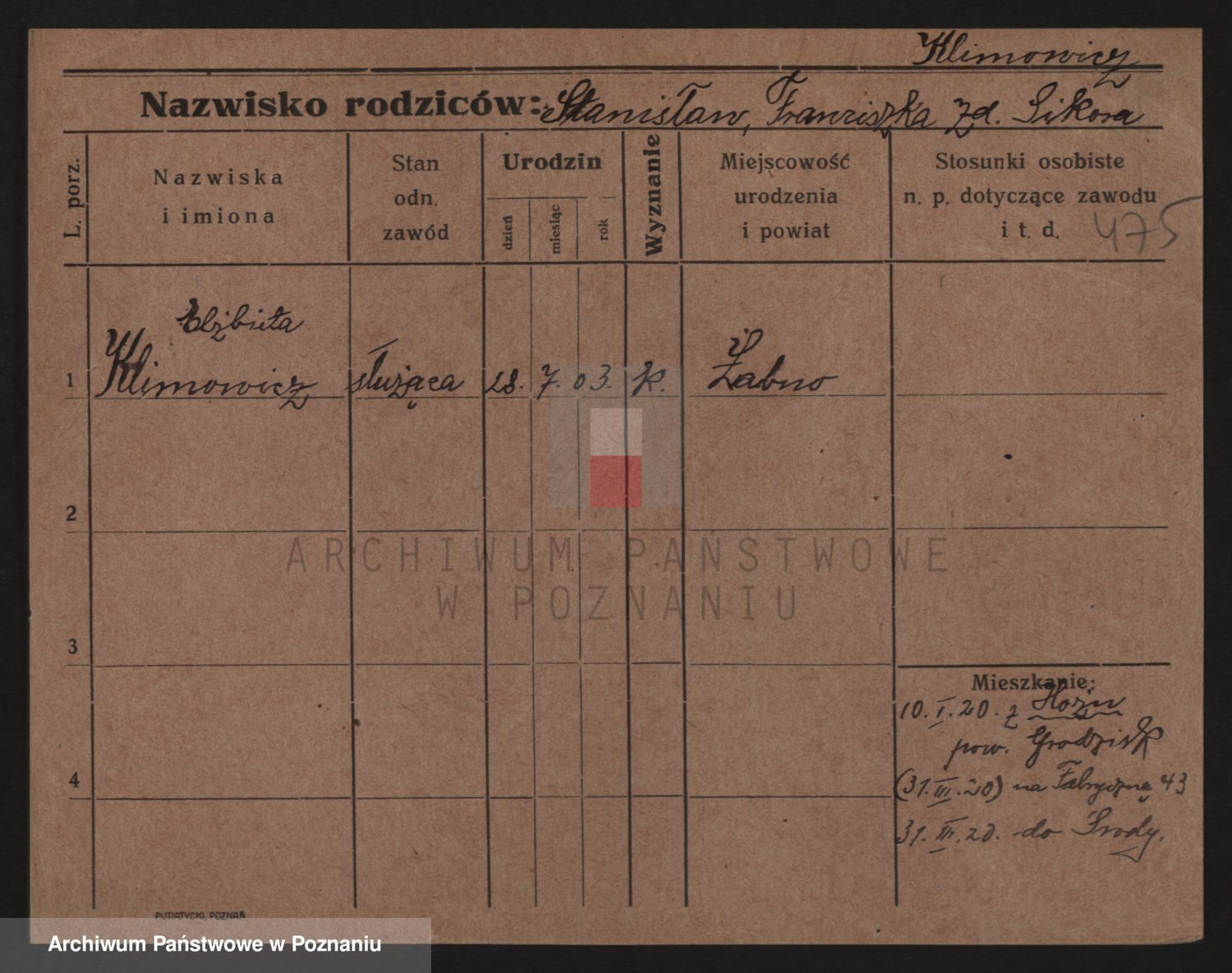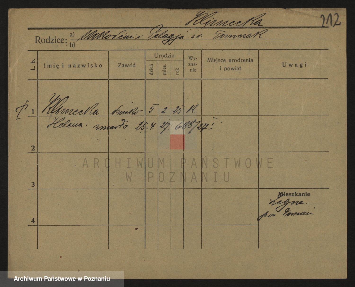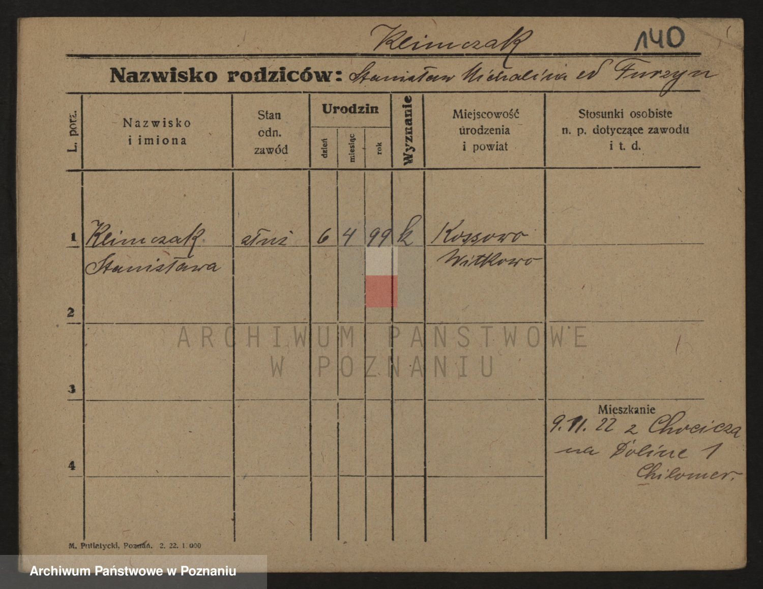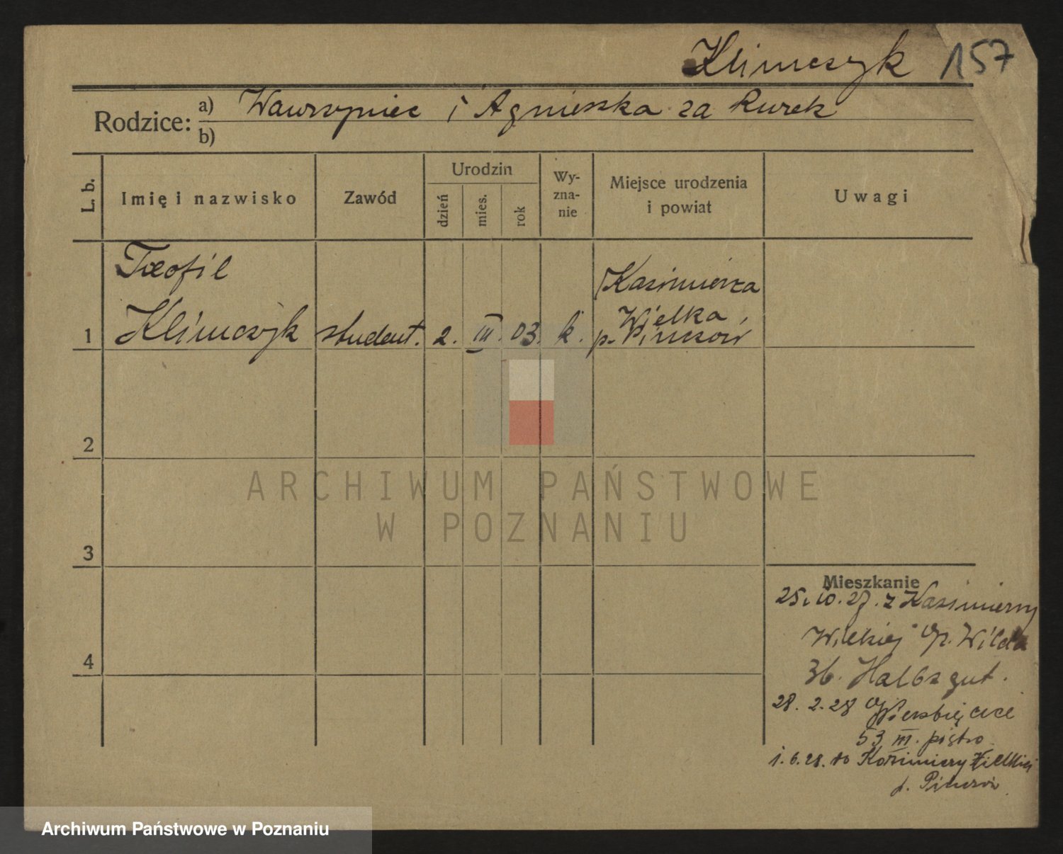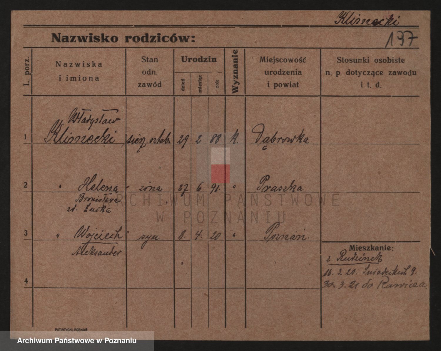 Podgląd karty osobowej dostępny jest po kliknięciu na nazwisko lub ikonkę karty. Można dokonywać powiększenia (ikony na górze) lub przechodzić między kolejnymi skanami (strzałki po bokach).