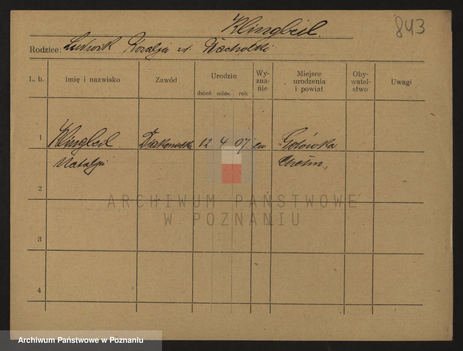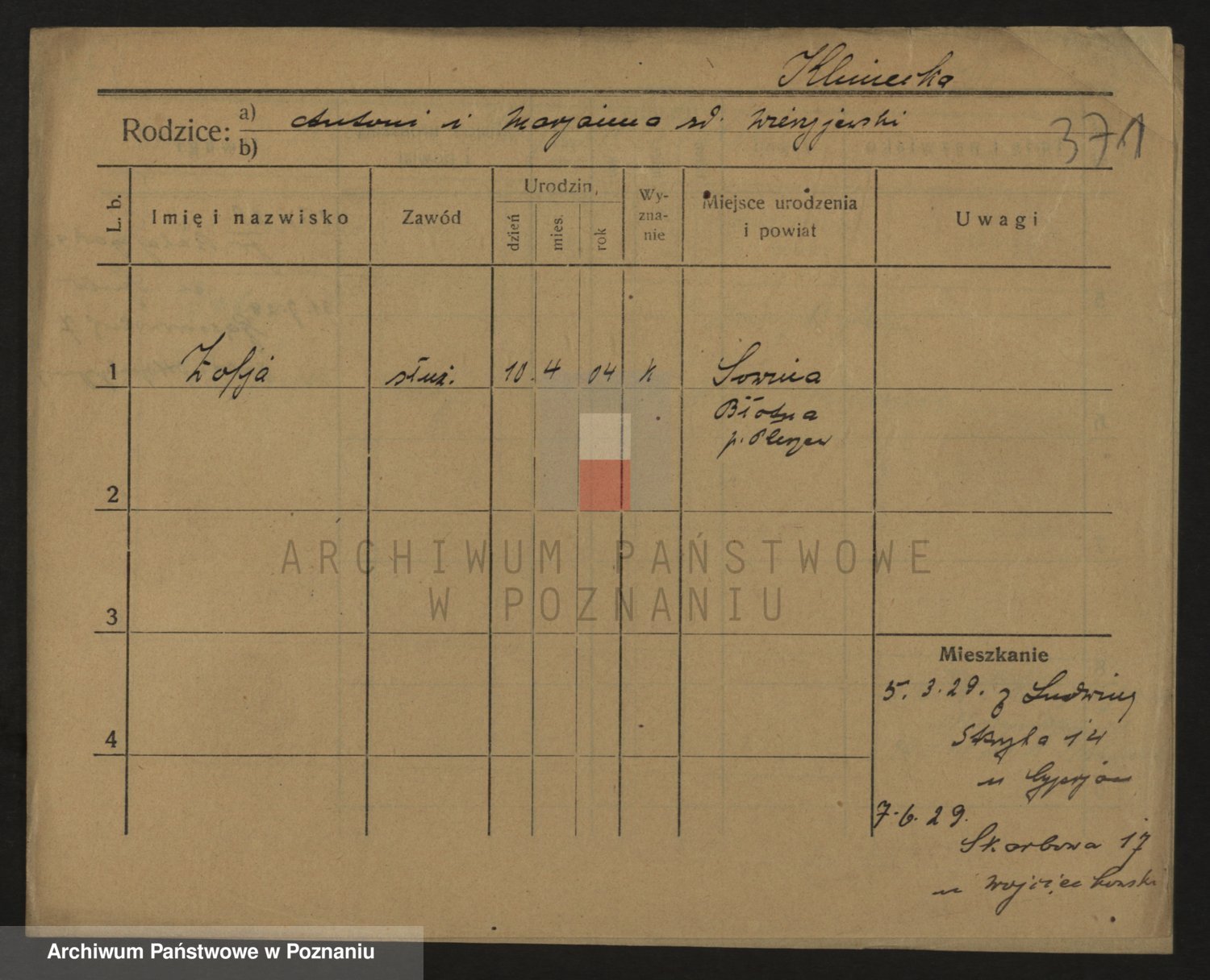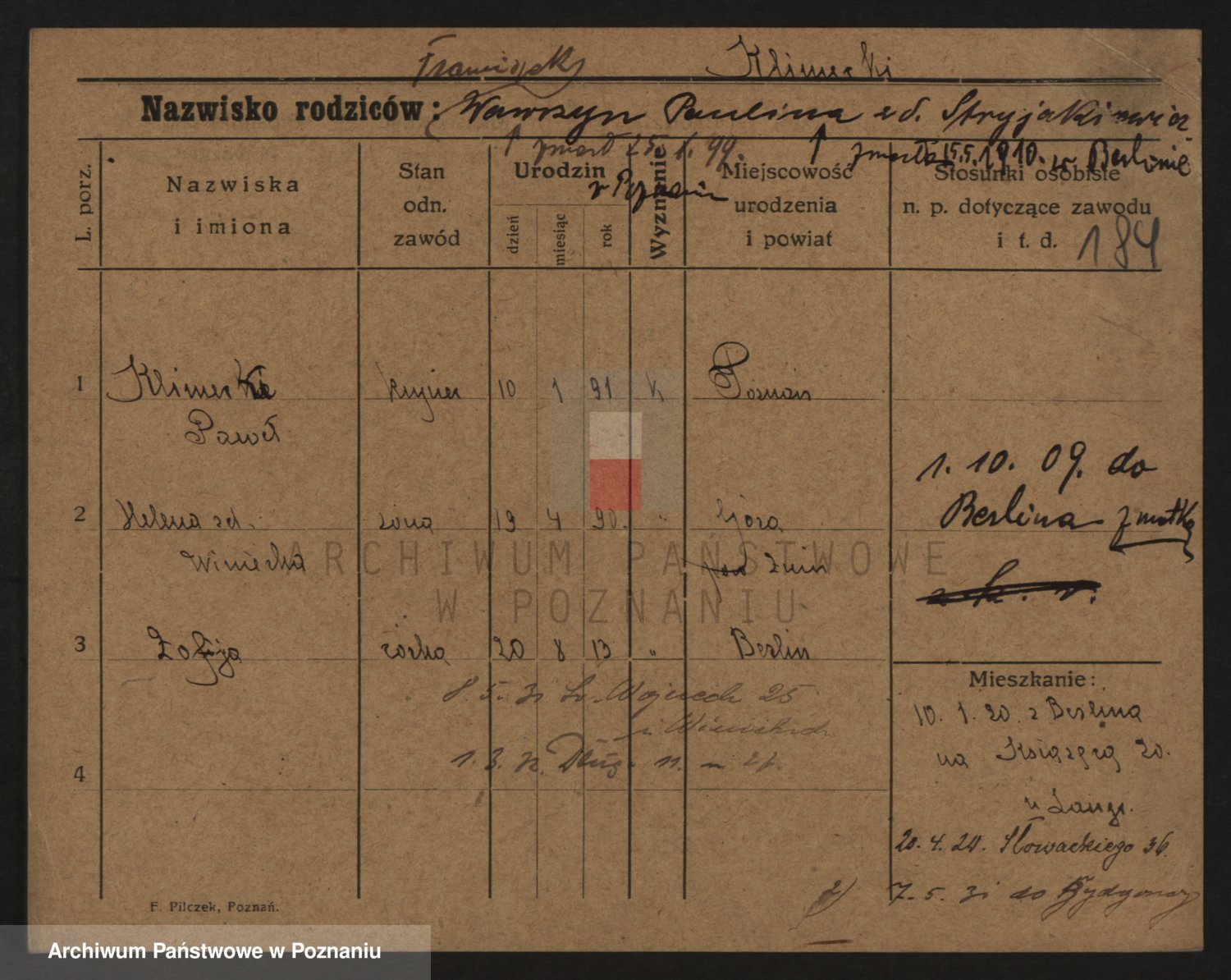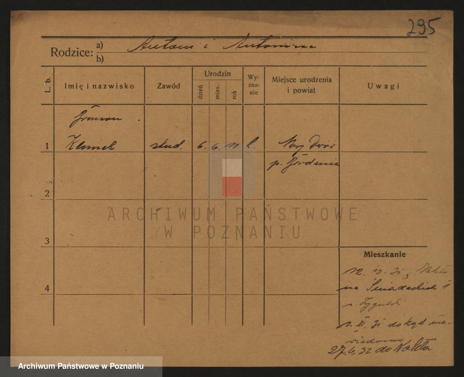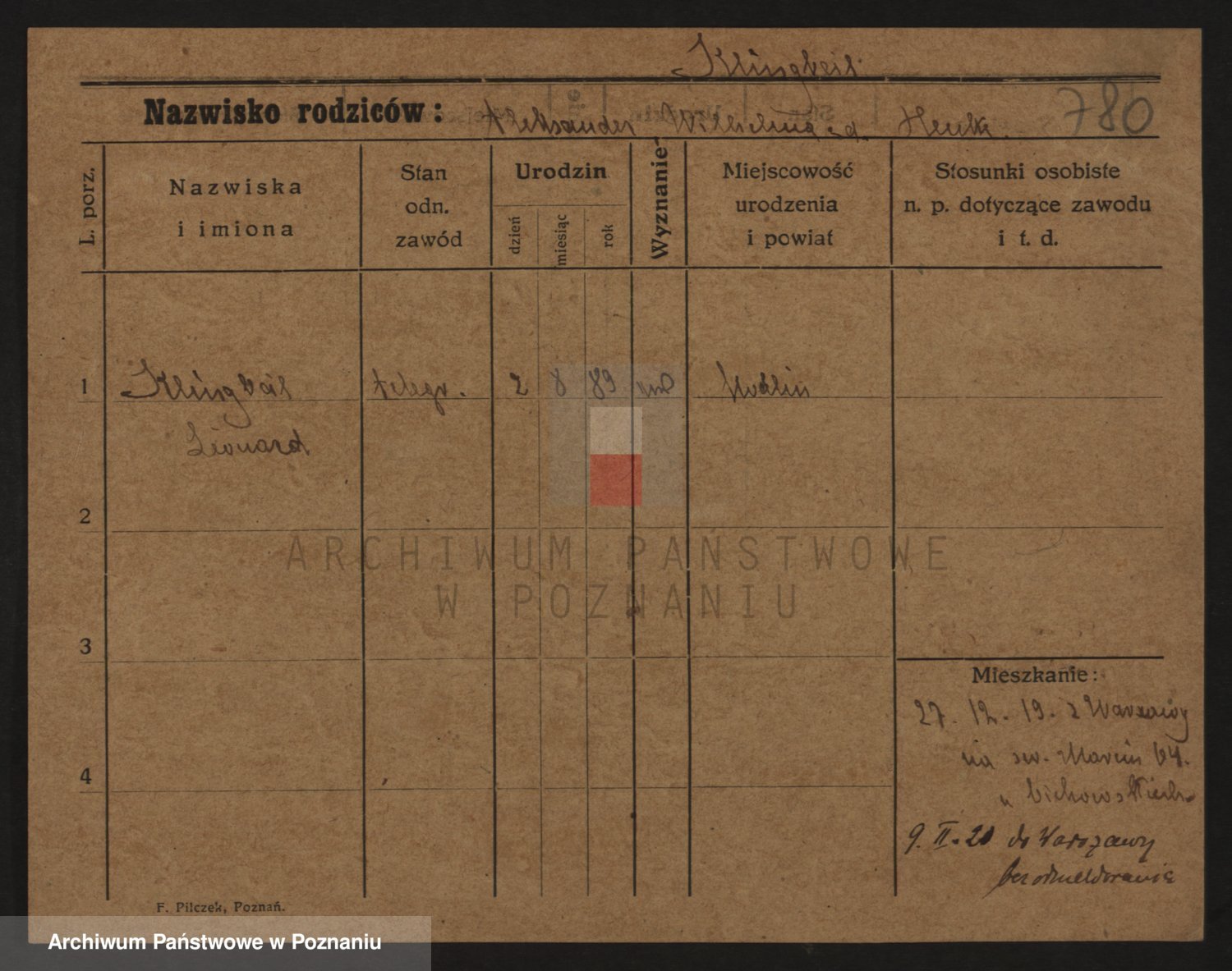 Podgląd karty osobowej dostępny jest po kliknięciu na nazwisko lub ikonkę karty. Można dokonywać powiększenia (ikony na górze) lub przechodzić między kolejnymi skanami (strzałki po bokach).