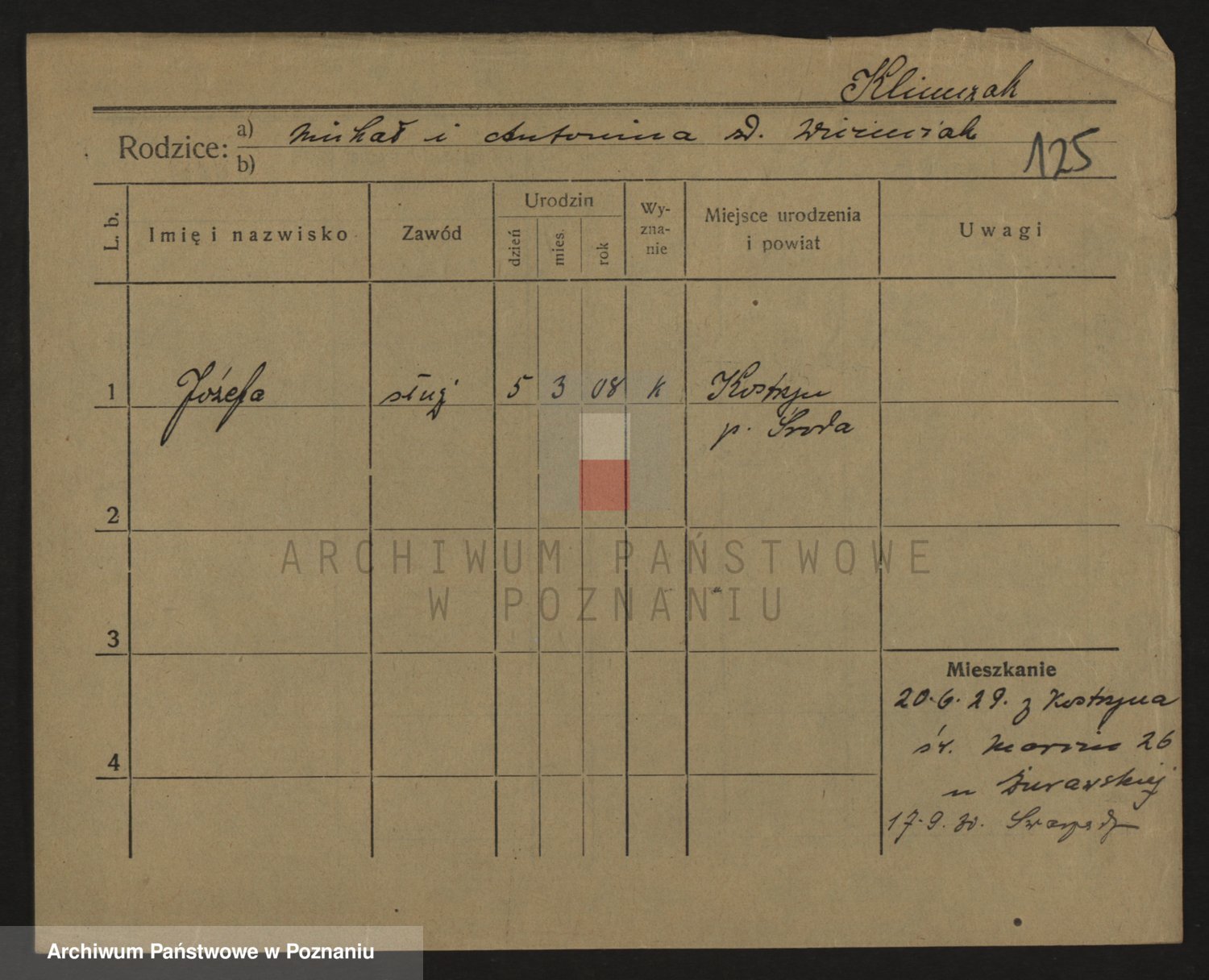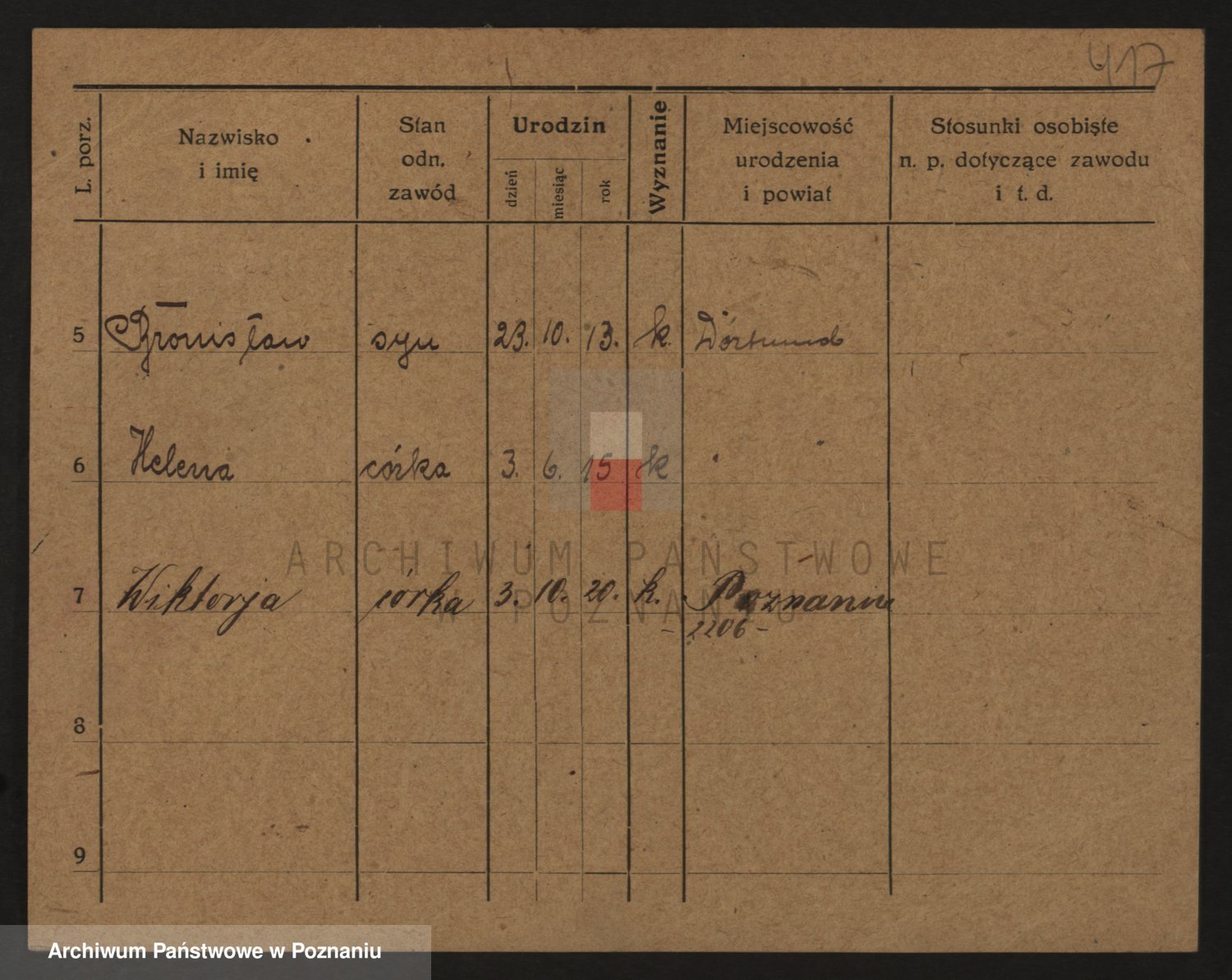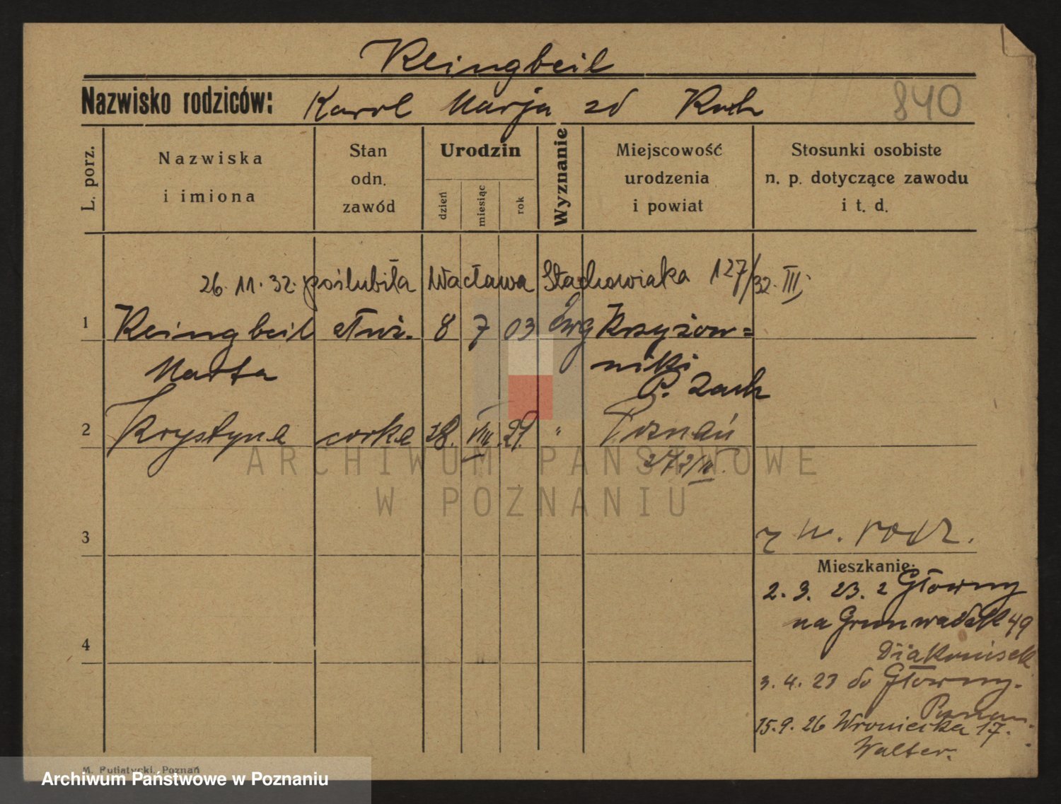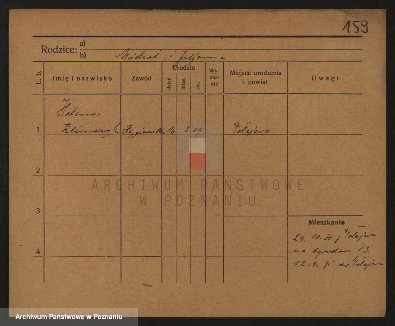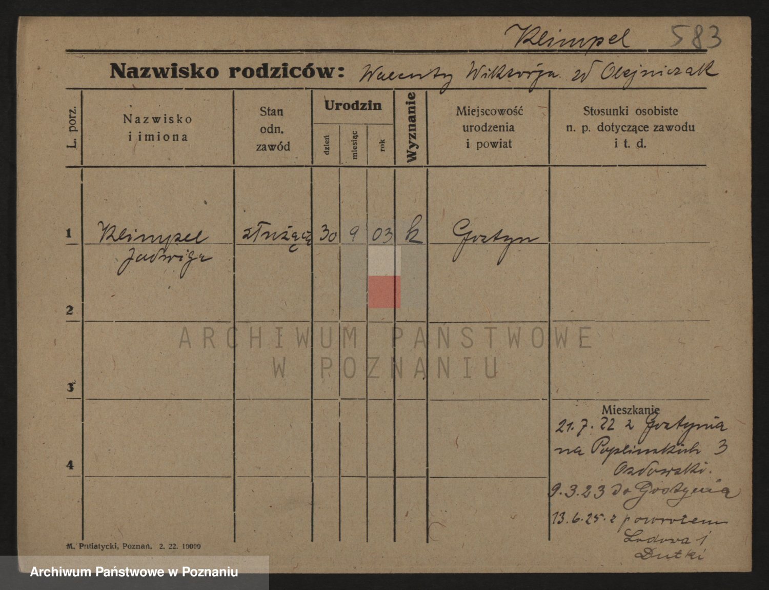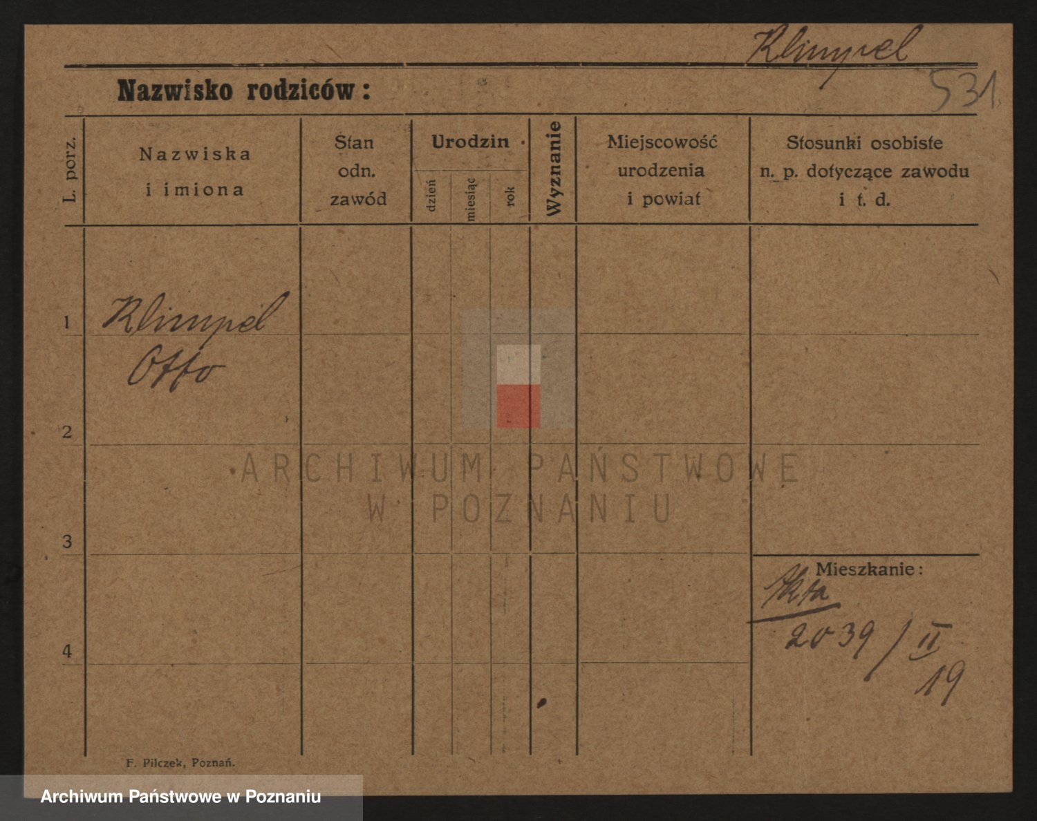 Podgląd karty osobowej dostępny jest po kliknięciu na nazwisko lub ikonkę karty. Można dokonywać powiększenia (ikony na górze) lub przechodzić między kolejnymi skanami (strzałki po bokach).