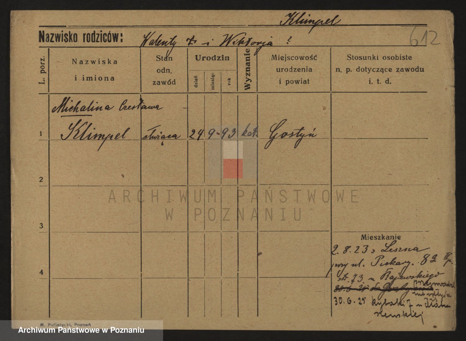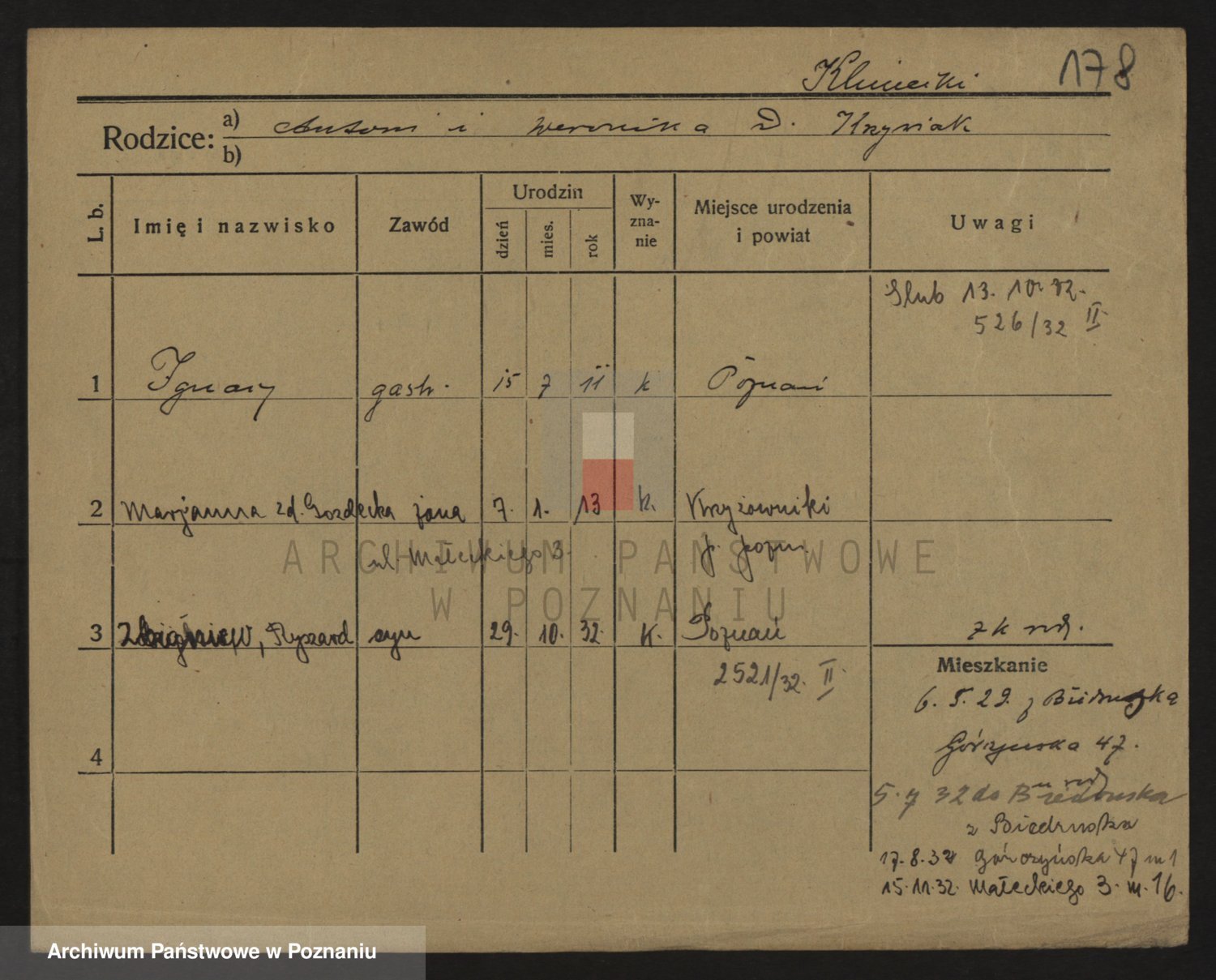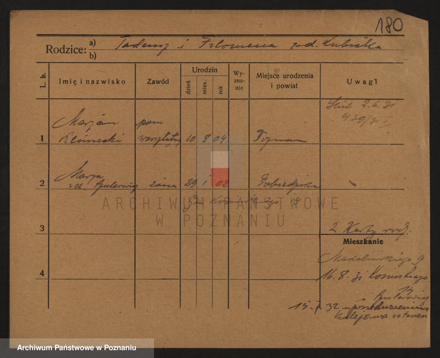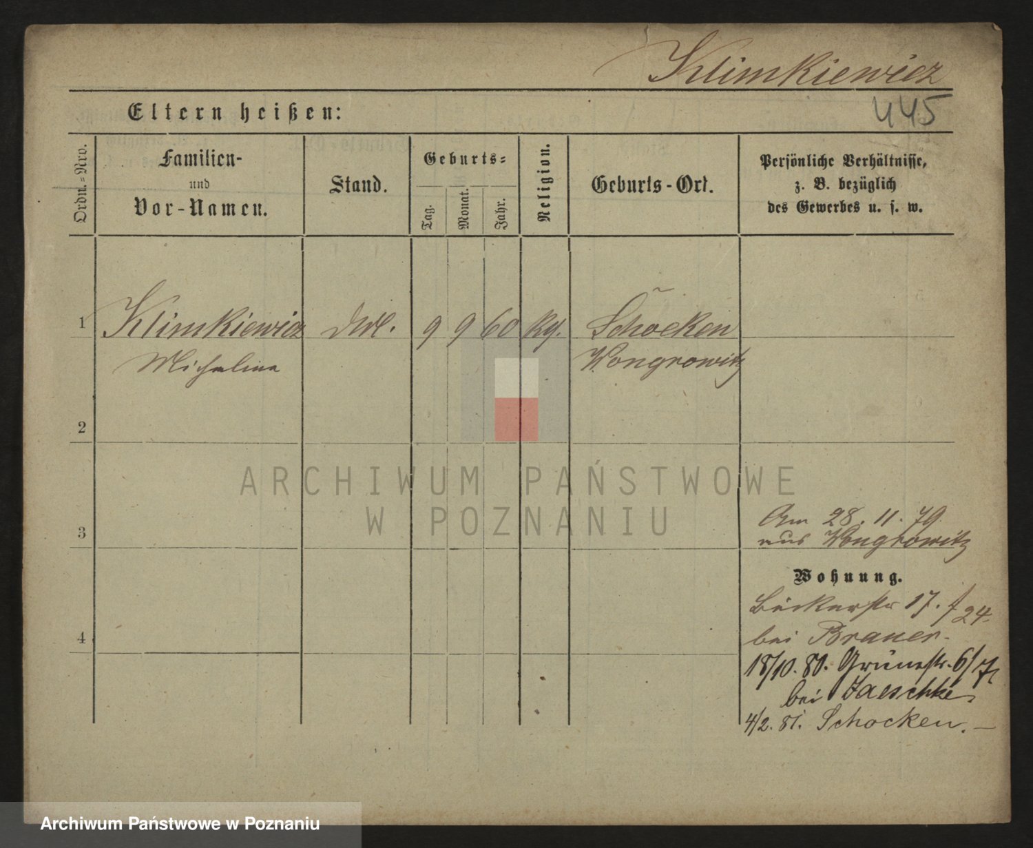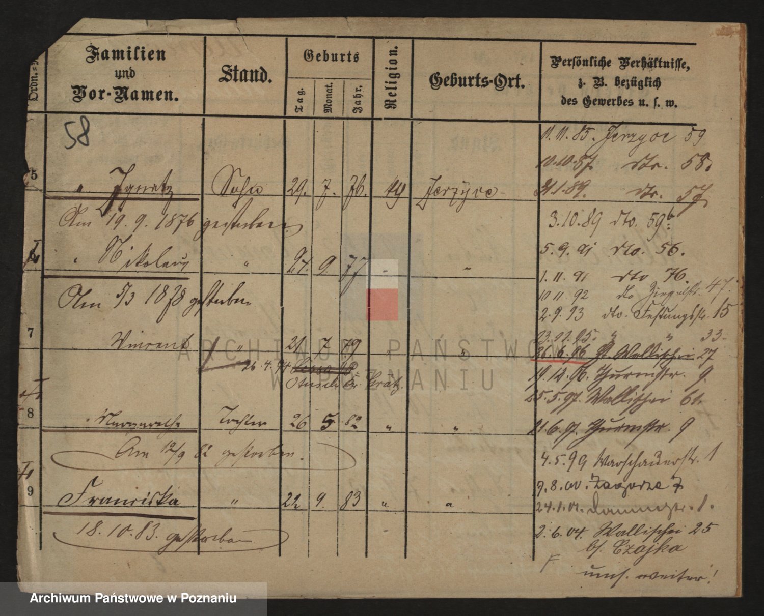 Podgląd karty osobowej dostępny jest po kliknięciu na nazwisko lub ikonkę karty. Można dokonywać powiększenia (ikony na górze) lub przechodzić między kolejnymi skanami (strzałki po bokach).