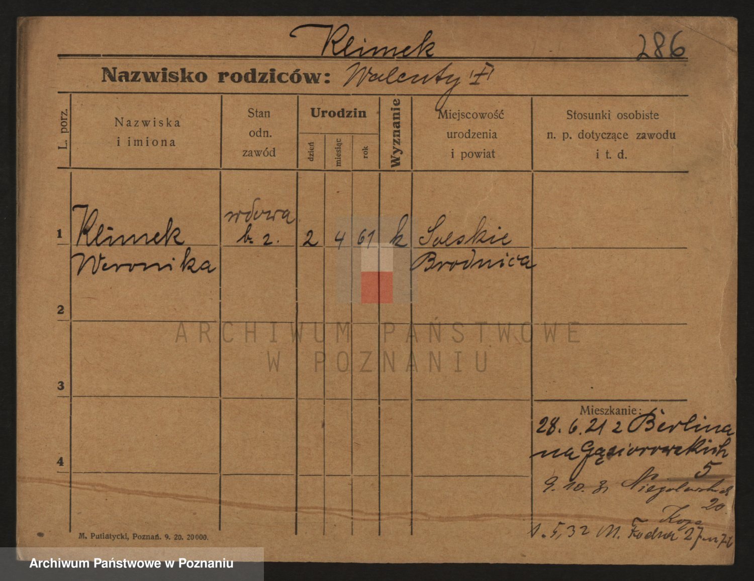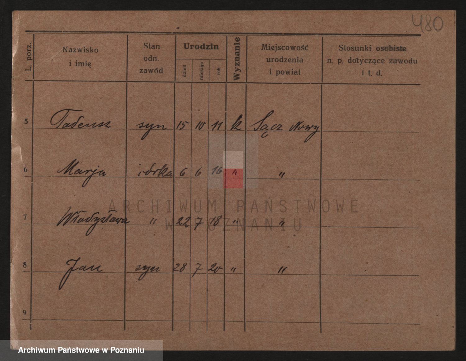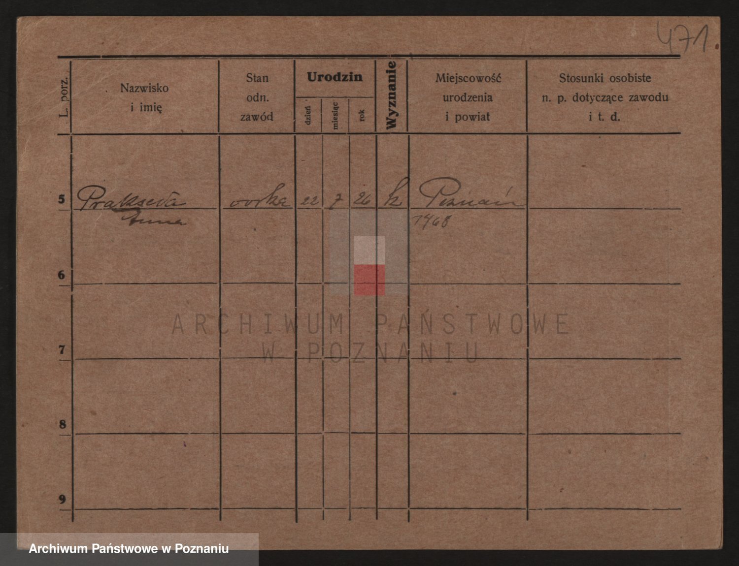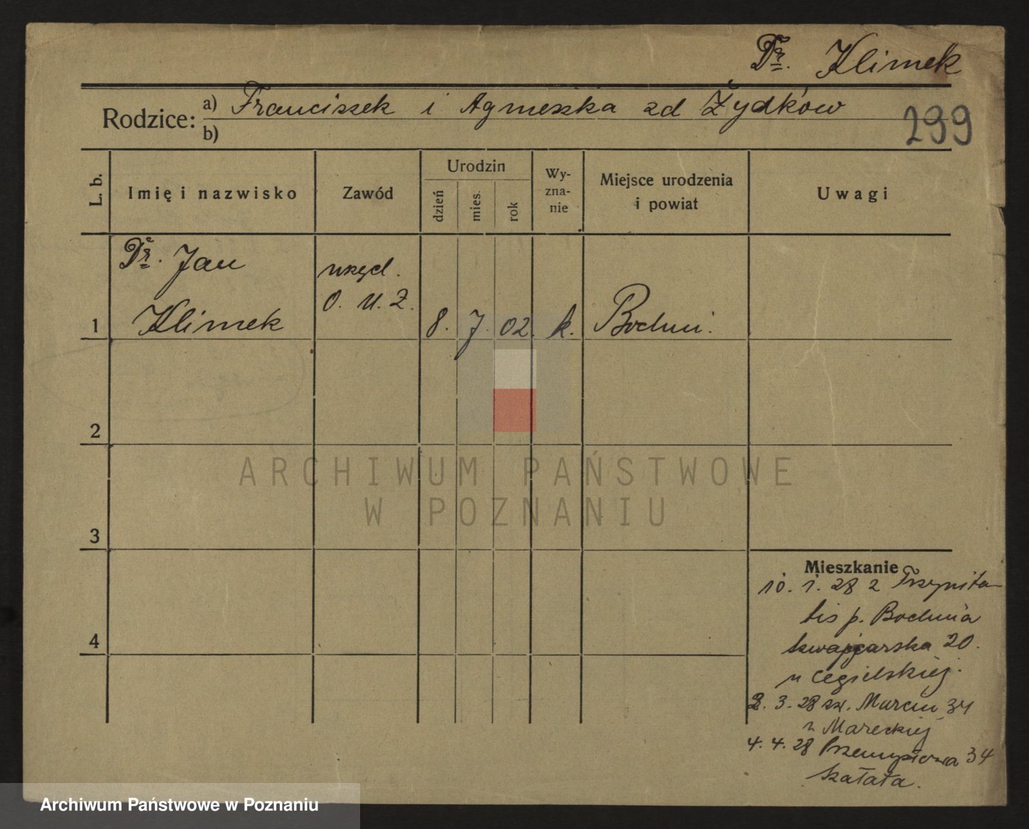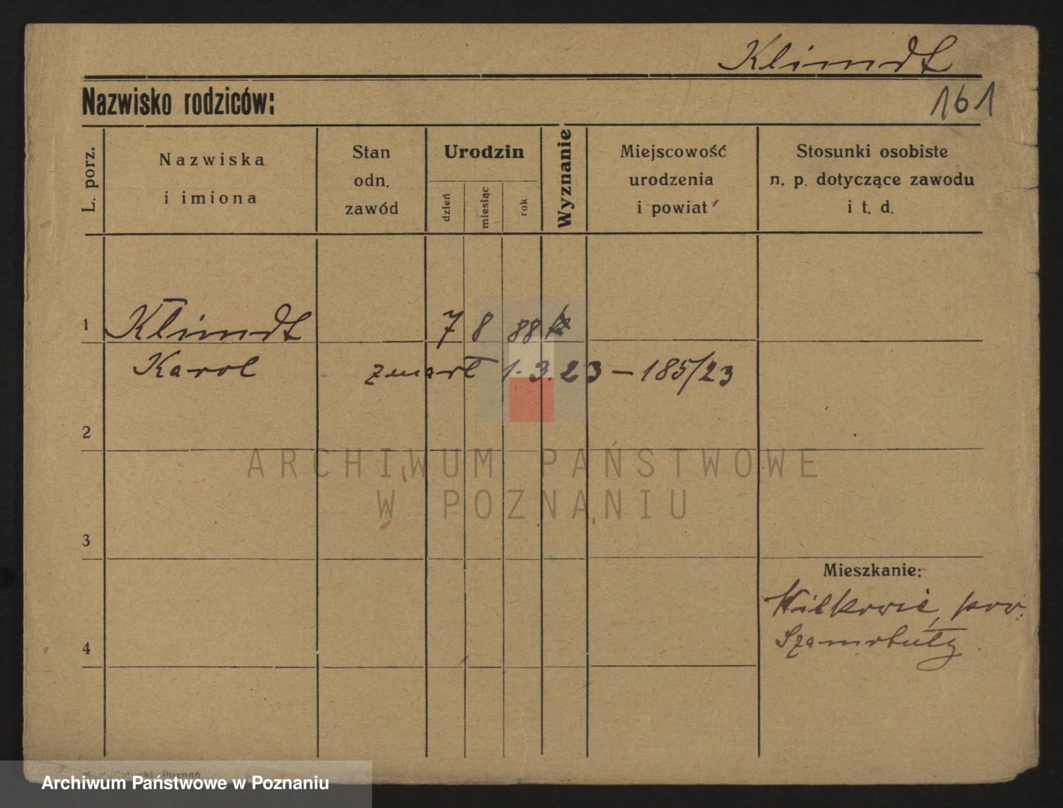 Podgląd karty osobowej dostępny jest po kliknięciu na nazwisko lub ikonkę karty. Można dokonywać powiększenia (ikony na górze) lub przechodzić między kolejnymi skanami (strzałki po bokach).