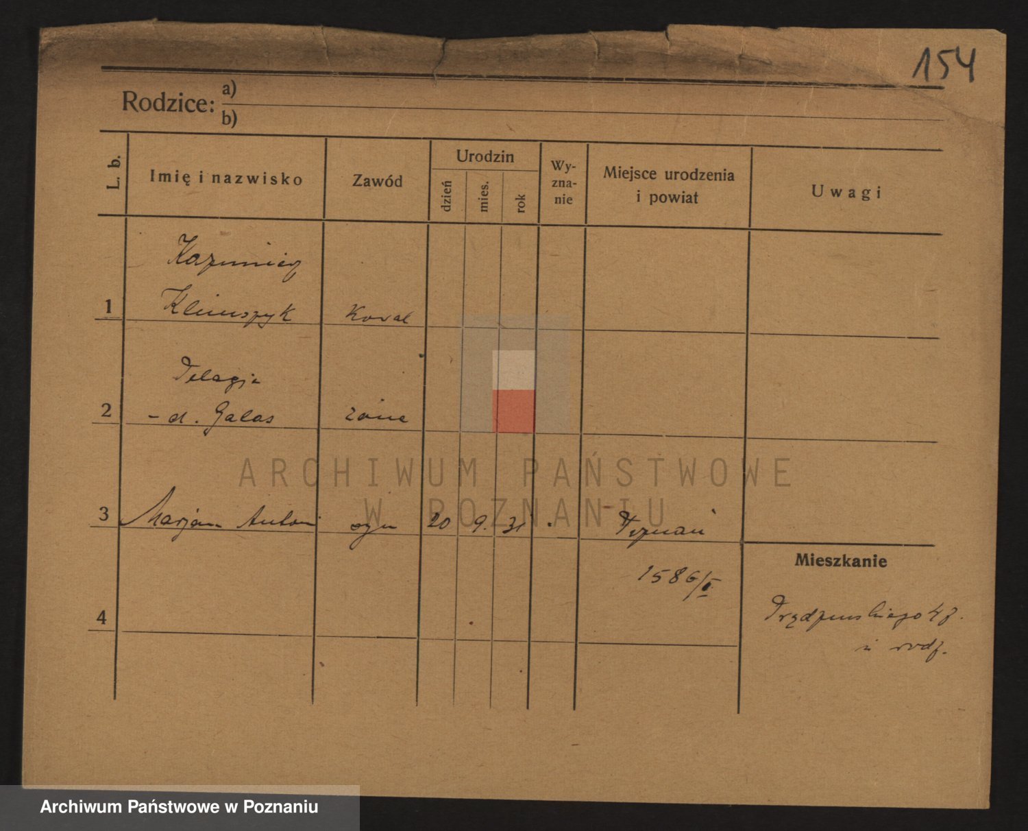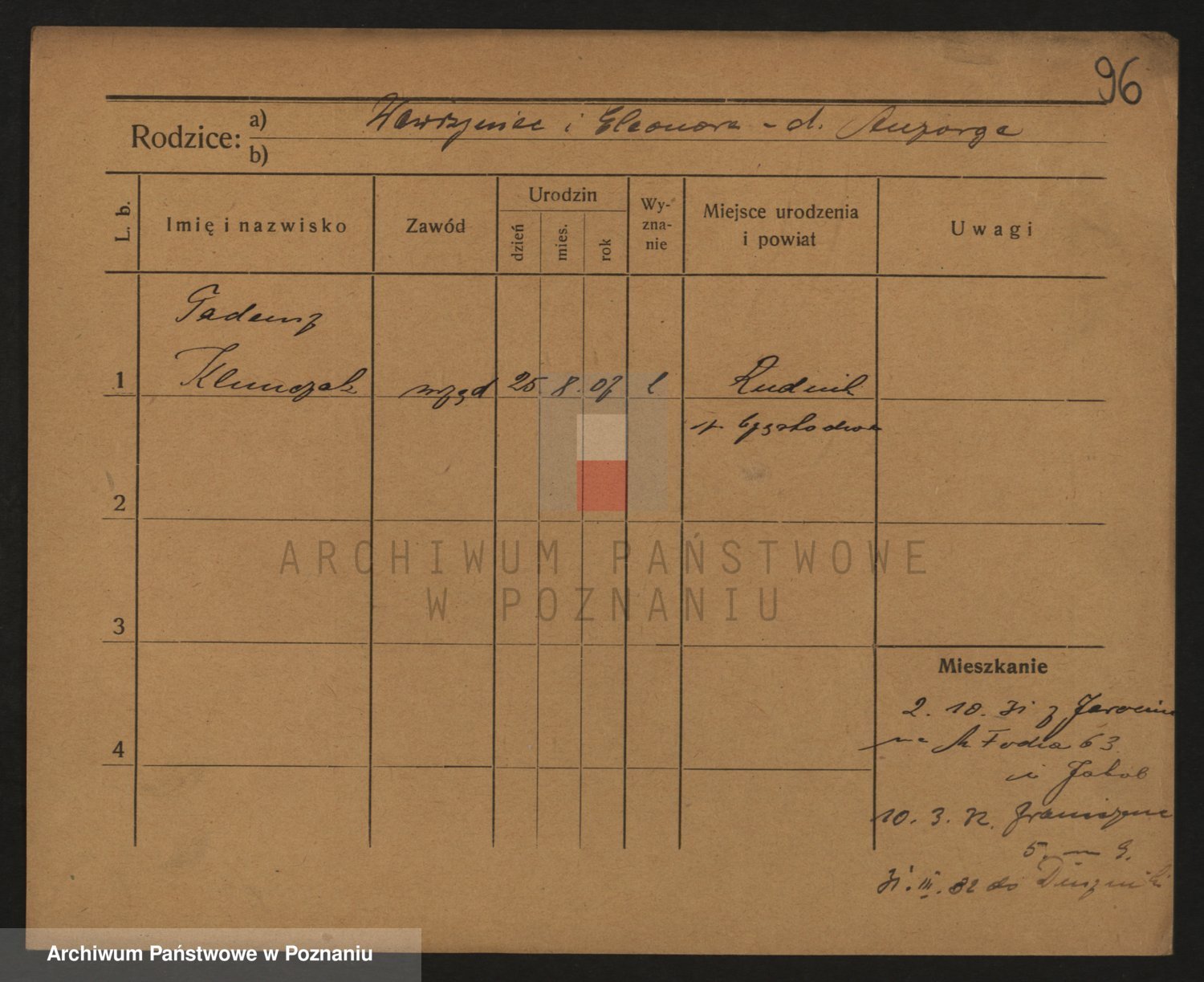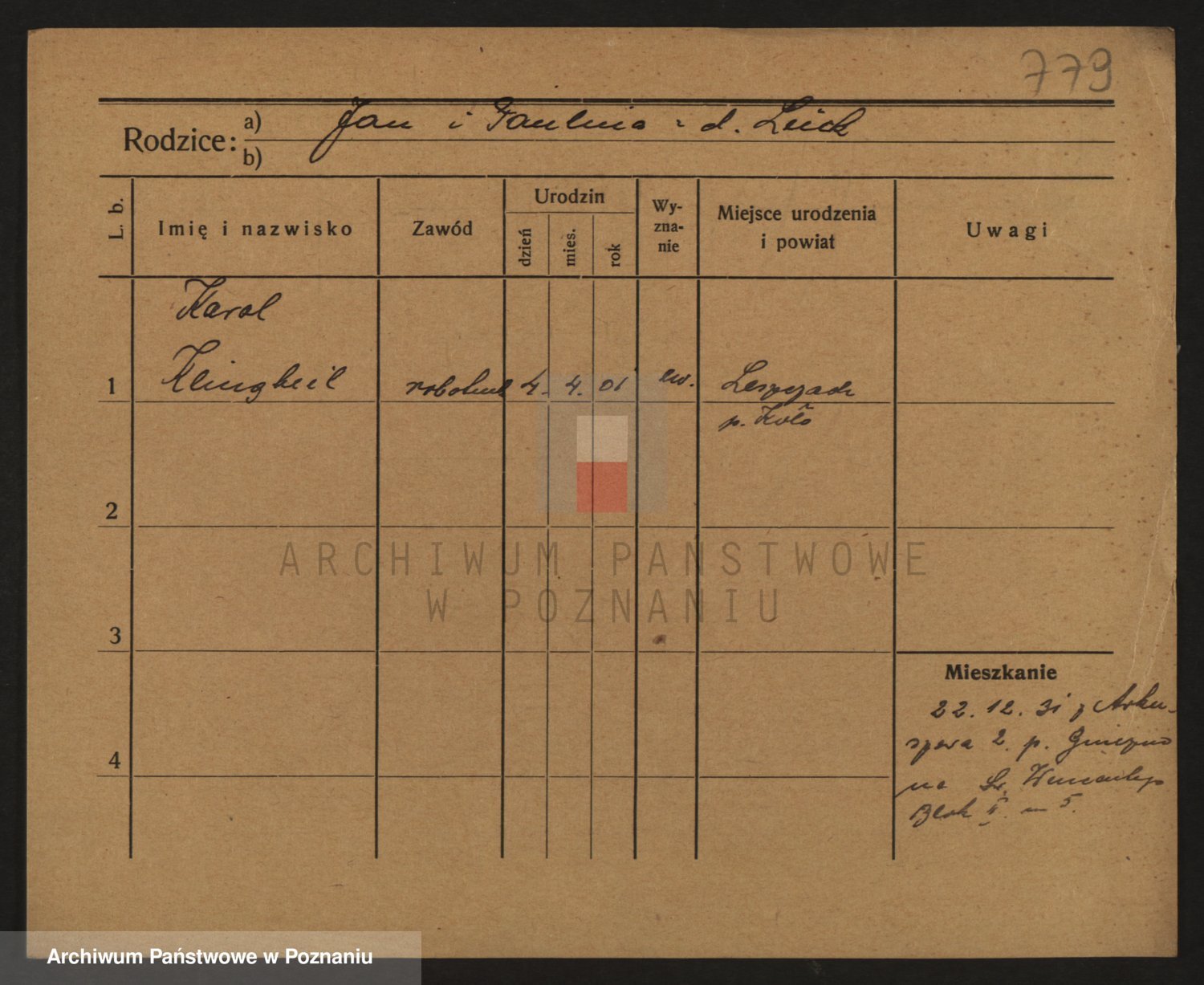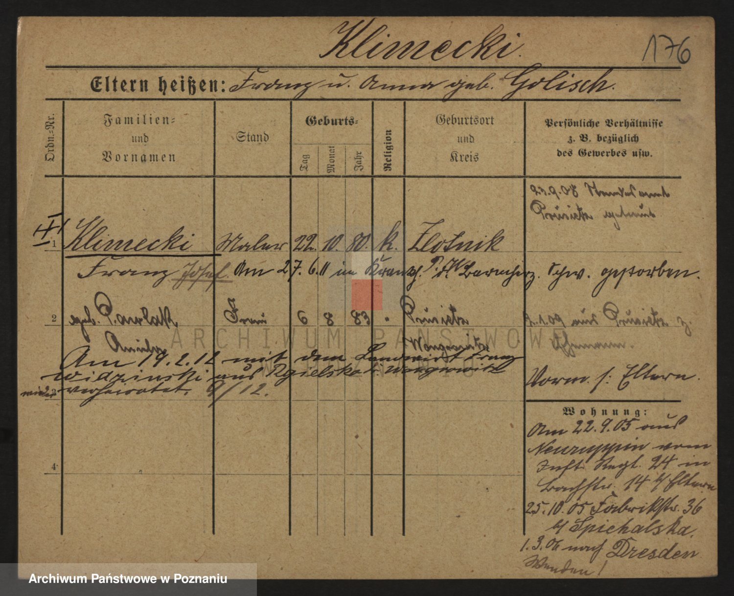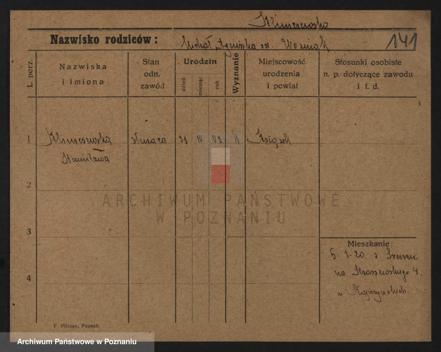 Podgląd karty osobowej dostępny jest po kliknięciu na nazwisko lub ikonkę karty. Można dokonywać powiększenia (ikony na górze) lub przechodzić między kolejnymi skanami (strzałki po bokach).