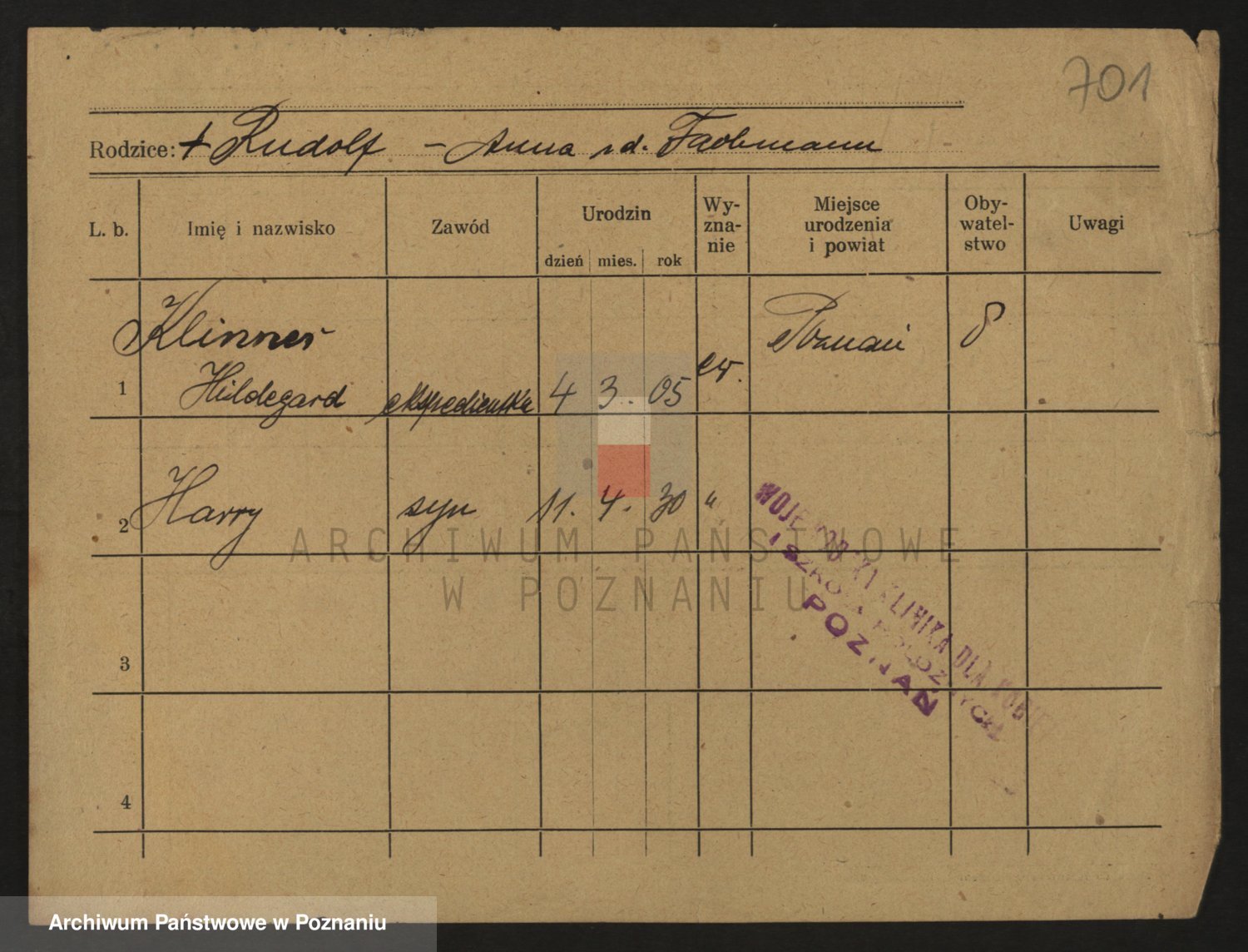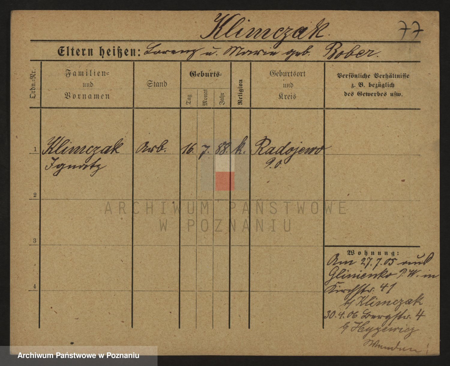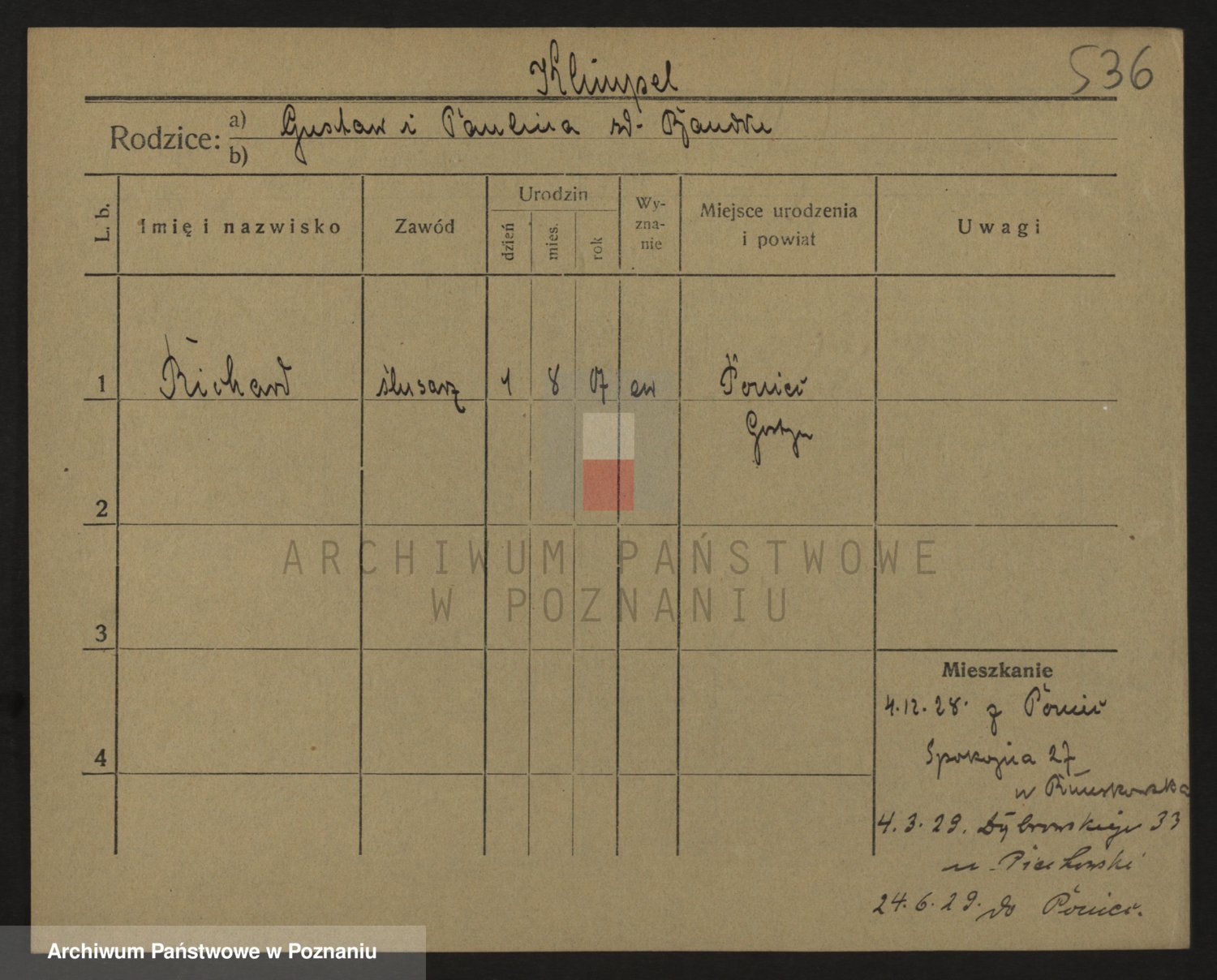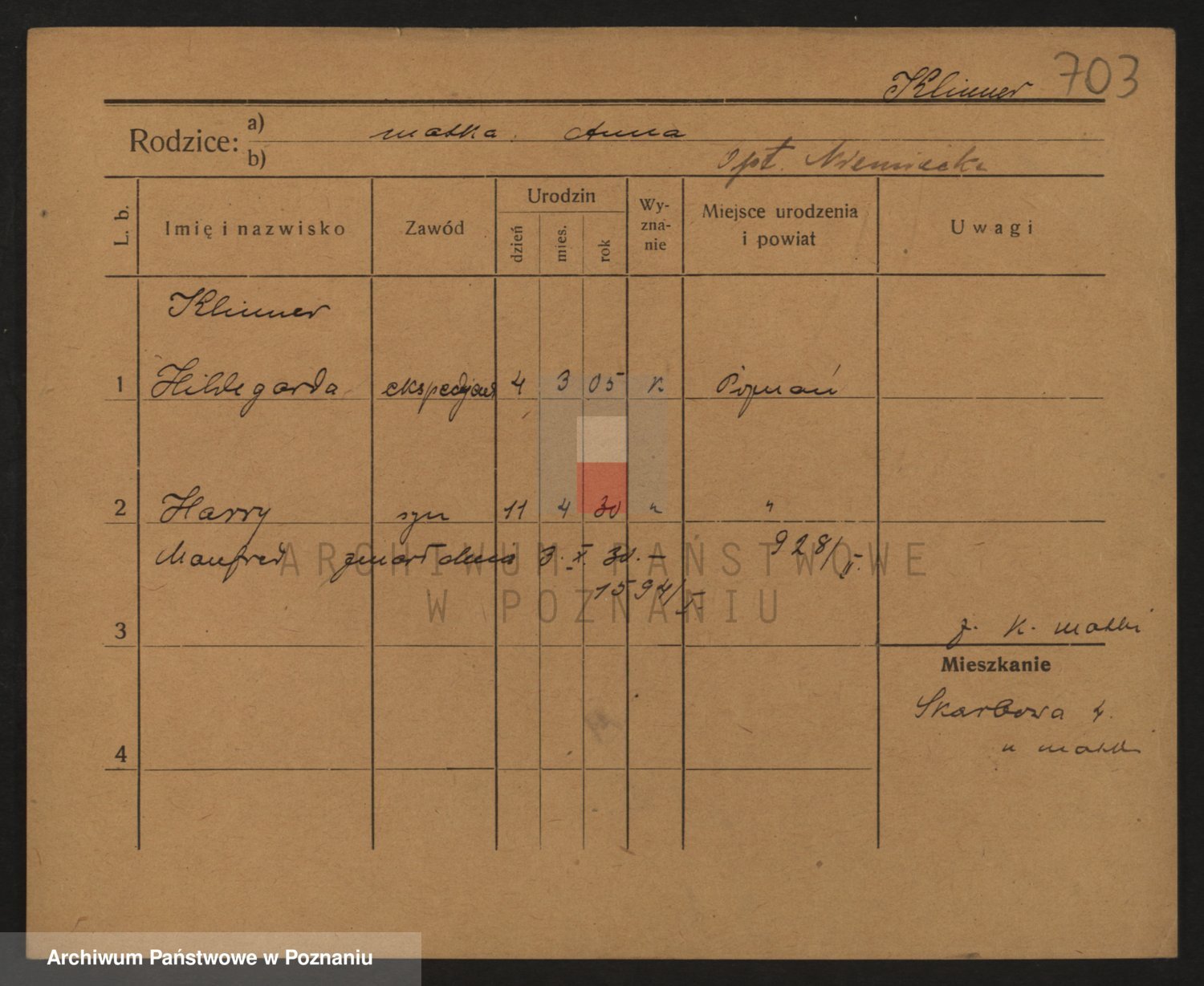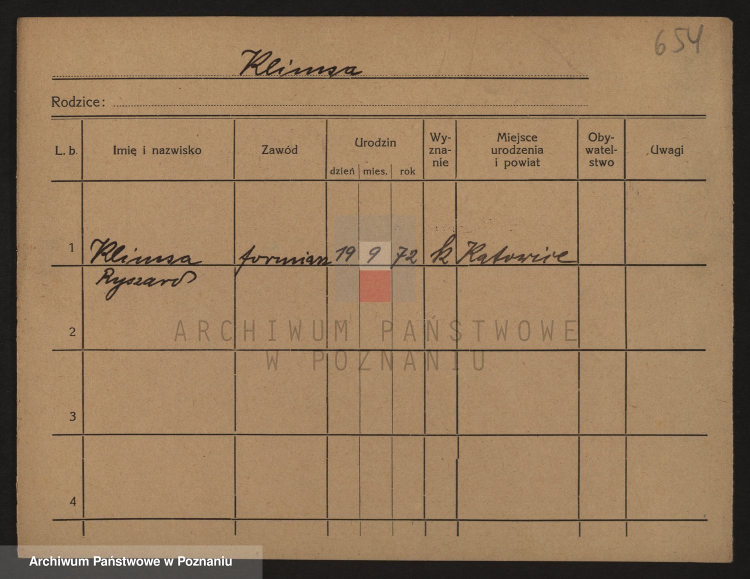 Podgląd karty osobowej dostępny jest po kliknięciu na nazwisko lub ikonkę karty. Można dokonywać powiększenia (ikony na górze) lub przechodzić między kolejnymi skanami (strzałki po bokach).