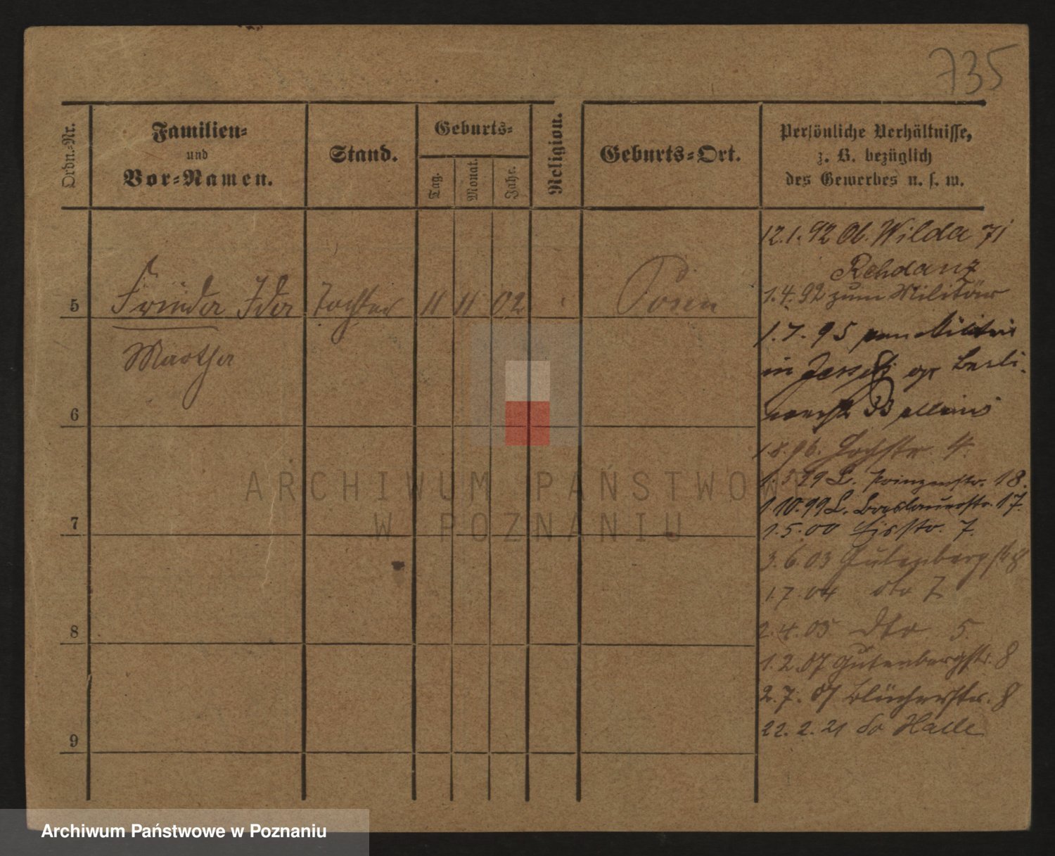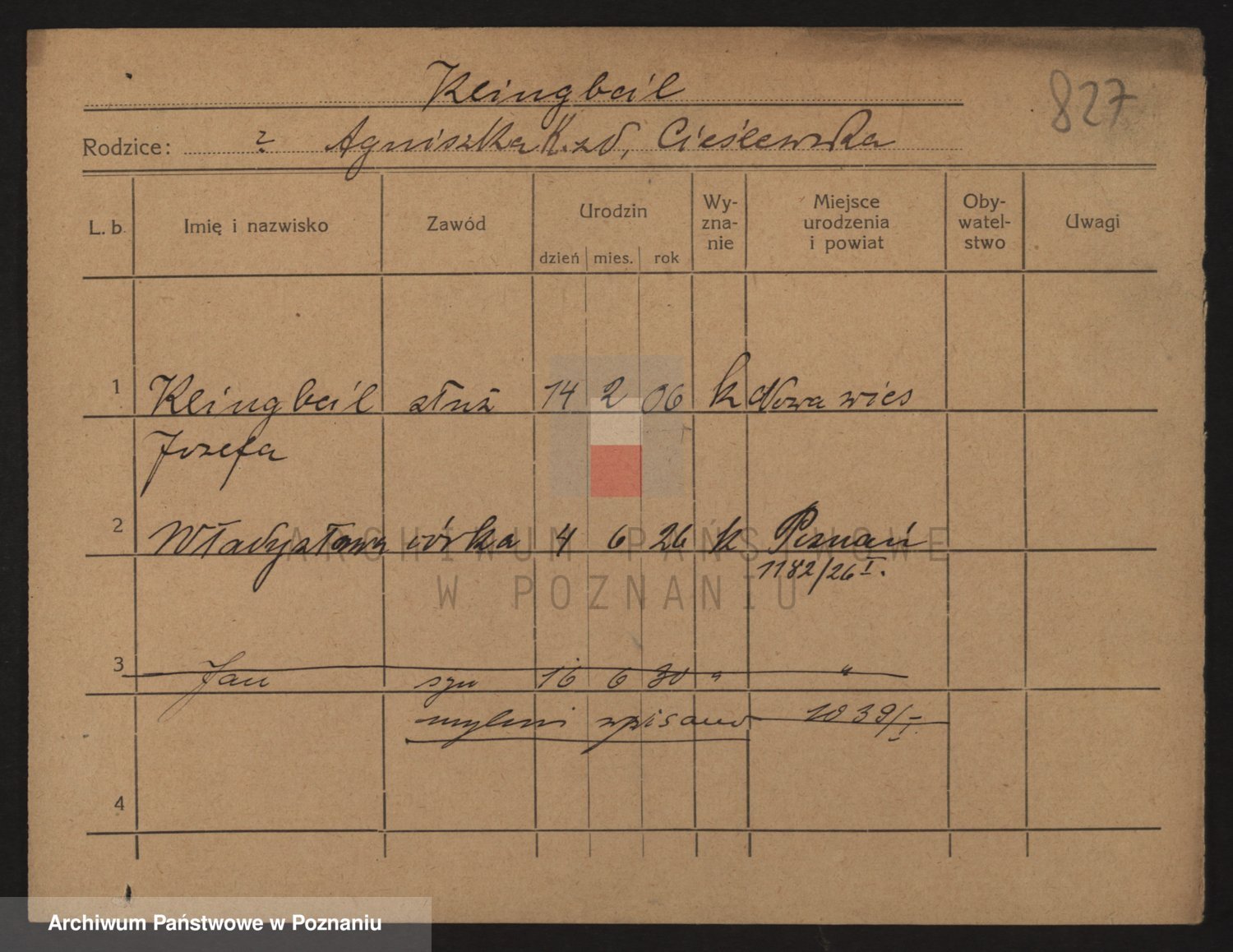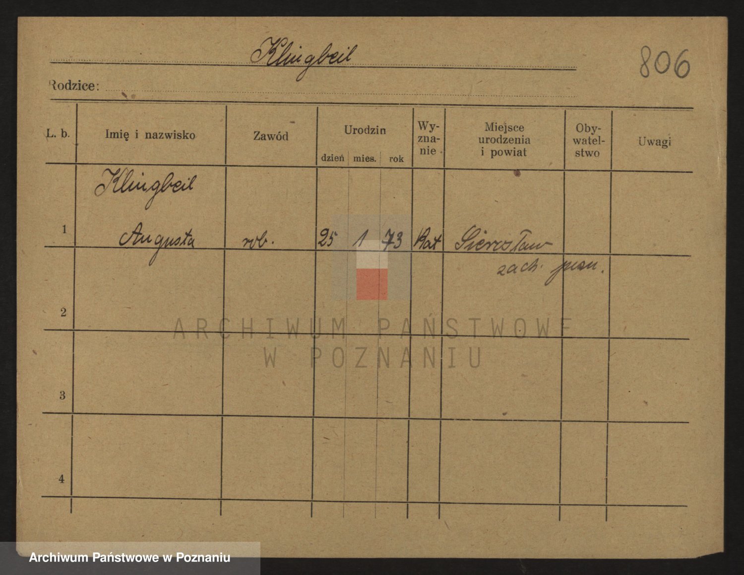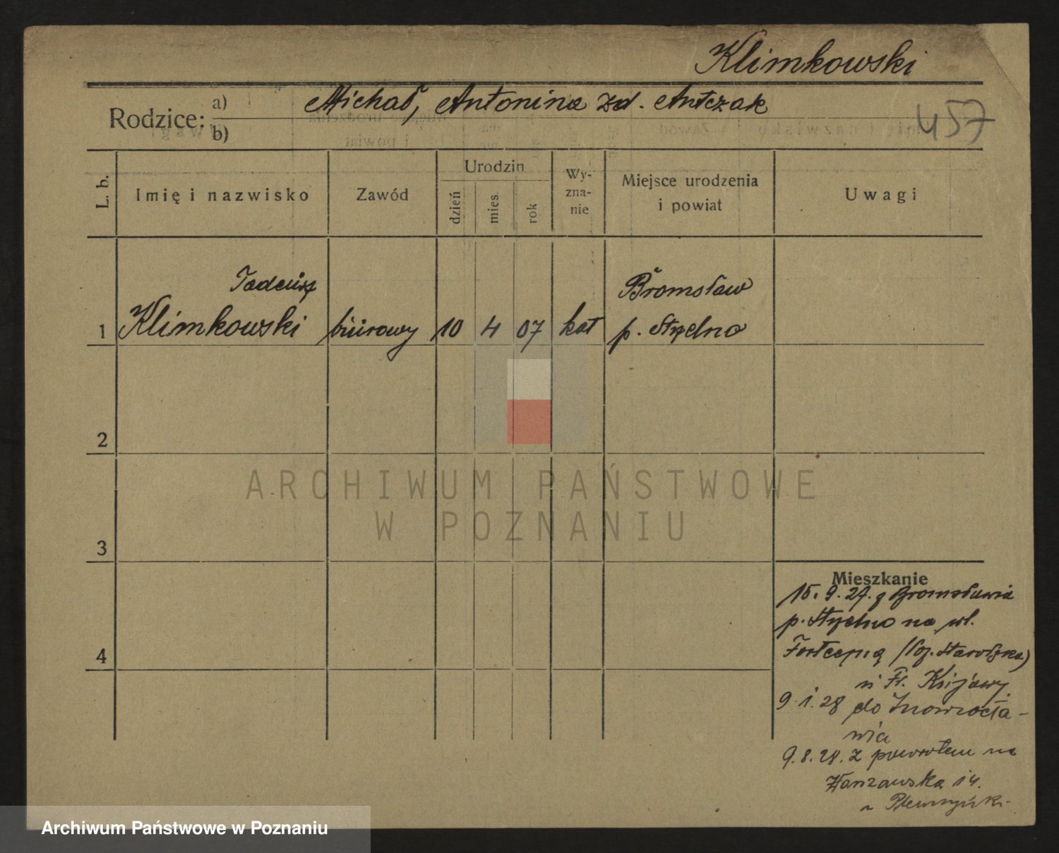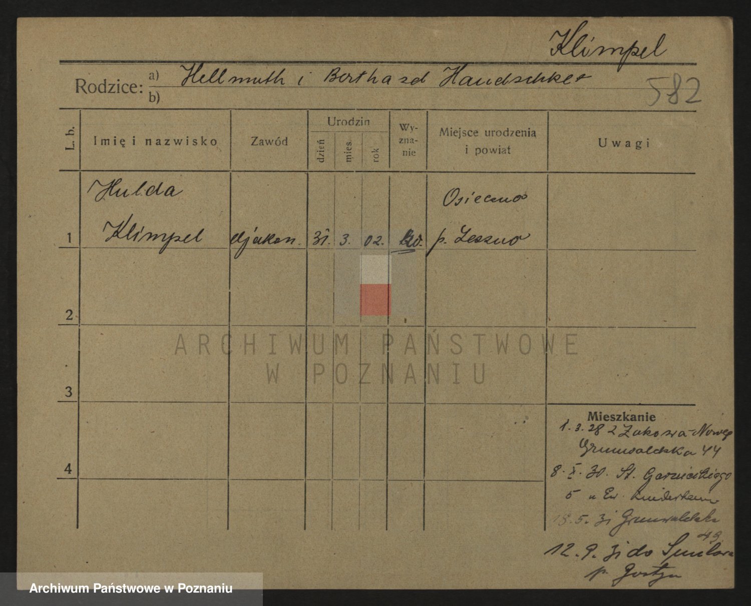 Podgląd karty osobowej dostępny jest po kliknięciu na nazwisko lub ikonkę karty. Można dokonywać powiększenia (ikony na górze) lub przechodzić między kolejnymi skanami (strzałki po bokach).