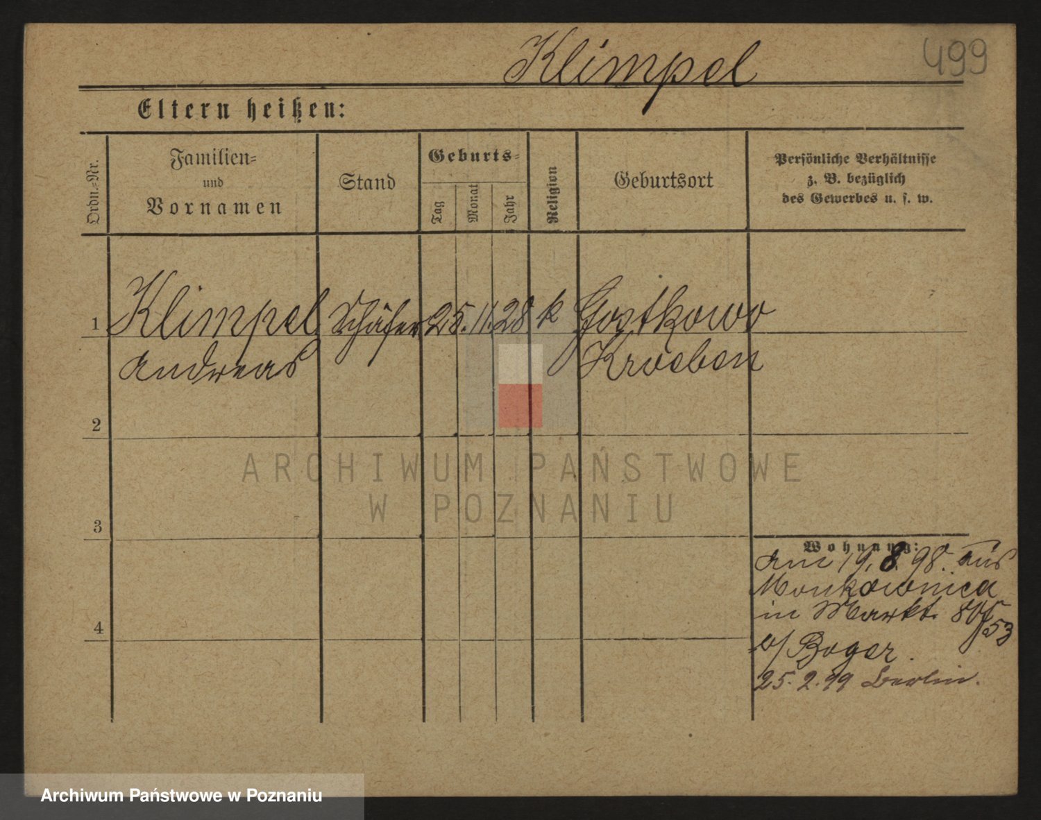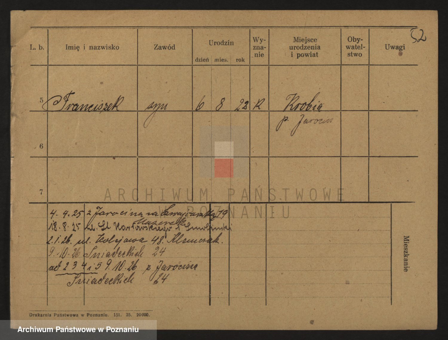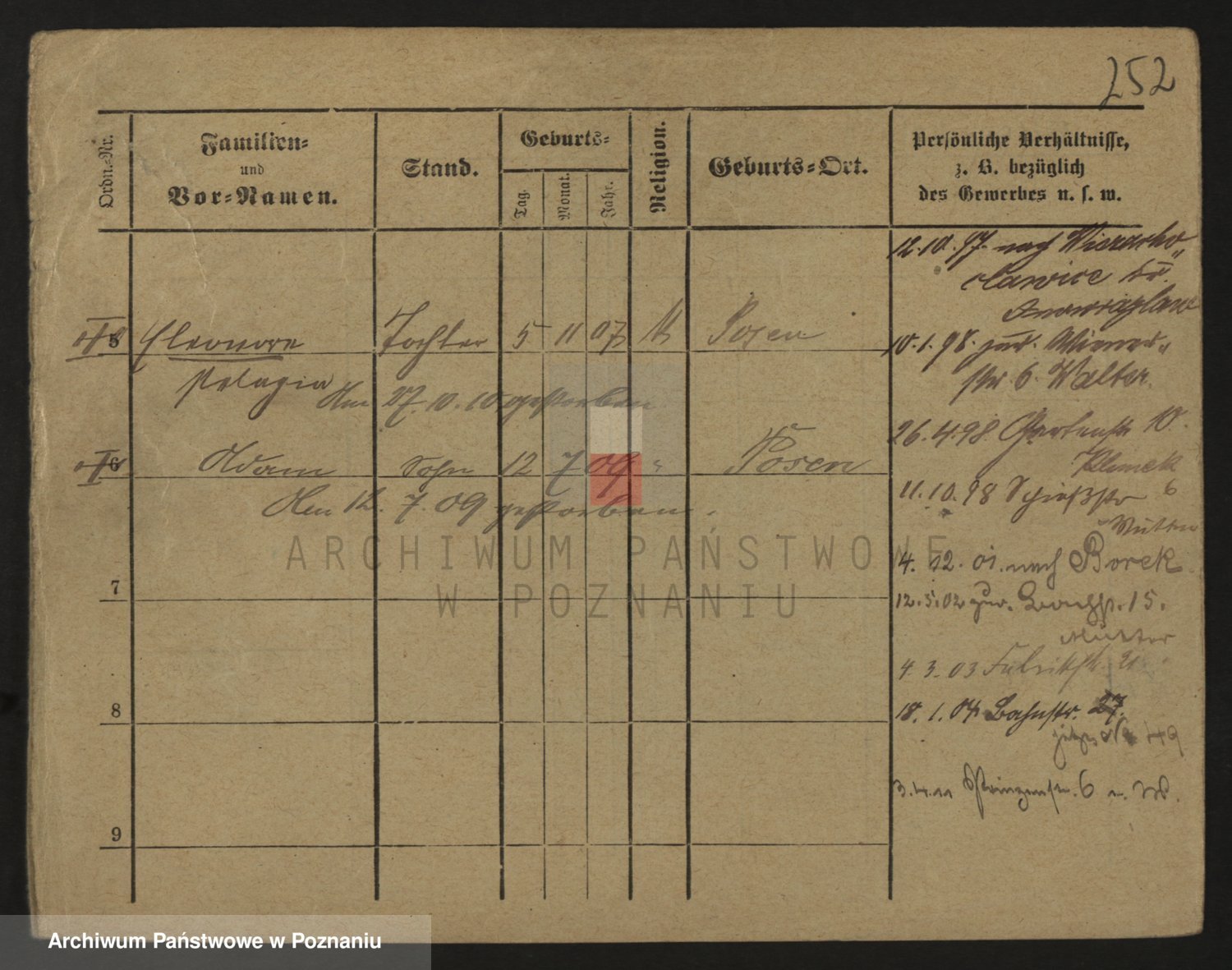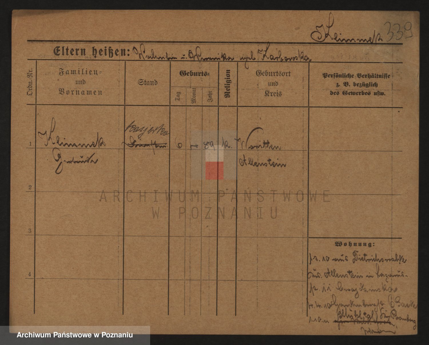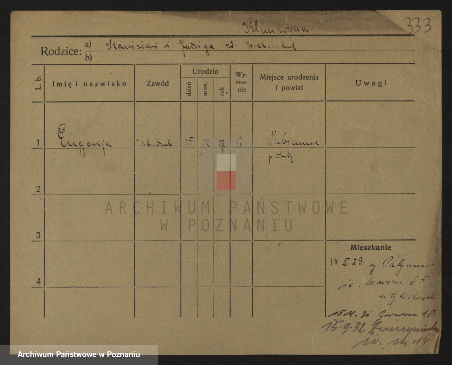Podgląd karty osobowej dostępny jest po kliknięciu na nazwisko lub ikonkę karty. Można dokonywać powiększenia (ikony na górze) lub przechodzić między kolejnymi skanami (strzałki po bokach).